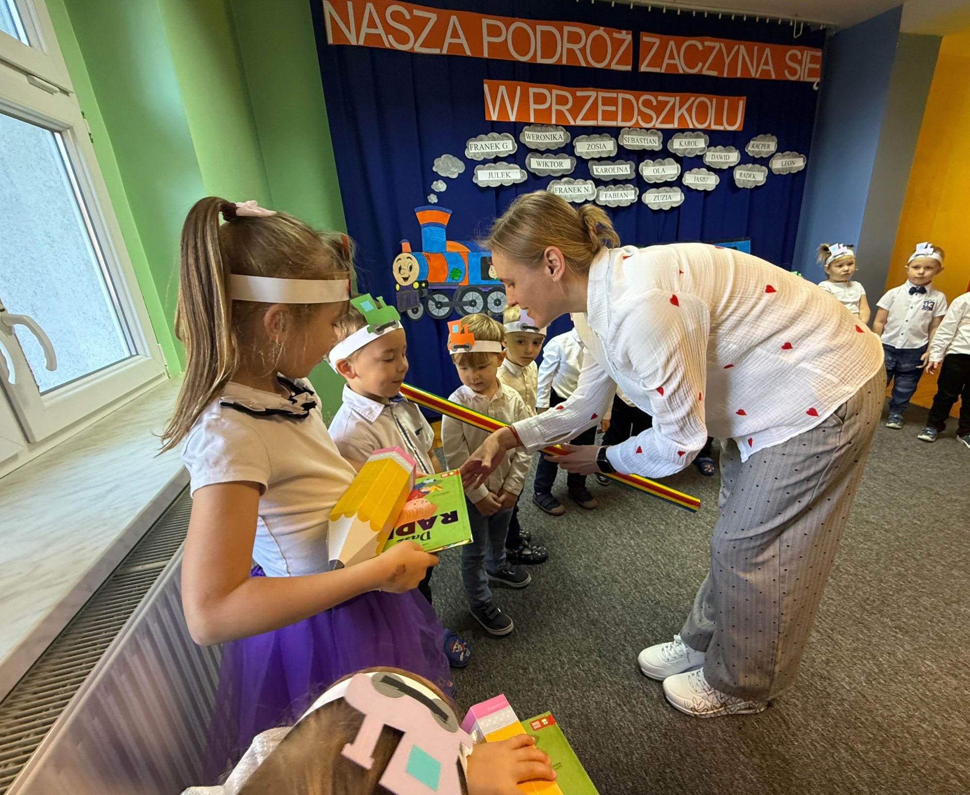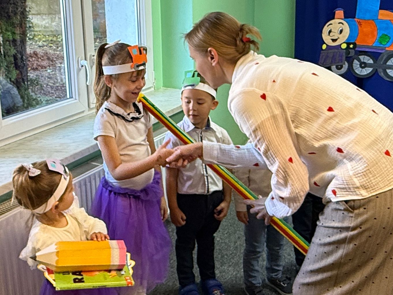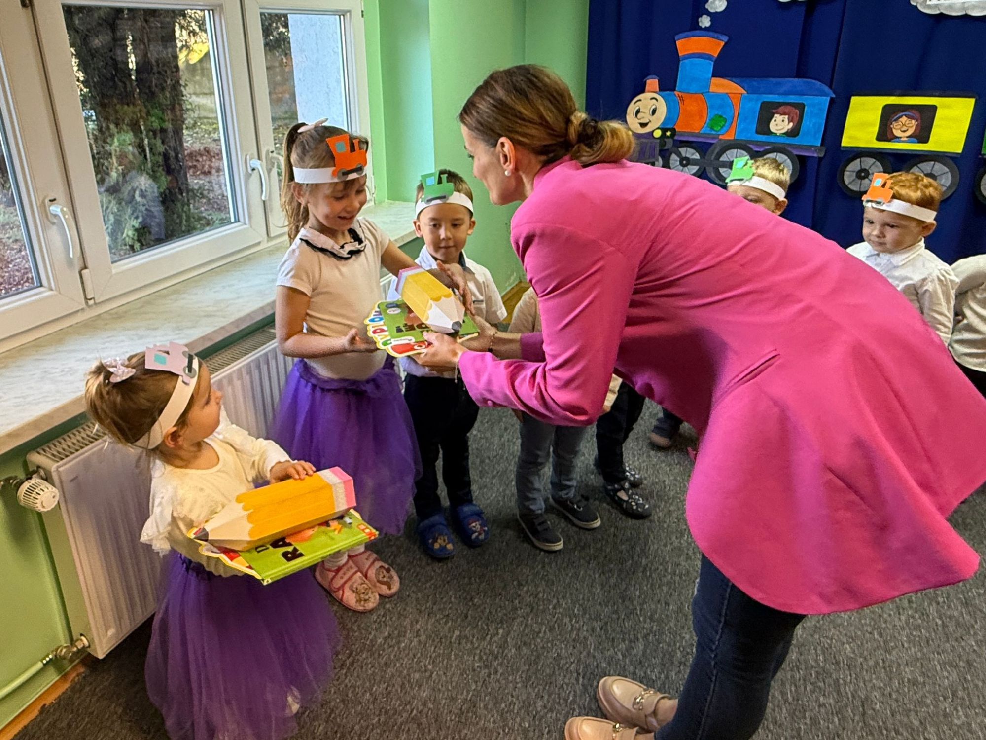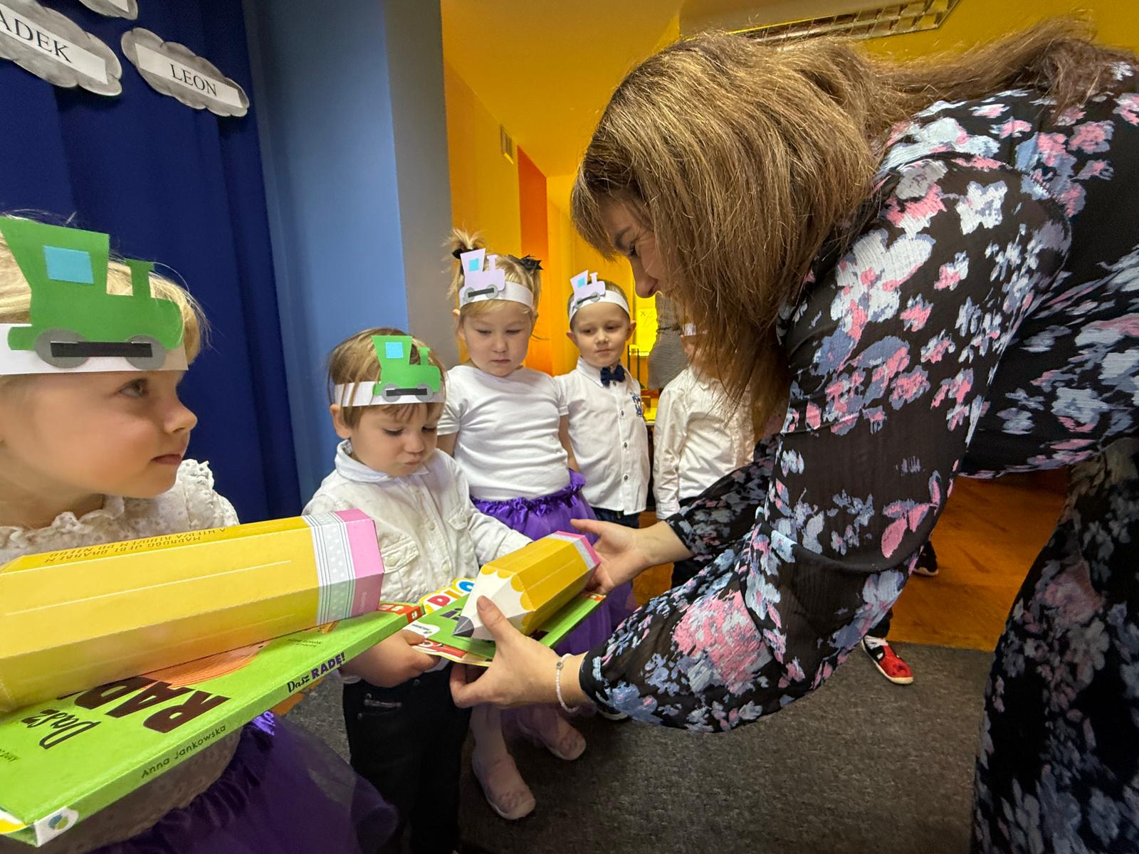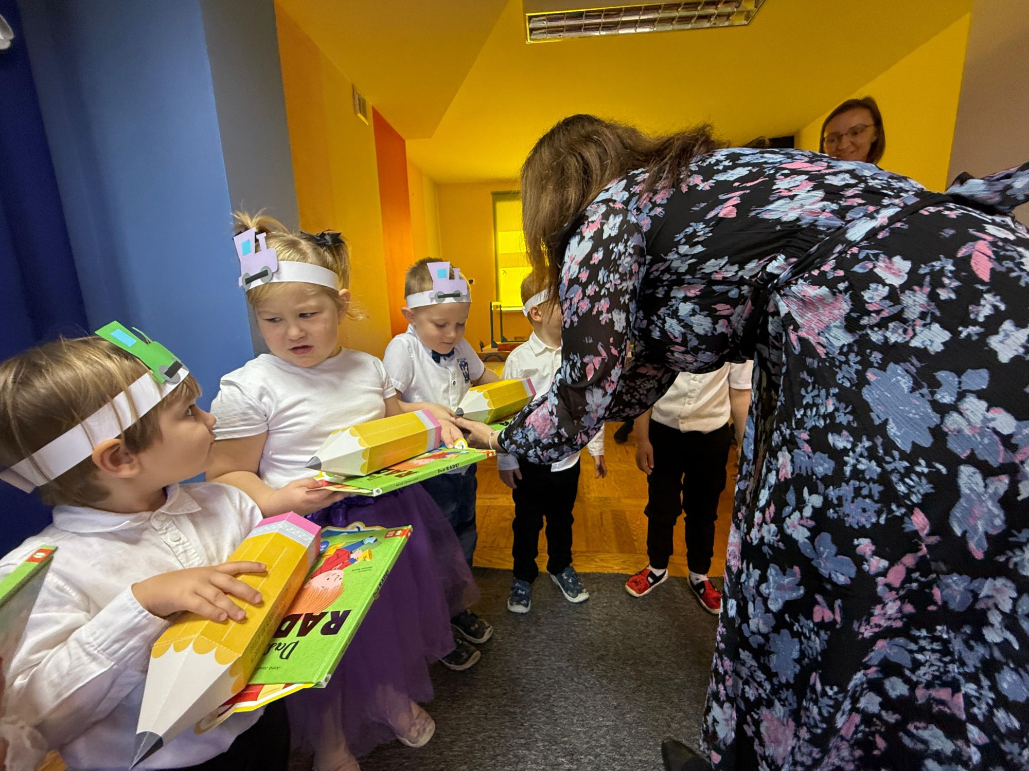 4 listopada w naszym przedszkolu odbyło się długo wyczekiwane wydarzenie - Pasowanie na Przedszkolaka. Od rana trwały przygotowania. Uroczystość rozpoczęły występy dzieci, które z uśmiechem i odwagą prezentowały swoje umiejętności. Zaśpiewały piosenki, recytowały wierszyki oraz zatańczyły wesoły taniec. Dla nich był to pierwszy ważny występ przed publicznością. Po części artystycznej zgodnie z tradycją pasowania dokonała pani dyrektor dotykając ramienia każdego przedszkolaka specjalnym ołówkiem. Każde dziecko na pamiątkę tego wydarzenia otrzymało dyplom, książkę oraz "kredkę niespodziankę". Nie zapomnieliśmy także o sesji zdjęciowej. Byl to dzień pełen emocji, wrażeń zarówno dla dzieci, jak i nauczycieli.