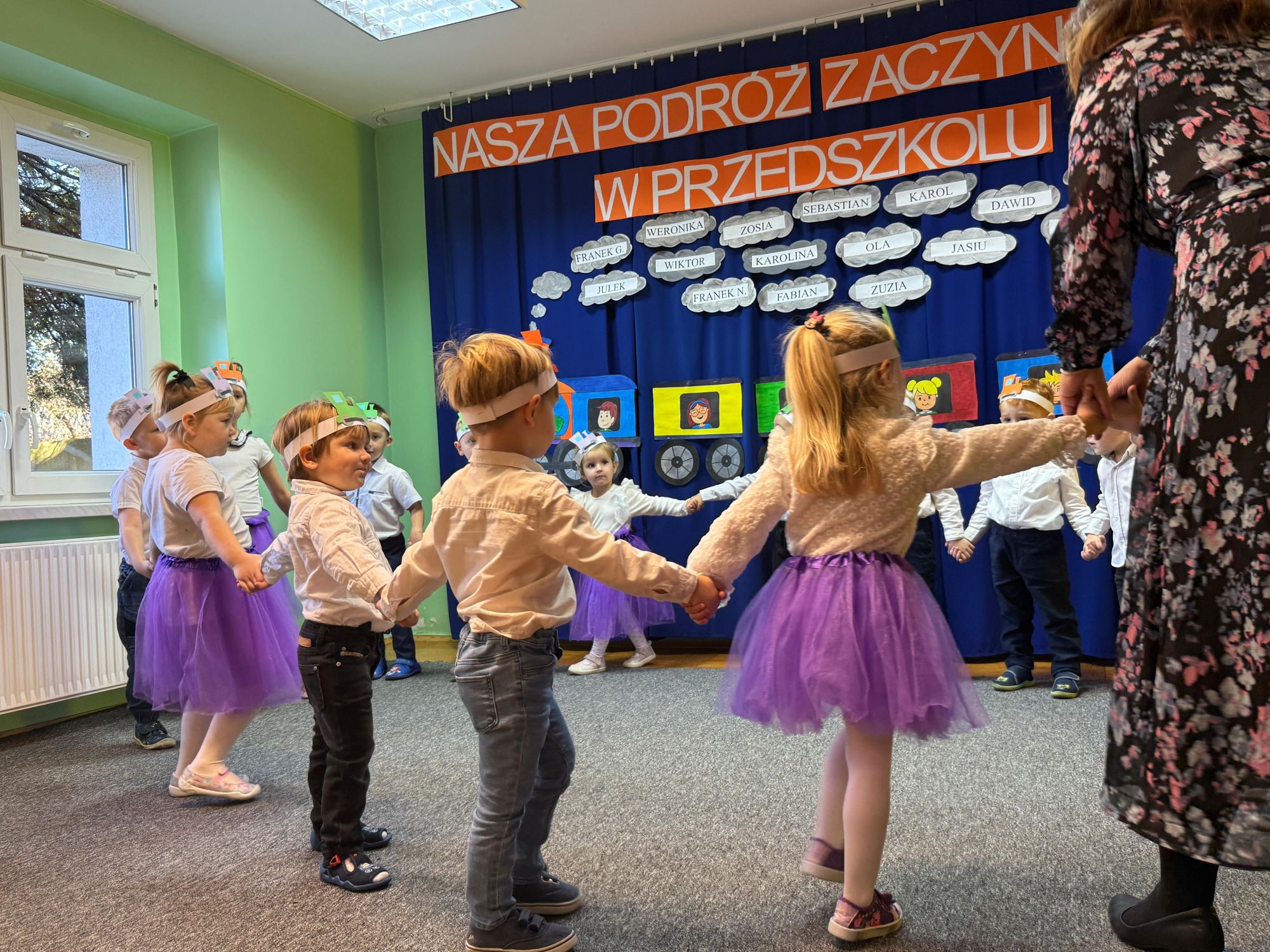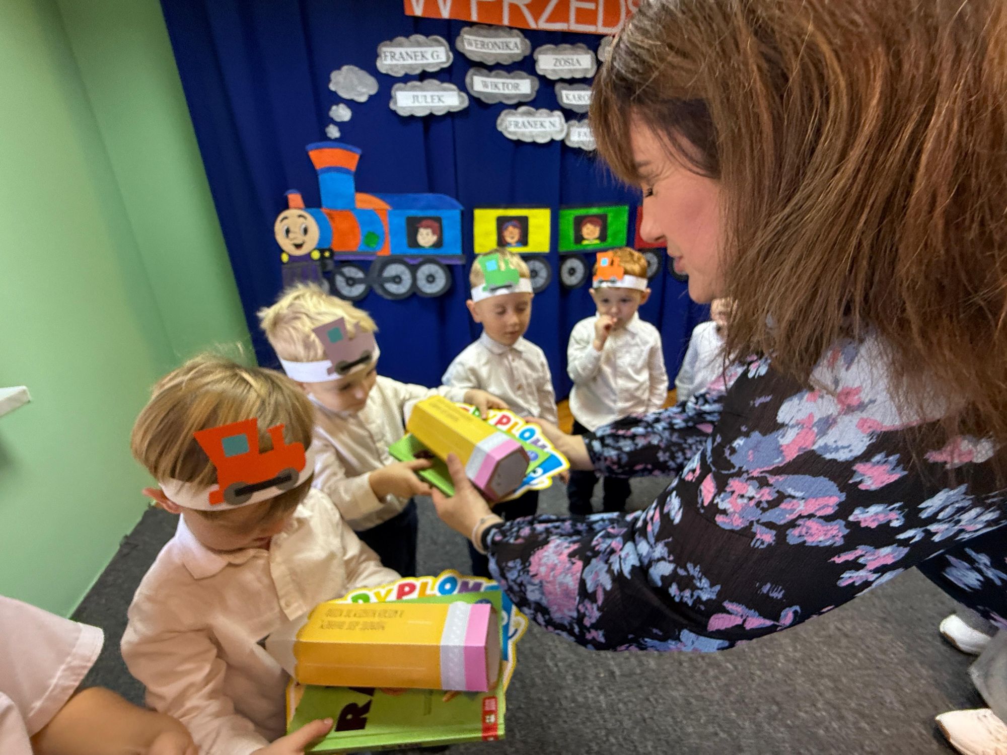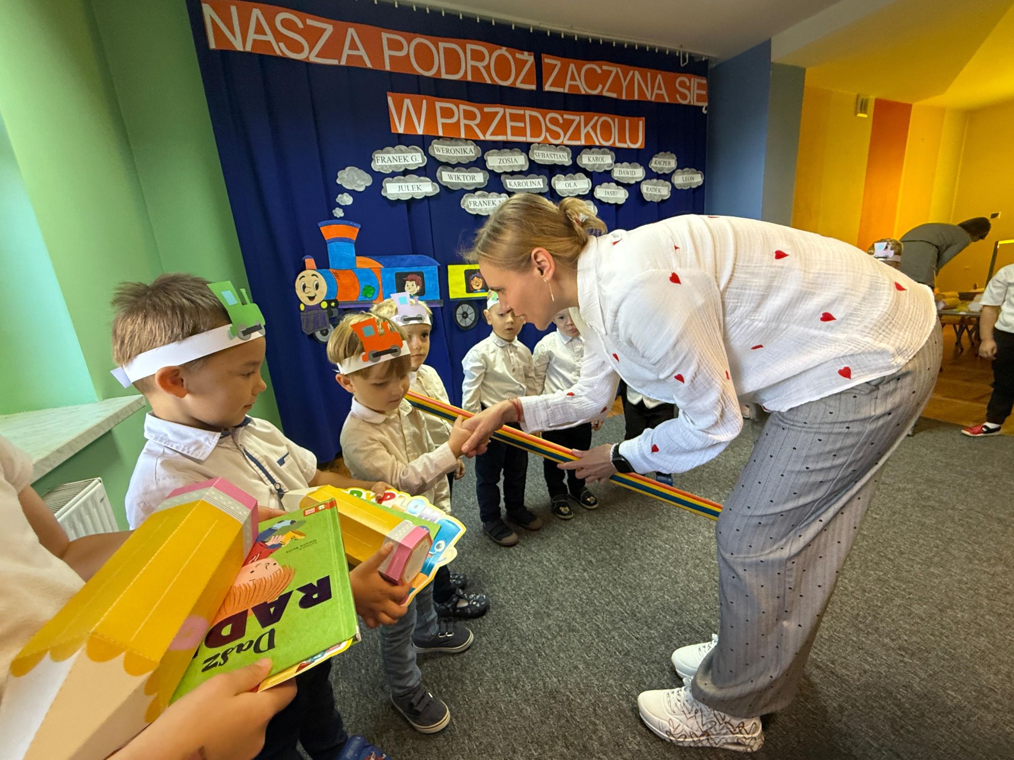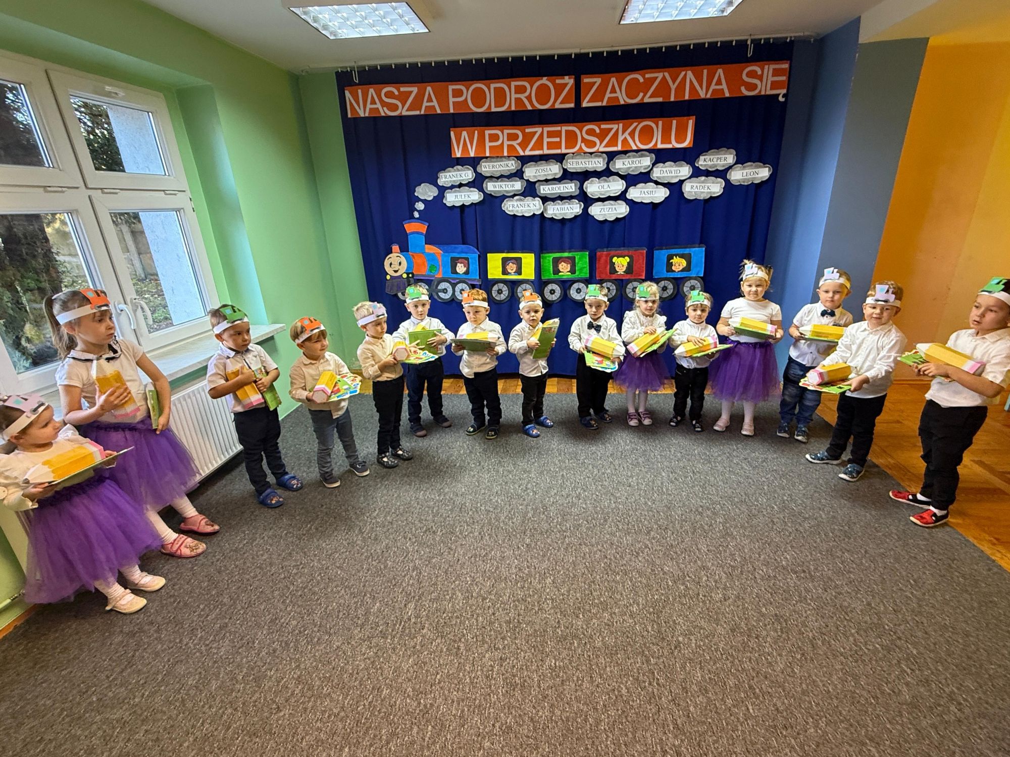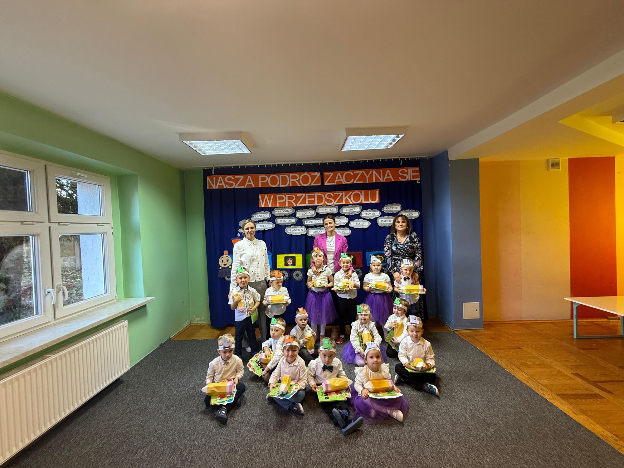 4 listopada w naszym przedszkolu odbyło się długo wyczekiwane wydarzenie - Pasowanie na Przedszkolaka. Od rana trwały przygotowania. Uroczystość rozpoczęły występy dzieci, które z uśmiechem i odwagą prezentowały swoje umiejętności. Zaśpiewały piosenki, recytowały wierszyki oraz zatańczyły wesoły taniec. Dla nich był to pierwszy ważny występ przed publicznością. Po części artystycznej zgodnie z tradycją pasowania dokonała pani dyrektor dotykając ramienia każdego przedszkolaka specjalnym ołówkiem. Każde dziecko na pamiątkę tego wydarzenia otrzymało dyplom, książkę oraz "kredkę niespodziankę". Nie zapomnieliśmy także o sesji zdjęciowej. Byl to dzień pełen emocji, wrażeń zarówno dla dzieci, jak i nauczycieli.