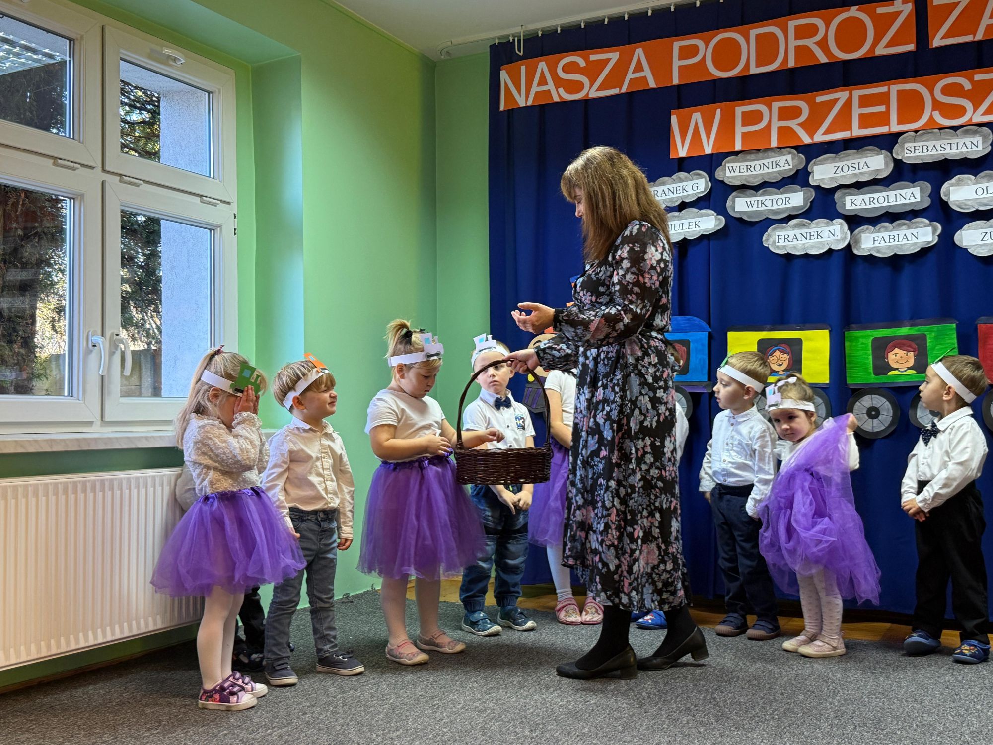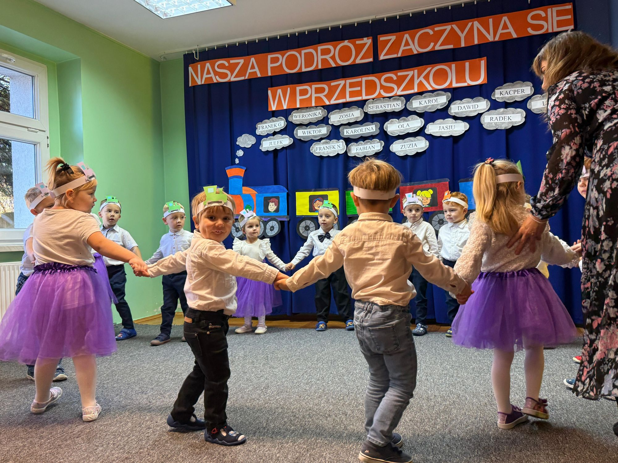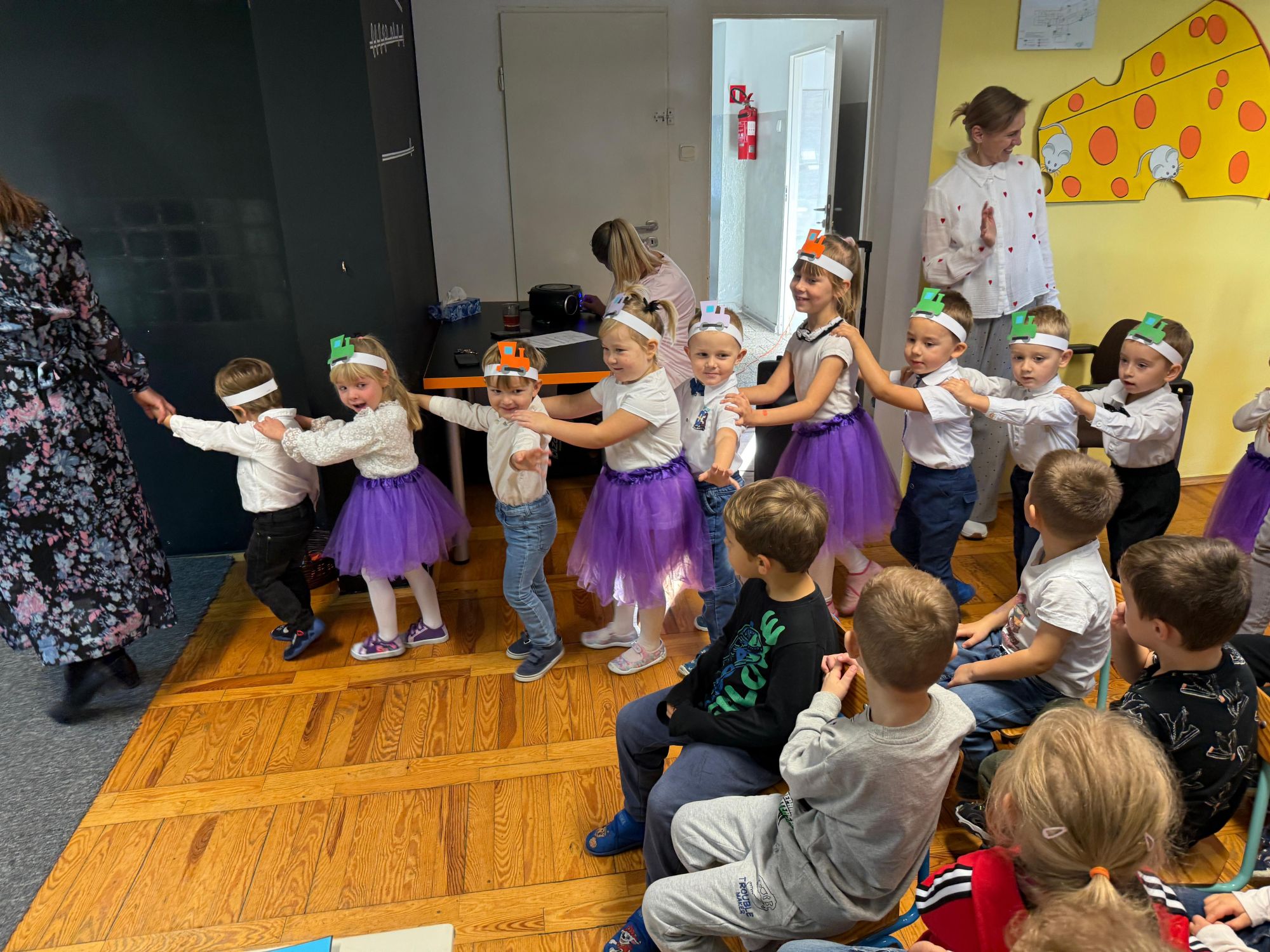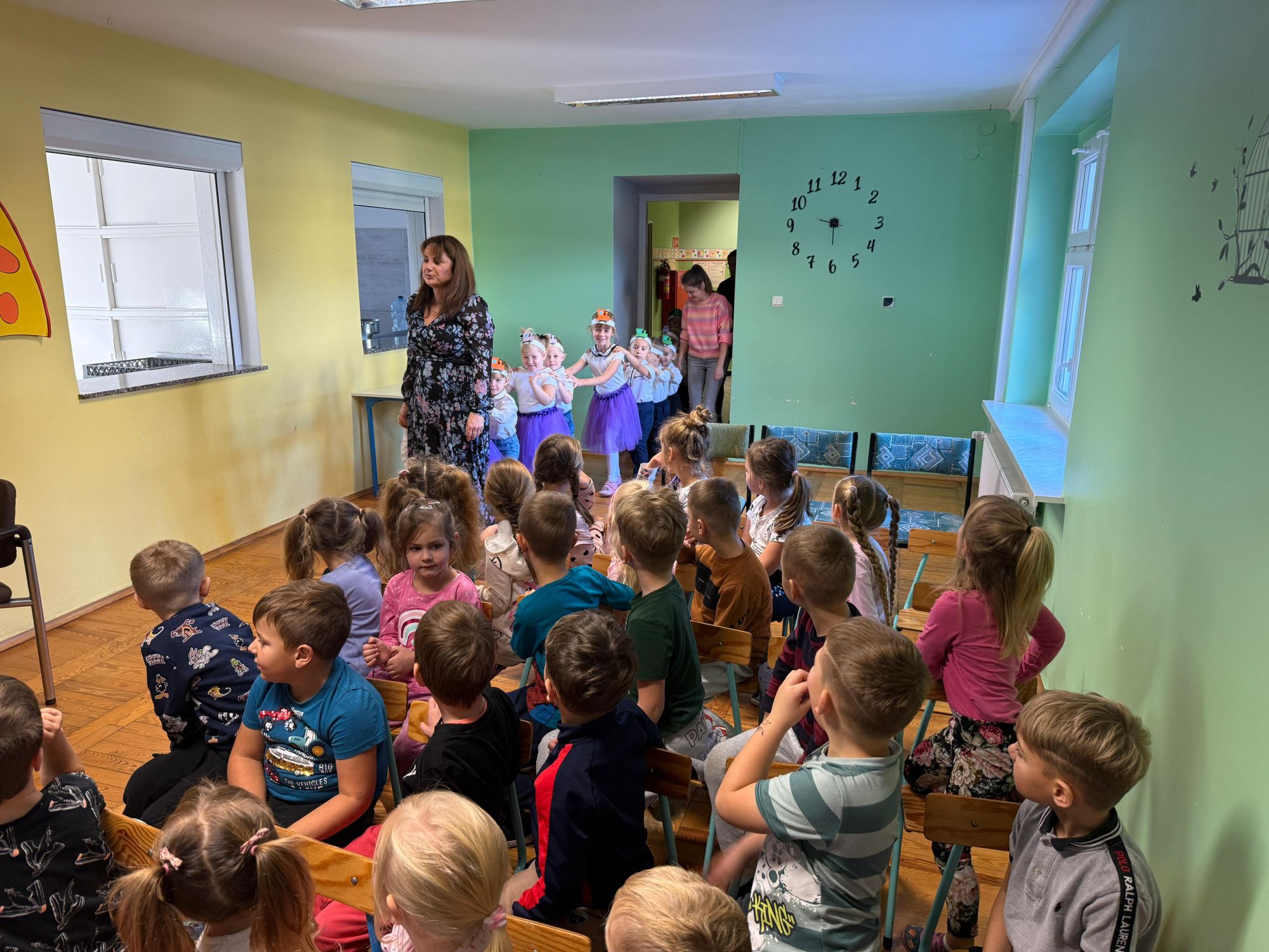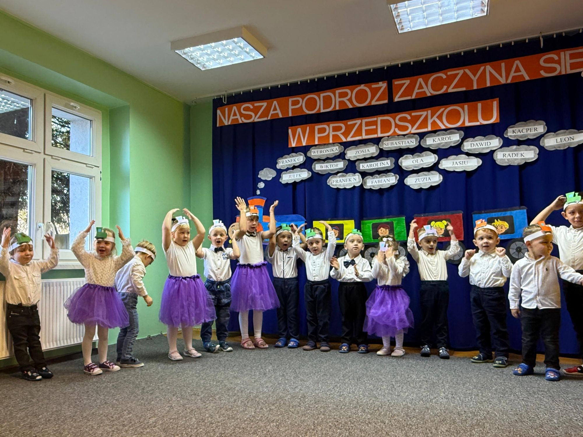 4 listopada w naszym przedszkolu odbyło się długo wyczekiwane wydarzenie - Pasowanie na Przedszkolaka. Od rana trwały przygotowania. Uroczystość rozpoczęły występy dzieci, które z uśmiechem i odwagą prezentowały swoje umiejętności. Zaśpiewały piosenki, recytowały wierszyki oraz zatańczyły wesoły taniec. Dla nich był to pierwszy ważny występ przed publicznością. Po części artystycznej zgodnie z tradycją pasowania dokonała pani dyrektor dotykając ramienia każdego przedszkolaka specjalnym ołówkiem. Każde dziecko na pamiątkę tego wydarzenia otrzymało dyplom, książkę oraz "kredkę niespodziankę". Nie zapomnieliśmy także o sesji zdjęciowej. Byl to dzień pełen emocji, wrażeń zarówno dla dzieci, jak i nauczycieli.