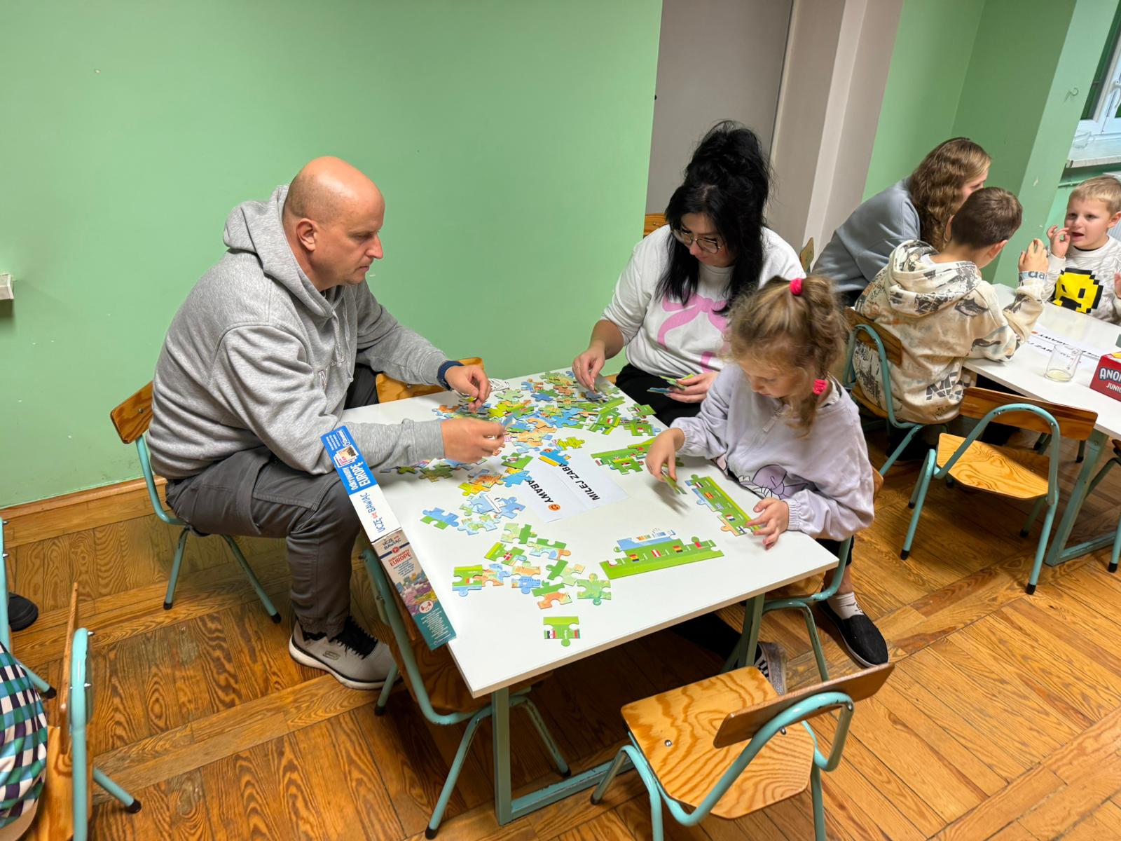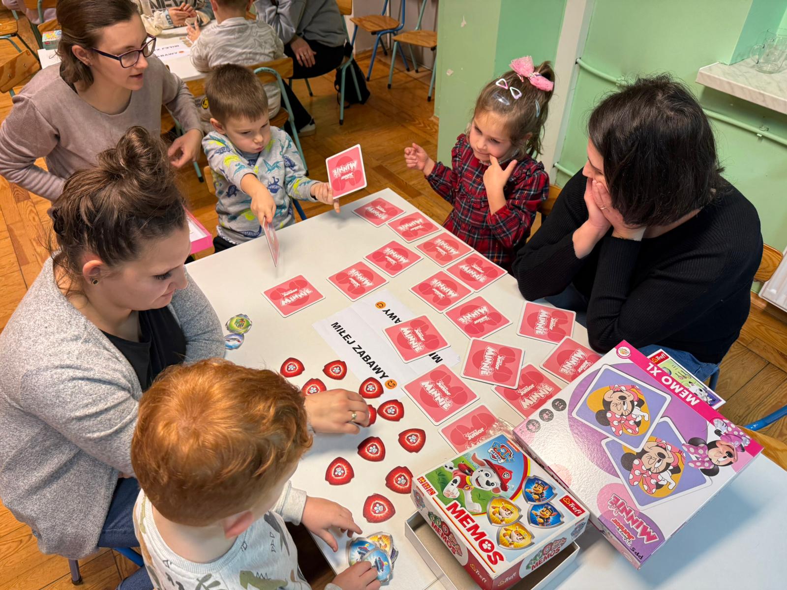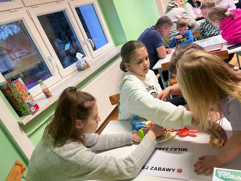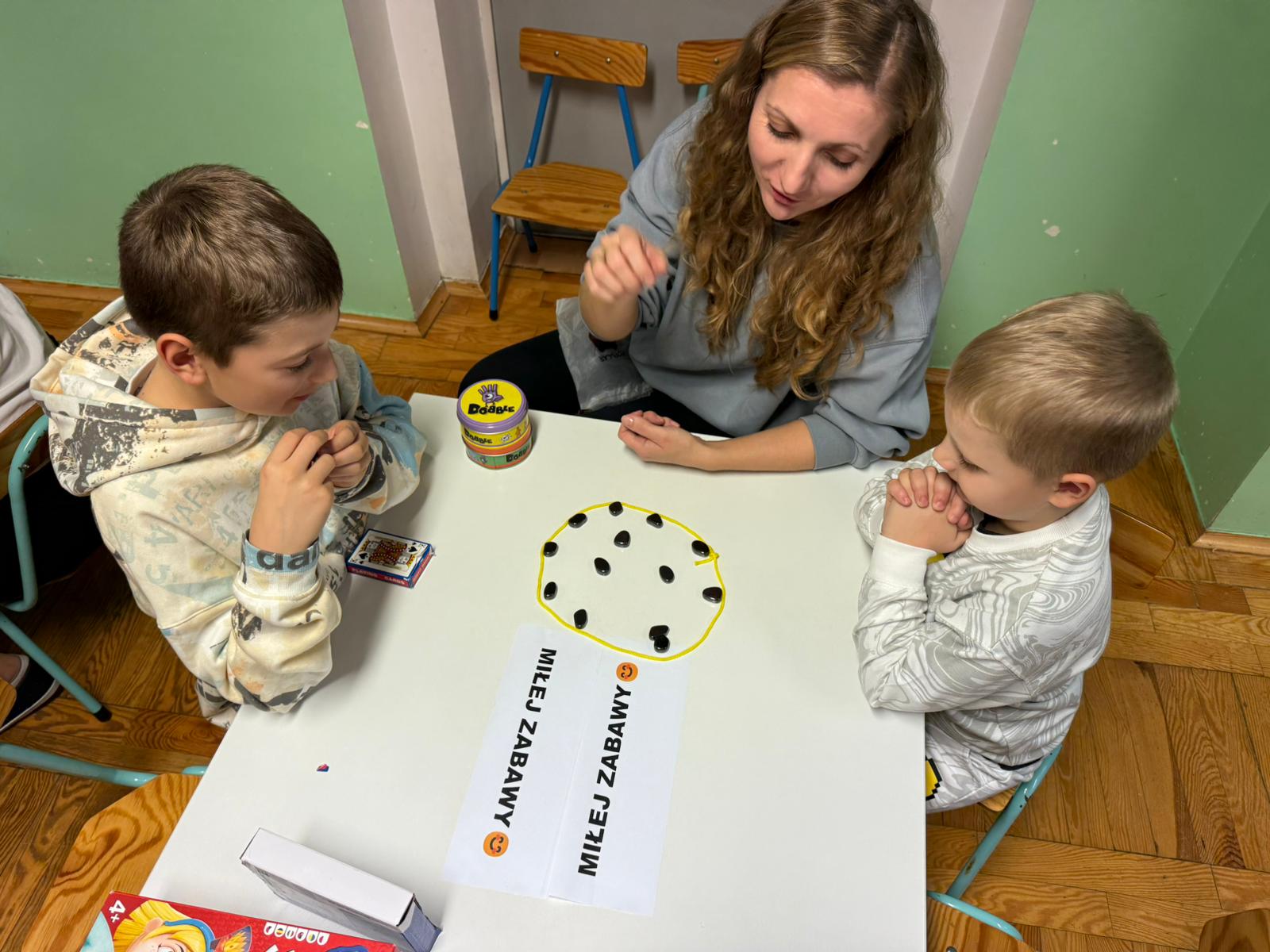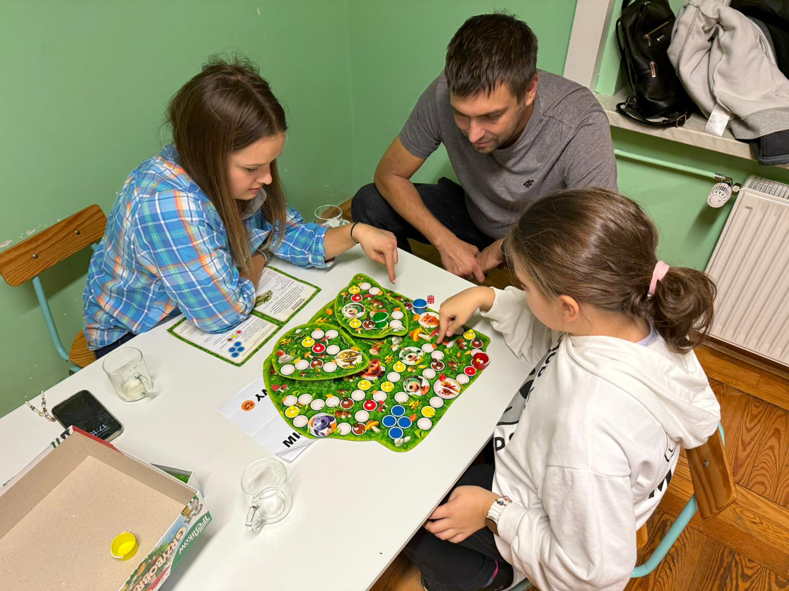 13 listopada w naszej Piąteczce odbył się Wieczór Gier Planszowych, który na długo pozostanie w naszej pamięci. Spotkanie zostało zorganizowane w ramach III zagadnienia Przedszkola Promującego Zdrowie, dotyczącego wspierania rozwoju emocjonalnego. Wydarzenie zgromadziło dzieci, rodziców oraz rodzeństwo tworząc atmosferę pełną radości, współpracy i rodzinnego ciepła. Uczestnicy przynieśli swoje ulubione gry z domu, a także korzystali z bogatego zestawu gier dostępnych w przedszkolu. Na stołach pojawiły się gry znane od lat, jak i takie, które rozwijają logiczne myślenie, spostrzegawczość oraz kreatywność. Gry planszowe to nie tylko świetny sposób na wspólne spędzanie czasu, lecz także ważny element wspierający rozwój emocjonalny dzieci. Podczas rozgrywek najmłodsi uczyli się radzenia sobie z emocjami – zarówno tymi trudniejszymi, pojawiającymi się przy porażce, jak i radosnymi, towarzyszącymi zwycięstwu. Ćwiczyli cierpliwość, czekanie na swoją kolej, przestrzeganie zasad, dzielenie się własnością, komunikację, współpracę oraz zdrową rywalizację. Wieczór był również okazją do integracji całej społeczności Piąteczki. Rodzice mieli chwilę na rozmowy i wymianę doświadczeń, a dzieci mogły cieszyć się obecnością kolegów i rodzeństwa w wyjątkowym, ciepłym klimacie. Dodatkowym umileniem były aromatyczna herbatka i orzeźwiająca lemoniada, które czekały na każdego uczestnika.