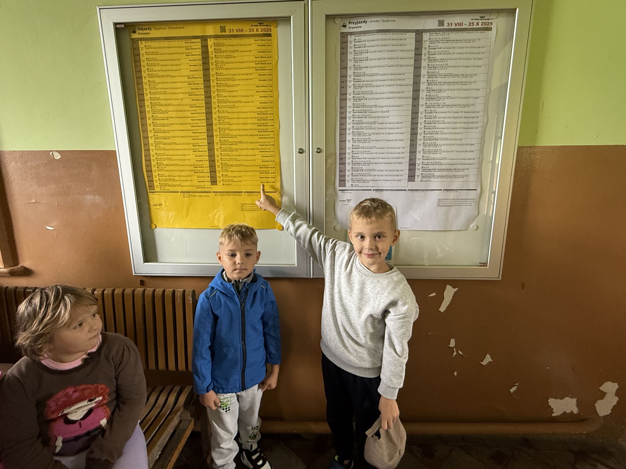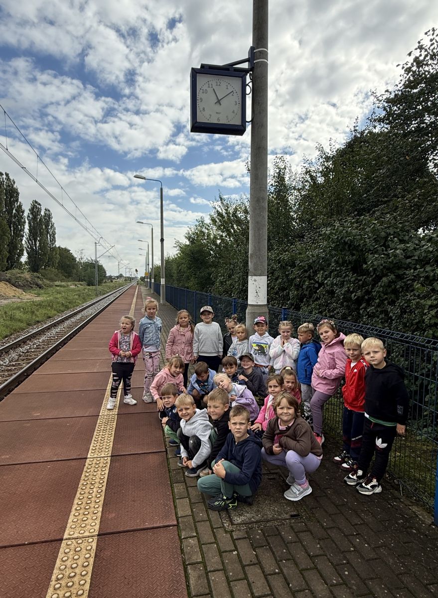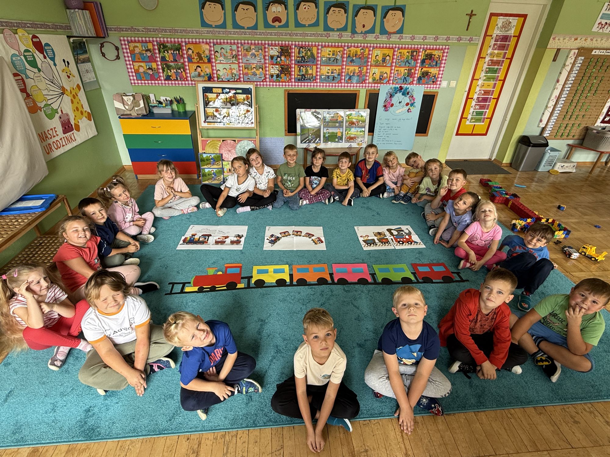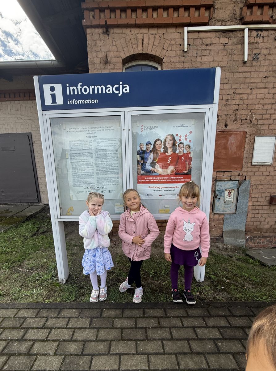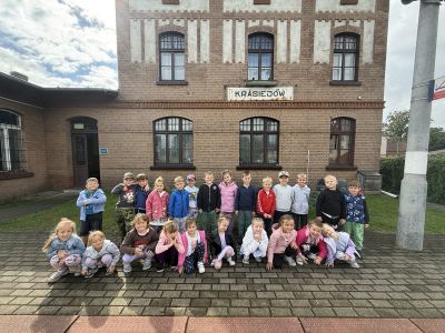 17 września na starszaków czekała kolejna wycieczka w ramach realizacji projektu ETM. Tym razem dzieci odwiedziły stację kolejową PKP w Krasiejowie. Było to niezwykle ciekawe doświadczenie, które pozwoliło dzieciom z bliska zobaczyć, jak wygląda i funkcjonuje miejsce, z którego wyruszają pociągi. Zanim jednak mali podróżnicy udali się na stację, w sali odbyły się zajęcia wprowadzające w tematykę podróży koleją. Dzieci rozwiązywały zagadki o pociągach, rozmawiały o tym, do czego służą i jakie mamy ich rodzaje – pasażerskie, towarowe, szybkie czy regionalne. Nie zabrakło również zabawy przy znanej piosence „Jedzie pociąg z daleka”, a także prac plastycznych czy układania puzzli z wizerunkiem pociągu. Wszystko to przygotowało przedszkolaków do spotkania z prawdziwym światem kolei. Na miejscu dzieci mogły podziwiać dworzec kolejowy, tory, peron i poczekalnię. Szczególną uwagę przyciągnął rozkład jazdy, który wydał się dla wielu bardzo interesujący – dzieci uczyły się, że to dzięki niemu podróżni wiedzą, o której godzinie odjeżdżają i przyjeżdżają pociągi. Przedszkolaki zobaczyły także, jak ważne jest zachowanie ostrożności i zasad bezpieczeństwa w pobliżu torów. Wycieczka była nie tylko pouczająca, ale i inspirująca. Dzieci mogły poczuć się jak prawdziwi podróżnicy, a niektórzy z nich już podczas wizyty marzyli o wyprawach pociągiem. Takie doświadczenia rozwijają wyobraźnię, wzbogacają wiedzę i uczą samodzielności. Podsumowując, wyprawa na stację kolejową w Krasiejowie okazała się wspaniałą lekcją w terenie. Przedszkolaki wróciły pełne wrażeń i nowych wiadomości.