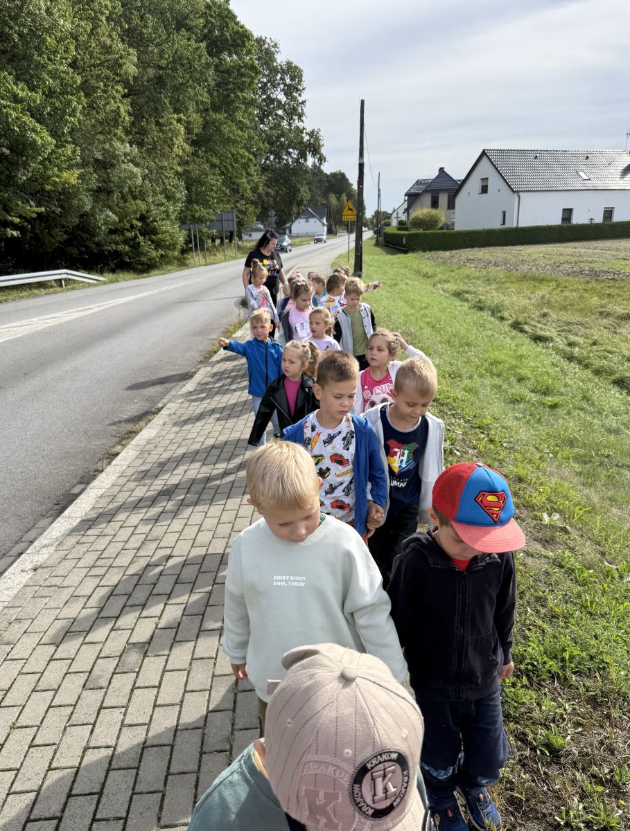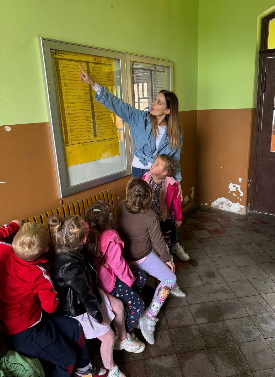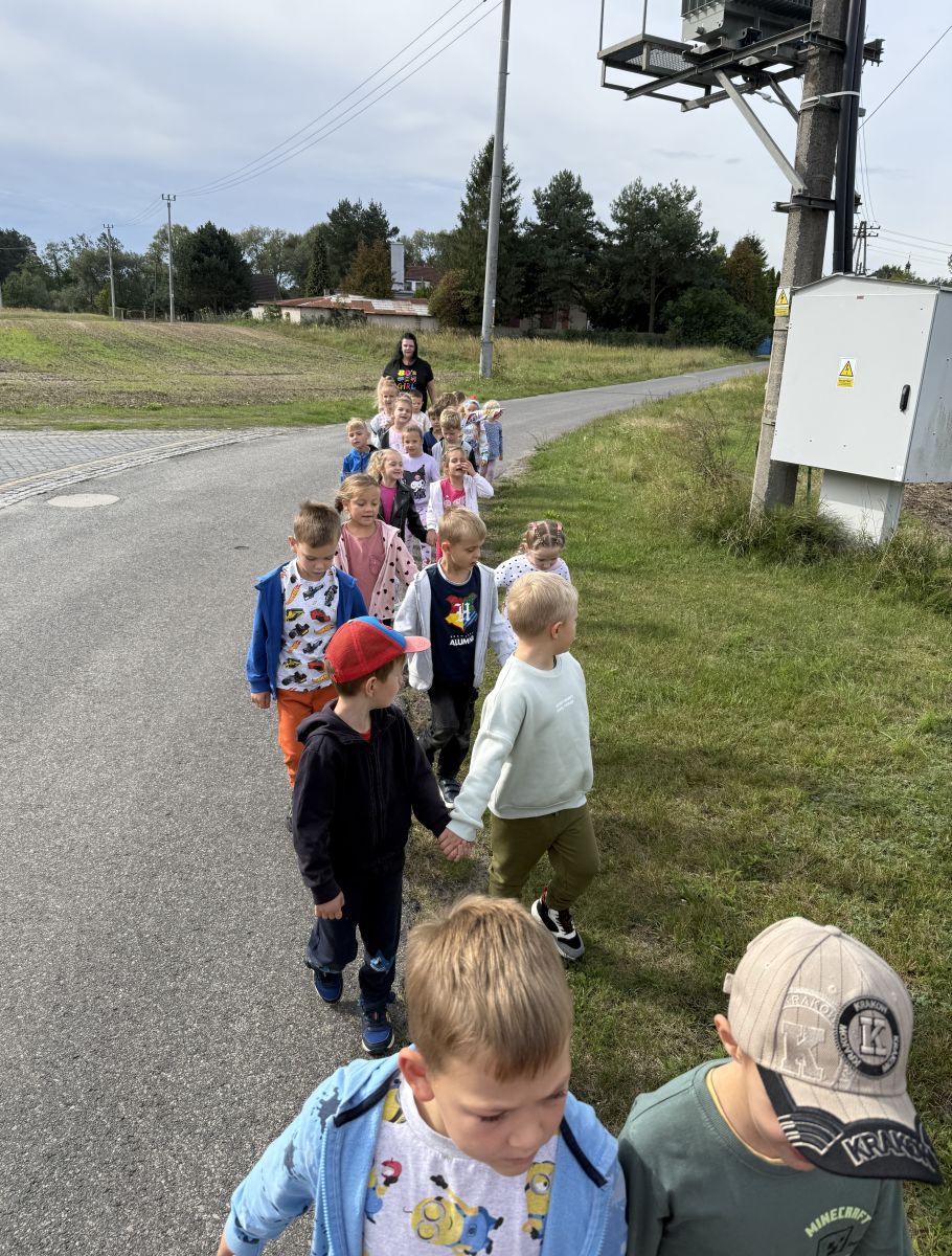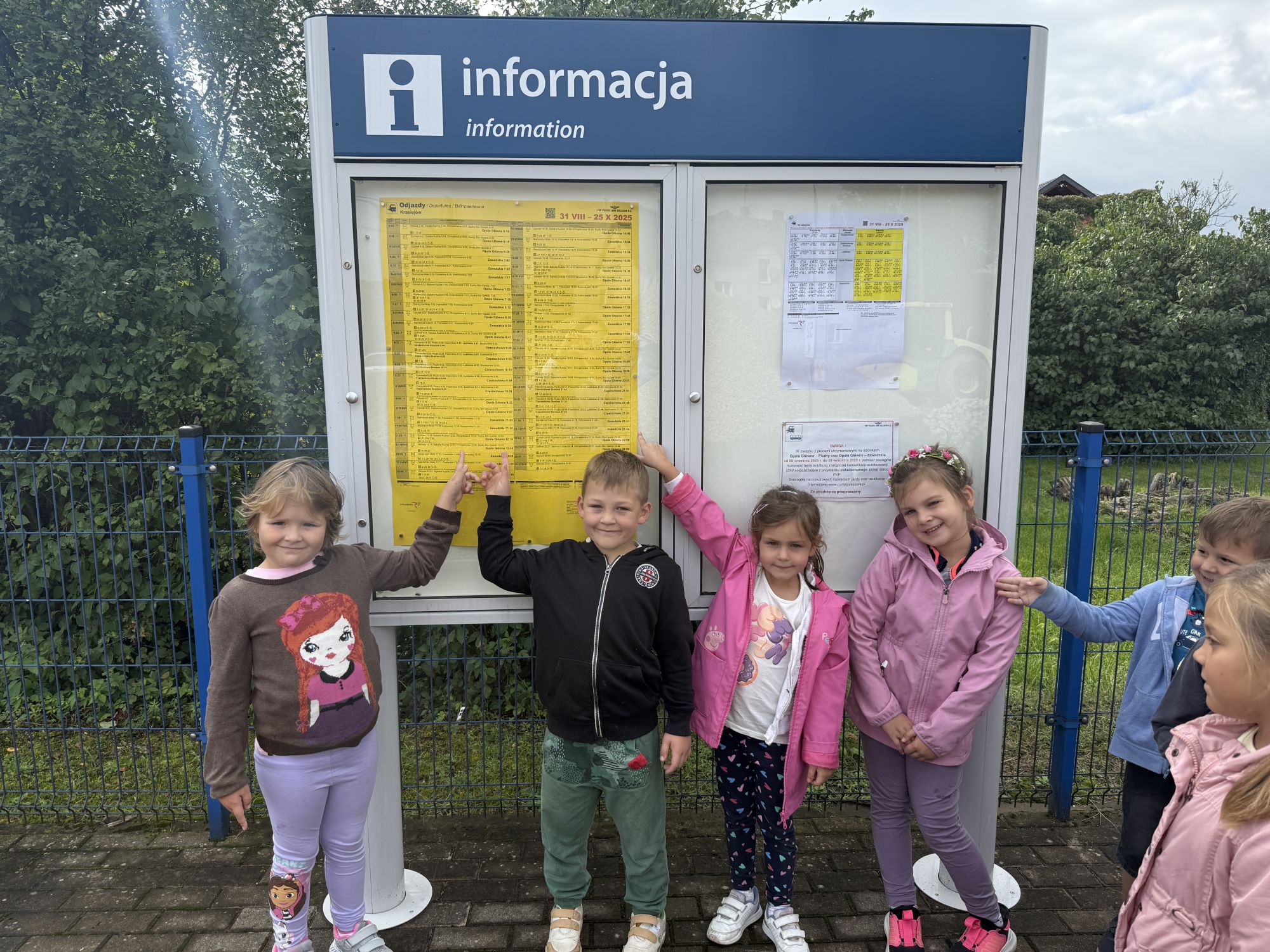 17 września na starszaków czekała kolejna wycieczka w ramach realizacji projektu ETM. Tym razem dzieci odwiedziły stację kolejową PKP w Krasiejowie. Było to niezwykle ciekawe doświadczenie, które pozwoliło dzieciom z bliska zobaczyć, jak wygląda i funkcjonuje miejsce, z którego wyruszają pociągi. Zanim jednak mali podróżnicy udali się na stację, w sali odbyły się zajęcia wprowadzające w tematykę podróży koleją. Dzieci rozwiązywały zagadki o pociągach, rozmawiały o tym, do czego służą i jakie mamy ich rodzaje – pasażerskie, towarowe, szybkie czy regionalne. Nie zabrakło również zabawy przy znanej piosence „Jedzie pociąg z daleka”, a także prac plastycznych czy układania puzzli z wizerunkiem pociągu. Wszystko to przygotowało przedszkolaków do spotkania z prawdziwym światem kolei. Na miejscu dzieci mogły podziwiać dworzec kolejowy, tory, peron i poczekalnię. Szczególną uwagę przyciągnął rozkład jazdy, który wydał się dla wielu bardzo interesujący – dzieci uczyły się, że to dzięki niemu podróżni wiedzą, o której godzinie odjeżdżają i przyjeżdżają pociągi. Przedszkolaki zobaczyły także, jak ważne jest zachowanie ostrożności i zasad bezpieczeństwa w pobliżu torów. Wycieczka była nie tylko pouczająca, ale i inspirująca. Dzieci mogły poczuć się jak prawdziwi podróżnicy, a niektórzy z nich już podczas wizyty marzyli o wyprawach pociągiem. Takie doświadczenia rozwijają wyobraźnię, wzbogacają wiedzę i uczą samodzielności. Podsumowując, wyprawa na stację kolejową w Krasiejowie okazała się wspaniałą lekcją w terenie. Przedszkolaki wróciły pełne wrażeń i nowych wiadomości.