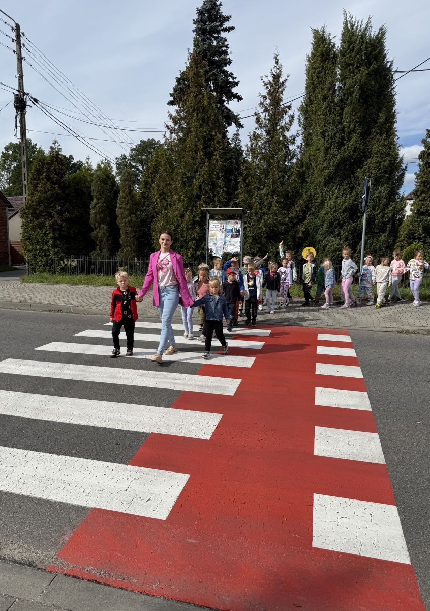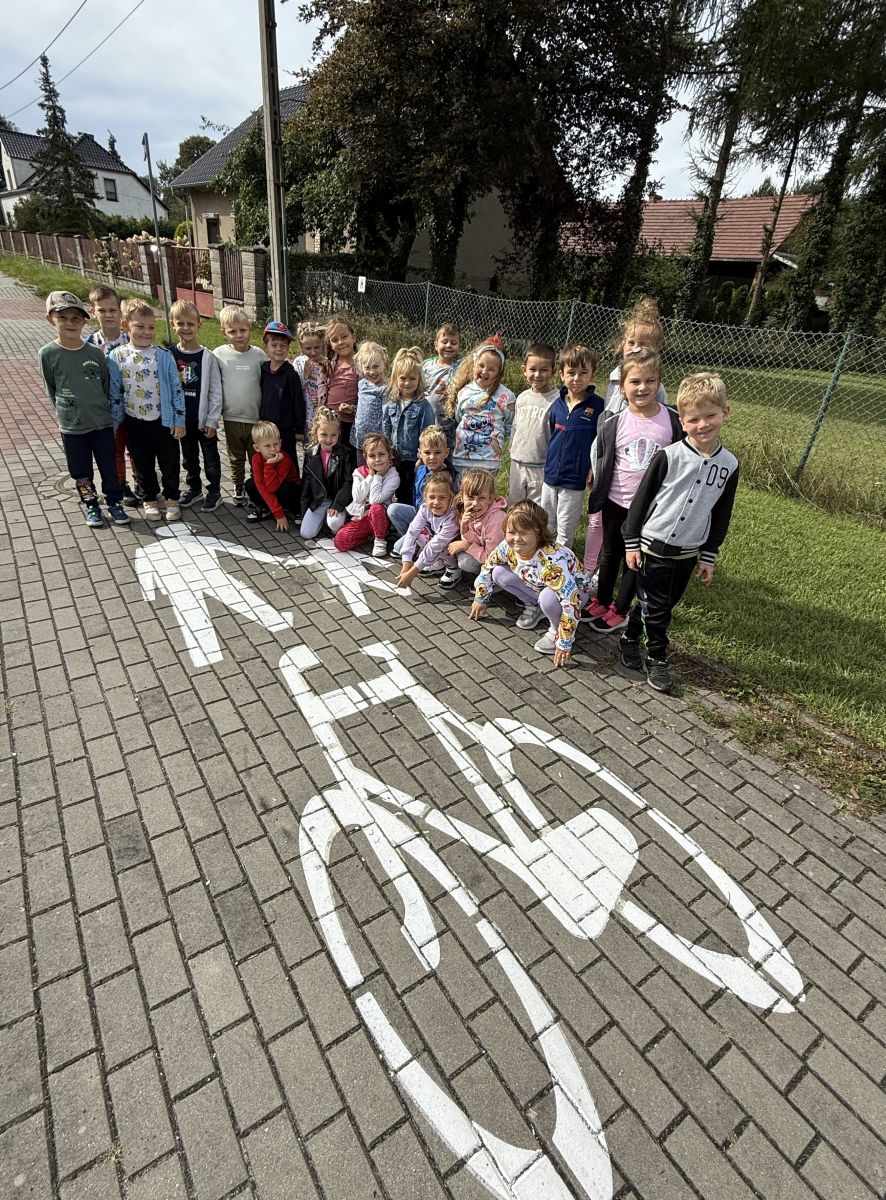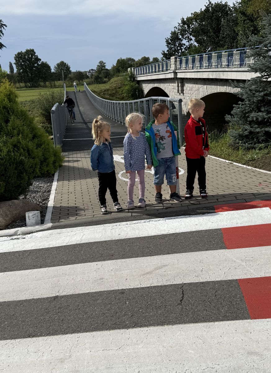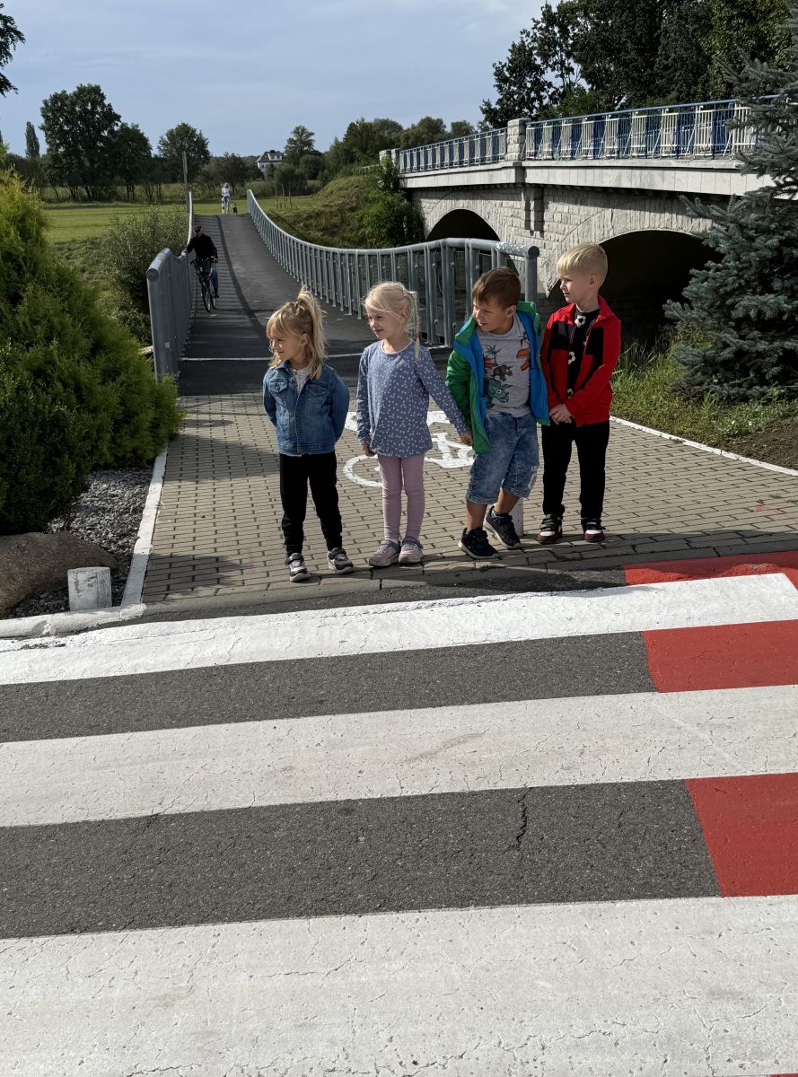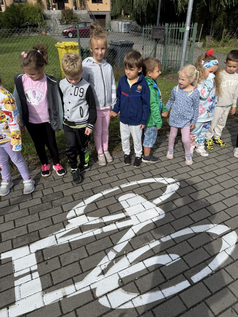W trzecim tygodniu września nasze przedszkole włączyło się w realizację projektu Europejski Tydzień Mobilności. Starszaki realizowały temat o bezpieczeństwie na drodze. Podczas zajęć, rozmów, zabaw ruchowych i innych sytuacji edukacyjnych poznawały zasady ruchu drogowego, utrwalały zasady bezpiecznego i właściwego poruszania się pieszych po ulicy i chodniku. Oglądały prezentacje multimedialne oraz filmy edukacyjne, dzięki którym dowiedziały się jakie zagrożenia wynikają z niewłaściwego zachowania się na ulicy. 16 września wszytkie przedszkolaki uczestniczyły w spotkaniu z policjantką. Tego samego dnia w celu utrwalenia wiedzy udały się na spacer na najbliższe skrzyżowanie oraz rondo. Podczas wycieczki rozglądały się uważnie, szukały poznanych na zajęciach znaków, obserwowały zachowanie pieszych i pojazdów. Ćwiczyły sprawne i bezbłędne przechodzenie na drugą stronę ulicy przez przejście dla pieszych czyli tzw. "zebrę".