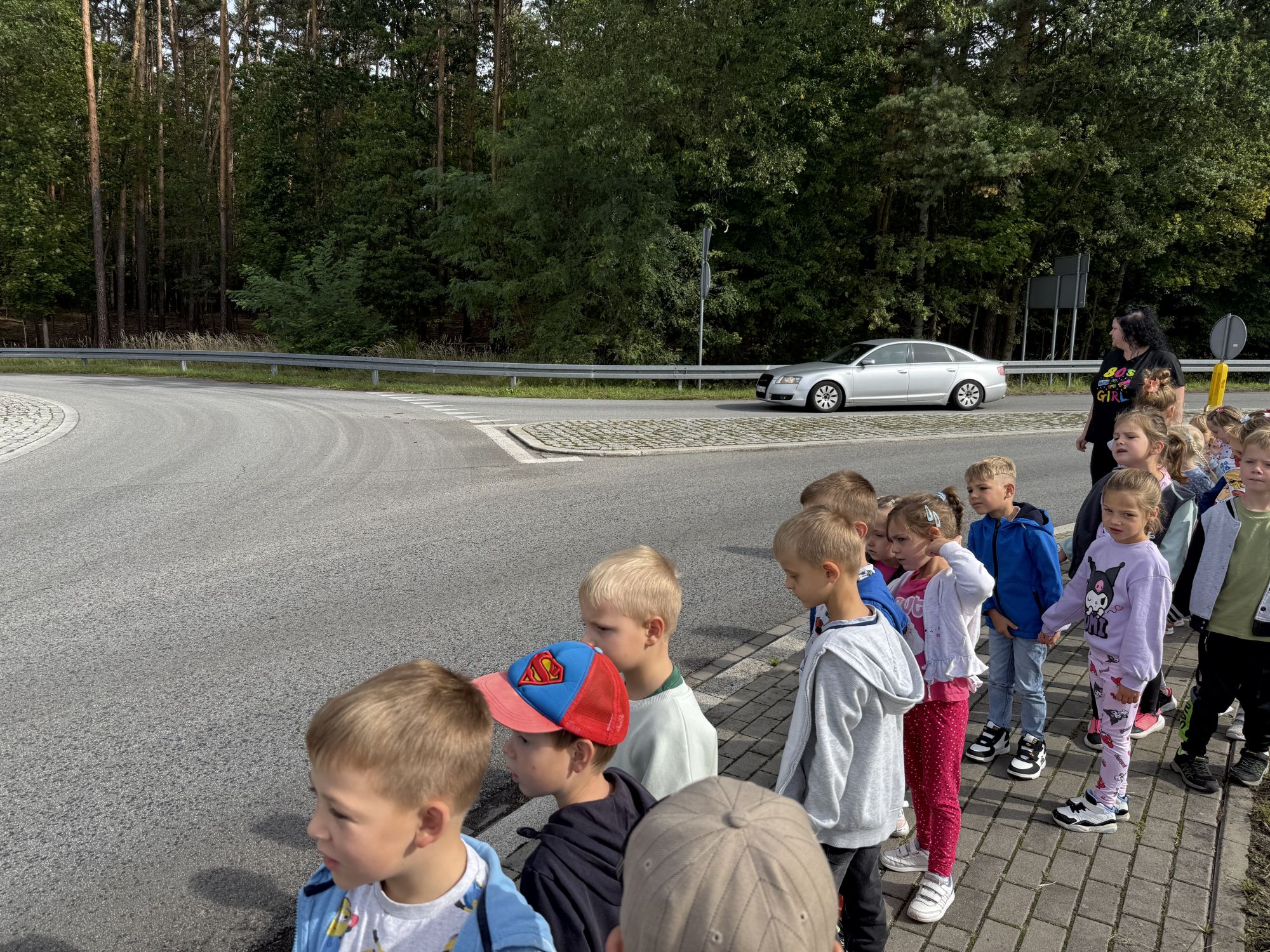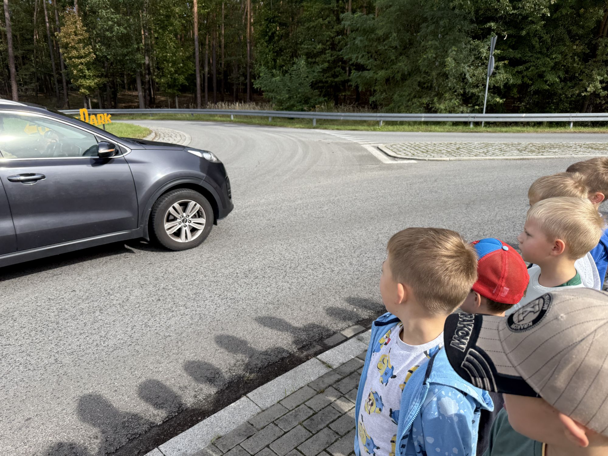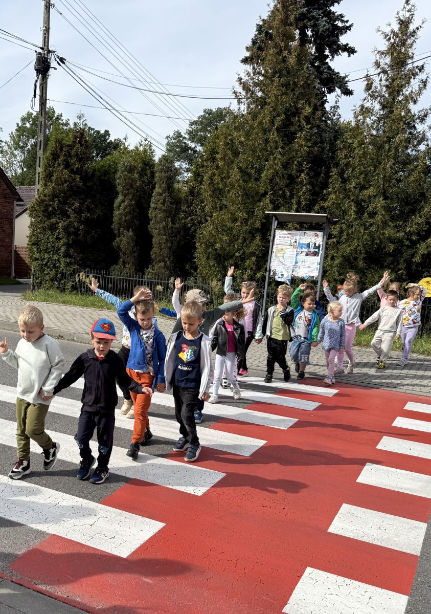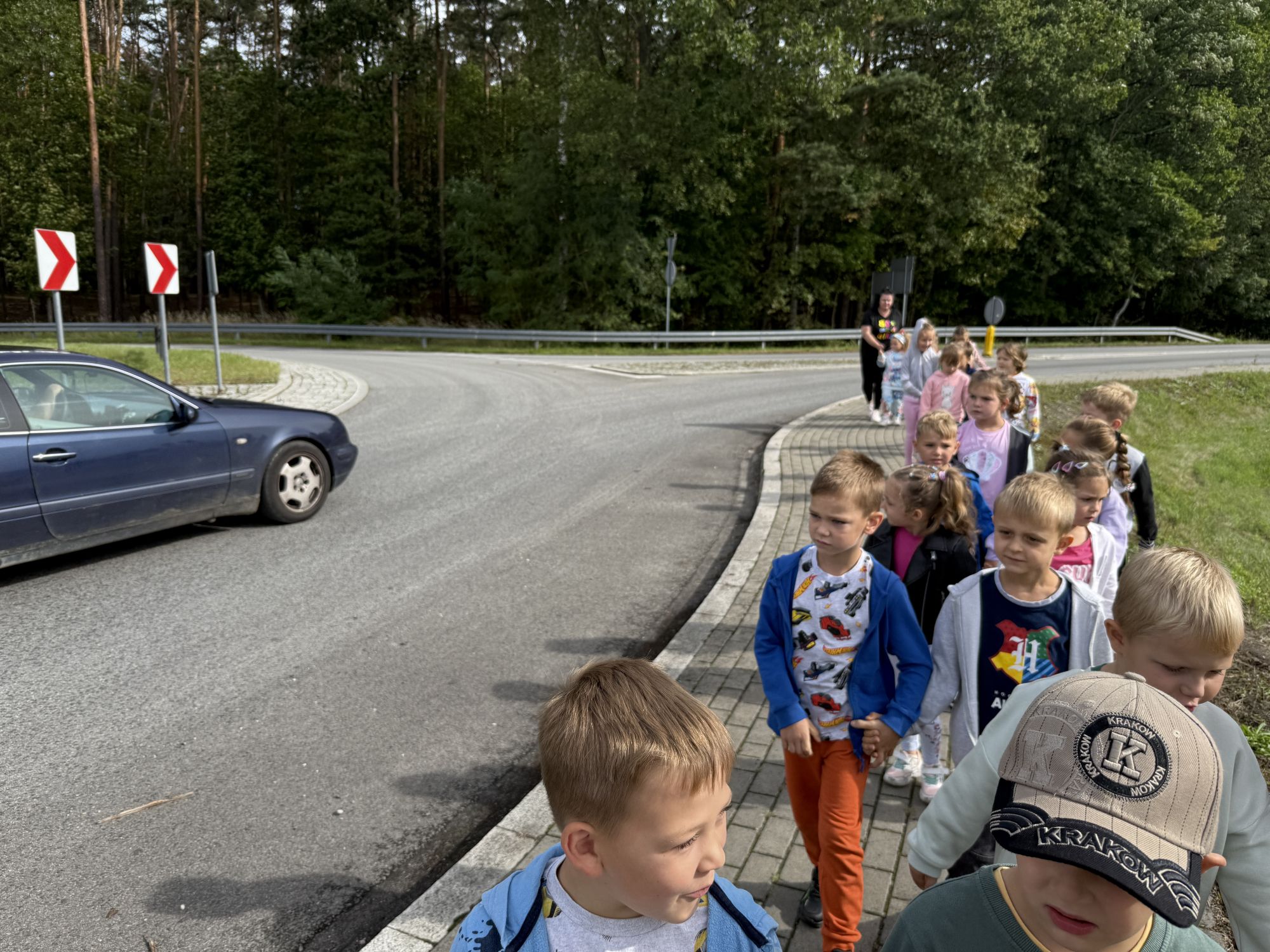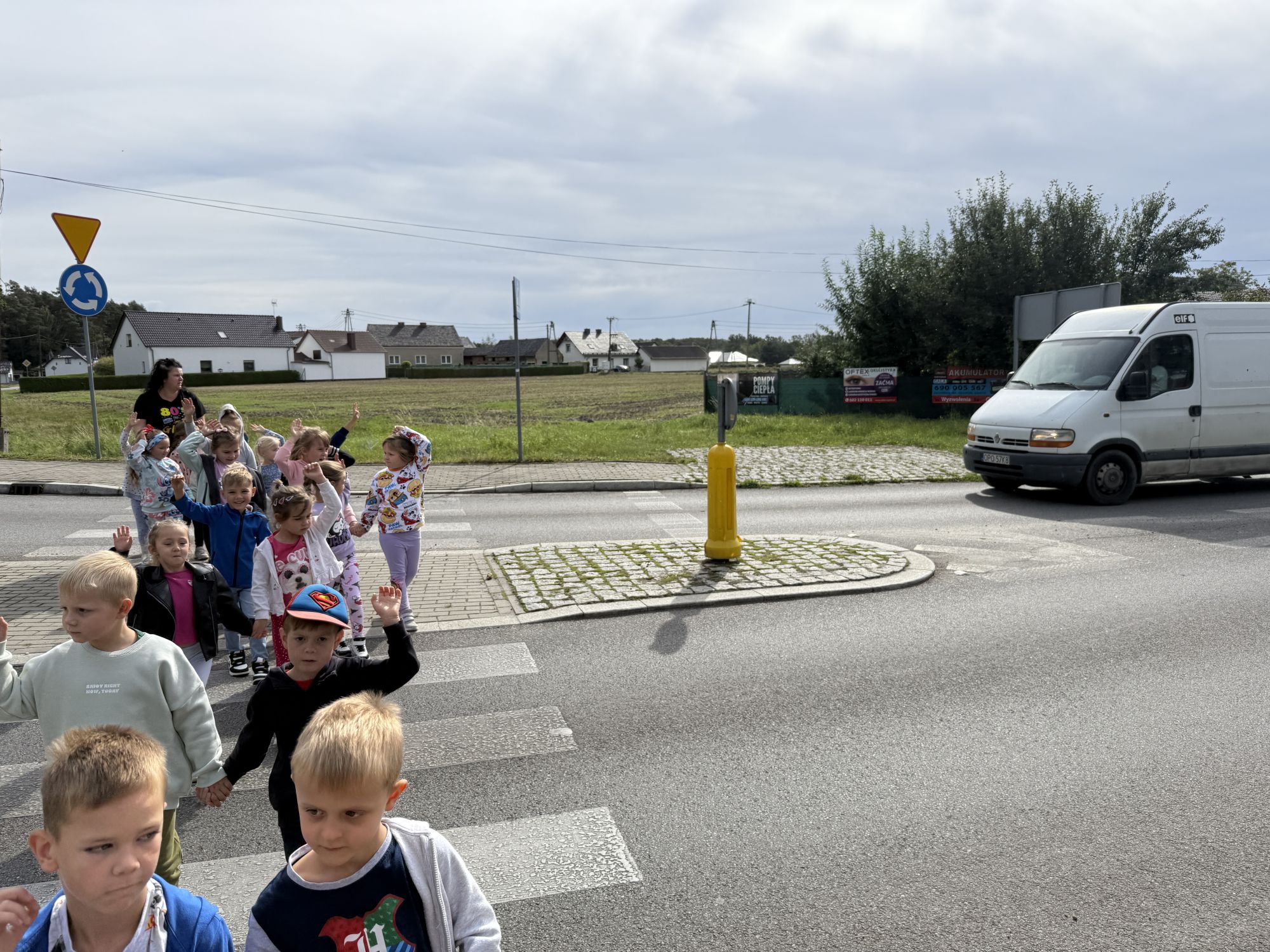 W trzecim tygodniu września nasze przedszkole włączyło się w realizację projektu Europejski Tydzień Mobilności. Starszaki realizowały temat o bezpieczeństwie na drodze. Podczas zajęć, rozmów, zabaw ruchowych i innych sytuacji edukacyjnych poznawały zasady ruchu drogowego, utrwalały zasady bezpiecznego i właściwego poruszania się pieszych po ulicy i chodniku. Oglądały prezentacje multimedialne oraz filmy edukacyjne, dzięki którym dowiedziały się jakie zagrożenia wynikają z niewłaściwego zachowania się na ulicy. 16 września wszytkie przedszkolaki uczestniczyły w spotkaniu z policjantką. Tego samego dnia w celu utrwalenia wiedzy udały się na spacer na najbliższe skrzyżowanie oraz rondo. Podczas wycieczki rozglądały się uważnie, szukały poznanych na zajęciach znaków, obserwowały zachowanie pieszych i pojazdów. Ćwiczyły sprawne i bezbłędne przechodzenie na drugą stronę ulicy przez przejście dla pieszych czyli tzw. "zebrę".