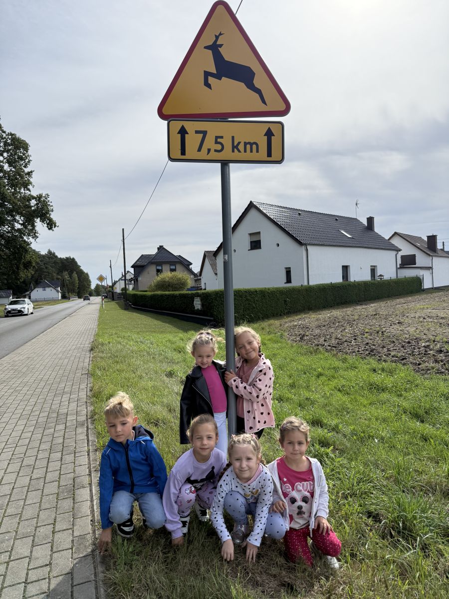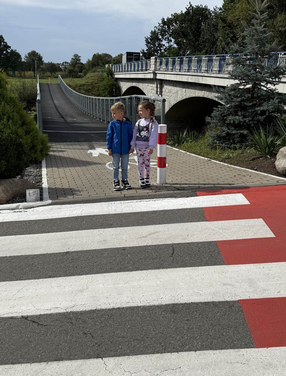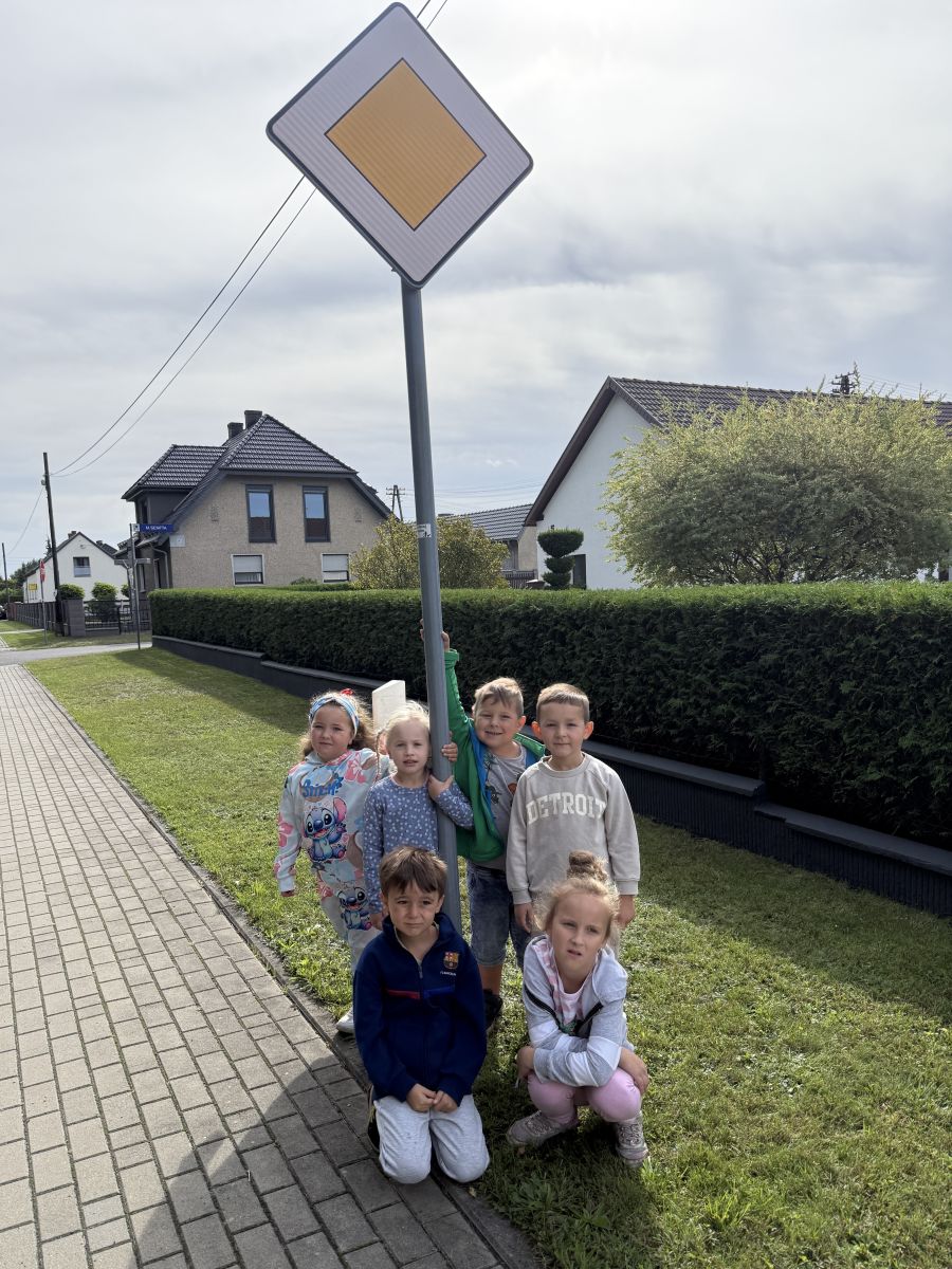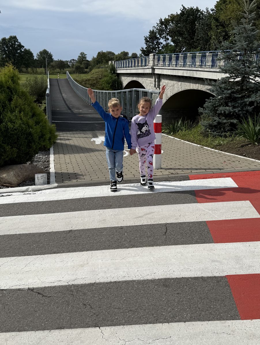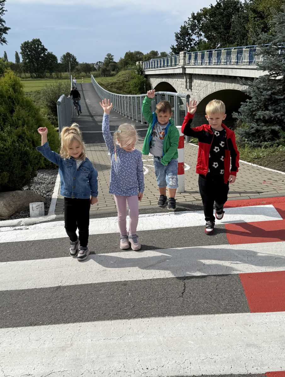 W trzecim tygodniu września nasze przedszkole włączyło się w realizację projektu Europejski Tydzień Mobilności. Starszaki realizowały temat o bezpieczeństwie na drodze. Podczas zajęć, rozmów, zabaw ruchowych i innych sytuacji edukacyjnych poznawały zasady ruchu drogowego, utrwalały zasady bezpiecznego i właściwego poruszania się pieszych po ulicy i chodniku. Oglądały prezentacje multimedialne oraz filmy edukacyjne, dzięki którym dowiedziały się jakie zagrożenia wynikają z niewłaściwego zachowania się na ulicy. 16 września wszytkie przedszkolaki uczestniczyły w spotkaniu z policjantką. Tego samego dnia w celu utrwalenia wiedzy udały się na spacer na najbliższe skrzyżowanie oraz rondo. Podczas wycieczki rozglądały się uważnie, szukały poznanych na zajęciach znaków, obserwowały zachowanie pieszych i pojazdów. Ćwiczyły sprawne i bezbłędne przechodzenie na drugą stronę ulicy przez przejście dla pieszych czyli tzw. "zebrę".