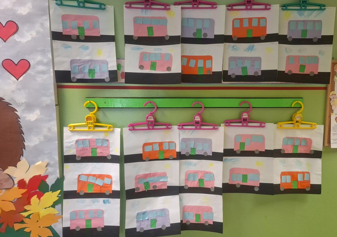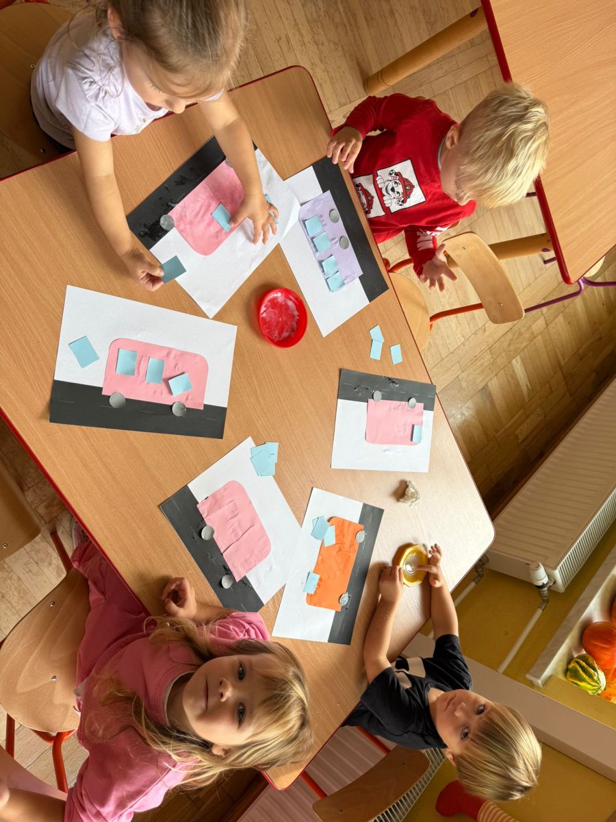 W ramach projektu rozmawiano z dziećmi również o podróżach autobusem, autokarem i rowerem. Dzieci dojeżdzające takimi środkami transportu do przedszkola chętnie dzieliły się z rówieśnikami wrażeniami oraz doświadczeniem. Maluszki zachęcajac do podróży autokarem wykonały pracę plastyczną - kolorowy autobus.