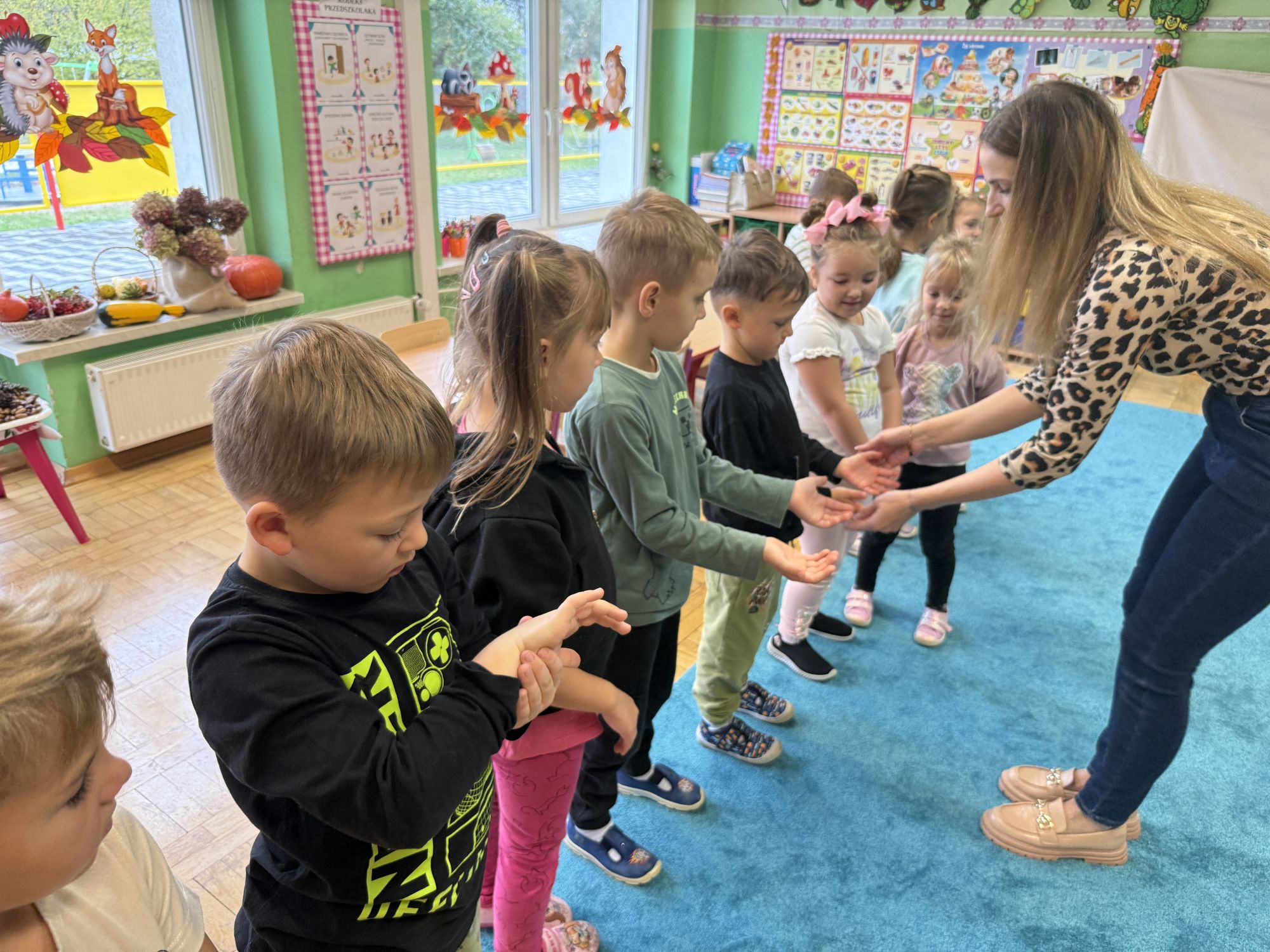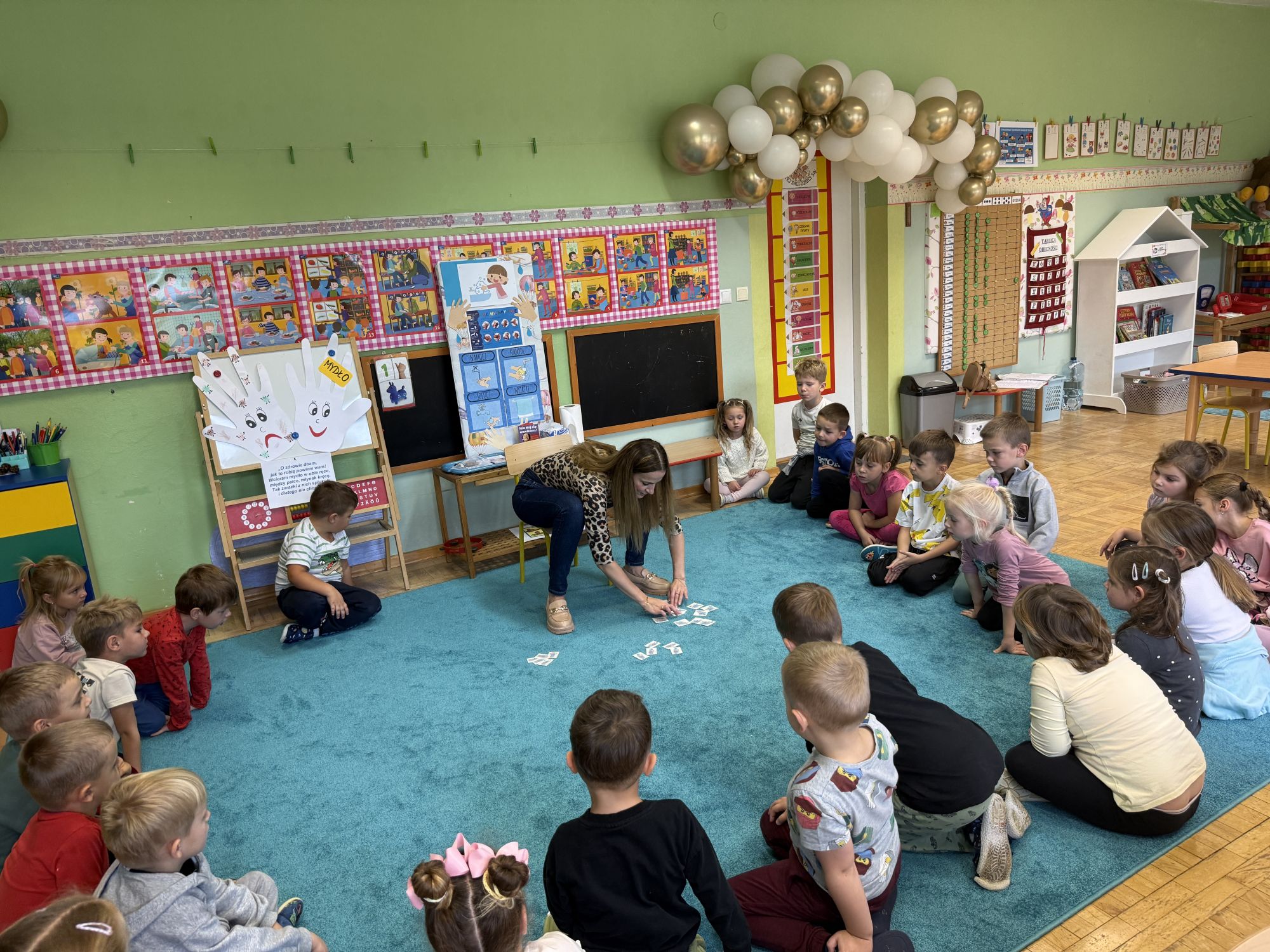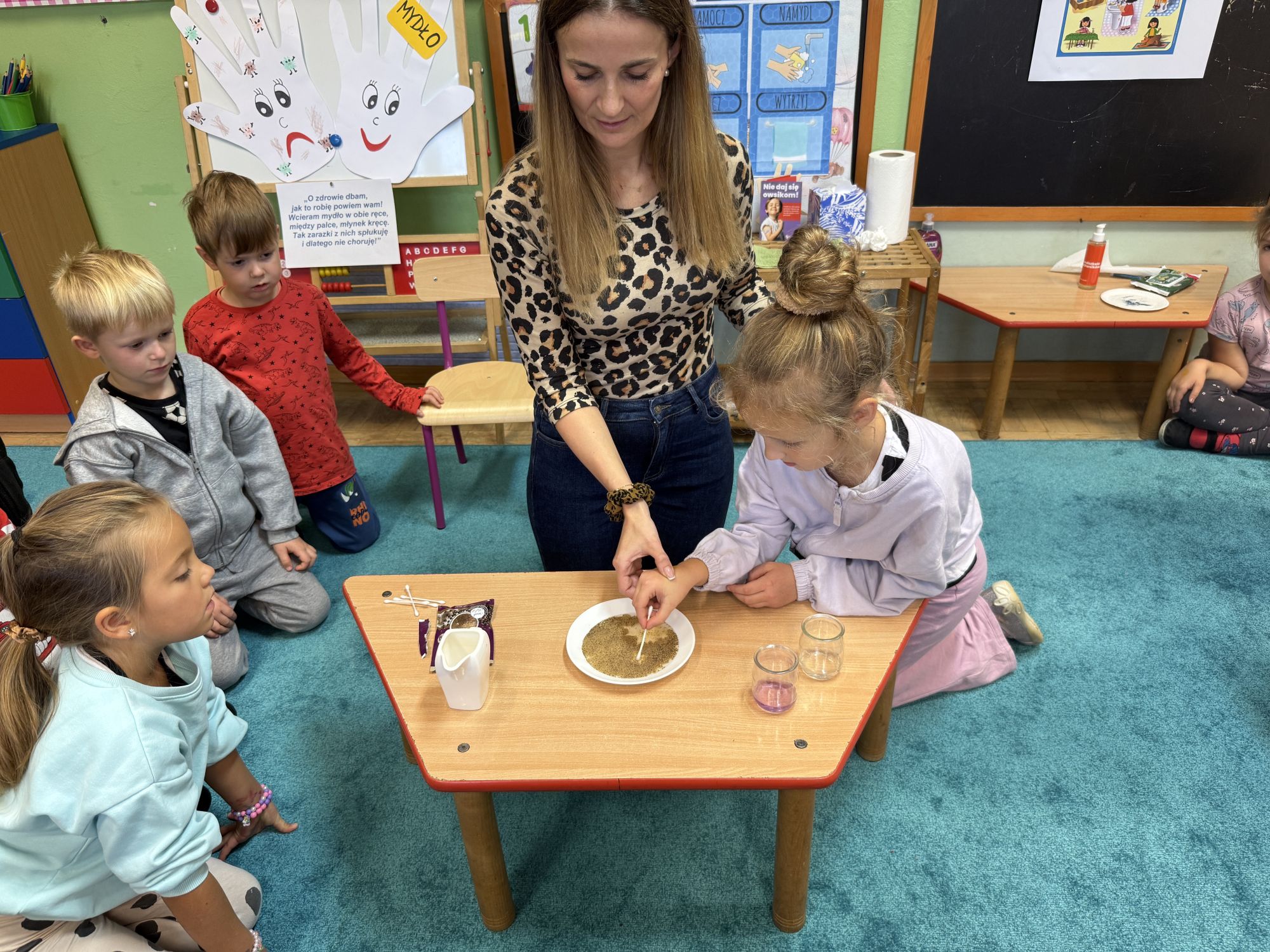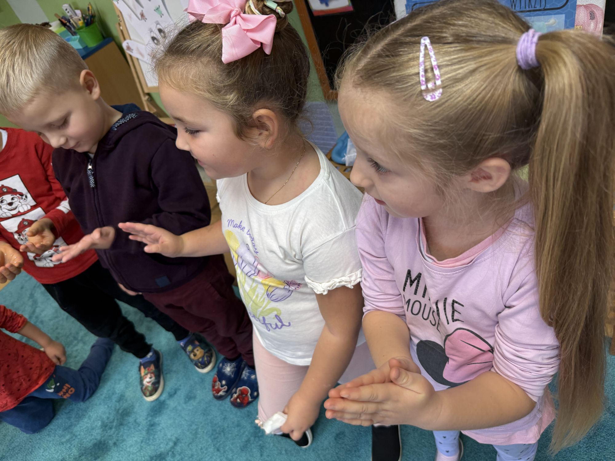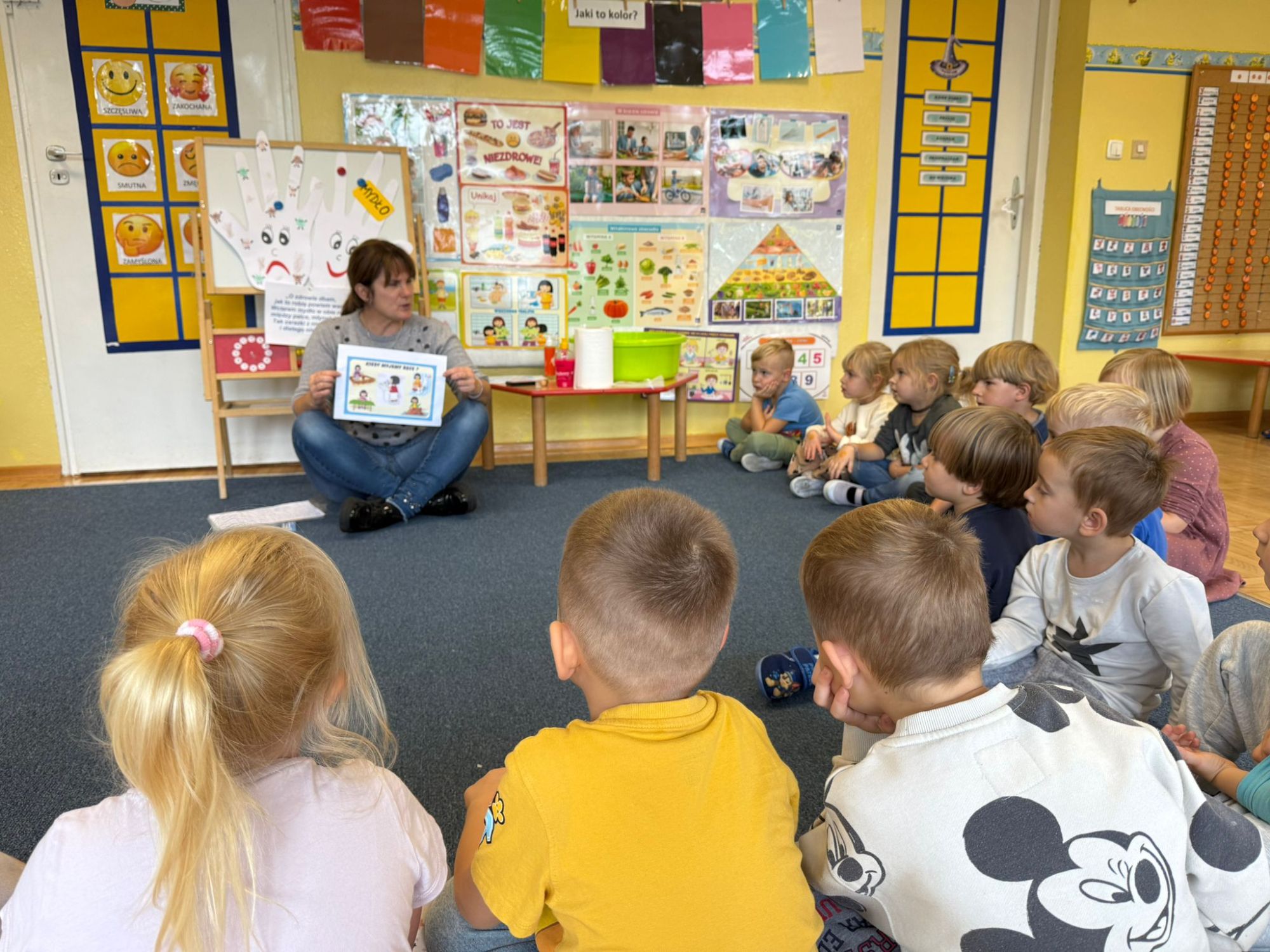 Nasze Przedszkole kolejny raz zrealizowało program Przedszkole Bez Owsików, który stał się integralną cześcia obchodzonego 15 października, Światowego Dnia Mycia Rąk. Celem programu jest kształtowanie odpowiednich nawyków w zakresie dbania o czystość rąk wśród dzieci. Przedszkolaki wzięły udział w zajęciach edukacyjnych, które w ciekawy i zrozumiały sposób pokazały, jak ważne jest dbanie o czyste ręce w kontekście naszego zdrowia. Wychowankowie na samym początku odpowiadały na pytanie: do jakich czynności służą nam ręce? Obejrzały prezentację multimedialną, ukazującą proces zarażania się owsikami oraz zasady, których należy przestrzegać, aby owsiki się nie rozpowszechniały. Następnie utrwaliły technikę prawidłowego mycia rąk poprzez udział w zabawie, miały zadanie zmycia różnymi sposobami brokatu z dłoni. Po wielu próbach okazało się, że najlepszym, rozwiązaniem pozbycia się brokatu jest umycie rąk mydłem. Kolejnym eksperymentem było doświadczenie z pieprzem i mydłem. To prosta demonstracja pokazująca, jak mydło działa w walce z zarazkami, wizualizując efekt jego działania poprzez "uciekanie" pieprzu na brzegi miski. Doświadczenie pokazuje, jak mydło pomaga pozbyć się brudu i bakterii. Na zakończenie zajęć, przedszkolaki, pokolorowały obrazki.