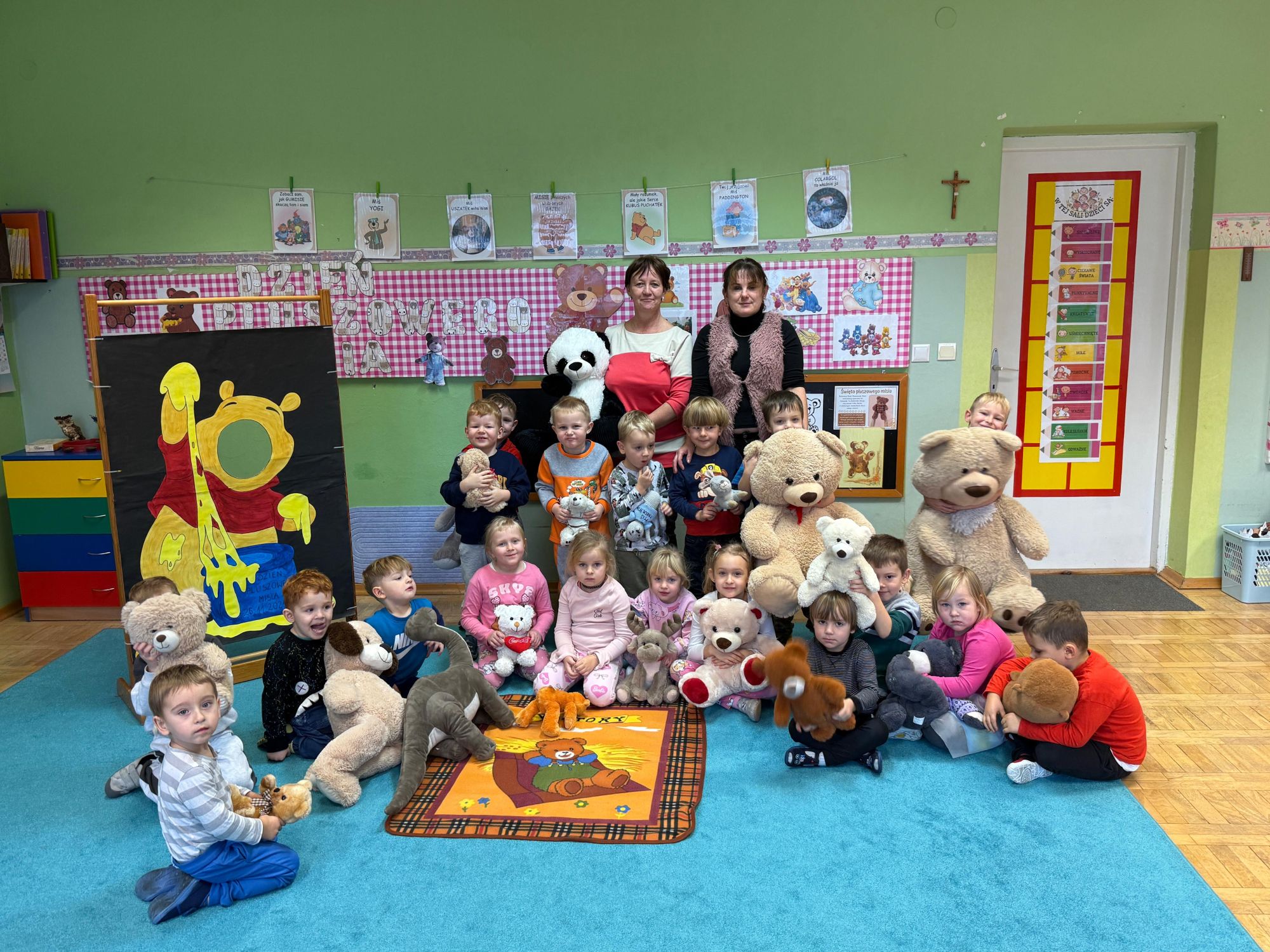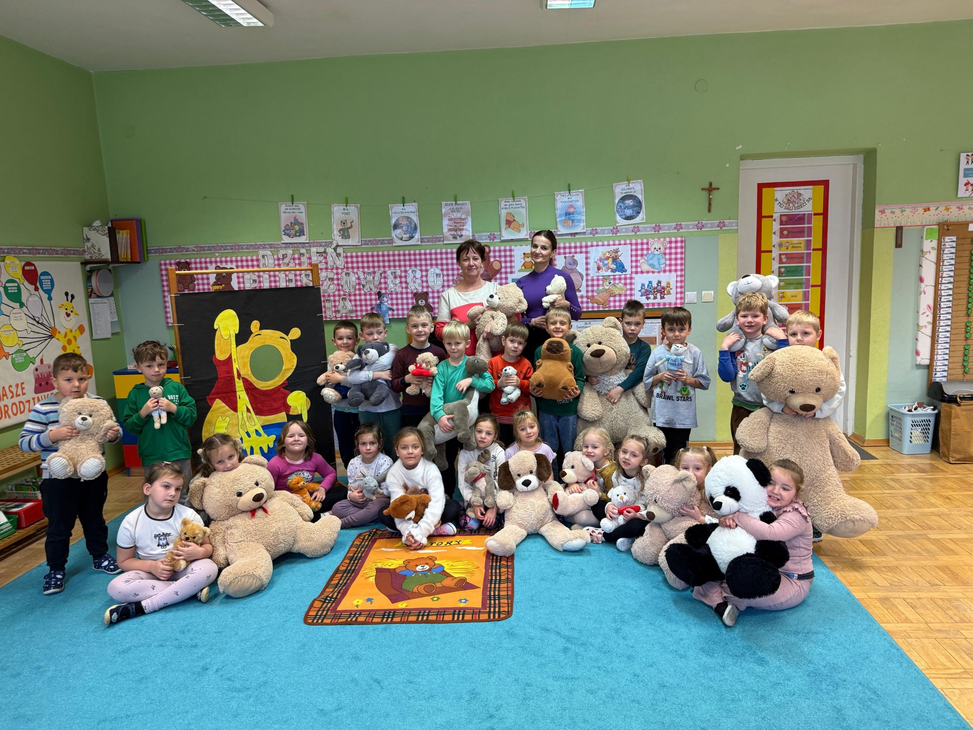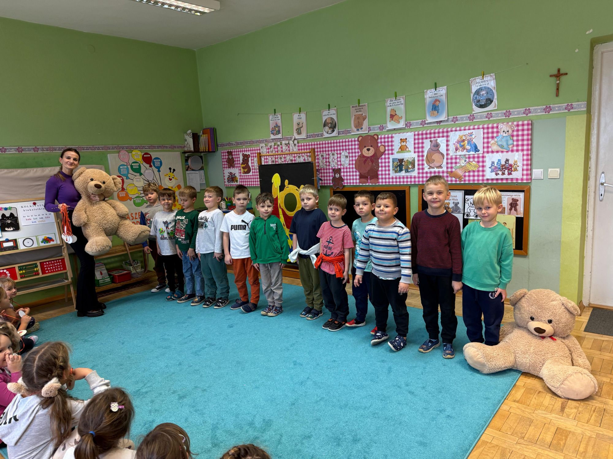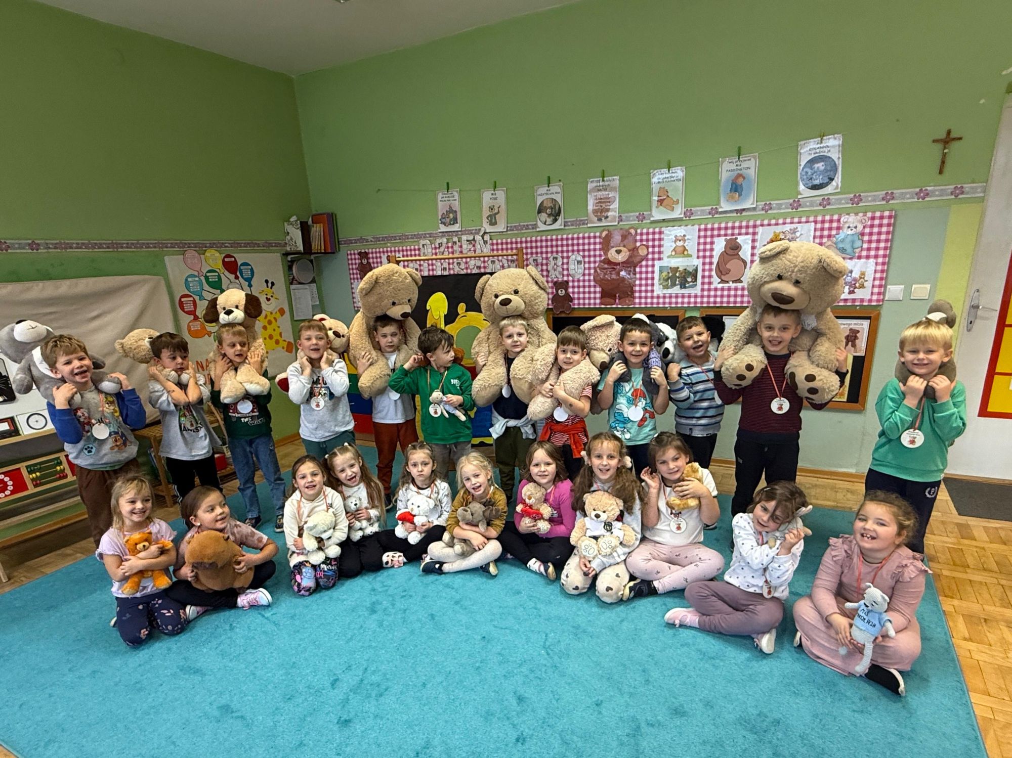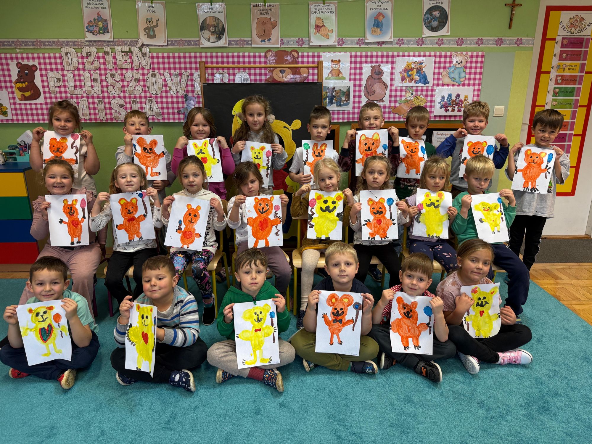 Pluszowy miś to najlepszy przyjaciel każdego dziecka, ukochana maskotka na dobre i złe chwile. Można go przytulić, a nawet powiedzieć mu o czymś bardzo ważnym. 25 listopada dzieci z naszego przedszkola uczestniczyły w obchodach „Światowego Dnia Pluszowego Misia”. Każde dziecko przyszło do przedszkola ze swoim „milutkim przyjacielem”. W tym wesołym dniu zawitała w Piąteczce Pani Aldona Kuśmierska, bibliotekarka z krasiejowskiej filii Miejskiej i Gminnej Biblioteki. Zaprosiła wszystkie dzieci do wspólnej zabawy. Wychowankowie poznali historię święta, brali udział w quizach, zagadkach. Wysłuchali bajki o Misiu Uszatku. Dowiedzieli się także ciekawych informacji o prawdziwych niedźwiedziach, jak wyglądają, co jedzą i gdzie żyją. Oglądali również ilustracje w książkach 3D. Nie zabrakło wspólnych zabaw ruchowych przy piosenkach o naszych milusińskich. Przedszkolaki wykonały piękne prace plastyczne, malowały swojego ulubionego pluszowego misia farbami oraz pastelami. Ten dzień przebiegał w bardzo miłej atmosferze, sprawił wiele radości i dostarczył niezapomnianych wrażeń. Na zakończenie wykonalismy sesję zdjęciową i wszystkie dzieci otrzymały pamiątkowe medale “Przyjaciela misia”.