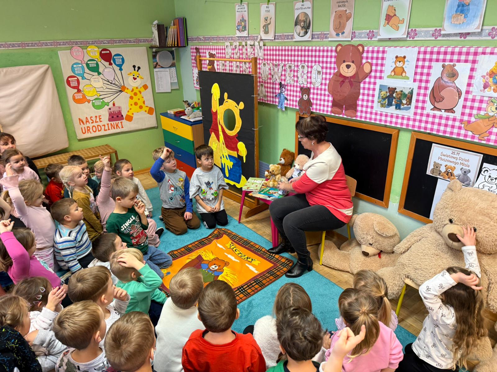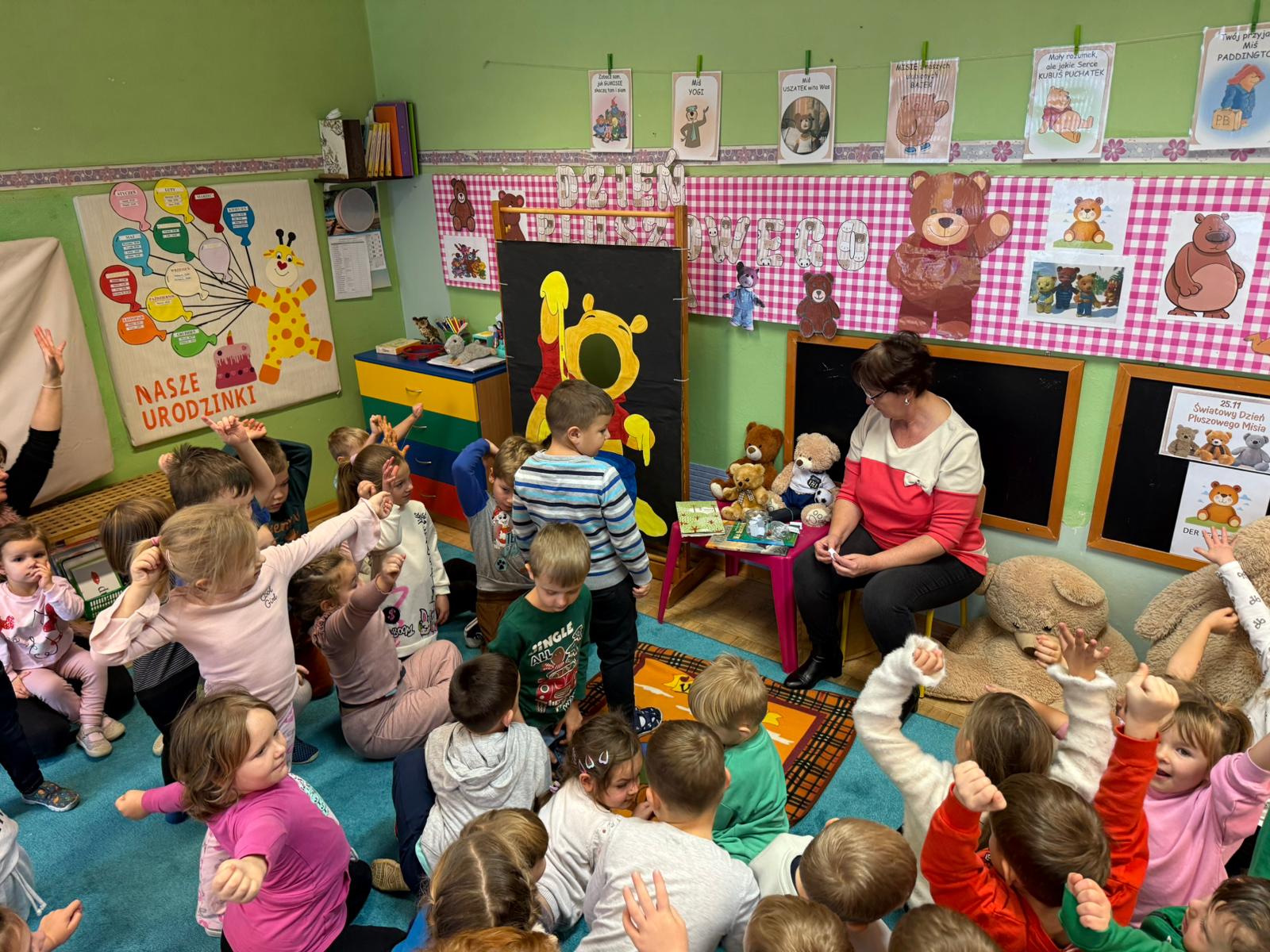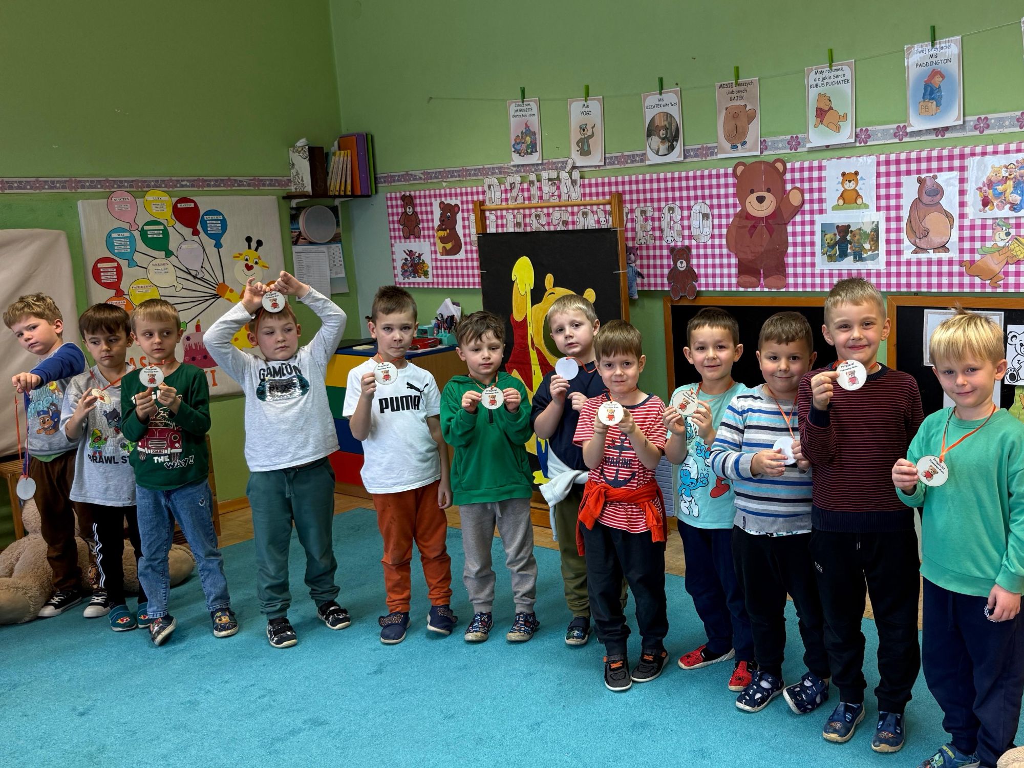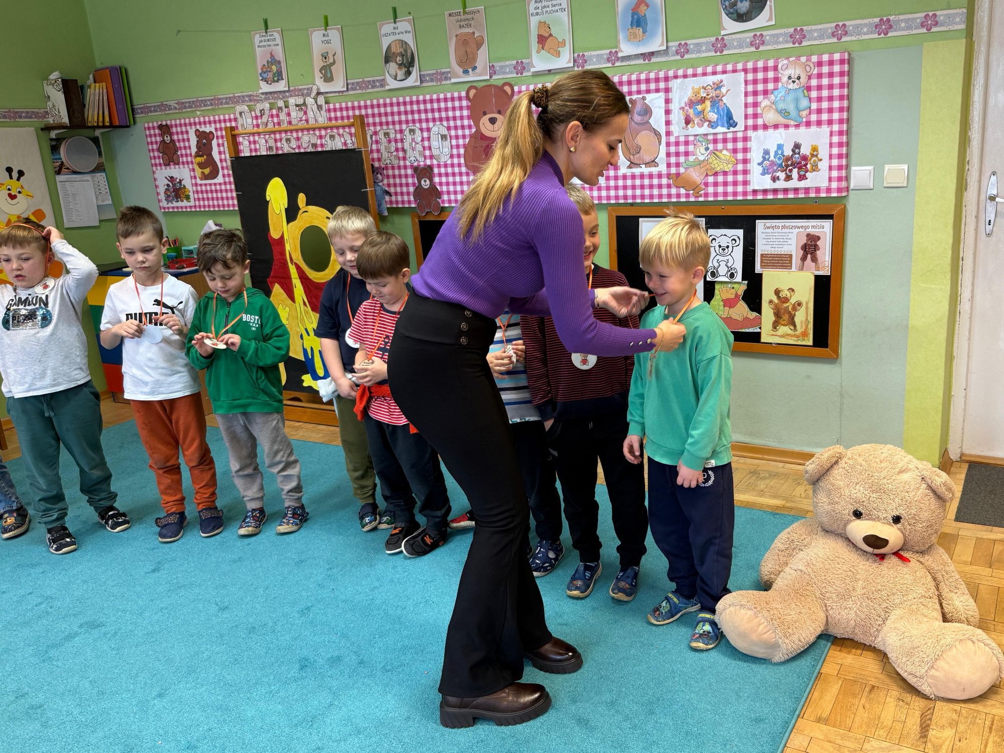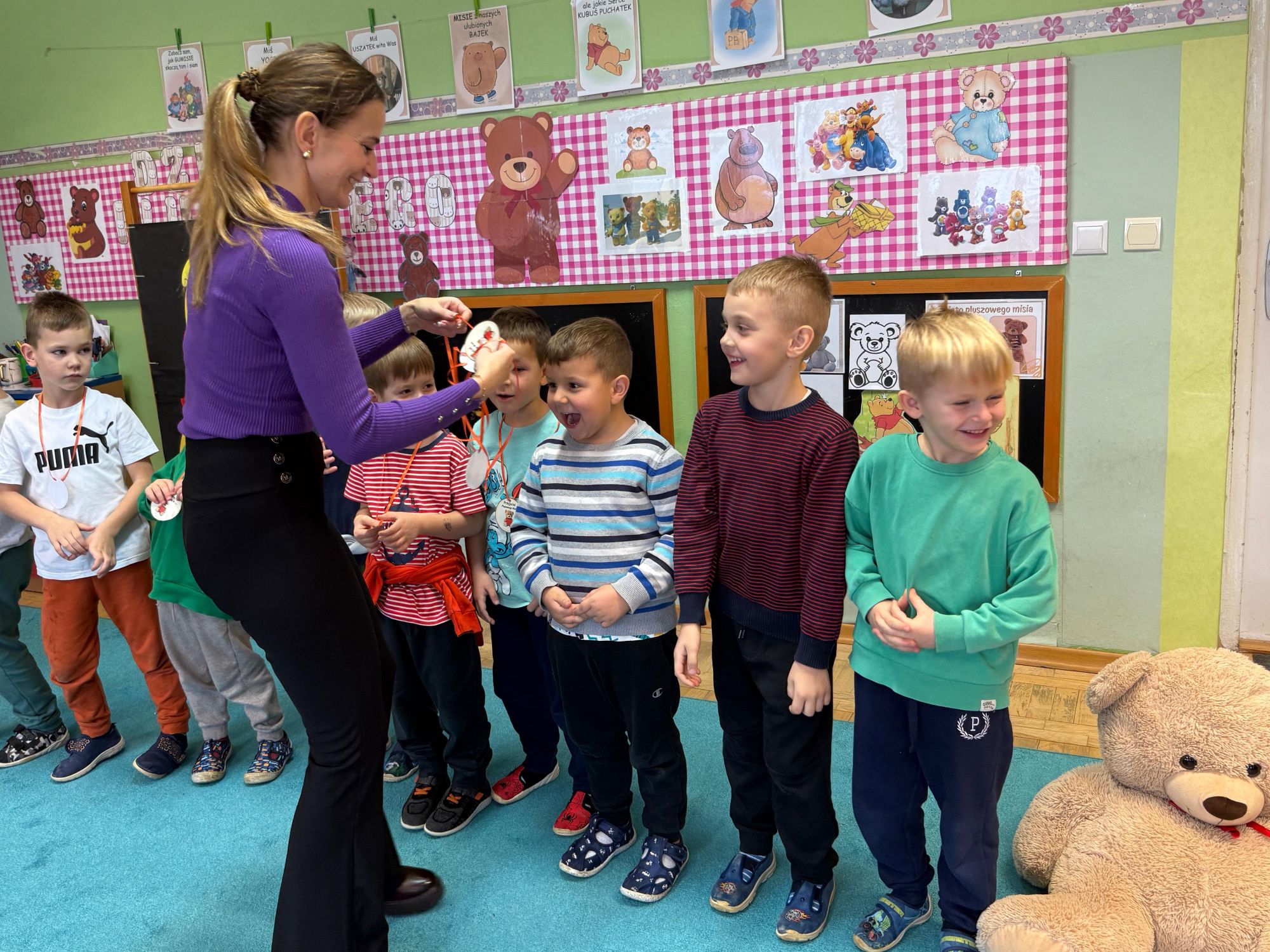 Pluszowy miś to najlepszy przyjaciel każdego dziecka, ukochana maskotka na dobre i złe chwile. Można go przytulić, a nawet powiedzieć mu o czymś bardzo ważnym. 25 listopada dzieci z naszego przedszkola uczestniczyły w obchodach „Światowego Dnia Pluszowego Misia”. Każde dziecko przyszło do przedszkola ze swoim „milutkim przyjacielem”. W tym wesołym dniu zawitała w Piąteczce Pani Aldona Kuśmierska, bibliotekarka z krasiejowskiej filii Miejskiej i Gminnej Biblioteki. Zaprosiła wszystkie dzieci do wspólnej zabawy. Wychowankowie poznali historię święta, brali udział w quizach, zagadkach. Wysłuchali bajki o Misiu Uszatku. Dowiedzieli się także ciekawych informacji o prawdziwych niedźwiedziach, jak wyglądają, co jedzą i gdzie żyją. Oglądali również ilustracje w książkach 3D. Nie zabrakło wspólnych zabaw ruchowych przy piosenkach o naszych milusińskich. Przedszkolaki wykonały piękne prace plastyczne, malowały swojego ulubionego pluszowego misia farbami oraz pastelami. Ten dzień przebiegał w bardzo miłej atmosferze, sprawił wiele radości i dostarczył niezapomnianych wrażeń. Na zakończenie wykonalismy sesję zdjęciową i wszystkie dzieci otrzymały pamiątkowe medale “Przyjaciela misia”.