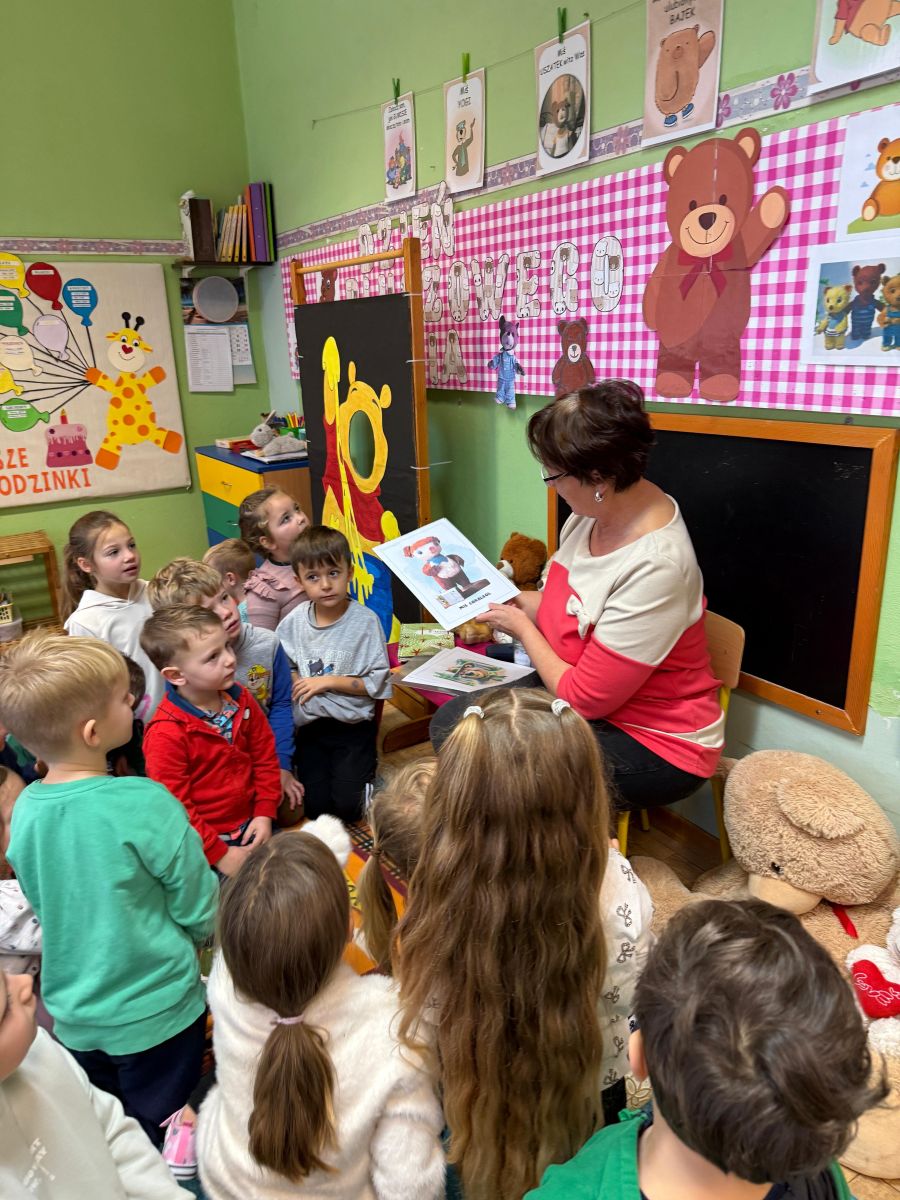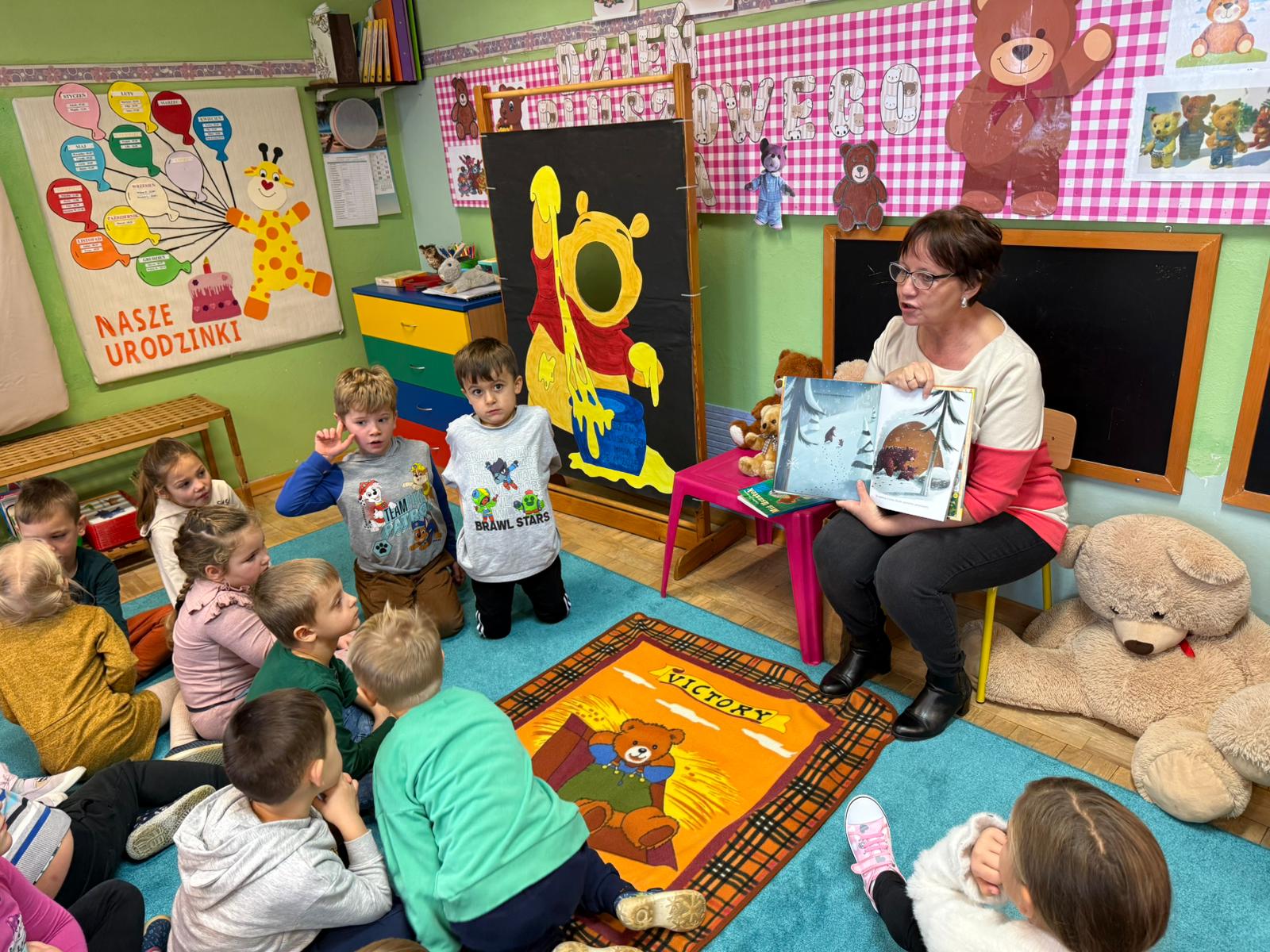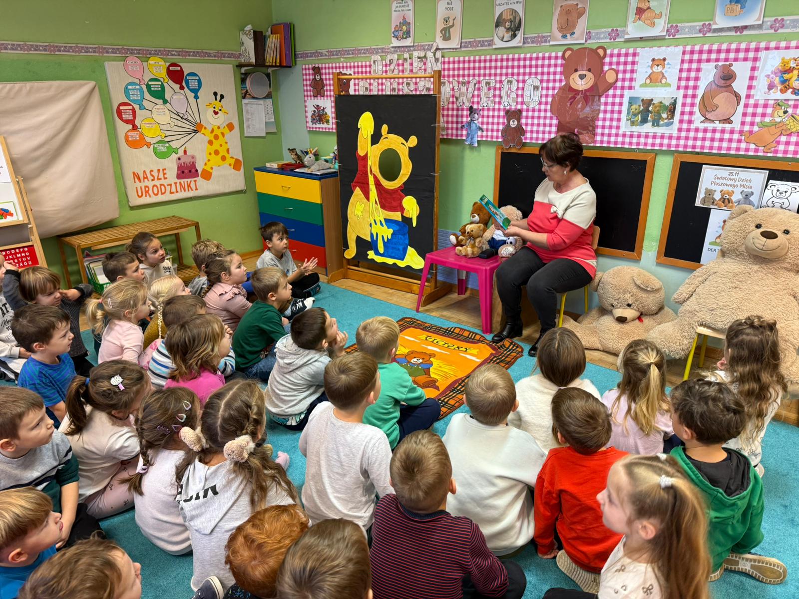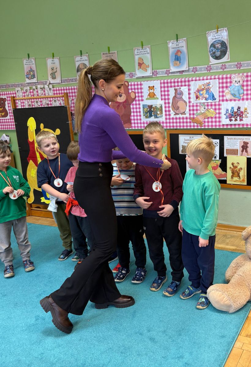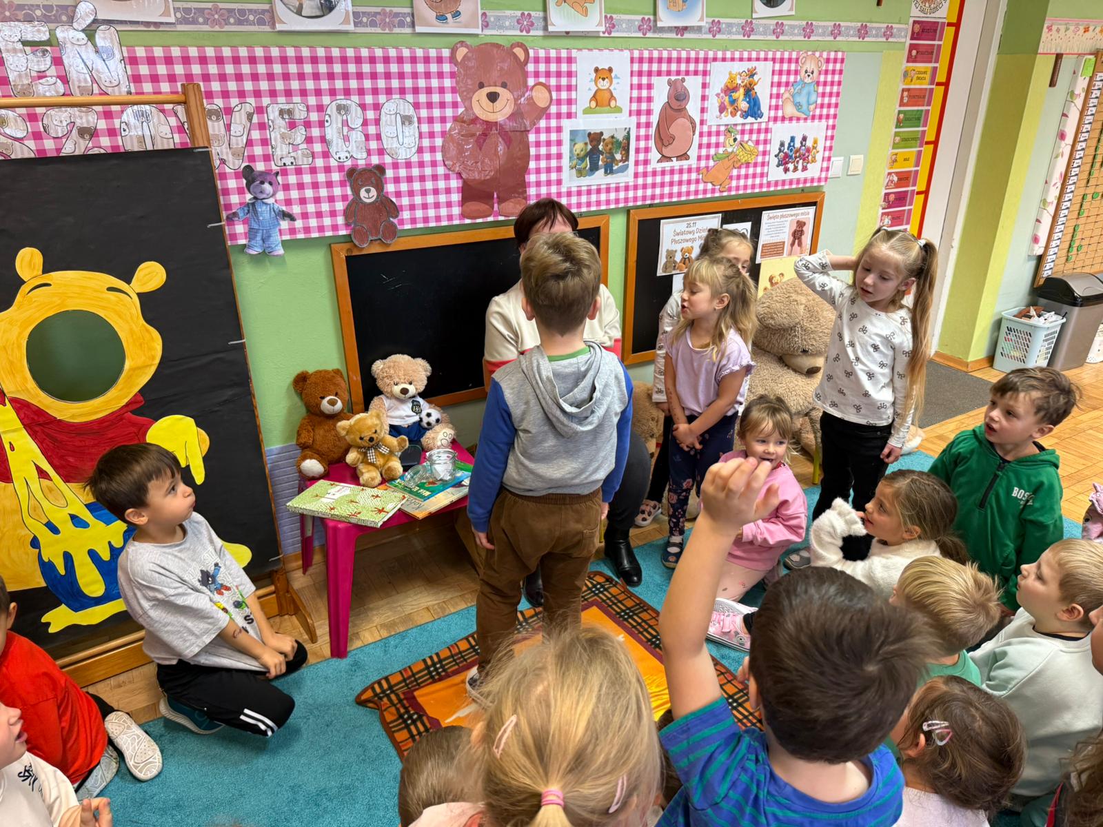 Pluszowy miś to najlepszy przyjaciel każdego dziecka, ukochana maskotka na dobre i złe chwile. Można go przytulić, a nawet powiedzieć mu o czymś bardzo ważnym. 25 listopada dzieci z naszego przedszkola uczestniczyły w obchodach „Światowego Dnia Pluszowego Misia”. Każde dziecko przyszło do przedszkola ze swoim „milutkim przyjacielem”. W tym wesołym dniu zawitała w Piąteczce Pani Aldona Kuśmierska, bibliotekarka z krasiejowskiej filii Miejskiej i Gminnej Biblioteki. Zaprosiła wszystkie dzieci do wspólnej zabawy. Wychowankowie poznali historię święta, brali udział w quizach, zagadkach. Wysłuchali bajki o Misiu Uszatku. Dowiedzieli się także ciekawych informacji o prawdziwych niedźwiedziach, jak wyglądają, co jedzą i gdzie żyją. Oglądali również ilustracje w książkach 3D. Nie zabrakło wspólnych zabaw ruchowych przy piosenkach o naszych milusińskich. Przedszkolaki wykonały piękne prace plastyczne, malowały swojego ulubionego pluszowego misia farbami oraz pastelami. Ten dzień przebiegał w bardzo miłej atmosferze, sprawił wiele radości i dostarczył niezapomnianych wrażeń. Na zakończenie wykonalismy sesję zdjęciową i wszystkie dzieci otrzymały pamiątkowe medale “Przyjaciela misia”.