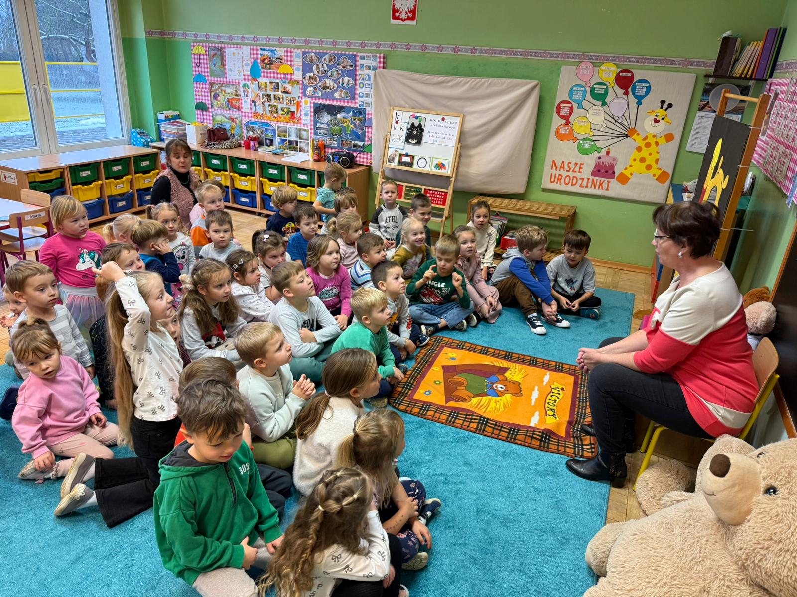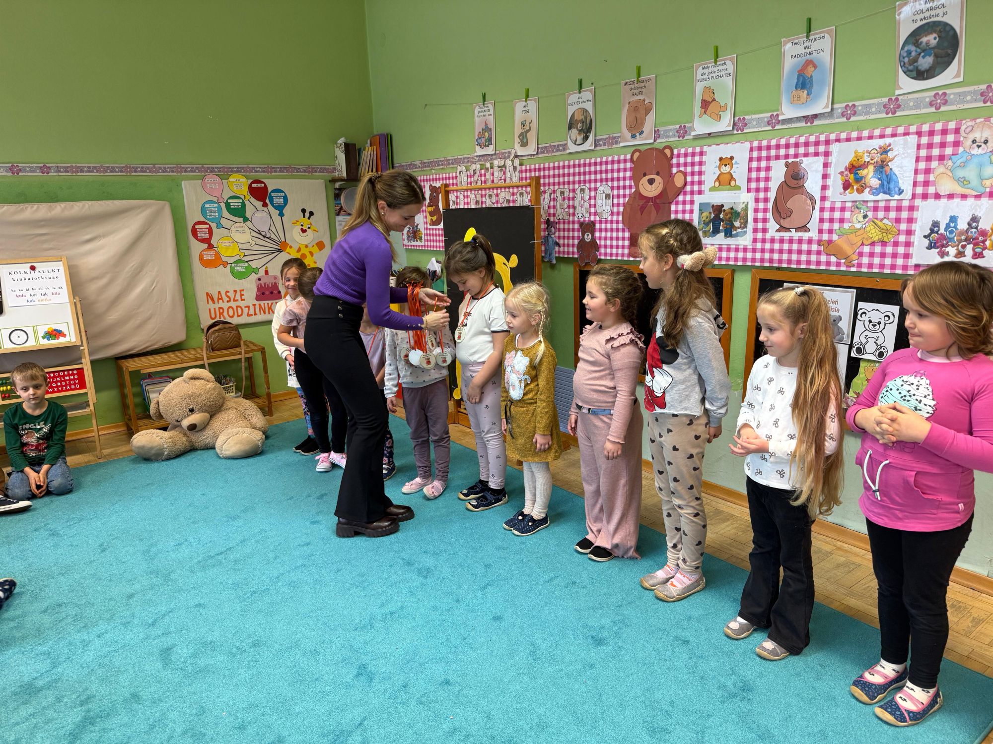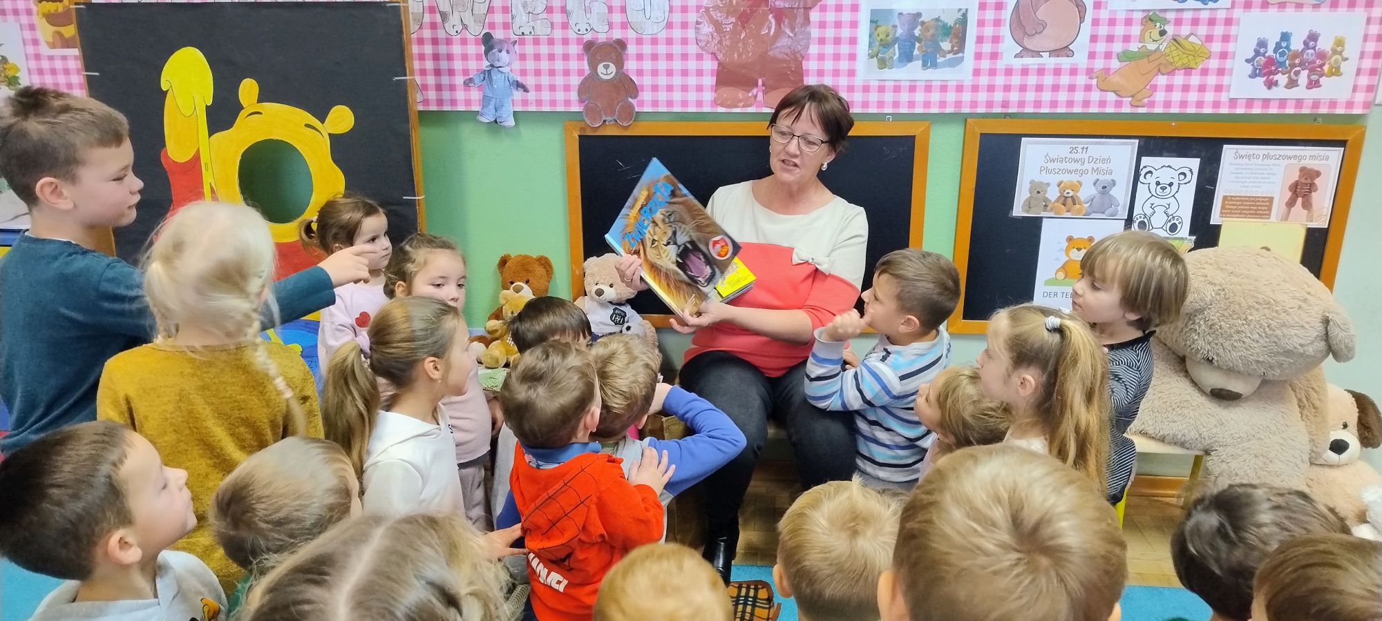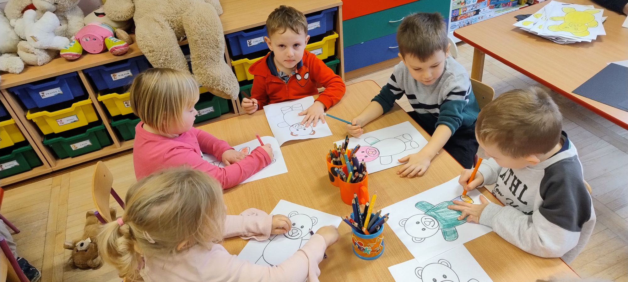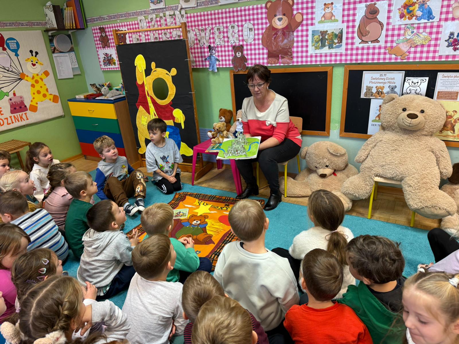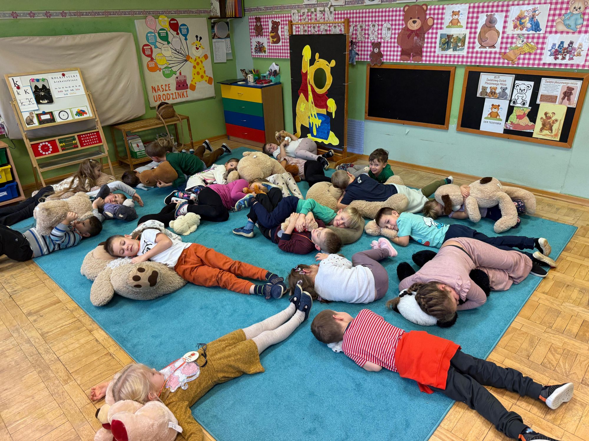Pluszowy miś to najlepszy przyjaciel każdego dziecka, ukochana maskotka na dobre i złe chwile. Można go przytulić, a nawet powiedzieć mu o czymś bardzo ważnym. 25 listopada dzieci z naszego przedszkola uczestniczyły w obchodach „Światowego Dnia Pluszowego Misia”. Każde dziecko przyszło do przedszkola ze swoim „milutkim przyjacielem”. W tym wesołym dniu zawitała w Piąteczce Pani Aldona Kuśmierska, bibliotekarka z krasiejowskiej filii Miejskiej i Gminnej Biblioteki. Zaprosiła wszystkie dzieci do wspólnej zabawy. Wychowankowie poznali historię święta, brali udział w quizach, zagadkach. Wysłuchali bajki o Misiu Uszatku. Dowiedzieli się także ciekawych informacji o prawdziwych niedźwiedziach, jak wyglądają, co jedzą i gdzie żyją. Oglądali również ilustracje w książkach 3D. Nie zabrakło wspólnych zabaw ruchowych przy piosenkach o naszych milusińskich. Przedszkolaki wykonały piękne prace plastyczne, malowały swojego ulubionego pluszowego misia farbami oraz pastelami. Ten dzień przebiegał w bardzo miłej atmosferze, sprawił wiele radości i dostarczył niezapomnianych wrażeń. Na zakończenie wykonalismy sesję zdjęciową i wszystkie dzieci otrzymały pamiątkowe medale “Przyjaciela misia”.