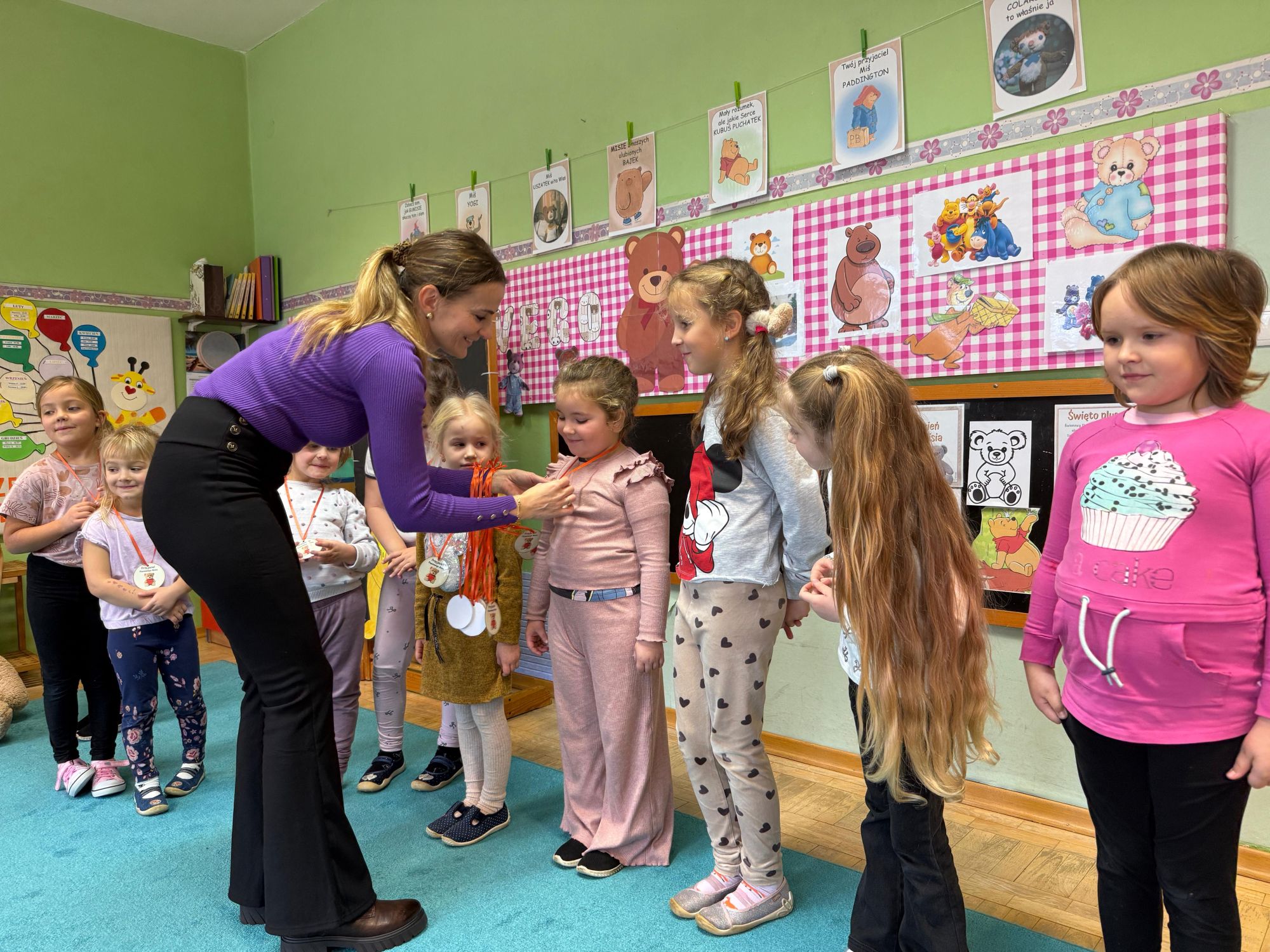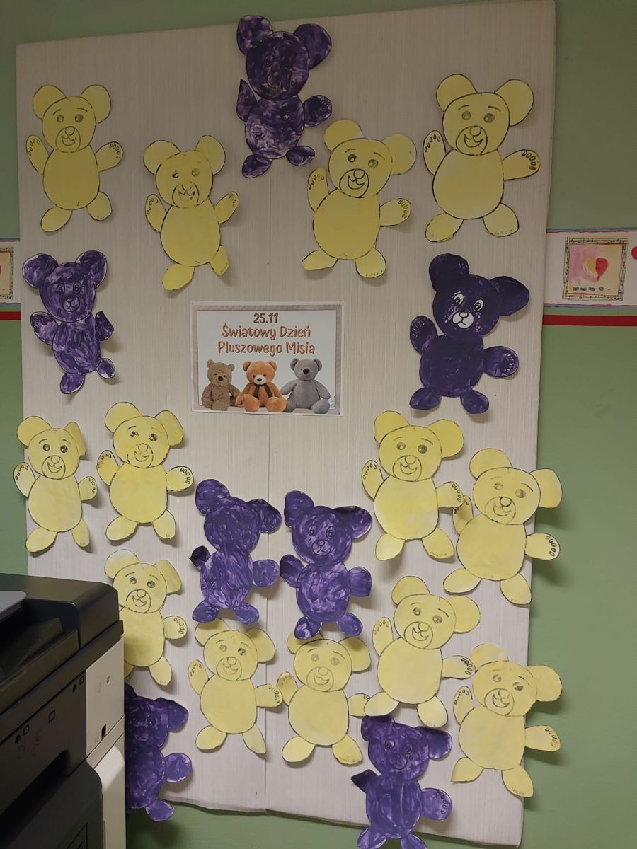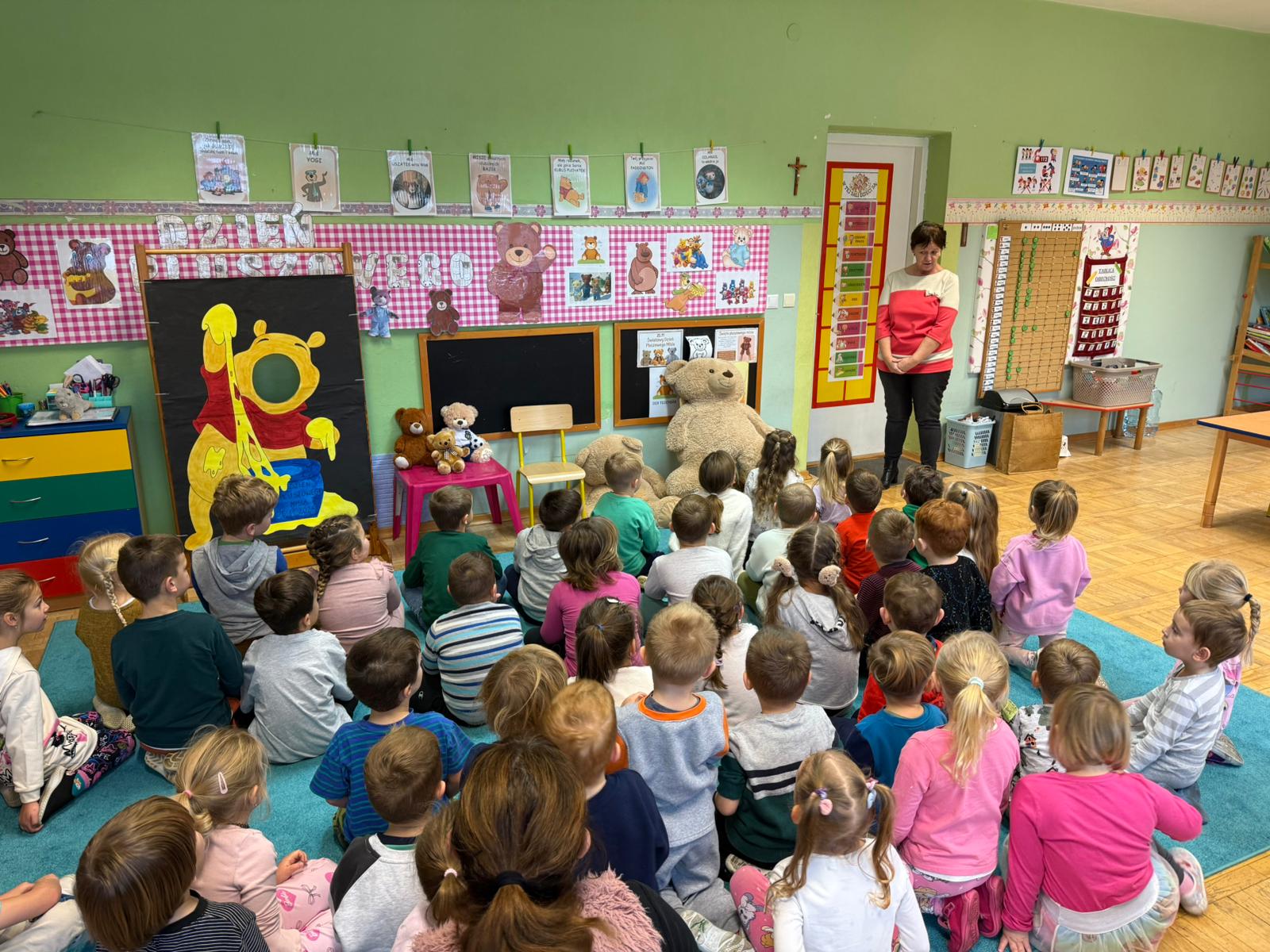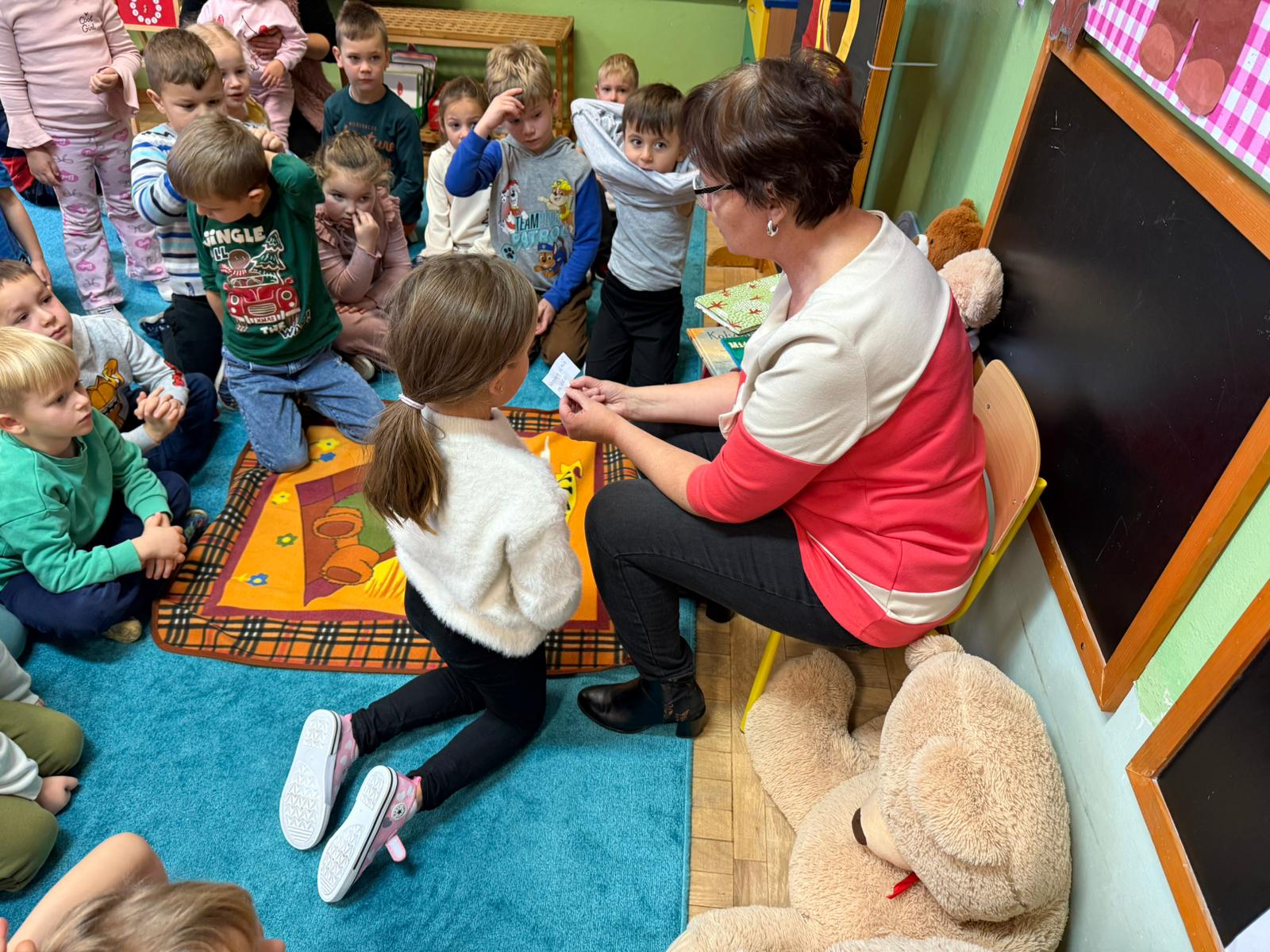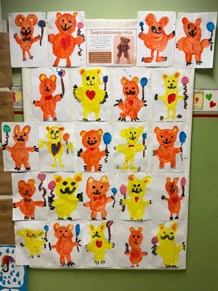 Pluszowy miś to najlepszy przyjaciel każdego dziecka, ukochana maskotka na dobre i złe chwile. Można go przytulić, a nawet powiedzieć mu o czymś bardzo ważnym. 25 listopada dzieci z naszego przedszkola uczestniczyły w obchodach „Światowego Dnia Pluszowego Misia”. Każde dziecko przyszło do przedszkola ze swoim „milutkim przyjacielem”. W tym wesołym dniu zawitała w Piąteczce Pani Aldona Kuśmierska, bibliotekarka z krasiejowskiej filii Miejskiej i Gminnej Biblioteki. Zaprosiła wszystkie dzieci do wspólnej zabawy. Wychowankowie poznali historię święta, brali udział w quizach, zagadkach. Wysłuchali bajki o Misiu Uszatku. Dowiedzieli się także ciekawych informacji o prawdziwych niedźwiedziach, jak wyglądają, co jedzą i gdzie żyją. Oglądali również ilustracje w książkach 3D. Nie zabrakło wspólnych zabaw ruchowych przy piosenkach o naszych milusińskich. Przedszkolaki wykonały piękne prace plastyczne, malowały swojego ulubionego pluszowego misia farbami oraz pastelami. Ten dzień przebiegał w bardzo miłej atmosferze, sprawił wiele radości i dostarczył niezapomnianych wrażeń. Na zakończenie wykonalismy sesję zdjęciową i wszystkie dzieci otrzymały pamiątkowe medale “Przyjaciela misia”.