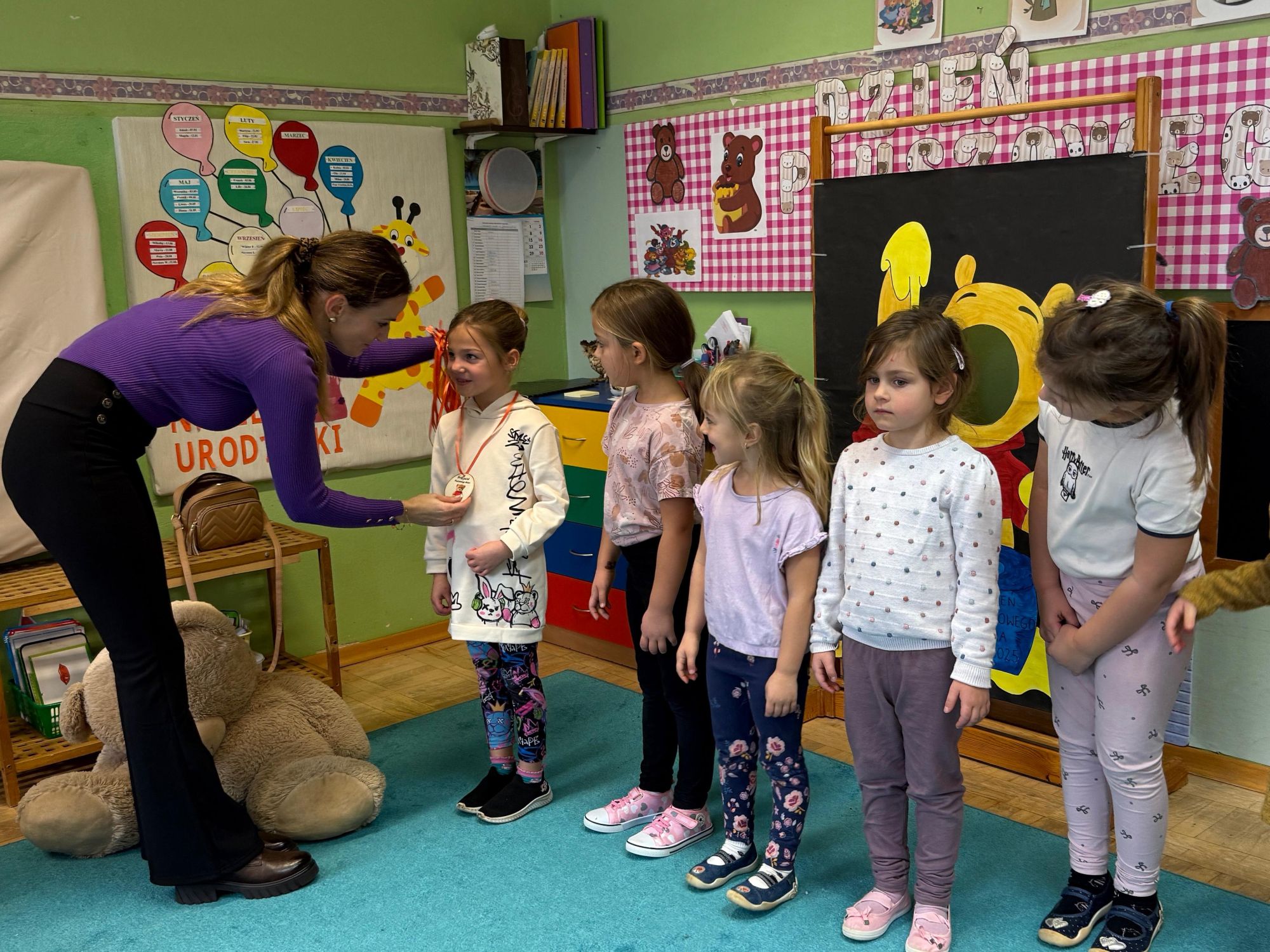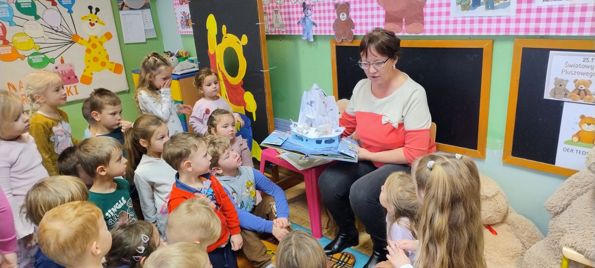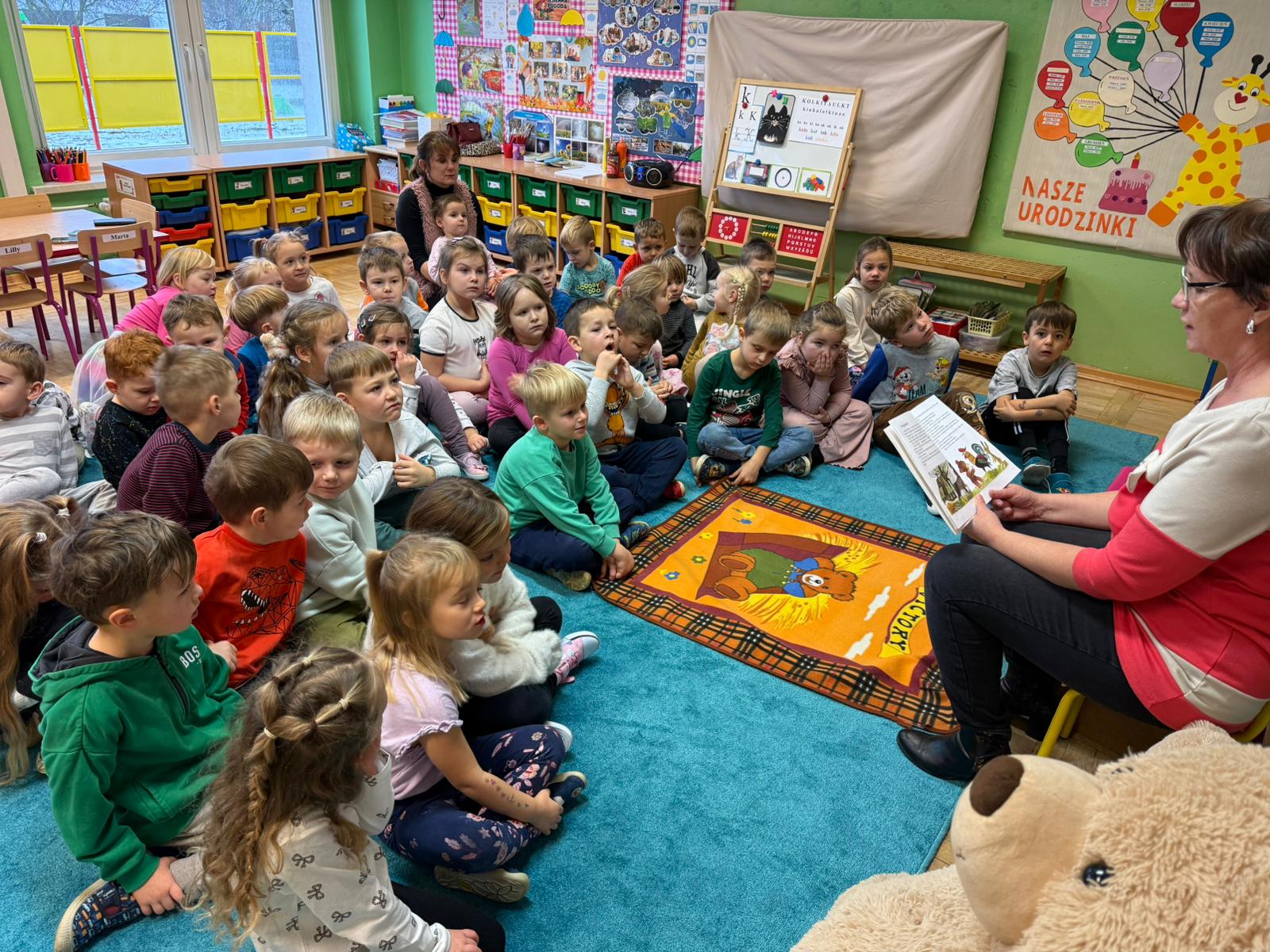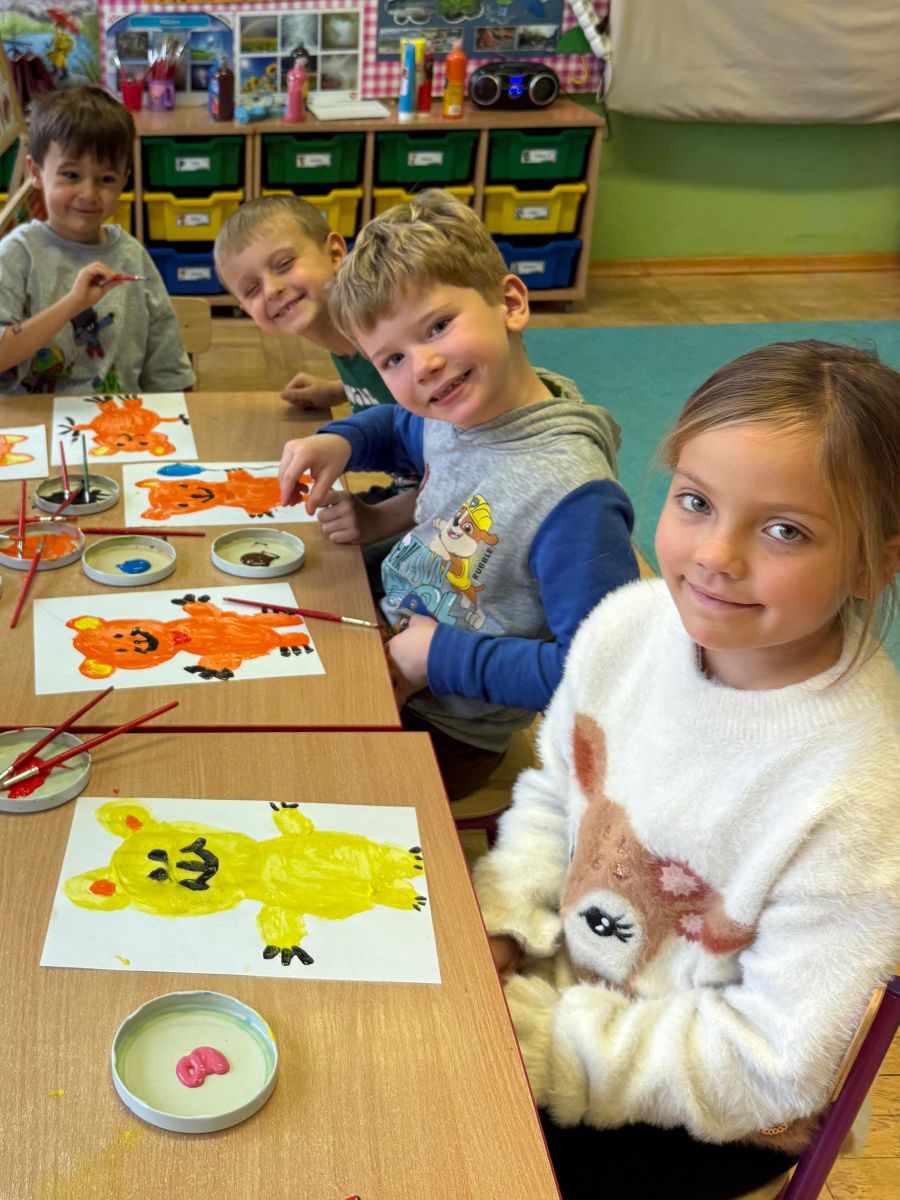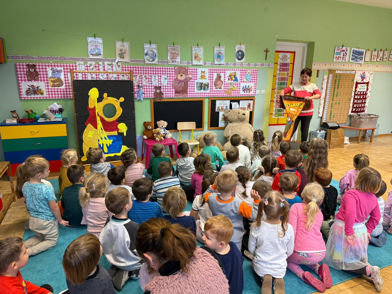 Pluszowy miś to najlepszy przyjaciel każdego dziecka, ukochana maskotka na dobre i złe chwile. Można go przytulić, a nawet powiedzieć mu o czymś bardzo ważnym. 25 listopada dzieci z naszego przedszkola uczestniczyły w obchodach „Światowego Dnia Pluszowego Misia”. Każde dziecko przyszło do przedszkola ze swoim „milutkim przyjacielem”. W tym wesołym dniu zawitała w Piąteczce Pani Aldona Kuśmierska, bibliotekarka z krasiejowskiej filii Miejskiej i Gminnej Biblioteki. Zaprosiła wszystkie dzieci do wspólnej zabawy. Wychowankowie poznali historię święta, brali udział w quizach, zagadkach. Wysłuchali bajki o Misiu Uszatku. Dowiedzieli się także ciekawych informacji o prawdziwych niedźwiedziach, jak wyglądają, co jedzą i gdzie żyją. Oglądali również ilustracje w książkach 3D. Nie zabrakło wspólnych zabaw ruchowych przy piosenkach o naszych milusińskich. Przedszkolaki wykonały piękne prace plastyczne, malowały swojego ulubionego pluszowego misia farbami oraz pastelami. Ten dzień przebiegał w bardzo miłej atmosferze, sprawił wiele radości i dostarczył niezapomnianych wrażeń. Na zakończenie wykonalismy sesję zdjęciową i wszystkie dzieci otrzymały pamiątkowe medale “Przyjaciela misia”.