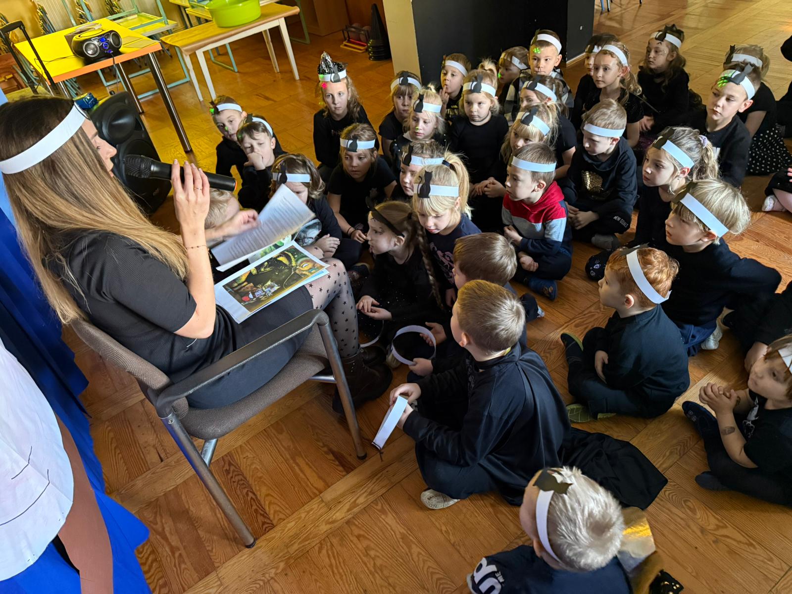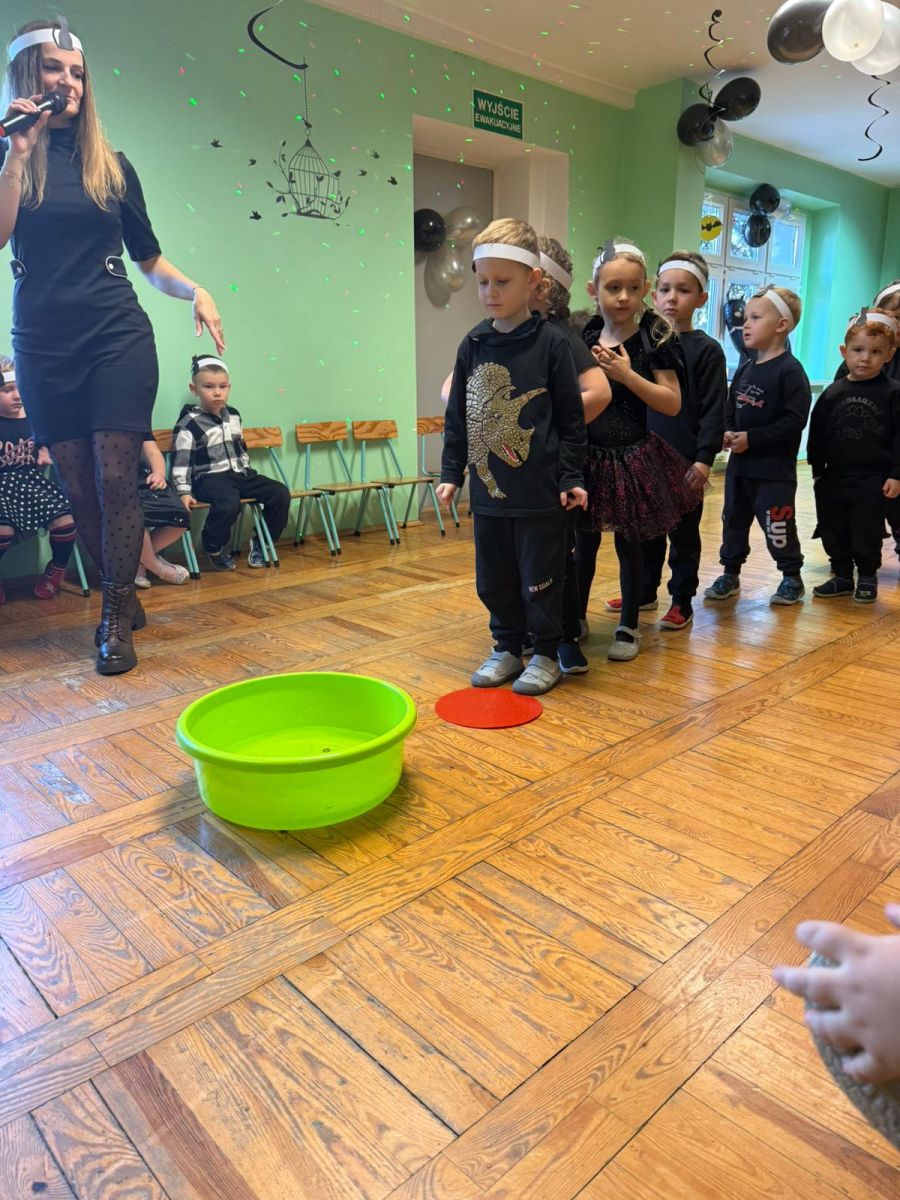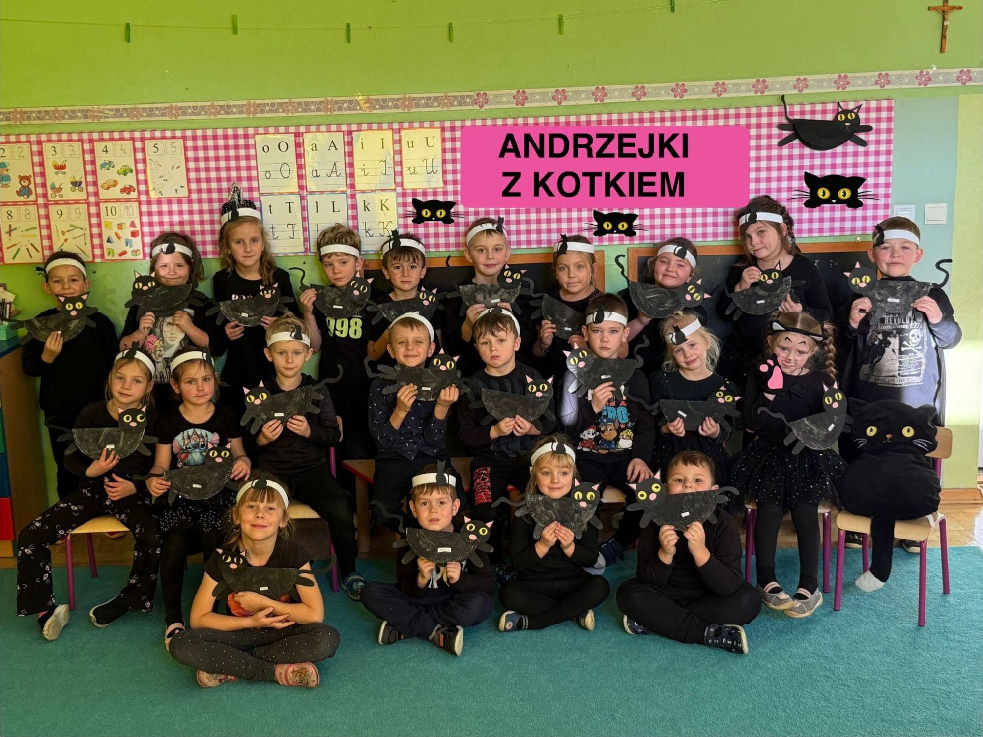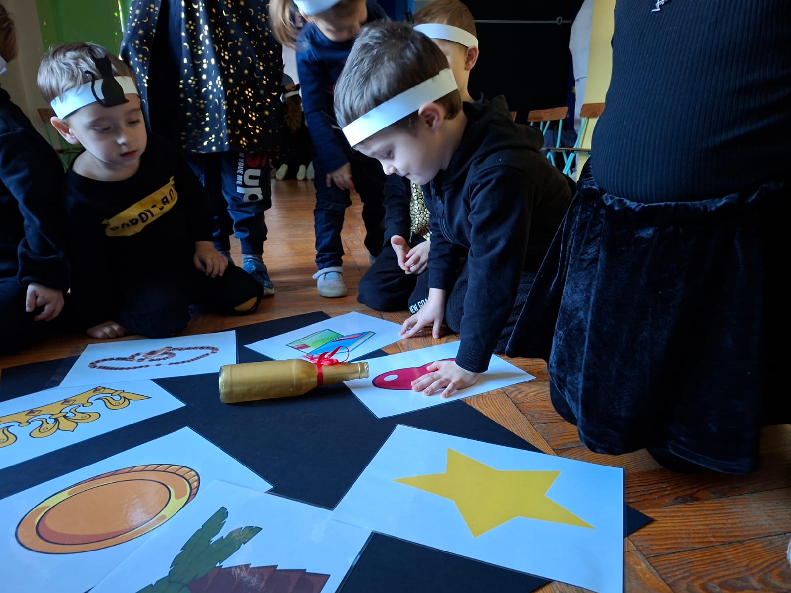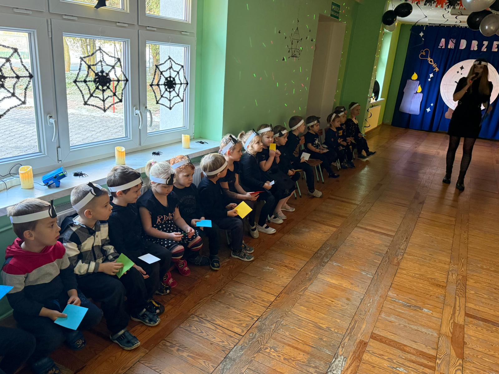 28 listopada w naszym przedszkolu odbyły się radosne i pełne magii Andrzejki. Od samego rana dzieci przeniosły się w świat wróżb, czarów i dobrej zabawy. Na początku spotkania przedszkolaki poznały tradycje andrzejkowe – dowiedziały się, skąd pochodzi zwyczaj wróżenia i dlaczego właśnie w tym dniu próbuje się zajrzeć w przyszłość. Dzieci słuchały z ogromną uwagą, a w sali z każdą chwilą narastała magiczna atmosfera. Następnie obie grupy udały się do przygotowanego „czarodziejskiego kącika”. Tam, przy zaczarowanej kuli, uczyły się specjalnego zaklęcia. Gdy wspólnie je wypowiedziały i kula „ożyła”, mieniąc się kolorami, dzieci mogły wreszcie przystąpić do wyczekiwanych wróżb. Rozpoczęło się odkrywanie przyszłości poprzez zabawy: „Kolory”, „Czarodziejska butelka”, „Grosiki” oraz „Kim będę w przyszłości?”. Wszystkie wróżby wywoływały u dzieci radość i uśmiech na twarzach. Następnie przedszkolaki ruszyły do tańca, bawiąc się wesoło przy ulubionych utworach z dziecięcego repertuaru. Wysłuchały opowiadania „O kotku, który szukał czarnego mleka”, a następnie z wielkim zaangażowaniem odpowiadały na pytania dotyczące treści. Nie zabrakło także zabaw animacyjno-ruchowych, m.in. z liną oraz pełnej emocji zabawy sprawnościowej „Kotki łapią myszki”. Po tylu atrakcjach na dzieci czekał słodko-owocowy poczęstunek, który dodał im energii na kolejne aktywności. Tradycyjne lanie wosku przez ucho czarodziejskiego klucza było kolejnym punktem programu. Powstające z wosku kształty pobudzały wyobraźnię i zachęcały do przepowiadania przyszłości. Na zakończenie wszyscy wykonali urocze czarne kotki z papierowych talerzyków – kreatywne prace plastyczne, które stały się pamiątką tego wyjątkowego, pełnego magii dnia.