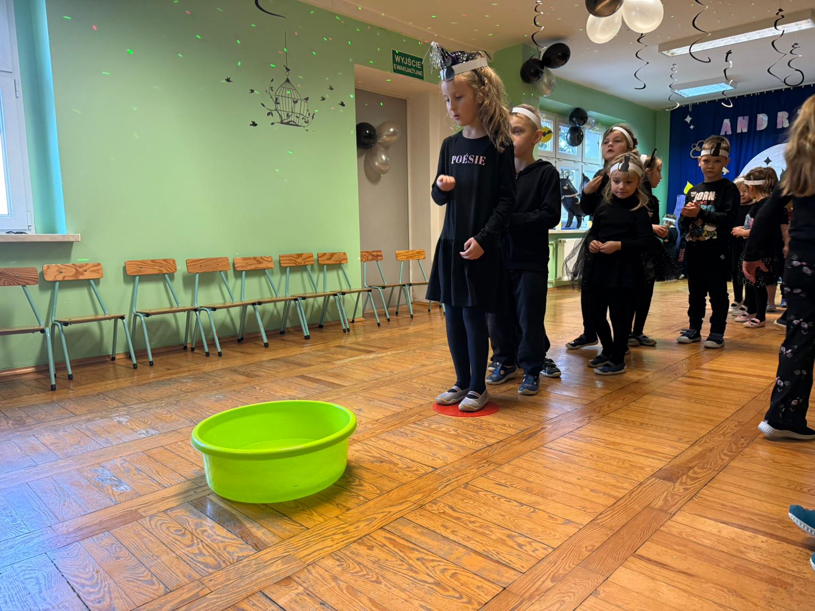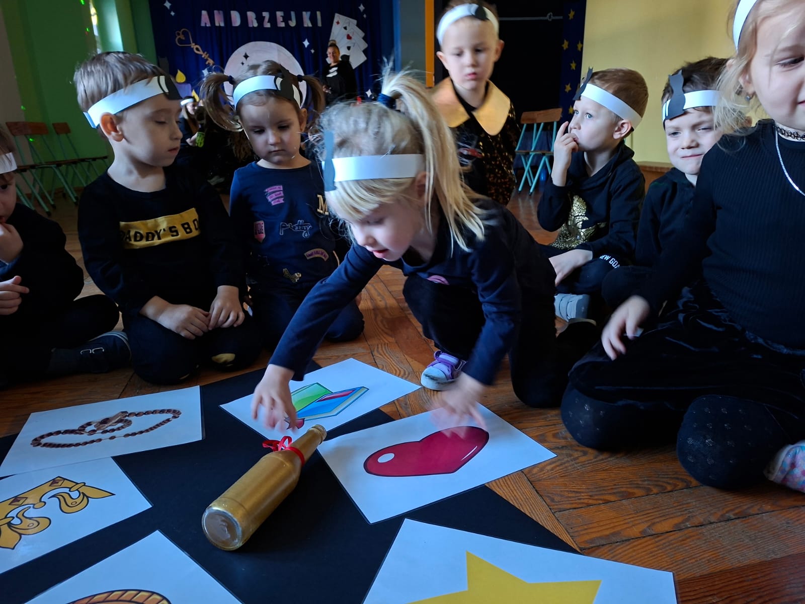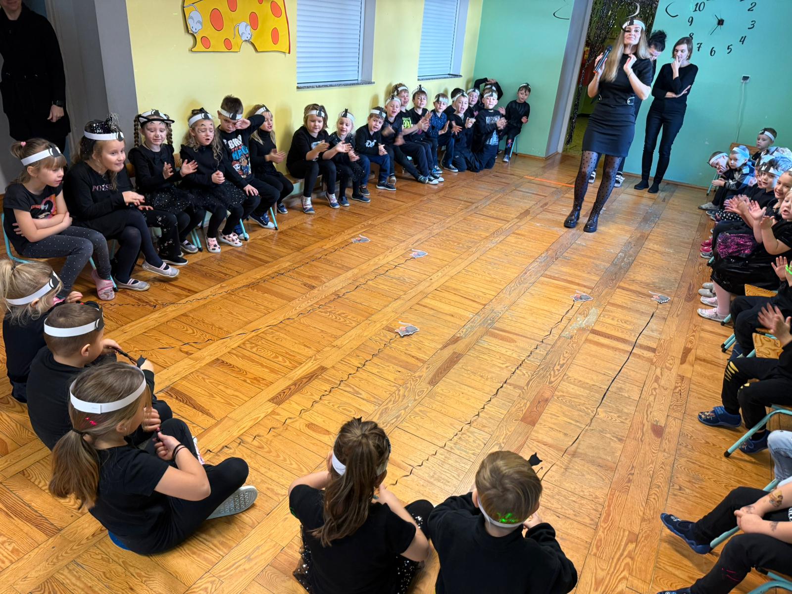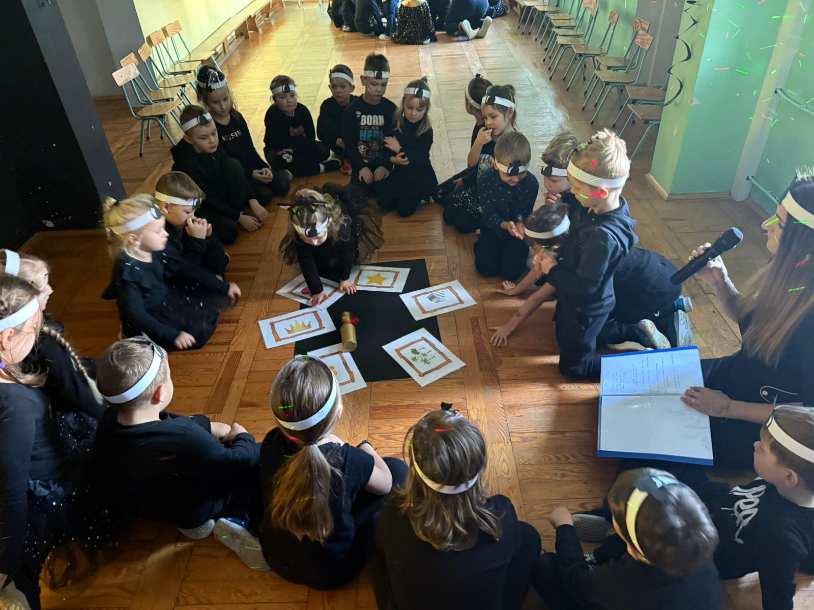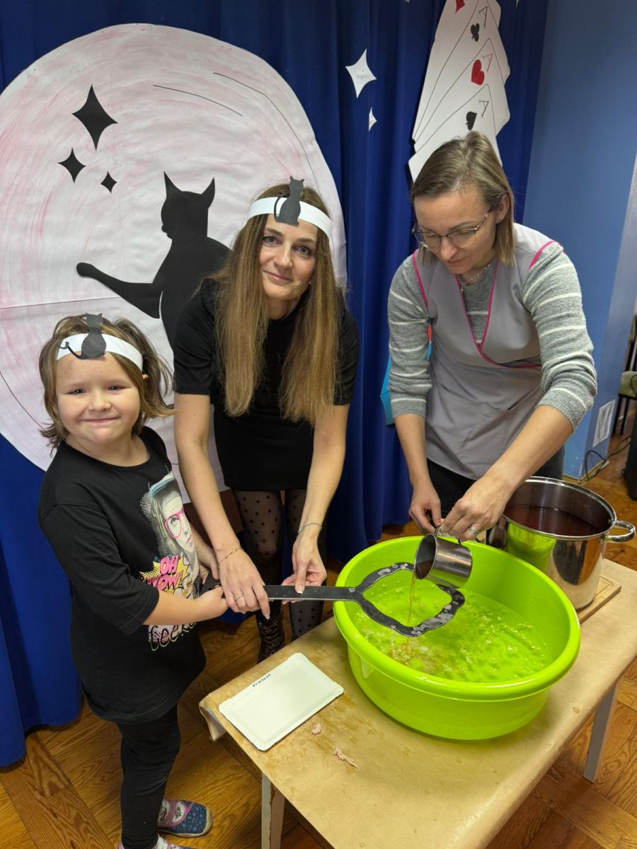 28 listopada w naszym przedszkolu odbyły się radosne i pełne magii Andrzejki. Od samego rana dzieci przeniosły się w świat wróżb, czarów i dobrej zabawy. Na początku spotkania przedszkolaki poznały tradycje andrzejkowe – dowiedziały się, skąd pochodzi zwyczaj wróżenia i dlaczego właśnie w tym dniu próbuje się zajrzeć w przyszłość. Dzieci słuchały z ogromną uwagą, a w sali z każdą chwilą narastała magiczna atmosfera. Następnie obie grupy udały się do przygotowanego „czarodziejskiego kącika”. Tam, przy zaczarowanej kuli, uczyły się specjalnego zaklęcia. Gdy wspólnie je wypowiedziały i kula „ożyła”, mieniąc się kolorami, dzieci mogły wreszcie przystąpić do wyczekiwanych wróżb. Rozpoczęło się odkrywanie przyszłości poprzez zabawy: „Kolory”, „Czarodziejska butelka”, „Grosiki” oraz „Kim będę w przyszłości?”. Wszystkie wróżby wywoływały u dzieci radość i uśmiech na twarzach. Następnie przedszkolaki ruszyły do tańca, bawiąc się wesoło przy ulubionych utworach z dziecięcego repertuaru. Wysłuchały opowiadania „O kotku, który szukał czarnego mleka”, a następnie z wielkim zaangażowaniem odpowiadały na pytania dotyczące treści. Nie zabrakło także zabaw animacyjno-ruchowych, m.in. z liną oraz pełnej emocji zabawy sprawnościowej „Kotki łapią myszki”. Po tylu atrakcjach na dzieci czekał słodko-owocowy poczęstunek, który dodał im energii na kolejne aktywności. Tradycyjne lanie wosku przez ucho czarodziejskiego klucza było kolejnym punktem programu. Powstające z wosku kształty pobudzały wyobraźnię i zachęcały do przepowiadania przyszłości. Na zakończenie wszyscy wykonali urocze czarne kotki z papierowych talerzyków – kreatywne prace plastyczne, które stały się pamiątką tego wyjątkowego, pełnego magii dnia.