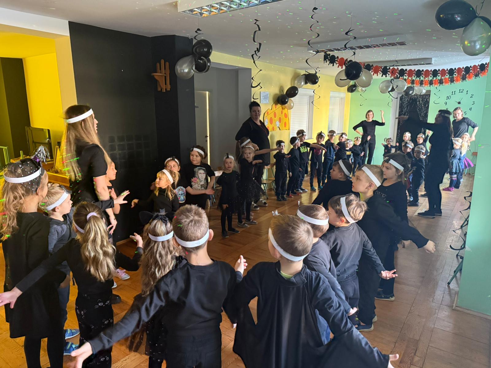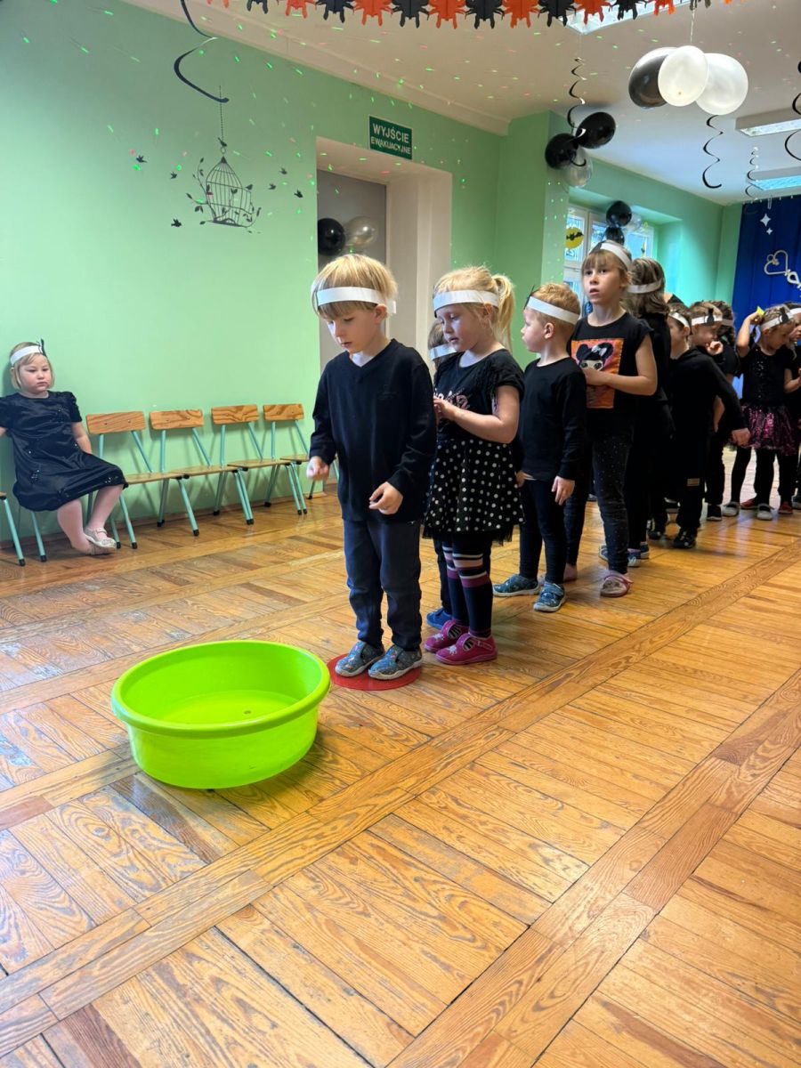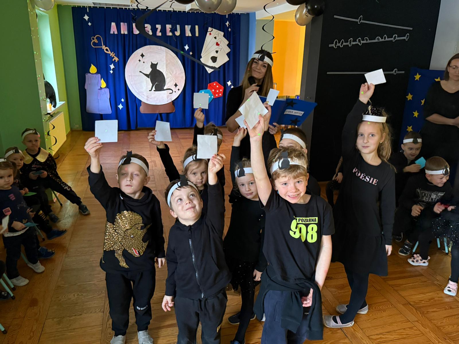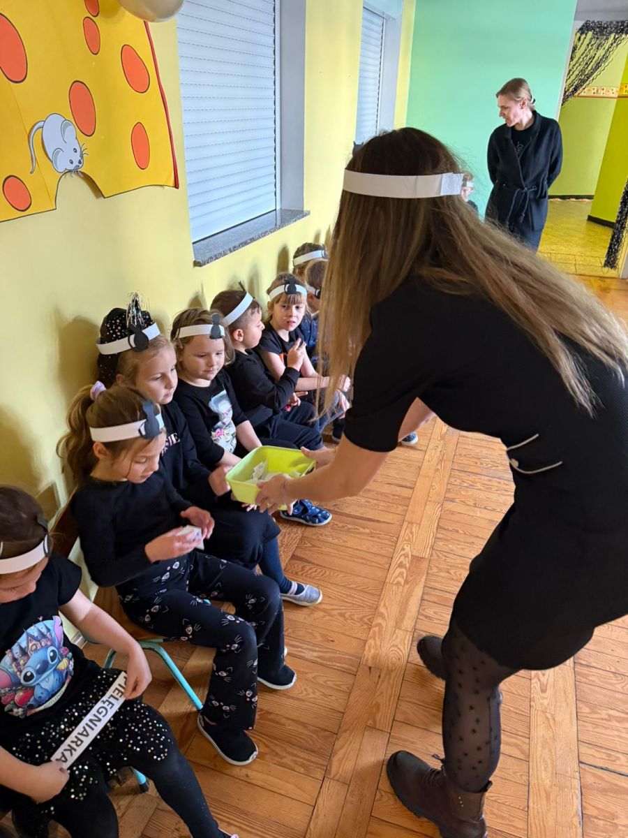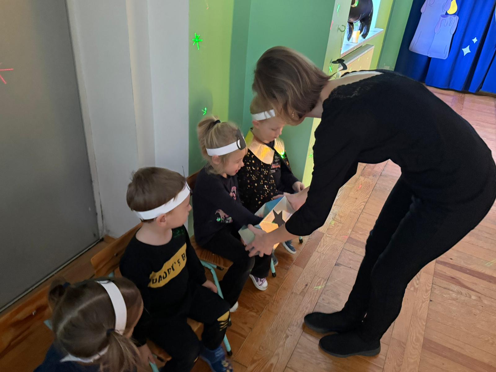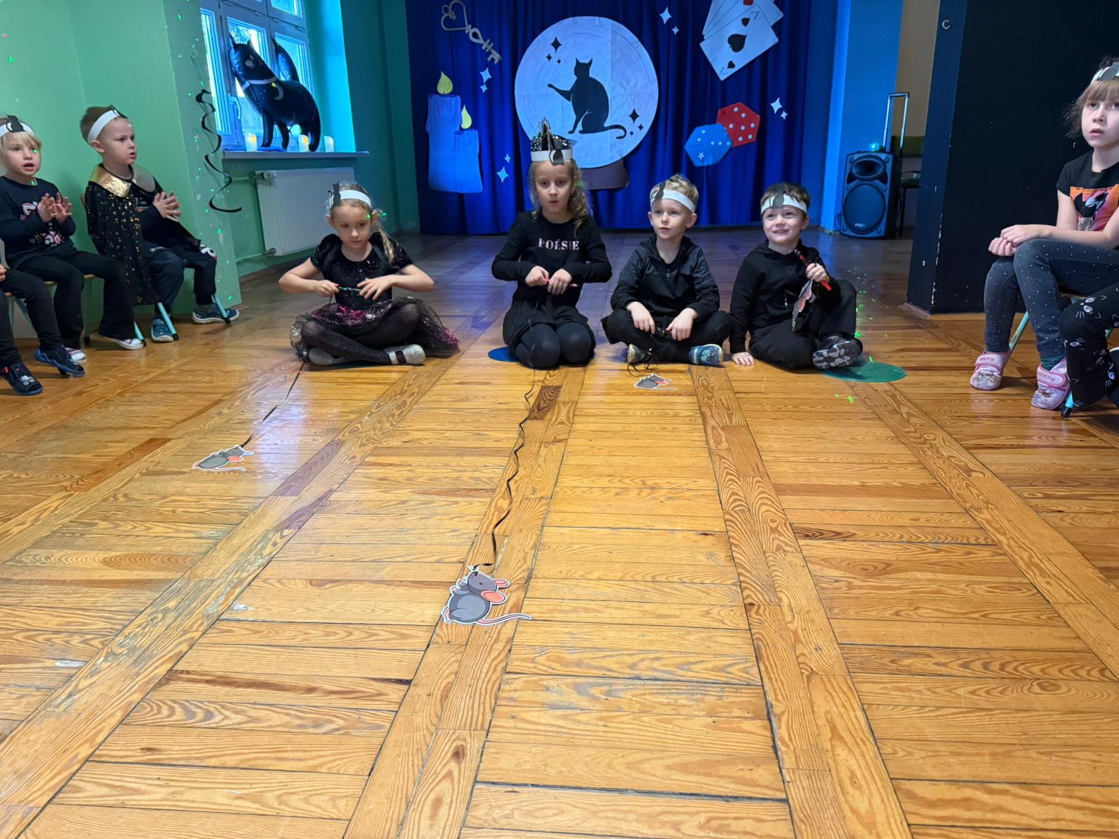 28 listopada w naszym przedszkolu odbyły się radosne i pełne magii Andrzejki. Od samego rana dzieci przeniosły się w świat wróżb, czarów i dobrej zabawy. Na początku spotkania przedszkolaki poznały tradycje andrzejkowe – dowiedziały się, skąd pochodzi zwyczaj wróżenia i dlaczego właśnie w tym dniu próbuje się zajrzeć w przyszłość. Dzieci słuchały z ogromną uwagą, a w sali z każdą chwilą narastała magiczna atmosfera. Następnie obie grupy udały się do przygotowanego „czarodziejskiego kącika”. Tam, przy zaczarowanej kuli, uczyły się specjalnego zaklęcia. Gdy wspólnie je wypowiedziały i kula „ożyła”, mieniąc się kolorami, dzieci mogły wreszcie przystąpić do wyczekiwanych wróżb. Rozpoczęło się odkrywanie przyszłości poprzez zabawy: „Kolory”, „Czarodziejska butelka”, „Grosiki” oraz „Kim będę w przyszłości?”. Wszystkie wróżby wywoływały u dzieci radość i uśmiech na twarzach. Następnie przedszkolaki ruszyły do tańca, bawiąc się wesoło przy ulubionych utworach z dziecięcego repertuaru. Wysłuchały opowiadania „O kotku, który szukał czarnego mleka”, a następnie z wielkim zaangażowaniem odpowiadały na pytania dotyczące treści. Nie zabrakło także zabaw animacyjno-ruchowych, m.in. z liną oraz pełnej emocji zabawy sprawnościowej „Kotki łapią myszki”. Po tylu atrakcjach na dzieci czekał słodko-owocowy poczęstunek, który dodał im energii na kolejne aktywności. Tradycyjne lanie wosku przez ucho czarodziejskiego klucza było kolejnym punktem programu. Powstające z wosku kształty pobudzały wyobraźnię i zachęcały do przepowiadania przyszłości. Na zakończenie wszyscy wykonali urocze czarne kotki z papierowych talerzyków – kreatywne prace plastyczne, które stały się pamiątką tego wyjątkowego, pełnego magii dnia.