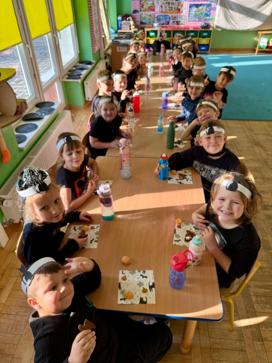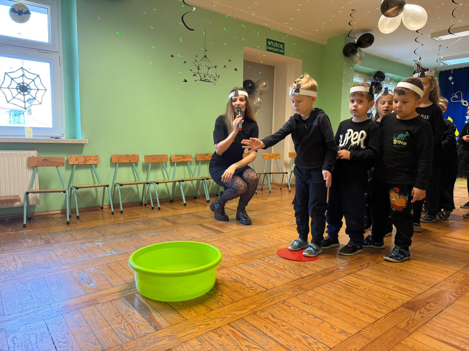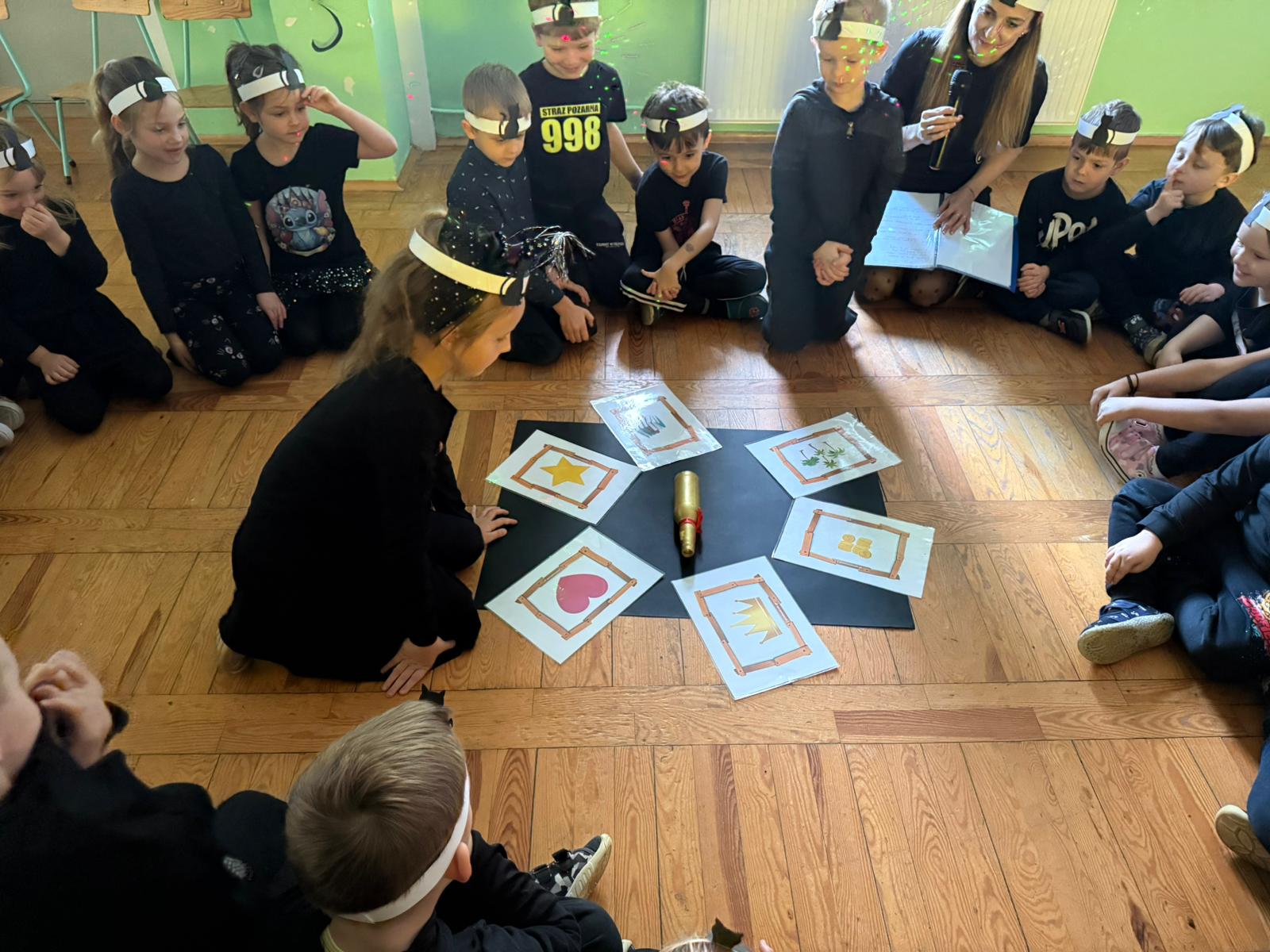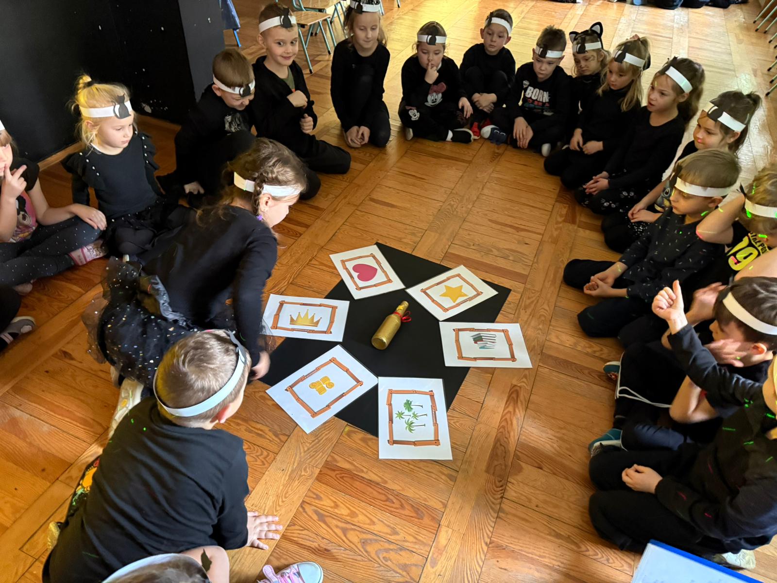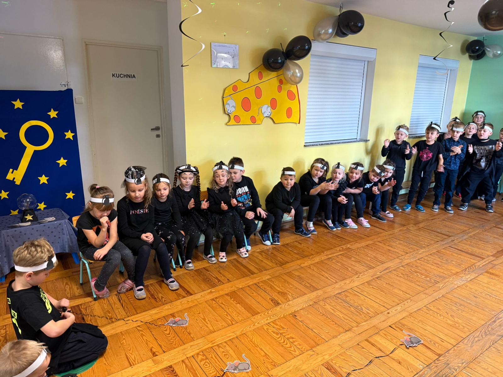 28 listopada w naszym przedszkolu odbyły się radosne i pełne magii Andrzejki. Od samego rana dzieci przeniosły się w świat wróżb, czarów i dobrej zabawy. Na początku spotkania przedszkolaki poznały tradycje andrzejkowe – dowiedziały się, skąd pochodzi zwyczaj wróżenia i dlaczego właśnie w tym dniu próbuje się zajrzeć w przyszłość. Dzieci słuchały z ogromną uwagą, a w sali z każdą chwilą narastała magiczna atmosfera. Następnie obie grupy udały się do przygotowanego „czarodziejskiego kącika”. Tam, przy zaczarowanej kuli, uczyły się specjalnego zaklęcia. Gdy wspólnie je wypowiedziały i kula „ożyła”, mieniąc się kolorami, dzieci mogły wreszcie przystąpić do wyczekiwanych wróżb. Rozpoczęło się odkrywanie przyszłości poprzez zabawy: „Kolory”, „Czarodziejska butelka”, „Grosiki” oraz „Kim będę w przyszłości?”. Wszystkie wróżby wywoływały u dzieci radość i uśmiech na twarzach. Następnie przedszkolaki ruszyły do tańca, bawiąc się wesoło przy ulubionych utworach z dziecięcego repertuaru. Wysłuchały opowiadania „O kotku, który szukał czarnego mleka”, a następnie z wielkim zaangażowaniem odpowiadały na pytania dotyczące treści. Nie zabrakło także zabaw animacyjno-ruchowych, m.in. z liną oraz pełnej emocji zabawy sprawnościowej „Kotki łapią myszki”. Po tylu atrakcjach na dzieci czekał słodko-owocowy poczęstunek, który dodał im energii na kolejne aktywności. Tradycyjne lanie wosku przez ucho czarodziejskiego klucza było kolejnym punktem programu. Powstające z wosku kształty pobudzały wyobraźnię i zachęcały do przepowiadania przyszłości. Na zakończenie wszyscy wykonali urocze czarne kotki z papierowych talerzyków – kreatywne prace plastyczne, które stały się pamiątką tego wyjątkowego, pełnego magii dnia.