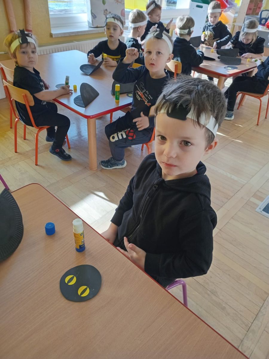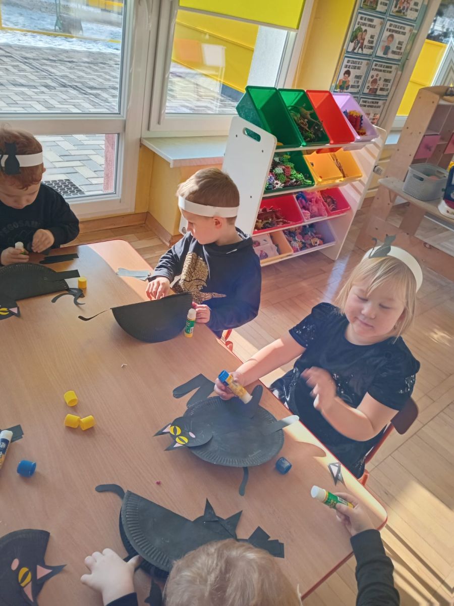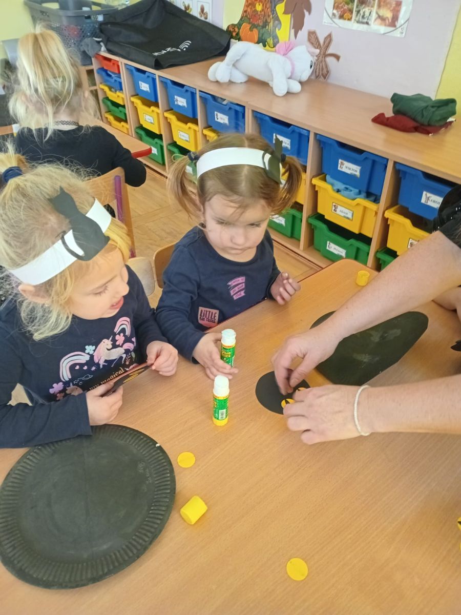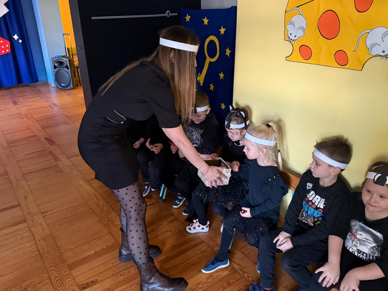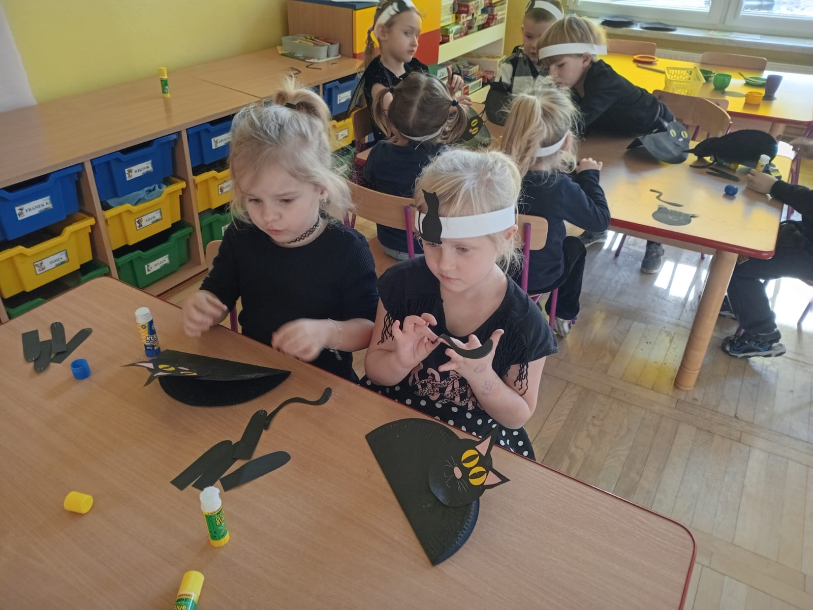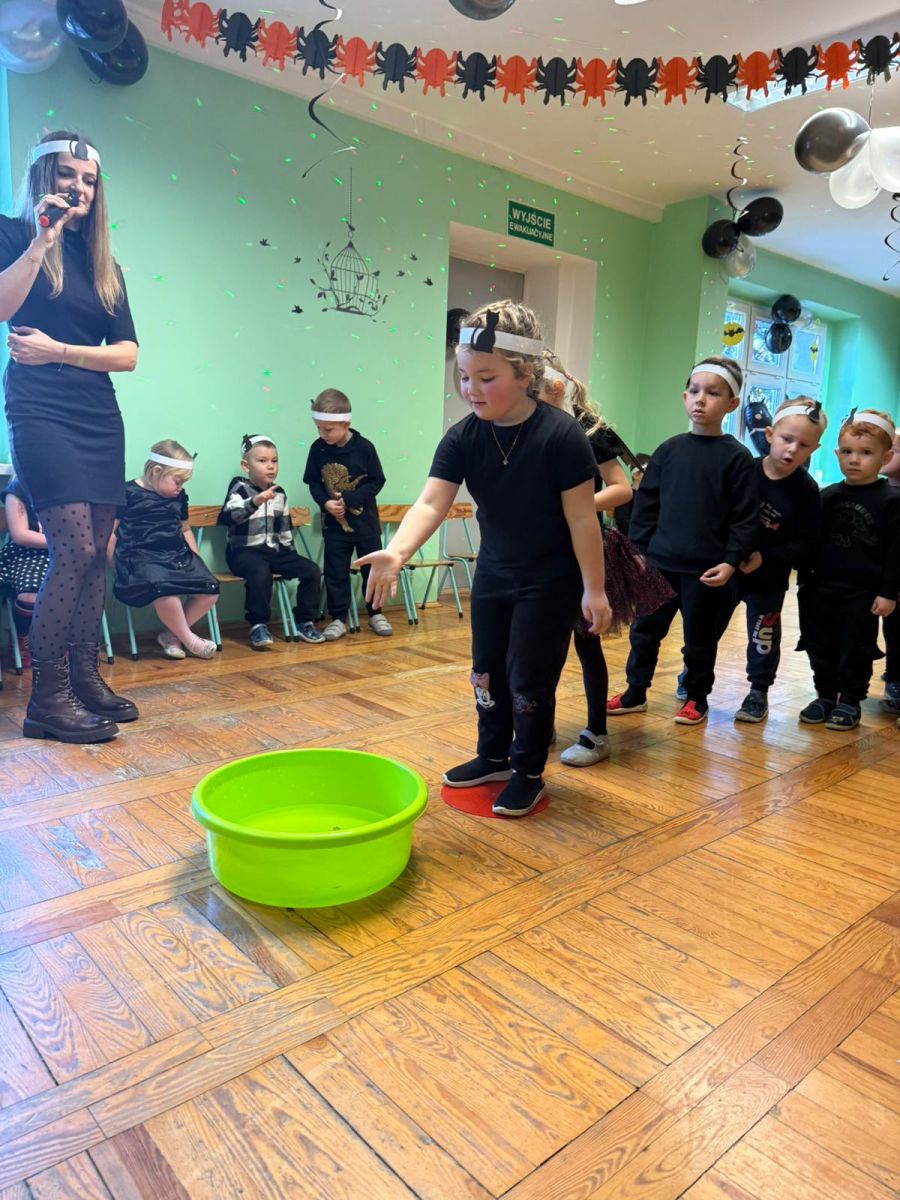 28 listopada w naszym przedszkolu odbyły się radosne i pełne magii Andrzejki. Od samego rana dzieci przeniosły się w świat wróżb, czarów i dobrej zabawy. Na początku spotkania przedszkolaki poznały tradycje andrzejkowe – dowiedziały się, skąd pochodzi zwyczaj wróżenia i dlaczego właśnie w tym dniu próbuje się zajrzeć w przyszłość. Dzieci słuchały z ogromną uwagą, a w sali z każdą chwilą narastała magiczna atmosfera. Następnie obie grupy udały się do przygotowanego „czarodziejskiego kącika”. Tam, przy zaczarowanej kuli, uczyły się specjalnego zaklęcia. Gdy wspólnie je wypowiedziały i kula „ożyła”, mieniąc się kolorami, dzieci mogły wreszcie przystąpić do wyczekiwanych wróżb. Rozpoczęło się odkrywanie przyszłości poprzez zabawy: „Kolory”, „Czarodziejska butelka”, „Grosiki” oraz „Kim będę w przyszłości?”. Wszystkie wróżby wywoływały u dzieci radość i uśmiech na twarzach. Następnie przedszkolaki ruszyły do tańca, bawiąc się wesoło przy ulubionych utworach z dziecięcego repertuaru. Wysłuchały opowiadania „O kotku, który szukał czarnego mleka”, a następnie z wielkim zaangażowaniem odpowiadały na pytania dotyczące treści. Nie zabrakło także zabaw animacyjno-ruchowych, m.in. z liną oraz pełnej emocji zabawy sprawnościowej „Kotki łapią myszki”. Po tylu atrakcjach na dzieci czekał słodko-owocowy poczęstunek, który dodał im energii na kolejne aktywności. Tradycyjne lanie wosku przez ucho czarodziejskiego klucza było kolejnym punktem programu. Powstające z wosku kształty pobudzały wyobraźnię i zachęcały do przepowiadania przyszłości. Na zakończenie wszyscy wykonali urocze czarne kotki z papierowych talerzyków – kreatywne prace plastyczne, które stały się pamiątką tego wyjątkowego, pełnego magii dnia.