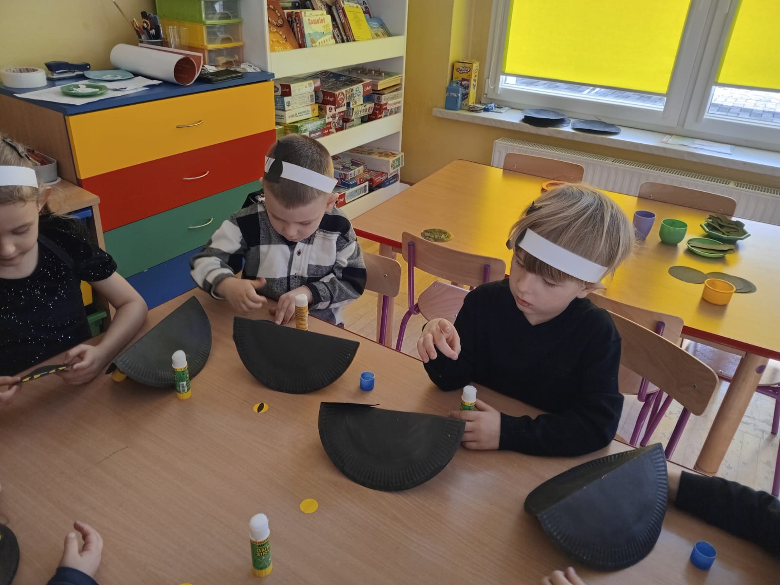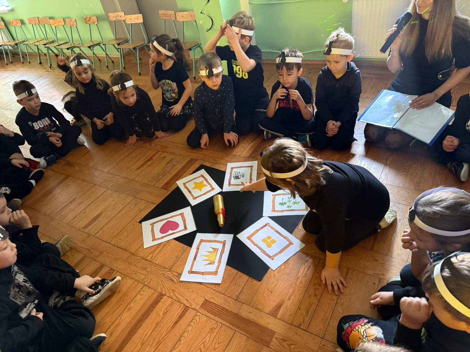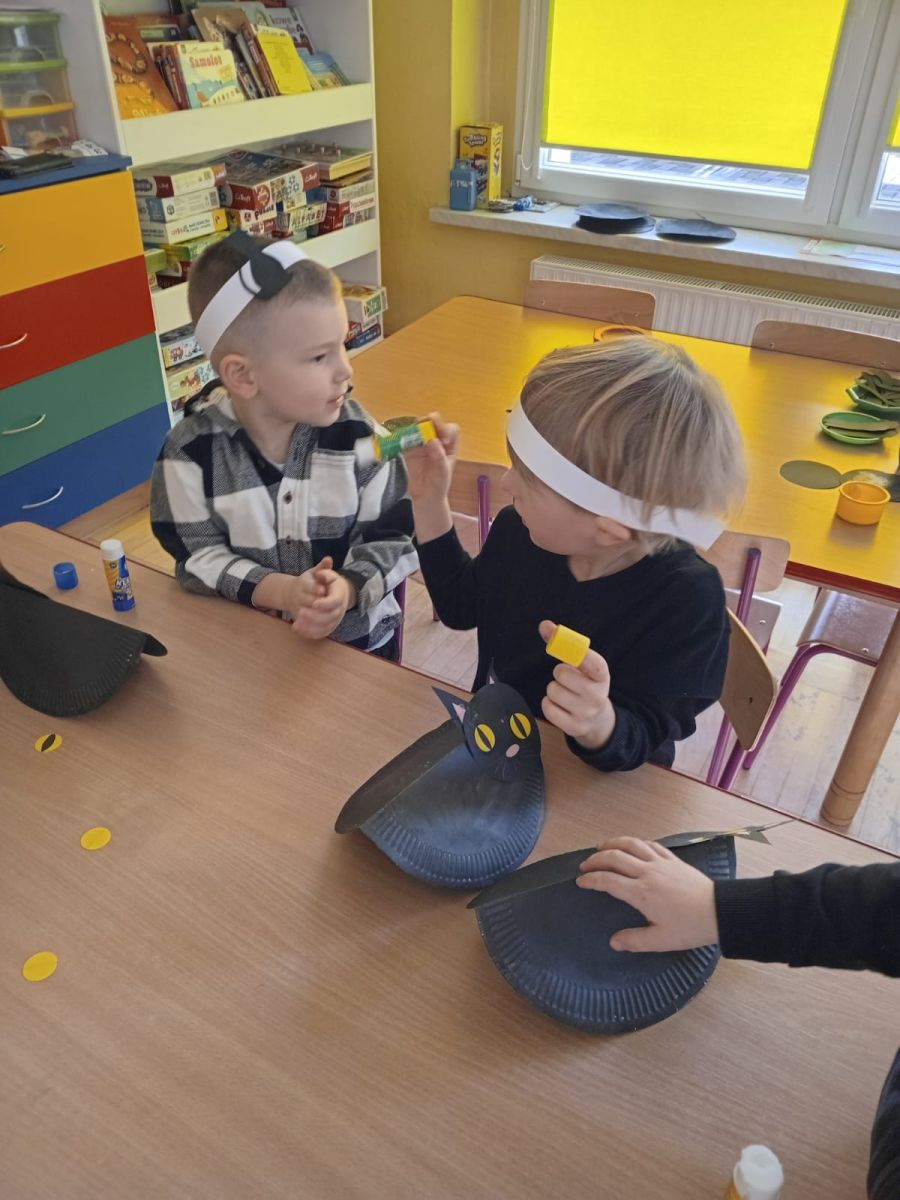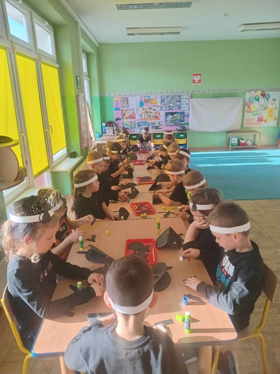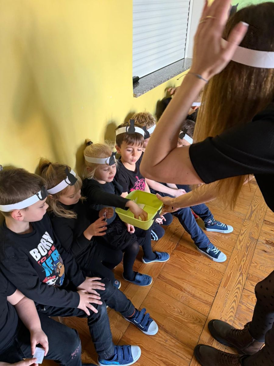 28 listopada w naszym przedszkolu odbyły się radosne i pełne magii Andrzejki. Od samego rana dzieci przeniosły się w świat wróżb, czarów i dobrej zabawy. Na początku spotkania przedszkolaki poznały tradycje andrzejkowe – dowiedziały się, skąd pochodzi zwyczaj wróżenia i dlaczego właśnie w tym dniu próbuje się zajrzeć w przyszłość. Dzieci słuchały z ogromną uwagą, a w sali z każdą chwilą narastała magiczna atmosfera. Następnie obie grupy udały się do przygotowanego „czarodziejskiego kącika”. Tam, przy zaczarowanej kuli, uczyły się specjalnego zaklęcia. Gdy wspólnie je wypowiedziały i kula „ożyła”, mieniąc się kolorami, dzieci mogły wreszcie przystąpić do wyczekiwanych wróżb. Rozpoczęło się odkrywanie przyszłości poprzez zabawy: „Kolory”, „Czarodziejska butelka”, „Grosiki” oraz „Kim będę w przyszłości?”. Wszystkie wróżby wywoływały u dzieci radość i uśmiech na twarzach. Następnie przedszkolaki ruszyły do tańca, bawiąc się wesoło przy ulubionych utworach z dziecięcego repertuaru. Wysłuchały opowiadania „O kotku, który szukał czarnego mleka”, a następnie z wielkim zaangażowaniem odpowiadały na pytania dotyczące treści. Nie zabrakło także zabaw animacyjno-ruchowych, m.in. z liną oraz pełnej emocji zabawy sprawnościowej „Kotki łapią myszki”. Po tylu atrakcjach na dzieci czekał słodko-owocowy poczęstunek, który dodał im energii na kolejne aktywności. Tradycyjne lanie wosku przez ucho czarodziejskiego klucza było kolejnym punktem programu. Powstające z wosku kształty pobudzały wyobraźnię i zachęcały do przepowiadania przyszłości. Na zakończenie wszyscy wykonali urocze czarne kotki z papierowych talerzyków – kreatywne prace plastyczne, które stały się pamiątką tego wyjątkowego, pełnego magii dnia.