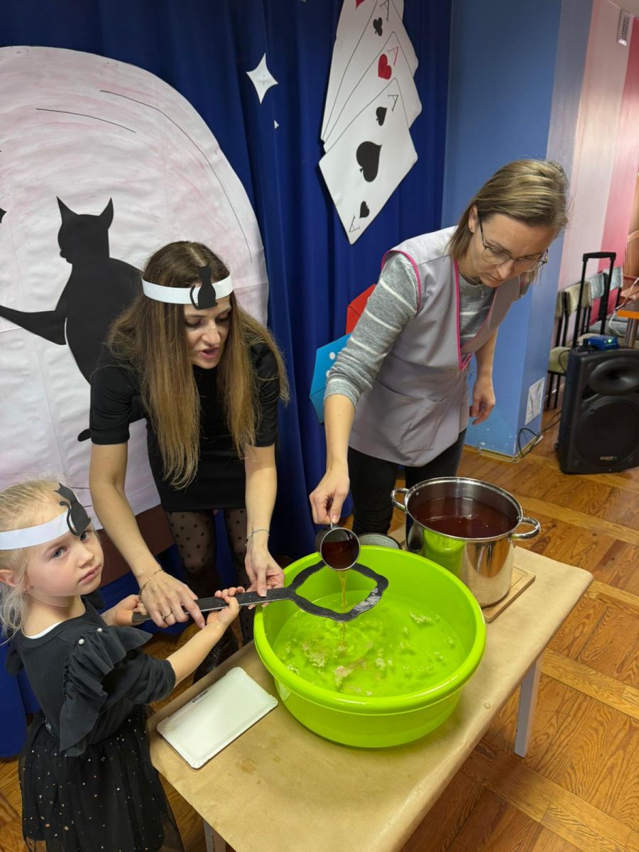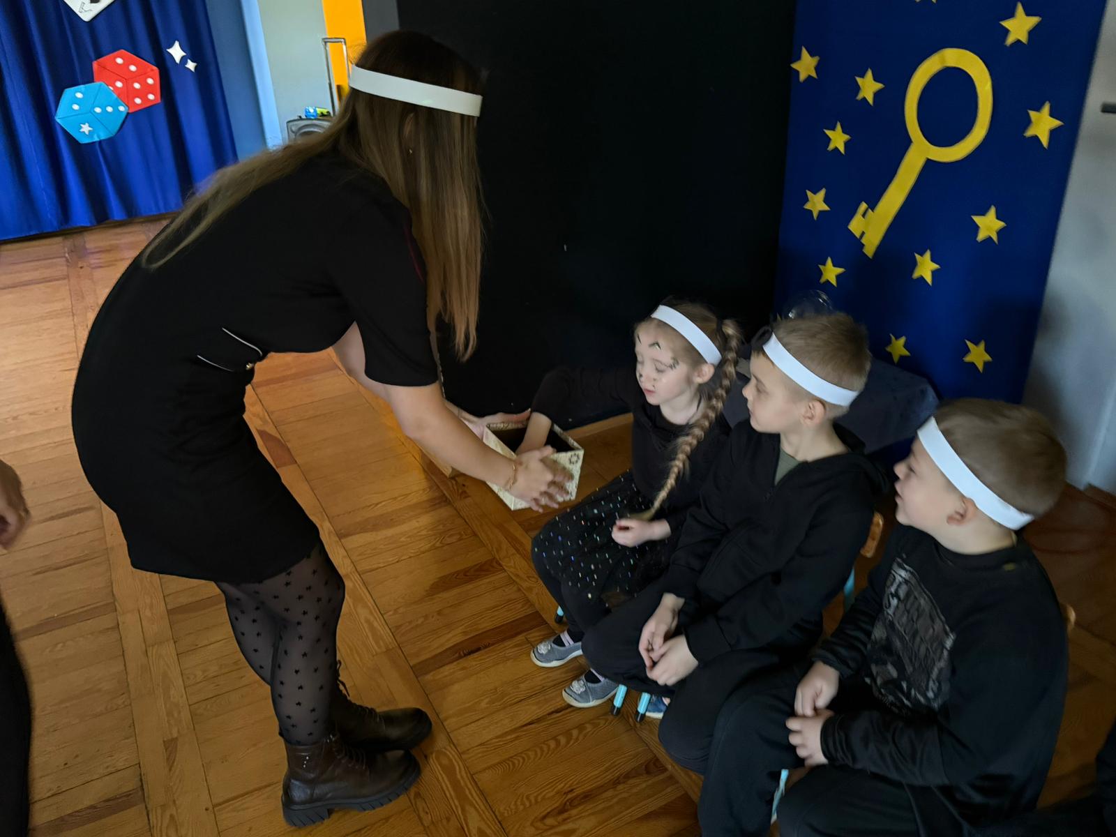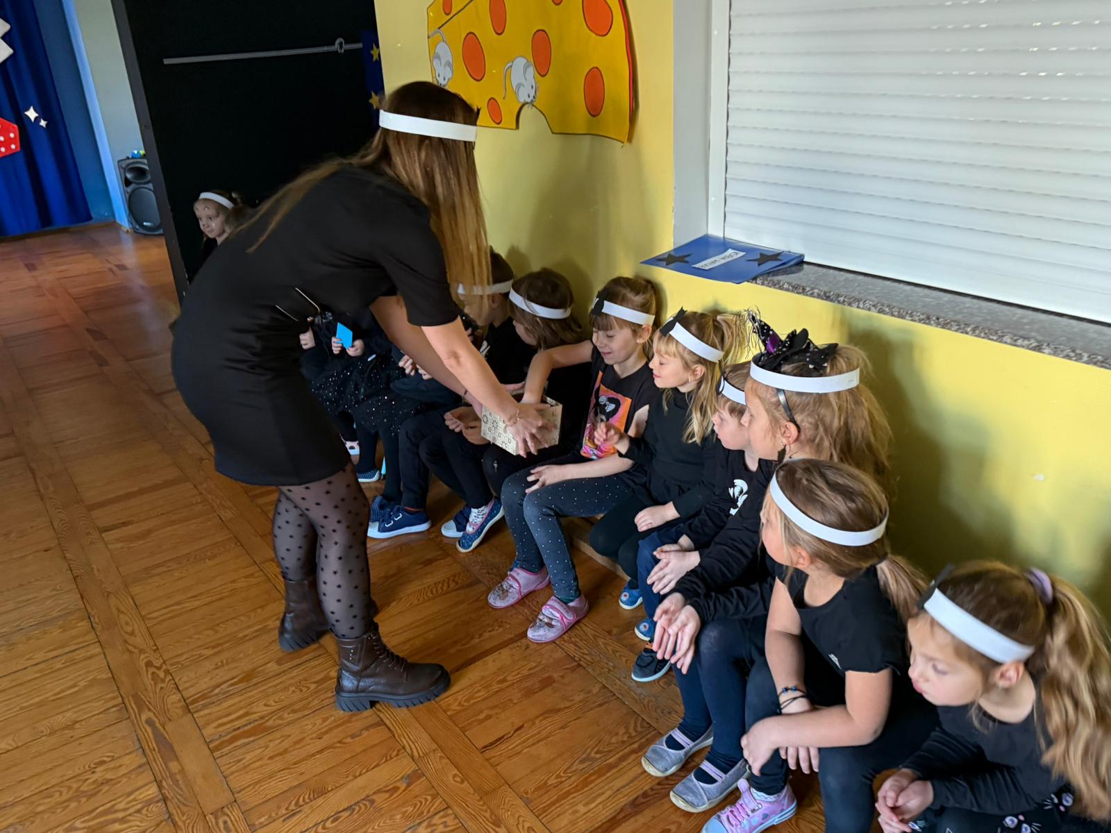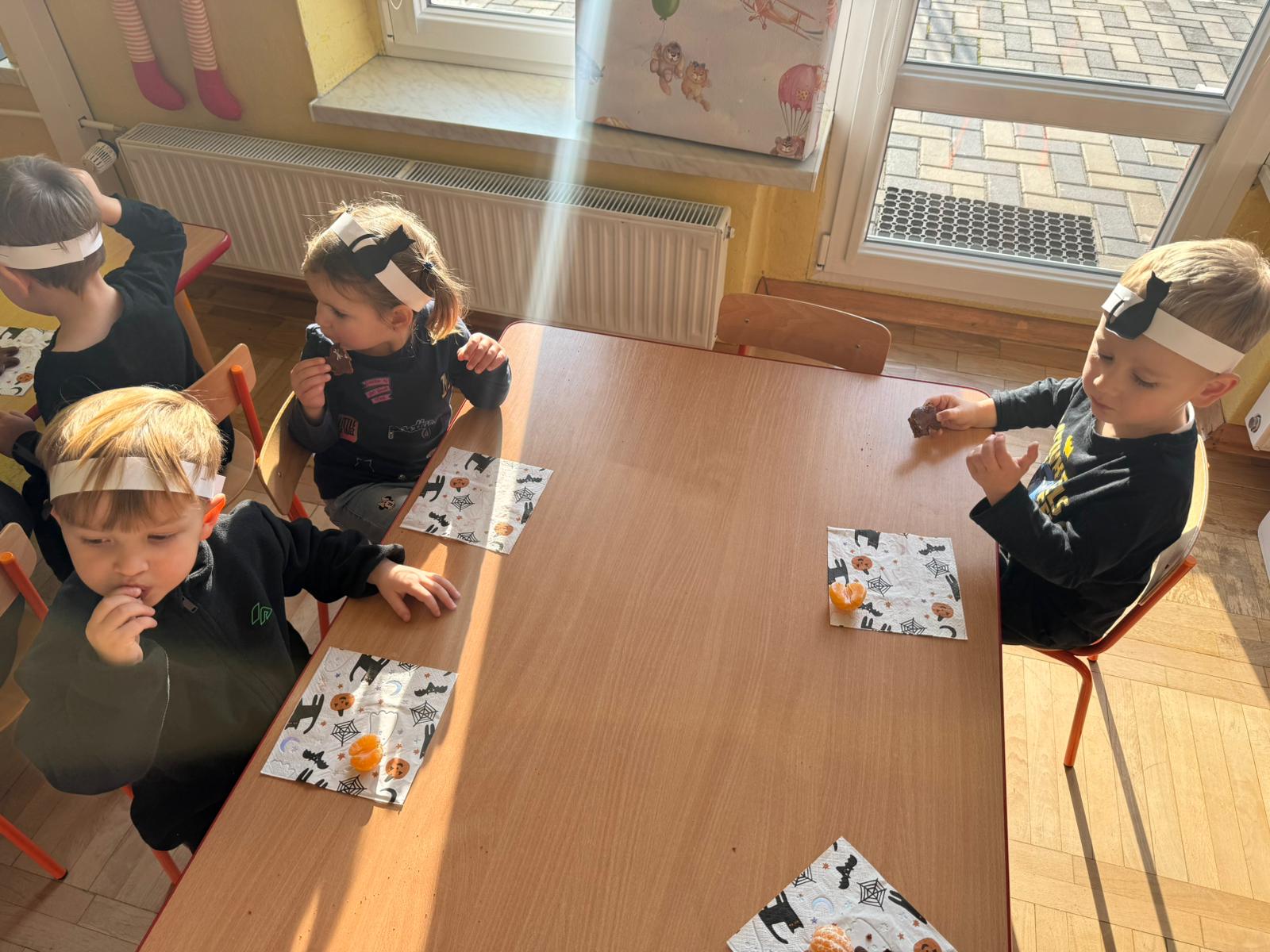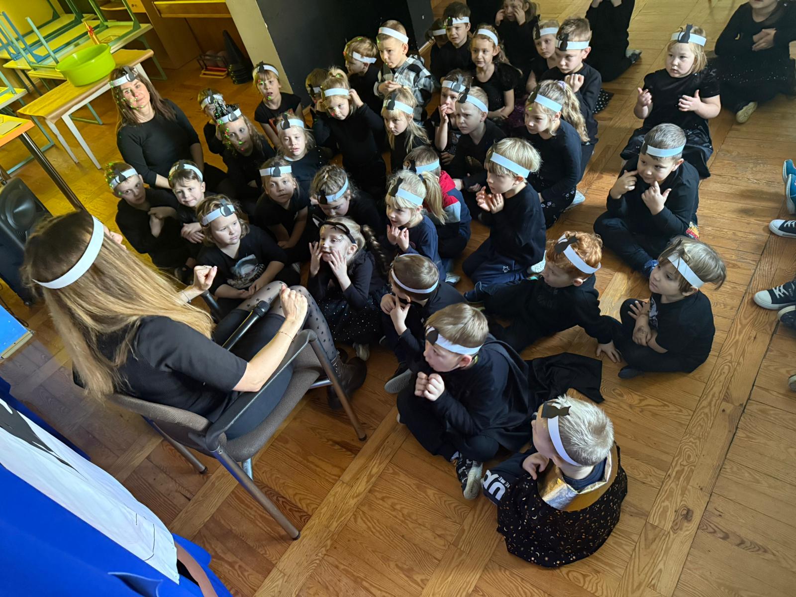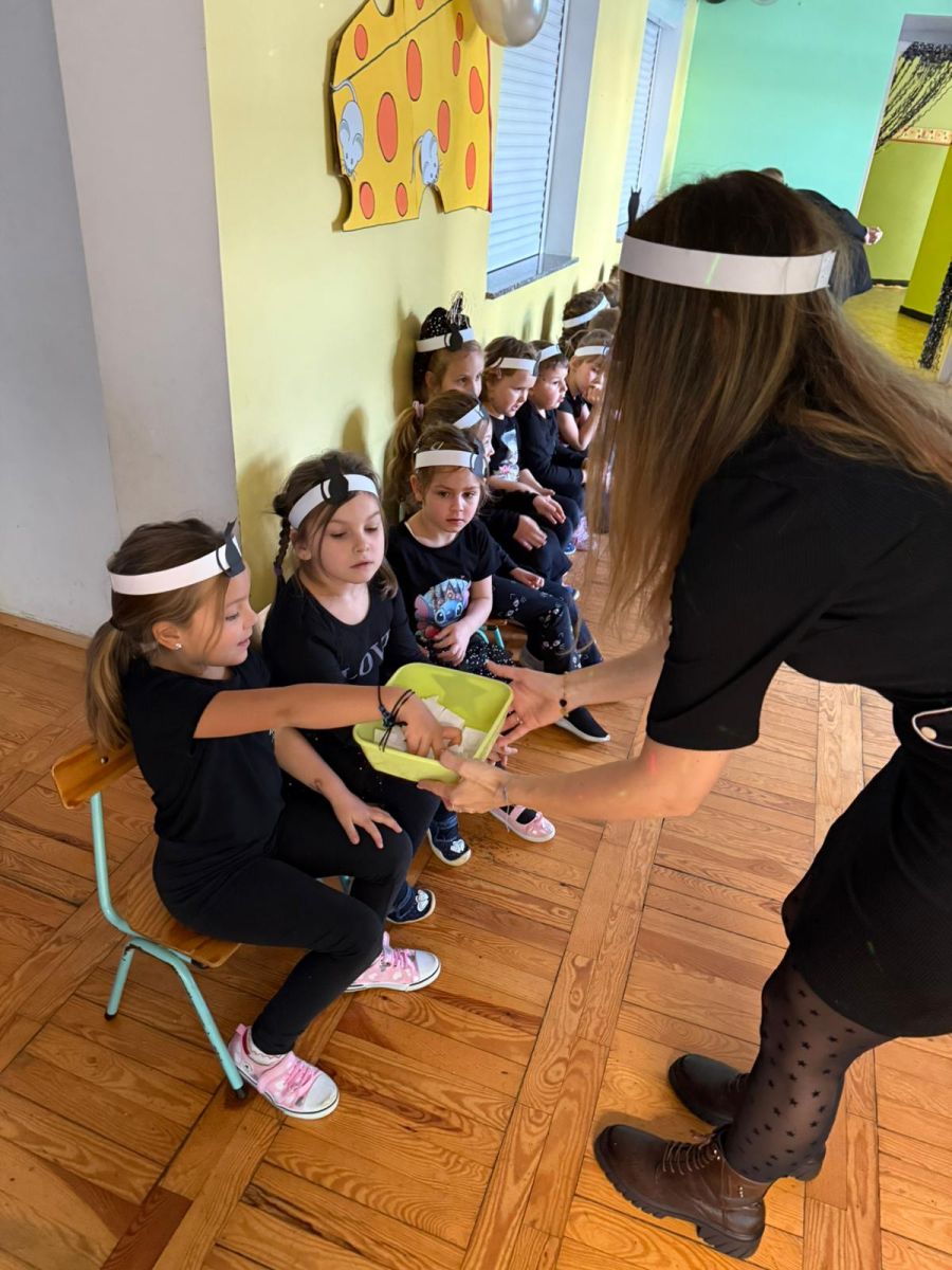 28 listopada w naszym przedszkolu odbyły się radosne i pełne magii Andrzejki. Od samego rana dzieci przeniosły się w świat wróżb, czarów i dobrej zabawy. Na początku spotkania przedszkolaki poznały tradycje andrzejkowe – dowiedziały się, skąd pochodzi zwyczaj wróżenia i dlaczego właśnie w tym dniu próbuje się zajrzeć w przyszłość. Dzieci słuchały z ogromną uwagą, a w sali z każdą chwilą narastała magiczna atmosfera. Następnie obie grupy udały się do przygotowanego „czarodziejskiego kącika”. Tam, przy zaczarowanej kuli, uczyły się specjalnego zaklęcia. Gdy wspólnie je wypowiedziały i kula „ożyła”, mieniąc się kolorami, dzieci mogły wreszcie przystąpić do wyczekiwanych wróżb. Rozpoczęło się odkrywanie przyszłości poprzez zabawy: „Kolory”, „Czarodziejska butelka”, „Grosiki” oraz „Kim będę w przyszłości?”. Wszystkie wróżby wywoływały u dzieci radość i uśmiech na twarzach. Następnie przedszkolaki ruszyły do tańca, bawiąc się wesoło przy ulubionych utworach z dziecięcego repertuaru. Wysłuchały opowiadania „O kotku, który szukał czarnego mleka”, a następnie z wielkim zaangażowaniem odpowiadały na pytania dotyczące treści. Nie zabrakło także zabaw animacyjno-ruchowych, m.in. z liną oraz pełnej emocji zabawy sprawnościowej „Kotki łapią myszki”. Po tylu atrakcjach na dzieci czekał słodko-owocowy poczęstunek, który dodał im energii na kolejne aktywności. Tradycyjne lanie wosku przez ucho czarodziejskiego klucza było kolejnym punktem programu. Powstające z wosku kształty pobudzały wyobraźnię i zachęcały do przepowiadania przyszłości. Na zakończenie wszyscy wykonali urocze czarne kotki z papierowych talerzyków – kreatywne prace plastyczne, które stały się pamiątką tego wyjątkowego, pełnego magii dnia.