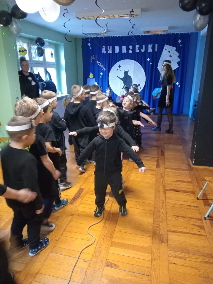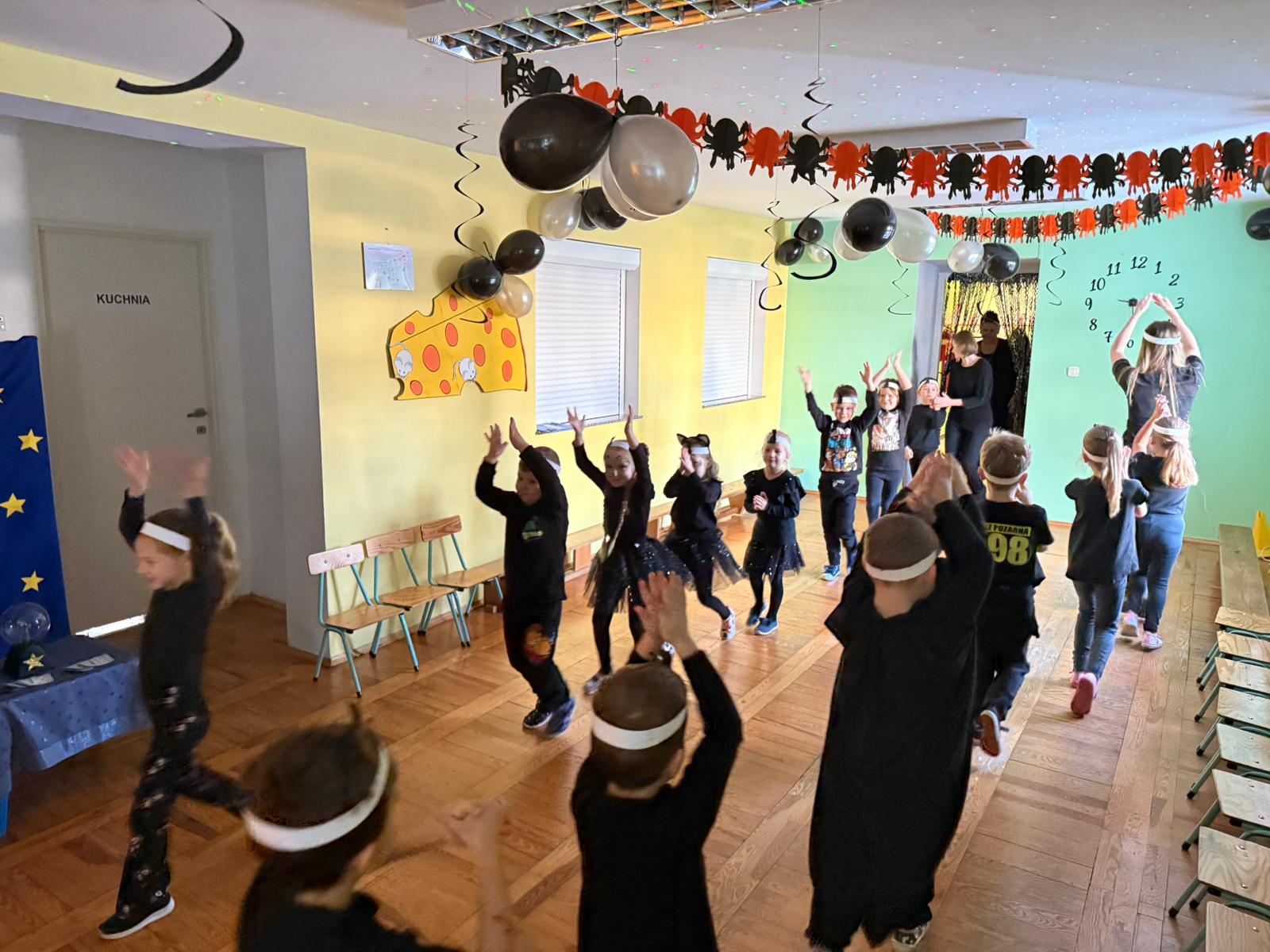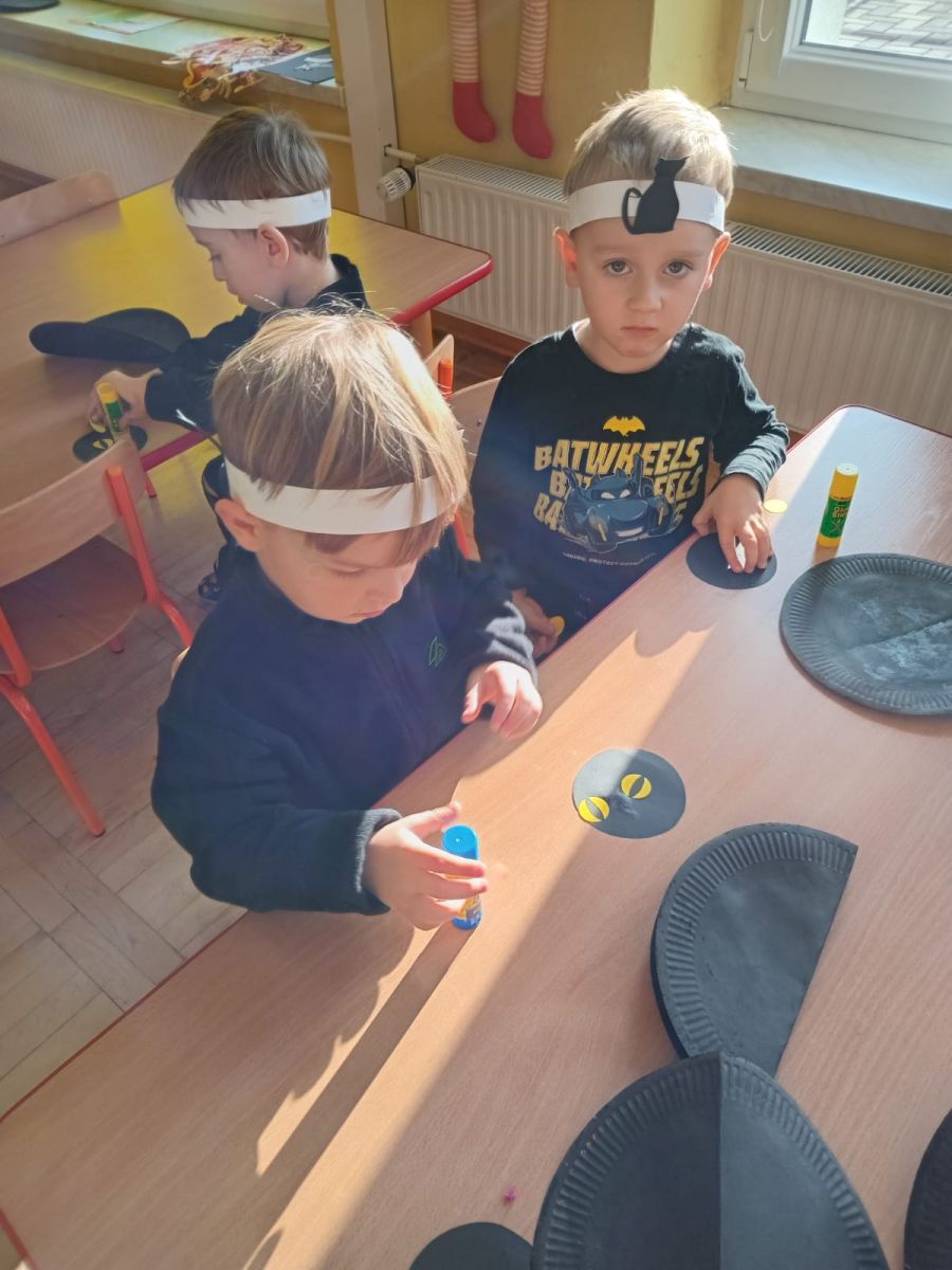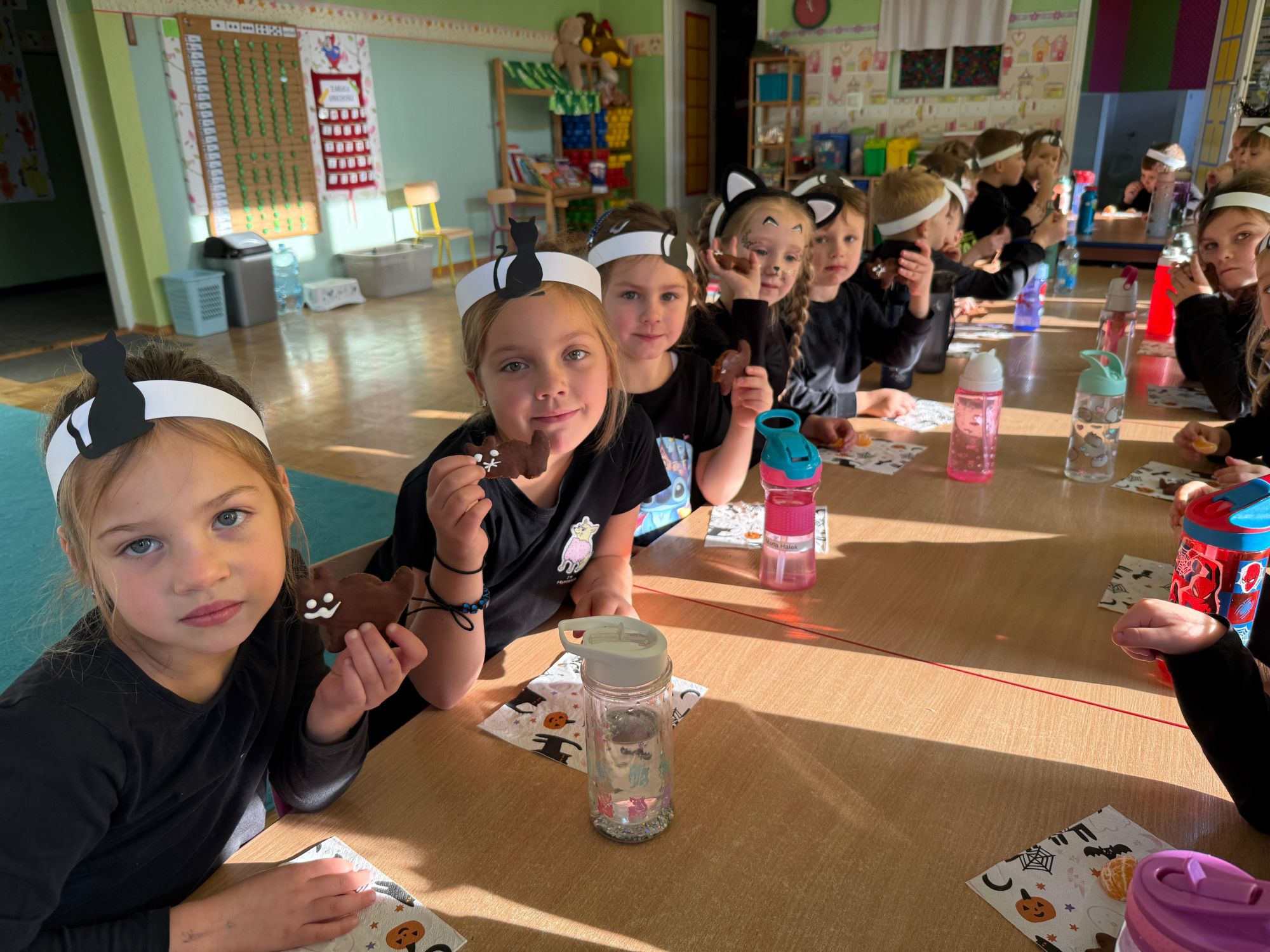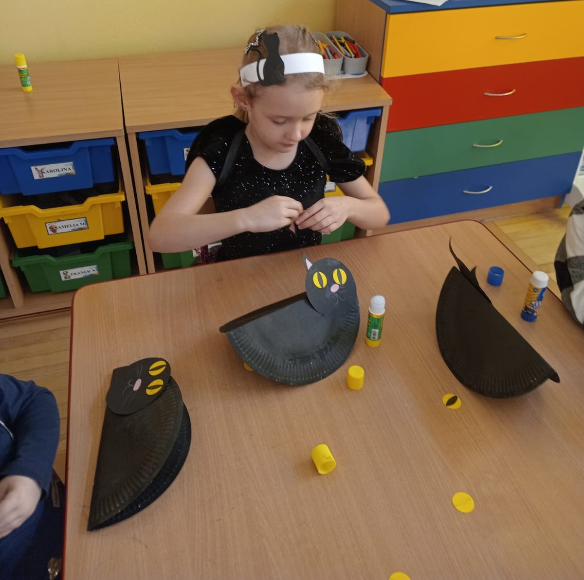 28 listopada w naszym przedszkolu odbyły się radosne i pełne magii Andrzejki. Od samego rana dzieci przeniosły się w świat wróżb, czarów i dobrej zabawy. Na początku spotkania przedszkolaki poznały tradycje andrzejkowe – dowiedziały się, skąd pochodzi zwyczaj wróżenia i dlaczego właśnie w tym dniu próbuje się zajrzeć w przyszłość. Dzieci słuchały z ogromną uwagą, a w sali z każdą chwilą narastała magiczna atmosfera. Następnie obie grupy udały się do przygotowanego „czarodziejskiego kącika”. Tam, przy zaczarowanej kuli, uczyły się specjalnego zaklęcia. Gdy wspólnie je wypowiedziały i kula „ożyła”, mieniąc się kolorami, dzieci mogły wreszcie przystąpić do wyczekiwanych wróżb. Rozpoczęło się odkrywanie przyszłości poprzez zabawy: „Kolory”, „Czarodziejska butelka”, „Grosiki” oraz „Kim będę w przyszłości?”. Wszystkie wróżby wywoływały u dzieci radość i uśmiech na twarzach. Następnie przedszkolaki ruszyły do tańca, bawiąc się wesoło przy ulubionych utworach z dziecięcego repertuaru. Wysłuchały opowiadania „O kotku, który szukał czarnego mleka”, a następnie z wielkim zaangażowaniem odpowiadały na pytania dotyczące treści. Nie zabrakło także zabaw animacyjno-ruchowych, m.in. z liną oraz pełnej emocji zabawy sprawnościowej „Kotki łapią myszki”. Po tylu atrakcjach na dzieci czekał słodko-owocowy poczęstunek, który dodał im energii na kolejne aktywności. Tradycyjne lanie wosku przez ucho czarodziejskiego klucza było kolejnym punktem programu. Powstające z wosku kształty pobudzały wyobraźnię i zachęcały do przepowiadania przyszłości. Na zakończenie wszyscy wykonali urocze czarne kotki z papierowych talerzyków – kreatywne prace plastyczne, które stały się pamiątką tego wyjątkowego, pełnego magii dnia.