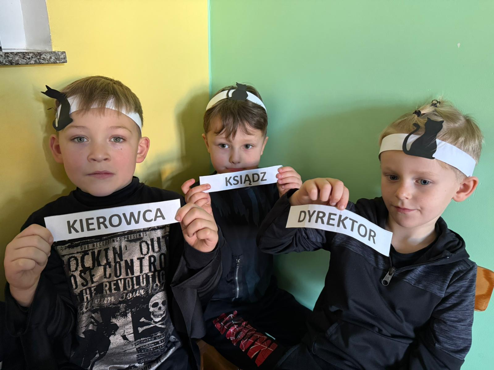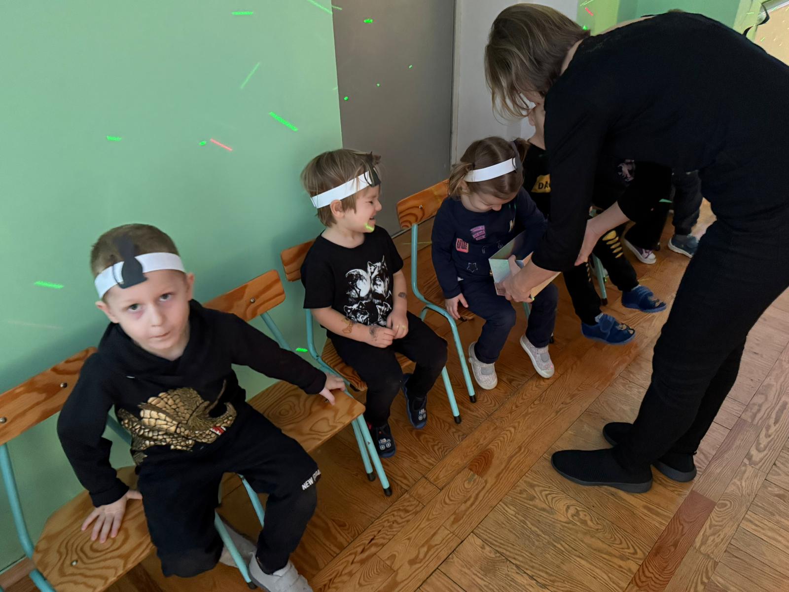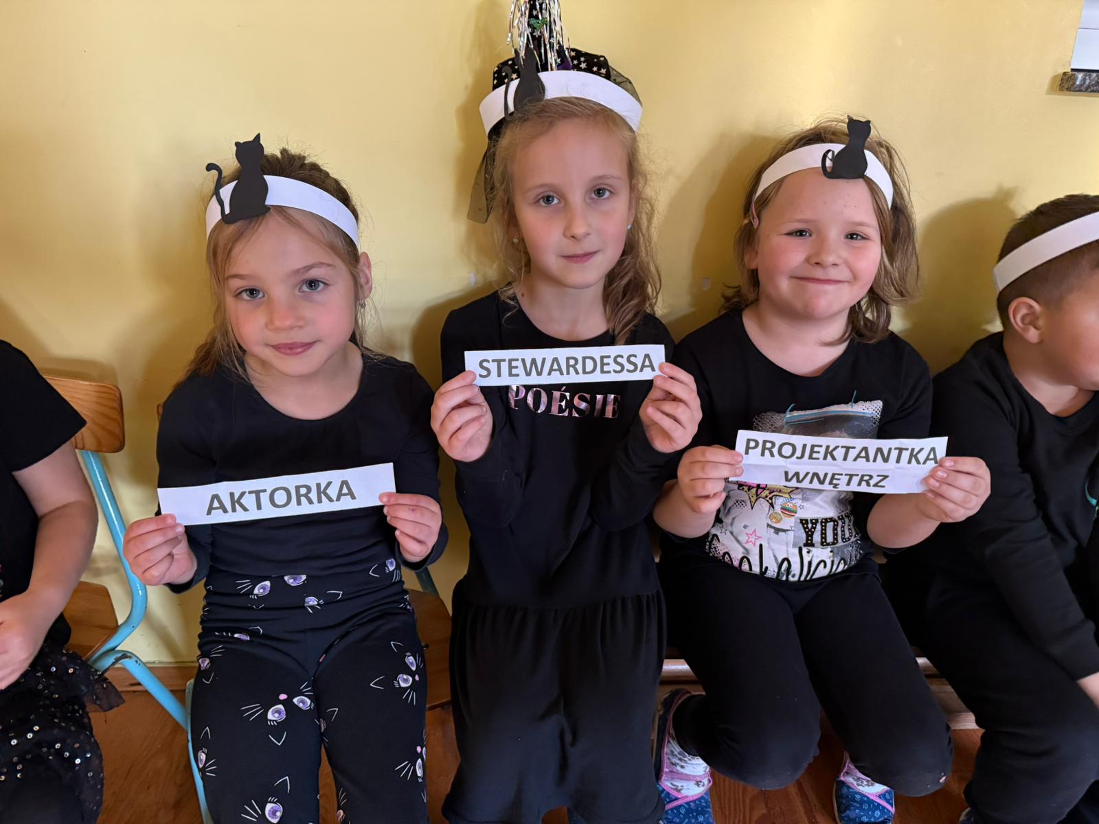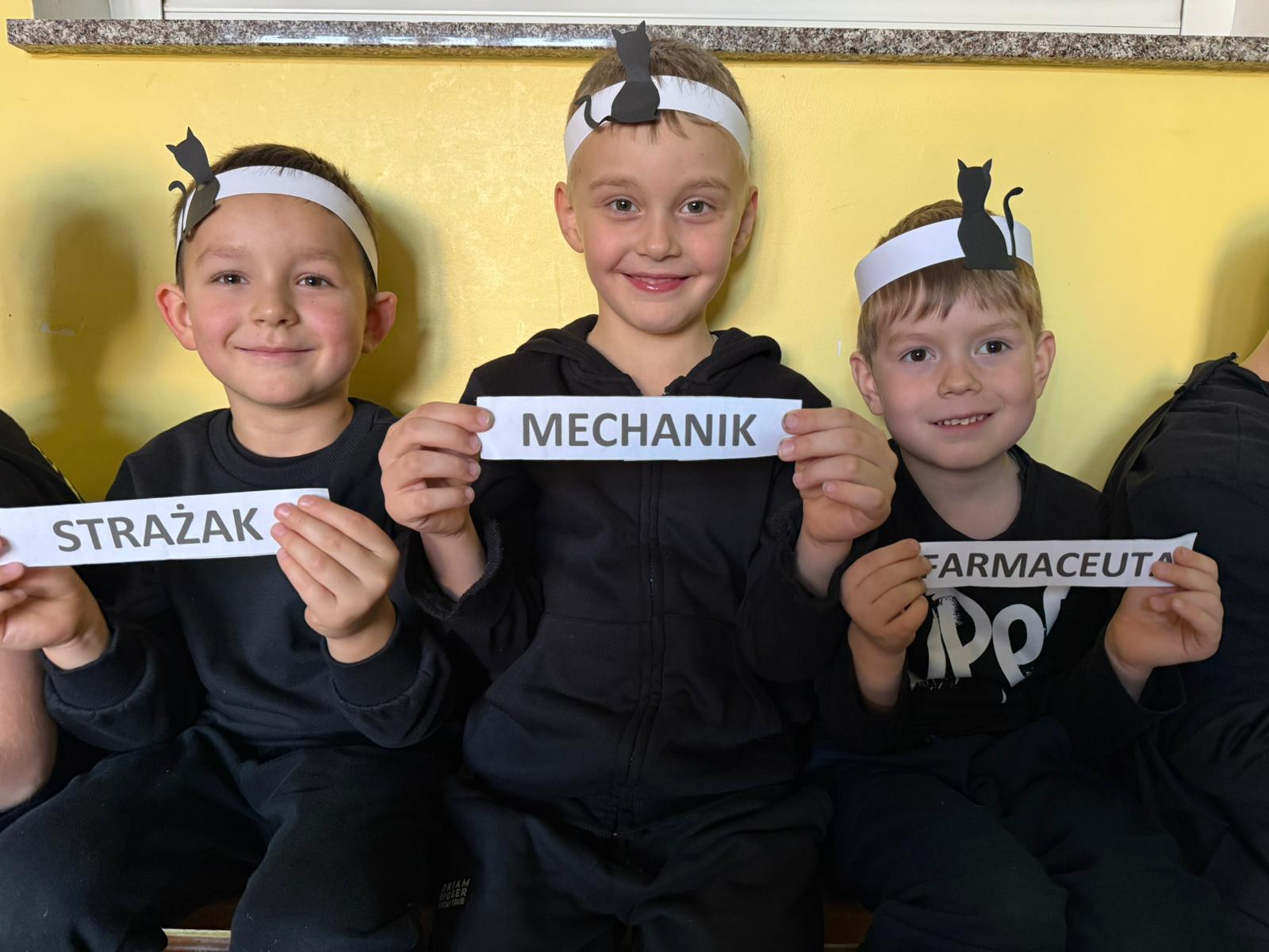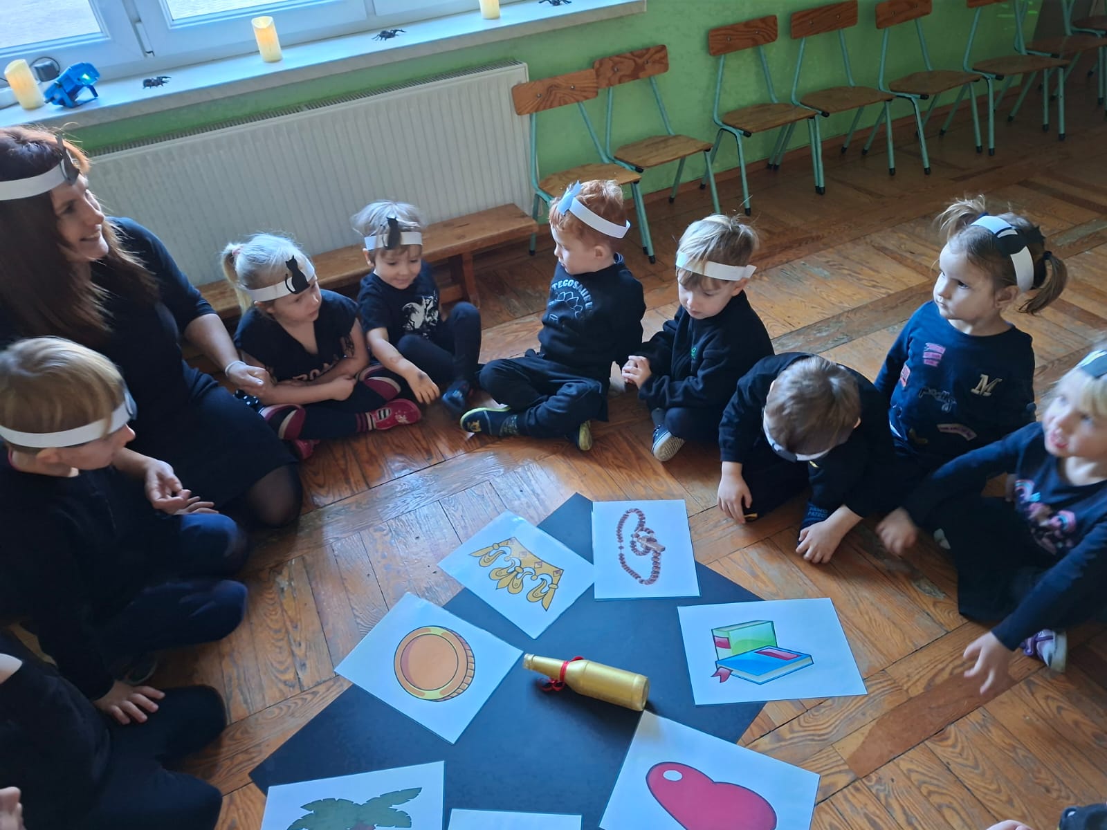 28 listopada w naszym przedszkolu odbyły się radosne i pełne magii Andrzejki. Od samego rana dzieci przeniosły się w świat wróżb, czarów i dobrej zabawy. Na początku spotkania przedszkolaki poznały tradycje andrzejkowe – dowiedziały się, skąd pochodzi zwyczaj wróżenia i dlaczego właśnie w tym dniu próbuje się zajrzeć w przyszłość. Dzieci słuchały z ogromną uwagą, a w sali z każdą chwilą narastała magiczna atmosfera. Następnie obie grupy udały się do przygotowanego „czarodziejskiego kącika”. Tam, przy zaczarowanej kuli, uczyły się specjalnego zaklęcia. Gdy wspólnie je wypowiedziały i kula „ożyła”, mieniąc się kolorami, dzieci mogły wreszcie przystąpić do wyczekiwanych wróżb. Rozpoczęło się odkrywanie przyszłości poprzez zabawy: „Kolory”, „Czarodziejska butelka”, „Grosiki” oraz „Kim będę w przyszłości?”. Wszystkie wróżby wywoływały u dzieci radość i uśmiech na twarzach. Następnie przedszkolaki ruszyły do tańca, bawiąc się wesoło przy ulubionych utworach z dziecięcego repertuaru. Wysłuchały opowiadania „O kotku, który szukał czarnego mleka”, a następnie z wielkim zaangażowaniem odpowiadały na pytania dotyczące treści. Nie zabrakło także zabaw animacyjno-ruchowych, m.in. z liną oraz pełnej emocji zabawy sprawnościowej „Kotki łapią myszki”. Po tylu atrakcjach na dzieci czekał słodko-owocowy poczęstunek, który dodał im energii na kolejne aktywności. Tradycyjne lanie wosku przez ucho czarodziejskiego klucza było kolejnym punktem programu. Powstające z wosku kształty pobudzały wyobraźnię i zachęcały do przepowiadania przyszłości. Na zakończenie wszyscy wykonali urocze czarne kotki z papierowych talerzyków – kreatywne prace plastyczne, które stały się pamiątką tego wyjątkowego, pełnego magii dnia.