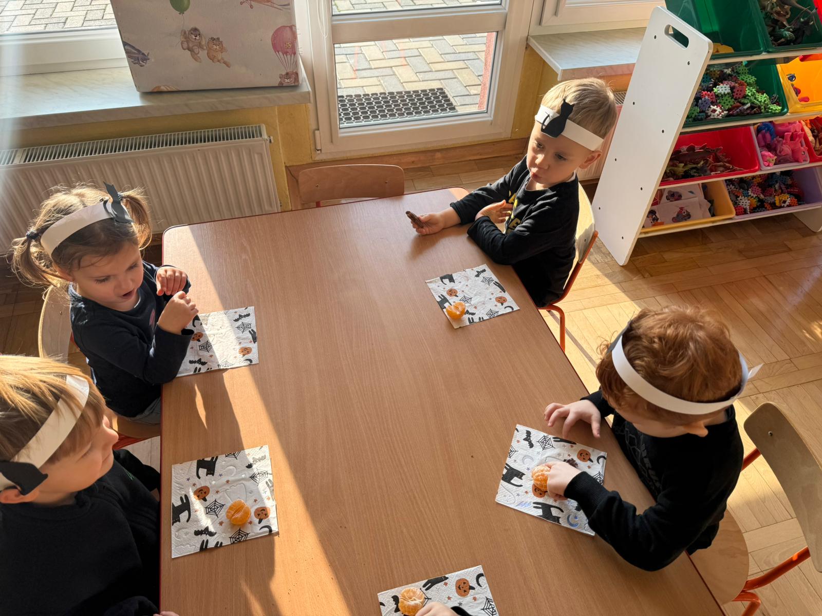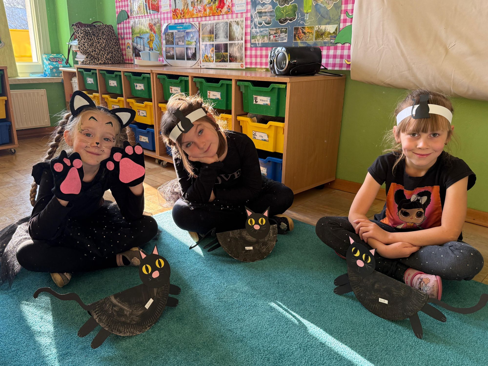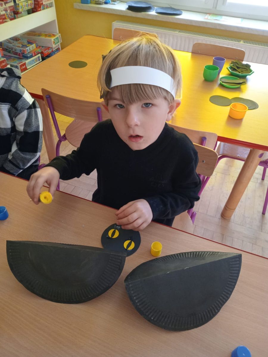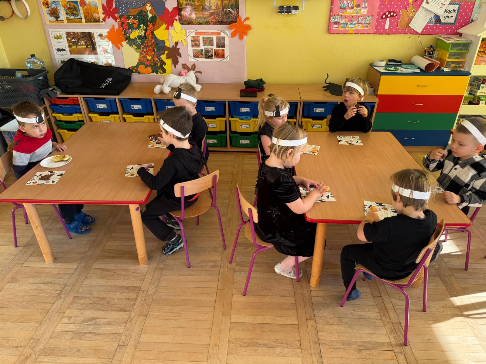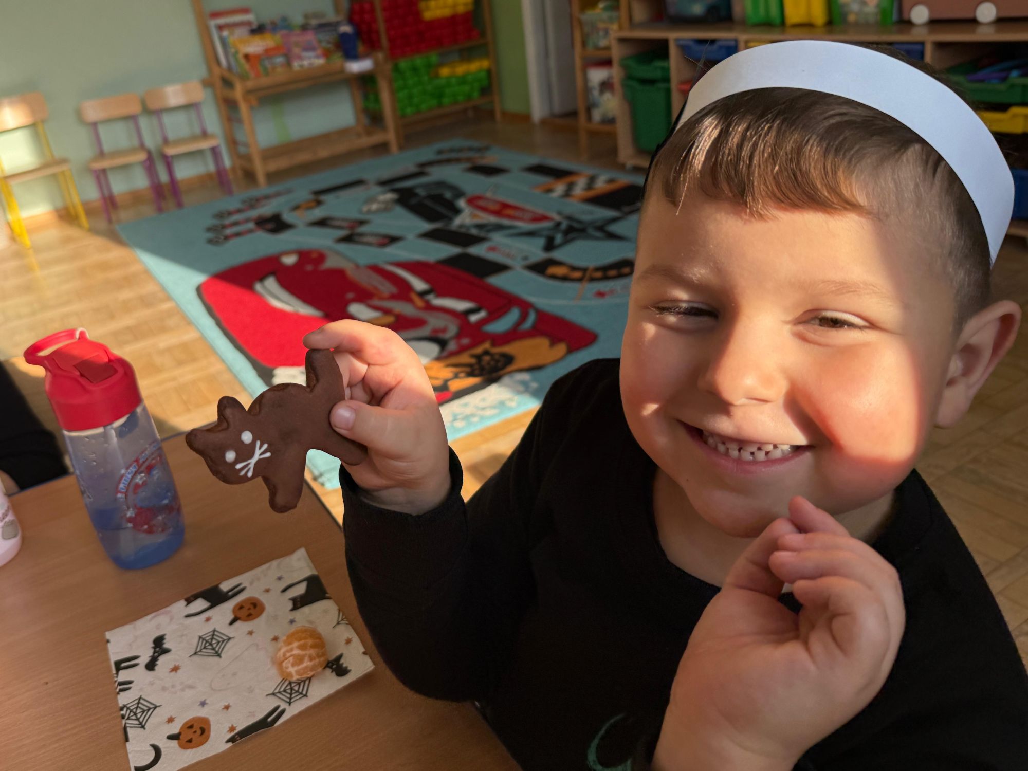 28 listopada w naszym przedszkolu odbyły się radosne i pełne magii Andrzejki. Od samego rana dzieci przeniosły się w świat wróżb, czarów i dobrej zabawy. Na początku spotkania przedszkolaki poznały tradycje andrzejkowe – dowiedziały się, skąd pochodzi zwyczaj wróżenia i dlaczego właśnie w tym dniu próbuje się zajrzeć w przyszłość. Dzieci słuchały z ogromną uwagą, a w sali z każdą chwilą narastała magiczna atmosfera. Następnie obie grupy udały się do przygotowanego „czarodziejskiego kącika”. Tam, przy zaczarowanej kuli, uczyły się specjalnego zaklęcia. Gdy wspólnie je wypowiedziały i kula „ożyła”, mieniąc się kolorami, dzieci mogły wreszcie przystąpić do wyczekiwanych wróżb. Rozpoczęło się odkrywanie przyszłości poprzez zabawy: „Kolory”, „Czarodziejska butelka”, „Grosiki” oraz „Kim będę w przyszłości?”. Wszystkie wróżby wywoływały u dzieci radość i uśmiech na twarzach. Następnie przedszkolaki ruszyły do tańca, bawiąc się wesoło przy ulubionych utworach z dziecięcego repertuaru. Wysłuchały opowiadania „O kotku, który szukał czarnego mleka”, a następnie z wielkim zaangażowaniem odpowiadały na pytania dotyczące treści. Nie zabrakło także zabaw animacyjno-ruchowych, m.in. z liną oraz pełnej emocji zabawy sprawnościowej „Kotki łapią myszki”. Po tylu atrakcjach na dzieci czekał słodko-owocowy poczęstunek, który dodał im energii na kolejne aktywności. Tradycyjne lanie wosku przez ucho czarodziejskiego klucza było kolejnym punktem programu. Powstające z wosku kształty pobudzały wyobraźnię i zachęcały do przepowiadania przyszłości. Na zakończenie wszyscy wykonali urocze czarne kotki z papierowych talerzyków – kreatywne prace plastyczne, które stały się pamiątką tego wyjątkowego, pełnego magii dnia.