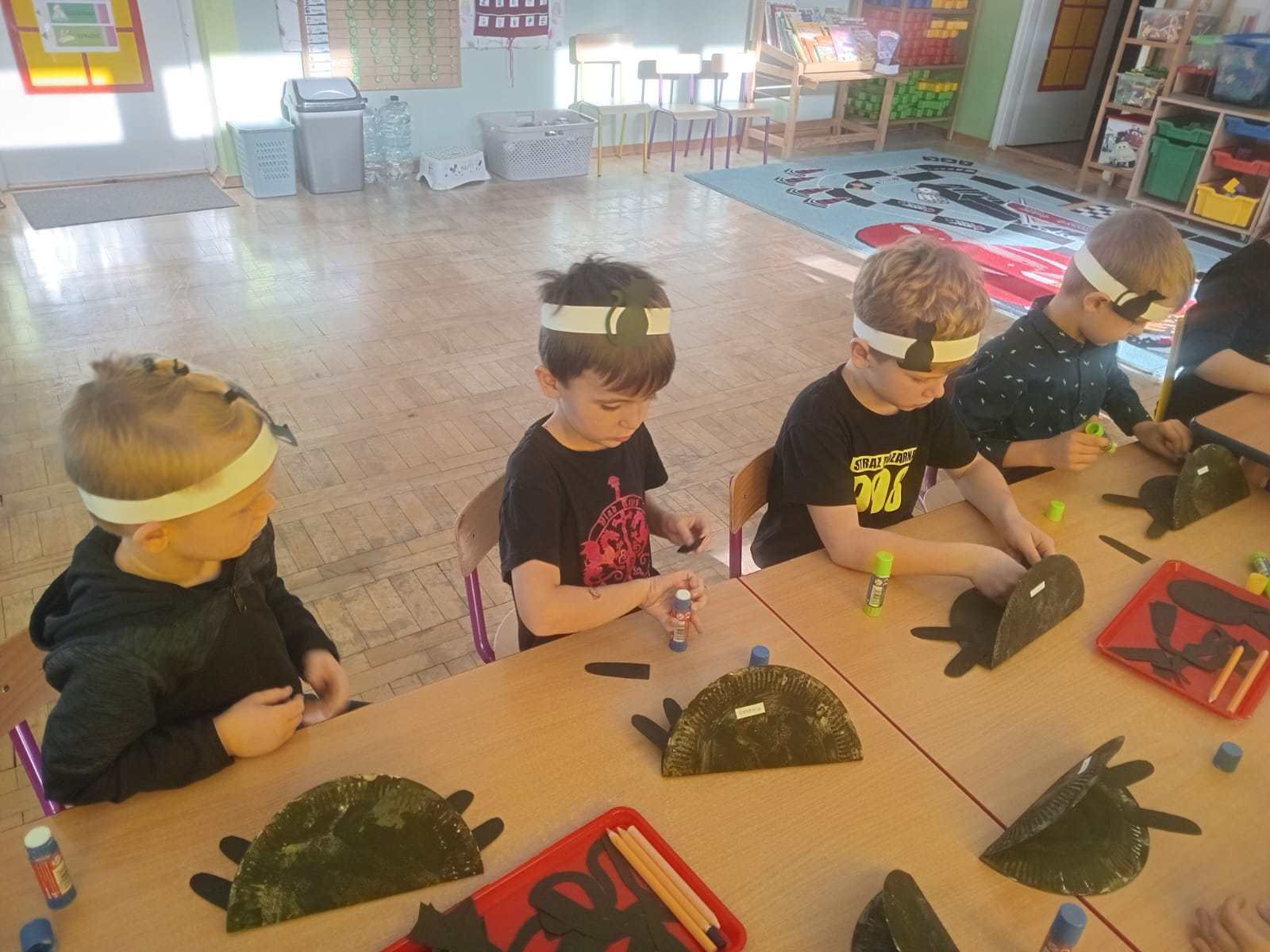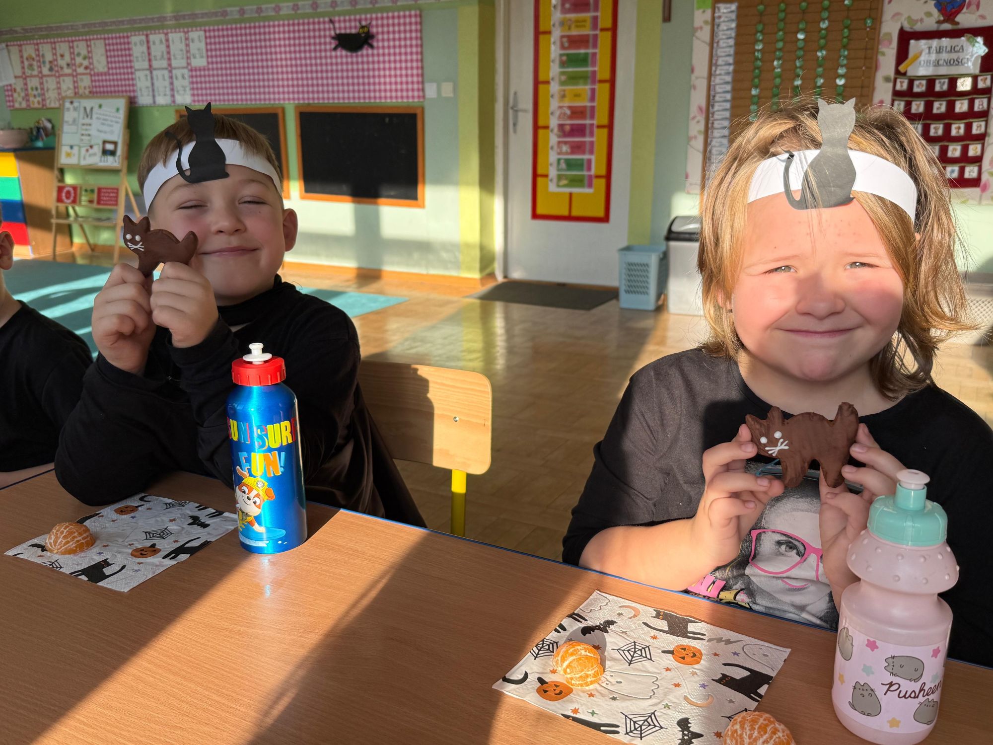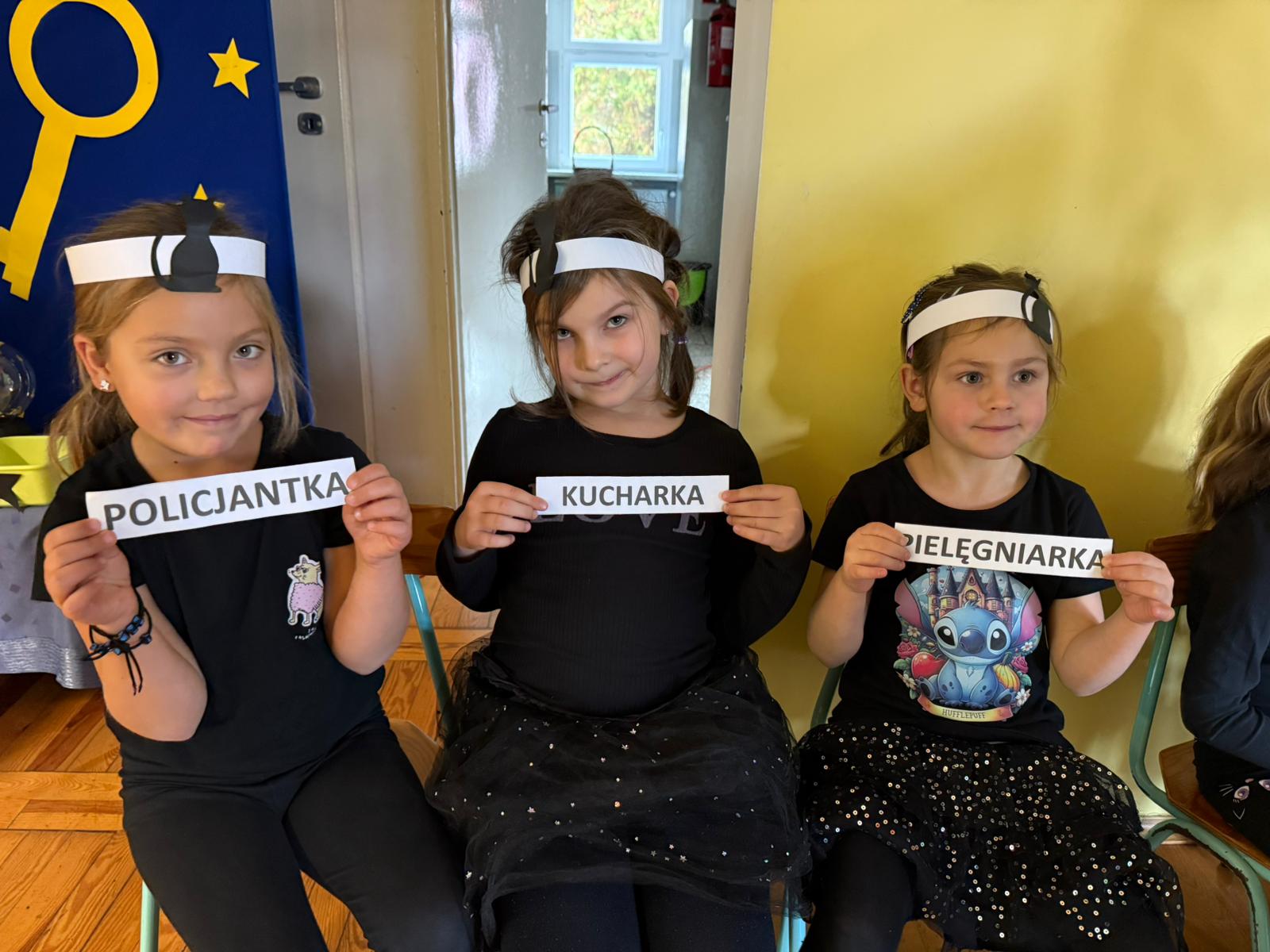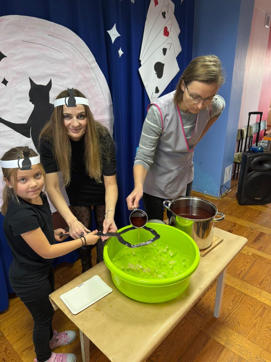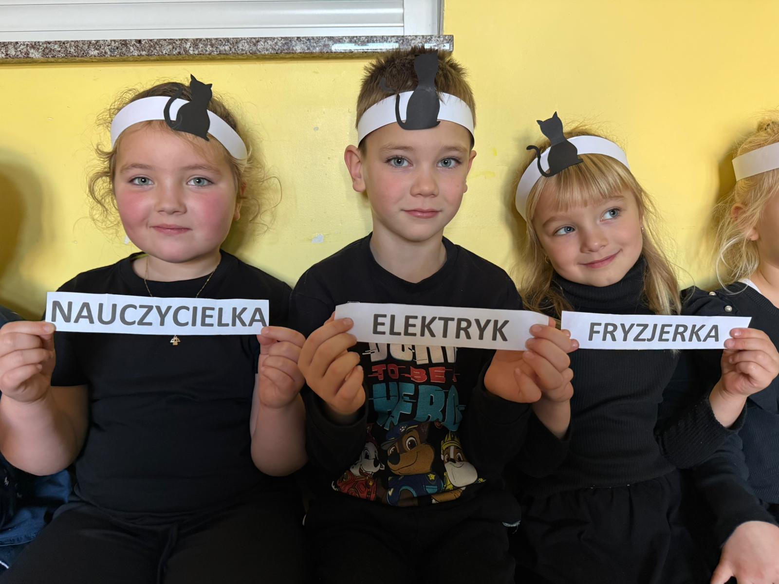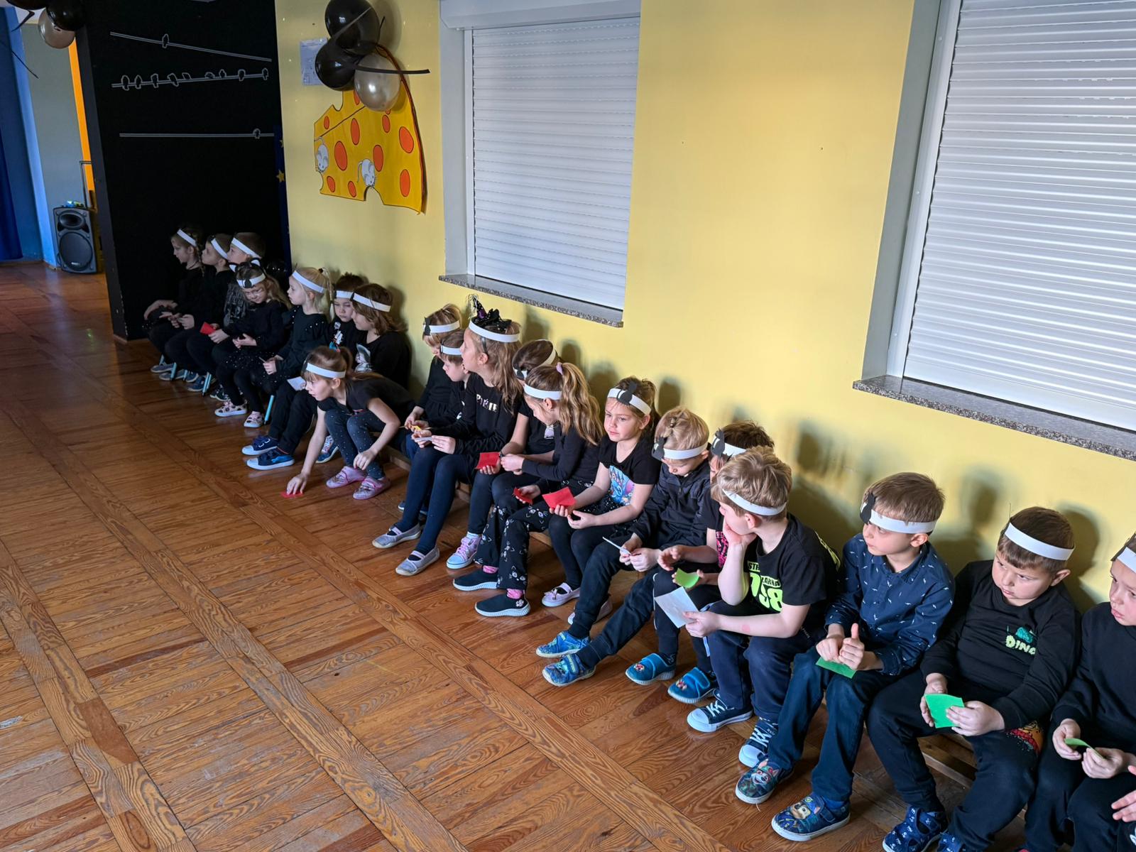 28 listopada w naszym przedszkolu odbyły się radosne i pełne magii Andrzejki. Od samego rana dzieci przeniosły się w świat wróżb, czarów i dobrej zabawy. Na początku spotkania przedszkolaki poznały tradycje andrzejkowe – dowiedziały się, skąd pochodzi zwyczaj wróżenia i dlaczego właśnie w tym dniu próbuje się zajrzeć w przyszłość. Dzieci słuchały z ogromną uwagą, a w sali z każdą chwilą narastała magiczna atmosfera. Następnie obie grupy udały się do przygotowanego „czarodziejskiego kącika”. Tam, przy zaczarowanej kuli, uczyły się specjalnego zaklęcia. Gdy wspólnie je wypowiedziały i kula „ożyła”, mieniąc się kolorami, dzieci mogły wreszcie przystąpić do wyczekiwanych wróżb. Rozpoczęło się odkrywanie przyszłości poprzez zabawy: „Kolory”, „Czarodziejska butelka”, „Grosiki” oraz „Kim będę w przyszłości?”. Wszystkie wróżby wywoływały u dzieci radość i uśmiech na twarzach. Następnie przedszkolaki ruszyły do tańca, bawiąc się wesoło przy ulubionych utworach z dziecięcego repertuaru. Wysłuchały opowiadania „O kotku, który szukał czarnego mleka”, a następnie z wielkim zaangażowaniem odpowiadały na pytania dotyczące treści. Nie zabrakło także zabaw animacyjno-ruchowych, m.in. z liną oraz pełnej emocji zabawy sprawnościowej „Kotki łapią myszki”. Po tylu atrakcjach na dzieci czekał słodko-owocowy poczęstunek, który dodał im energii na kolejne aktywności. Tradycyjne lanie wosku przez ucho czarodziejskiego klucza było kolejnym punktem programu. Powstające z wosku kształty pobudzały wyobraźnię i zachęcały do przepowiadania przyszłości. Na zakończenie wszyscy wykonali urocze czarne kotki z papierowych talerzyków – kreatywne prace plastyczne, które stały się pamiątką tego wyjątkowego, pełnego magii dnia.