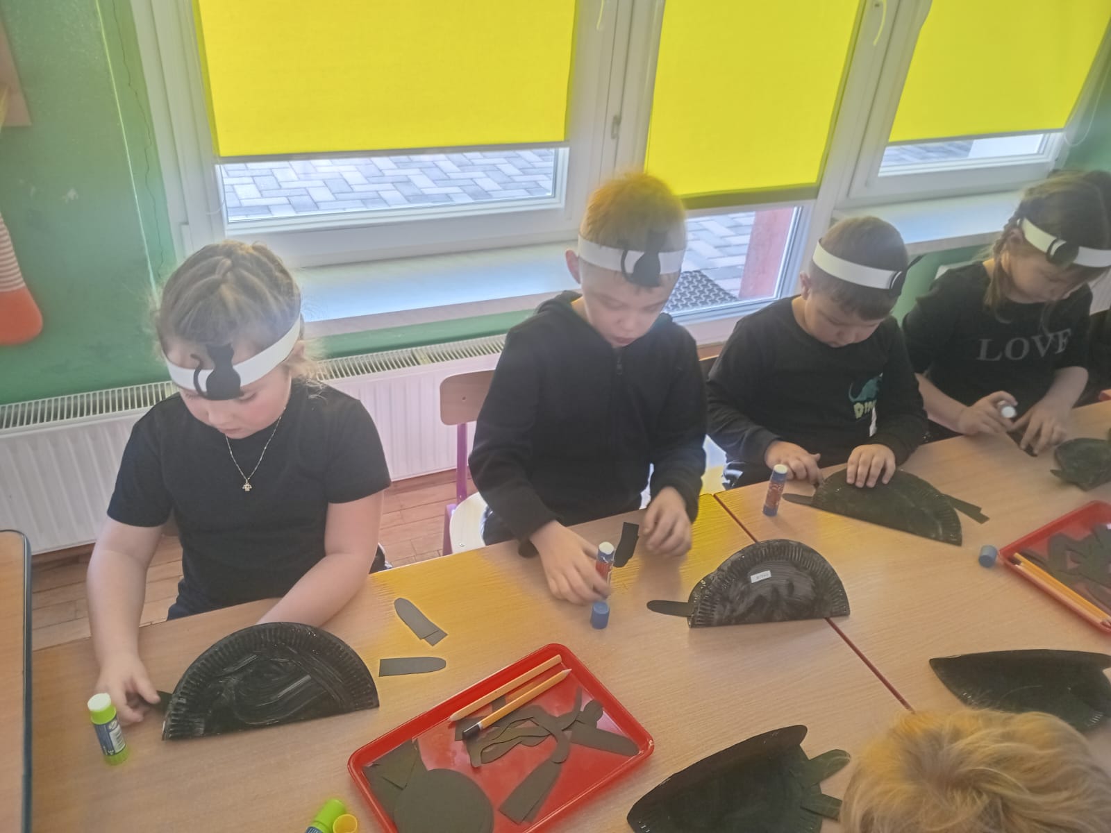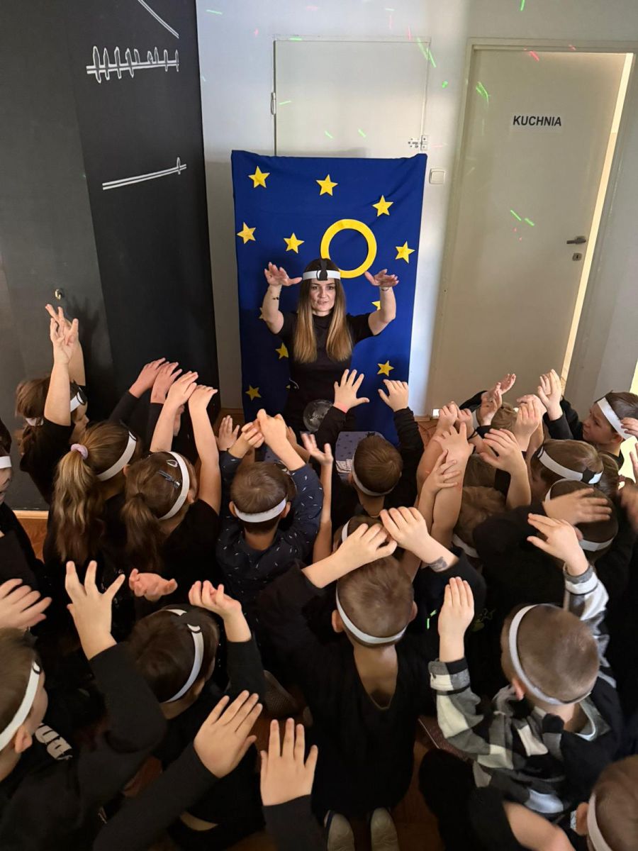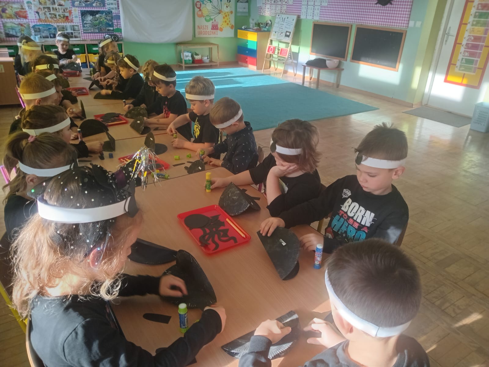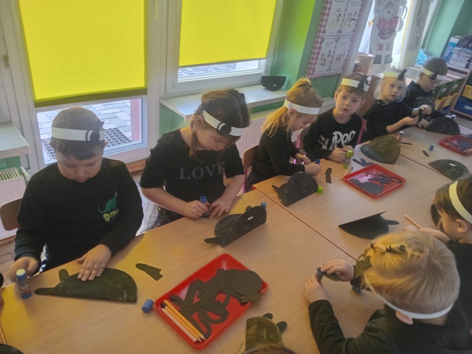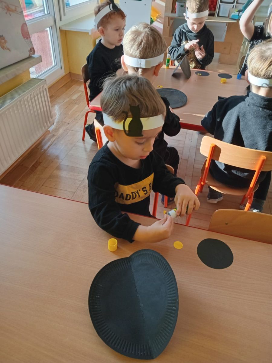 28 listopada w naszym przedszkolu odbyły się radosne i pełne magii Andrzejki. Od samego rana dzieci przeniosły się w świat wróżb, czarów i dobrej zabawy. Na początku spotkania przedszkolaki poznały tradycje andrzejkowe – dowiedziały się, skąd pochodzi zwyczaj wróżenia i dlaczego właśnie w tym dniu próbuje się zajrzeć w przyszłość. Dzieci słuchały z ogromną uwagą, a w sali z każdą chwilą narastała magiczna atmosfera. Następnie obie grupy udały się do przygotowanego „czarodziejskiego kącika”. Tam, przy zaczarowanej kuli, uczyły się specjalnego zaklęcia. Gdy wspólnie je wypowiedziały i kula „ożyła”, mieniąc się kolorami, dzieci mogły wreszcie przystąpić do wyczekiwanych wróżb. Rozpoczęło się odkrywanie przyszłości poprzez zabawy: „Kolory”, „Czarodziejska butelka”, „Grosiki” oraz „Kim będę w przyszłości?”. Wszystkie wróżby wywoływały u dzieci radość i uśmiech na twarzach. Następnie przedszkolaki ruszyły do tańca, bawiąc się wesoło przy ulubionych utworach z dziecięcego repertuaru. Wysłuchały opowiadania „O kotku, który szukał czarnego mleka”, a następnie z wielkim zaangażowaniem odpowiadały na pytania dotyczące treści. Nie zabrakło także zabaw animacyjno-ruchowych, m.in. z liną oraz pełnej emocji zabawy sprawnościowej „Kotki łapią myszki”. Po tylu atrakcjach na dzieci czekał słodko-owocowy poczęstunek, który dodał im energii na kolejne aktywności. Tradycyjne lanie wosku przez ucho czarodziejskiego klucza było kolejnym punktem programu. Powstające z wosku kształty pobudzały wyobraźnię i zachęcały do przepowiadania przyszłości. Na zakończenie wszyscy wykonali urocze czarne kotki z papierowych talerzyków – kreatywne prace plastyczne, które stały się pamiątką tego wyjątkowego, pełnego magii dnia.