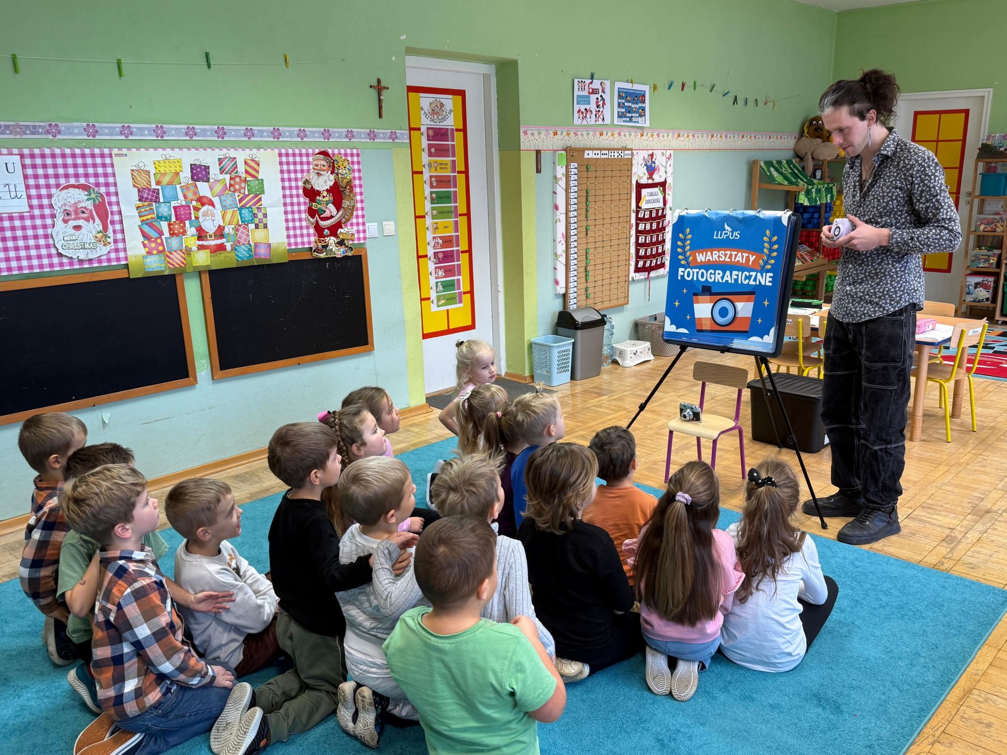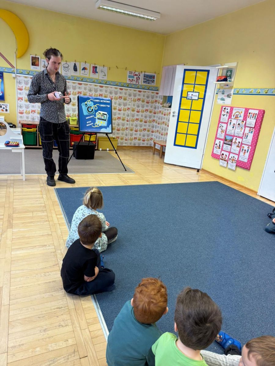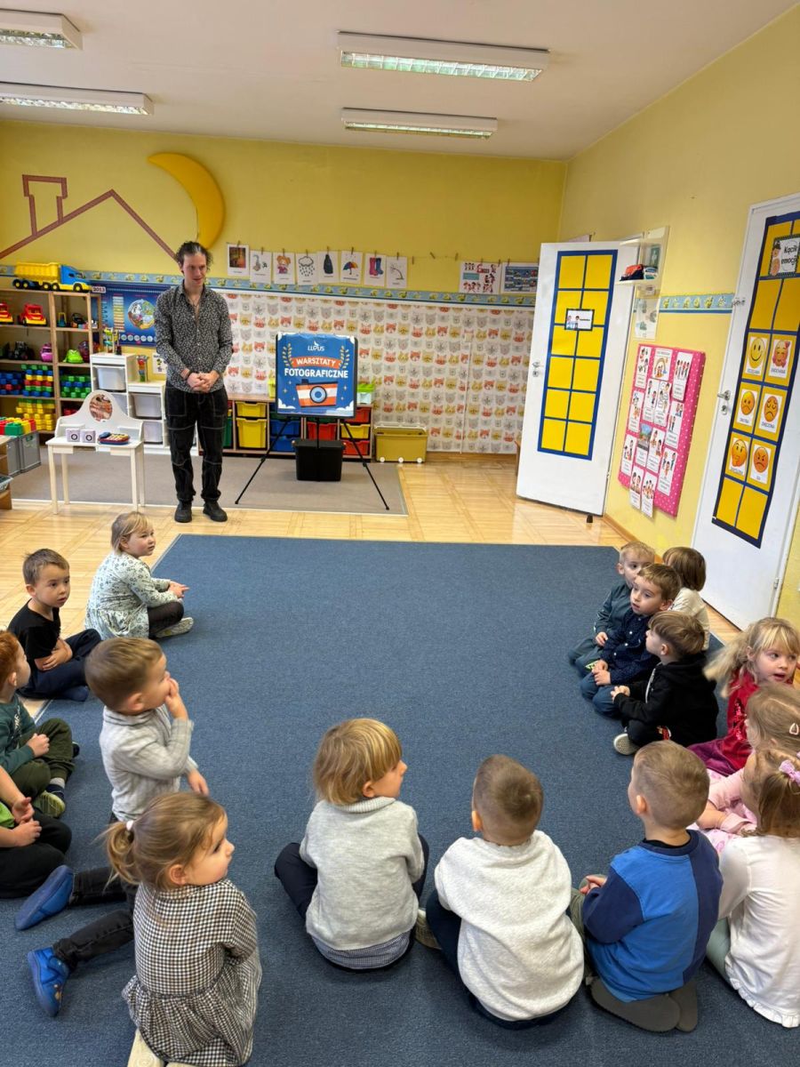 1 grudnia w naszym przedszkolu odbyły się warsztaty fotograficzne, które poprowadziła Agencja Szkolno-Przedszkolna Lupus „Mały fotograf, wielkie emocje”. Był to dzień pełen uśmiechów, kreatywności i odkrywania tajemnic świata fotografii! Już od samego rana w przedszkolu panowała radosna atmosfera. Dzieci nie mogły się doczekać spotkania z prawdziwym fotografem, który poprowadził dla nich ciekawe warsztaty.