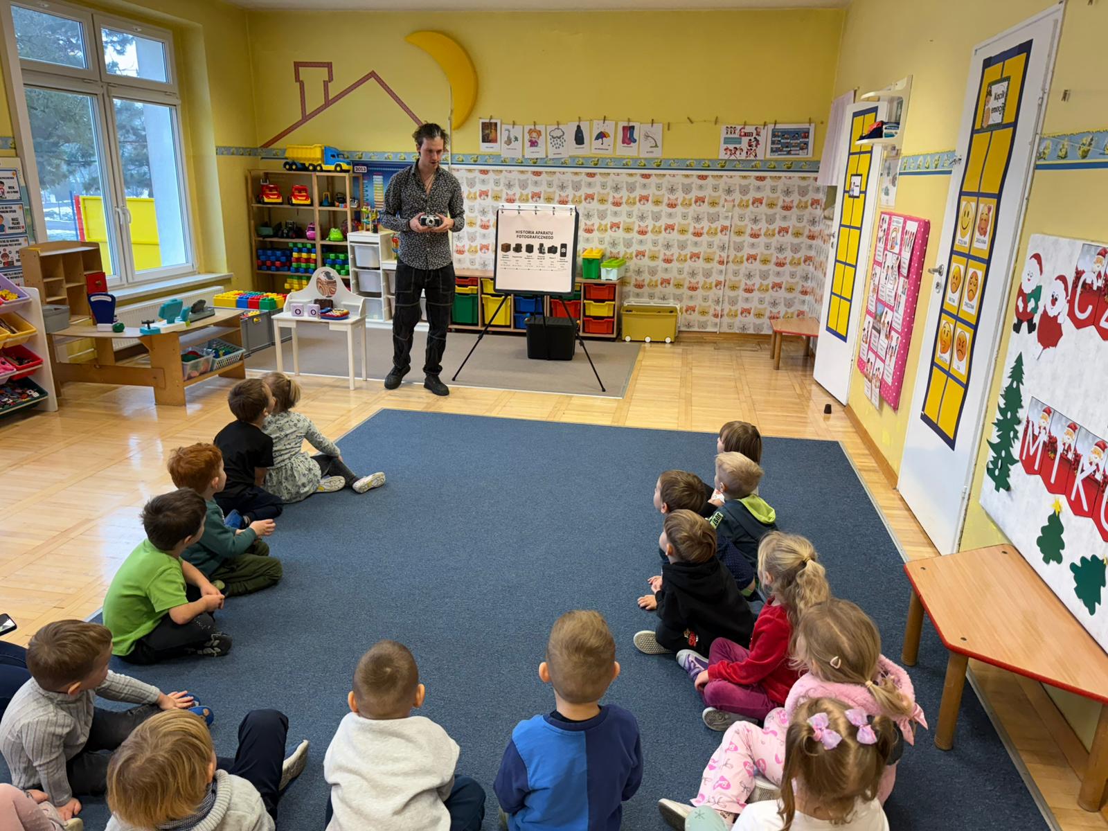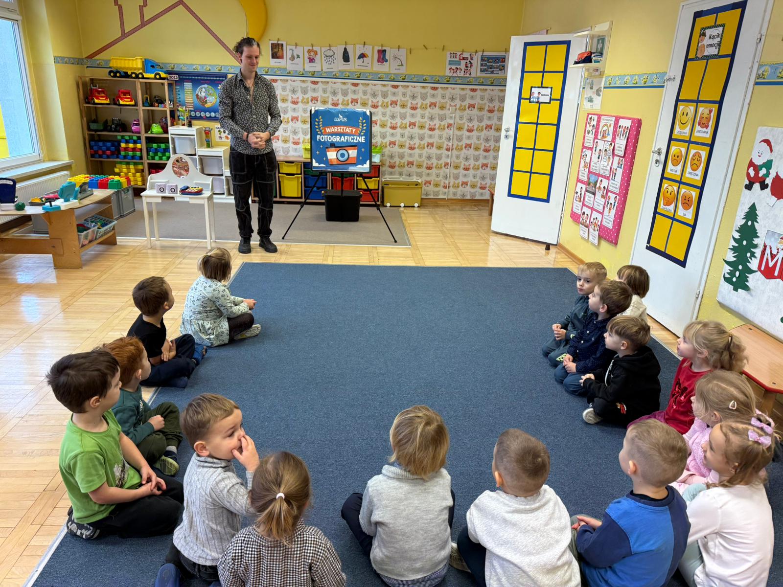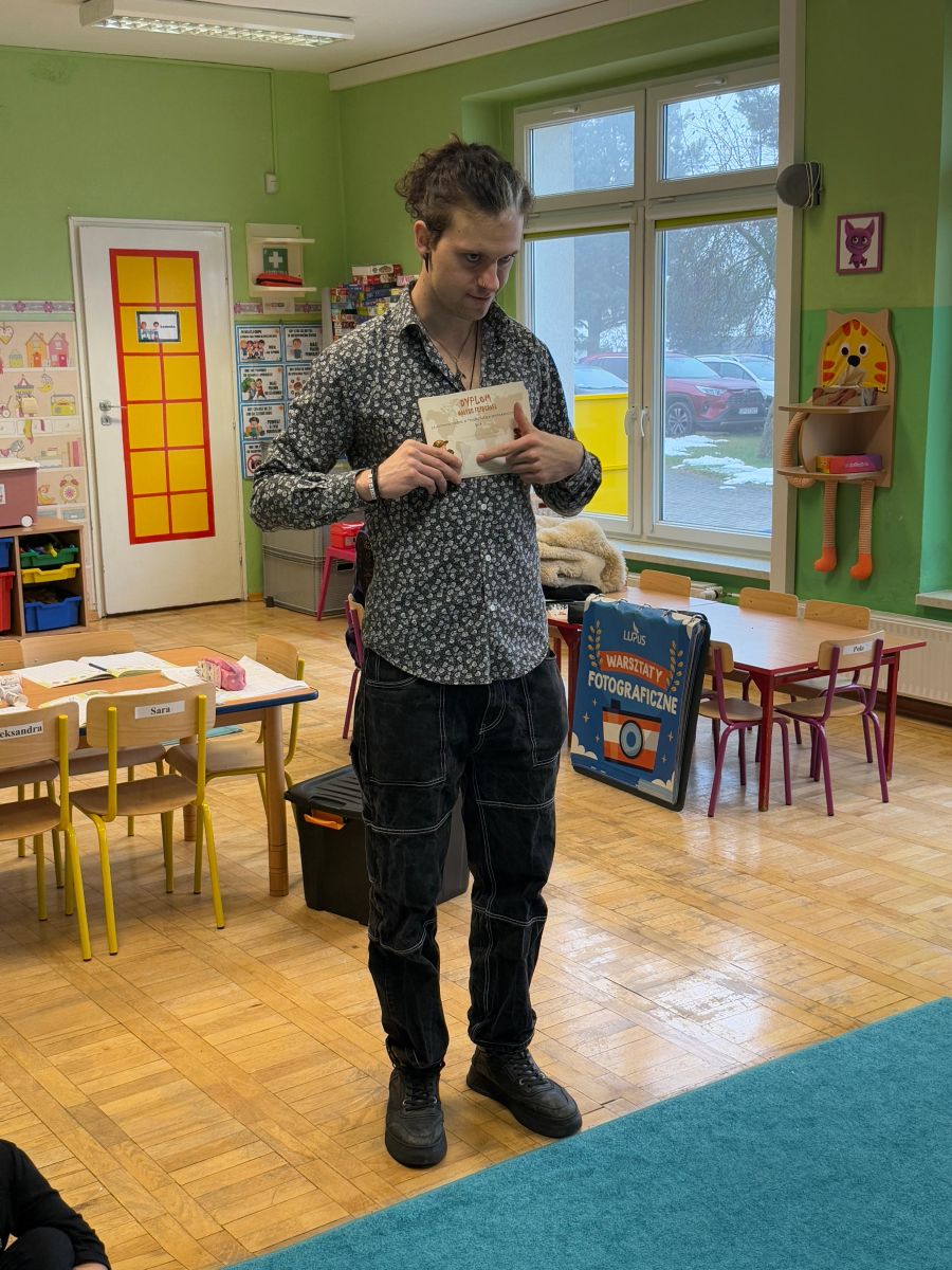 1 grudnia w naszym przedszkolu odbyły się warsztaty fotograficzne, które poprowadziła Agencja Szkolno-Przedszkolna Lupus „Mały fotograf, wielkie emocje”. Był to dzień pełen uśmiechów, kreatywności i odkrywania tajemnic świata fotografii! Już od samego rana w przedszkolu panowała radosna atmosfera. Dzieci nie mogły się doczekać spotkania z prawdziwym fotografem, który poprowadził dla nich ciekawe warsztaty.