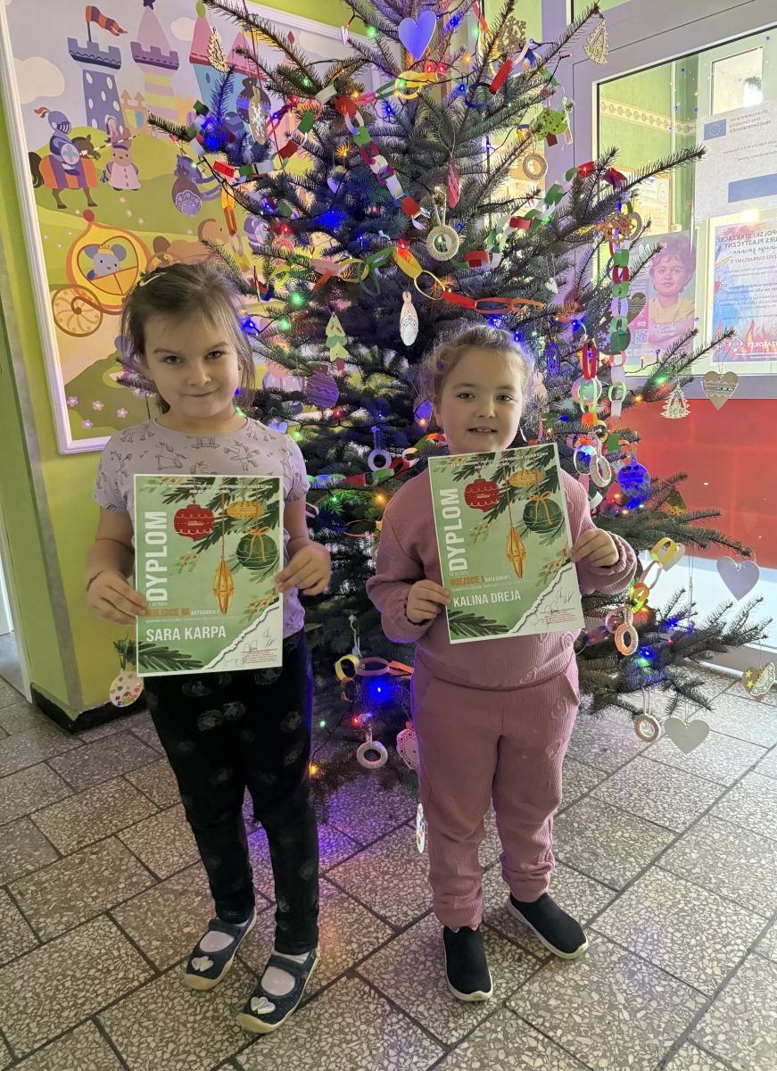 Serdecznie gratulujemy Kalinie Dreja zajęcia I miejsca oraz Sarze Karpa zajęcia III miejsca w XVI GMINNYM KONKURSIE NA ŚWIATECZNĄ OZDOBĘ CHOINKOWĄ LUB ZAWIESZKĘ ZIMOWĄ. Organizatorem konkursu był Dom Kultury w Ozimku, współorganizatorem Spółdzielnia Mieszkaniowa "Przyszłość". Podczas gali wręczenia nagród laureaci otrzymali dyplomy oraz atrakcyjne nagrody.