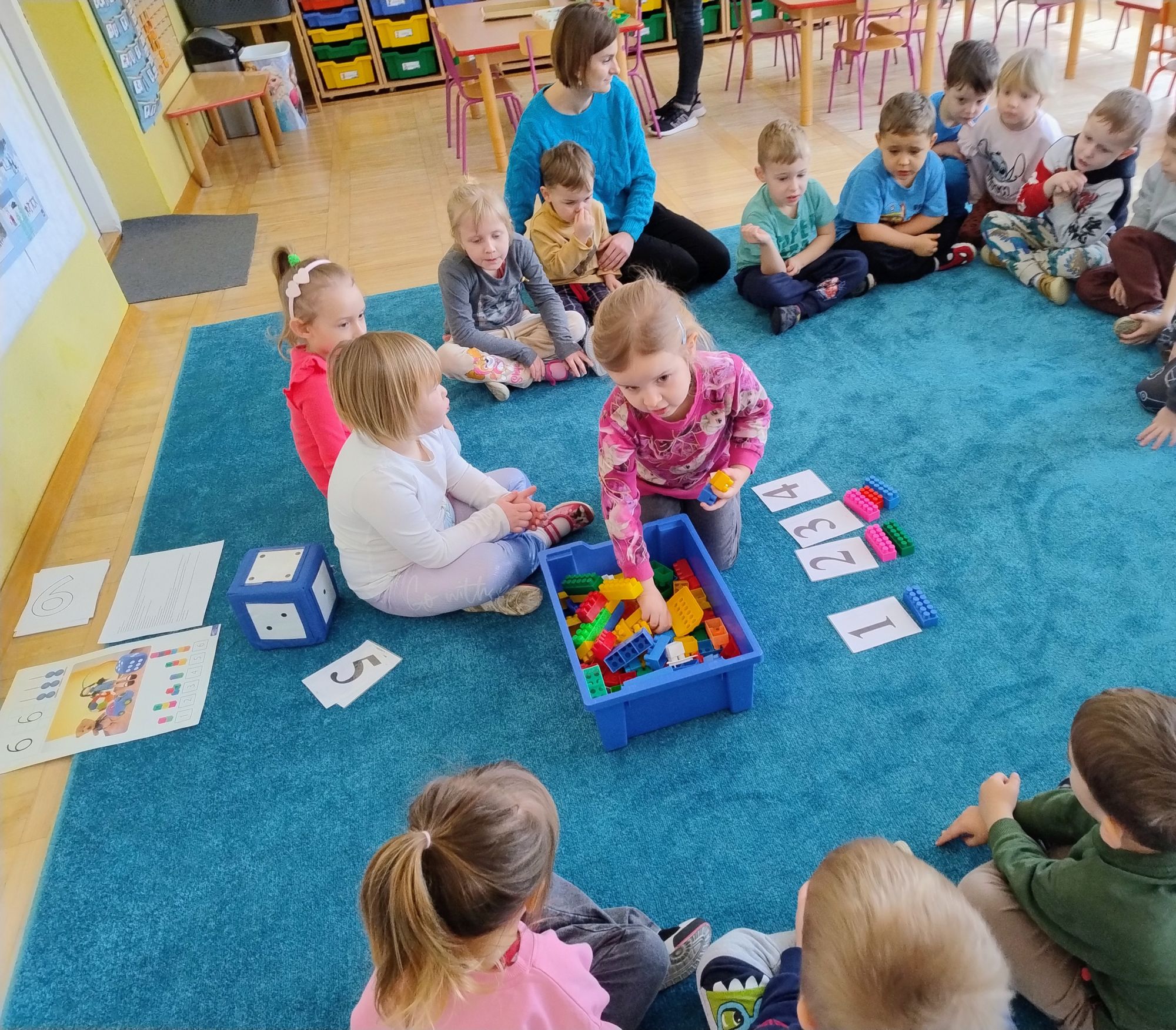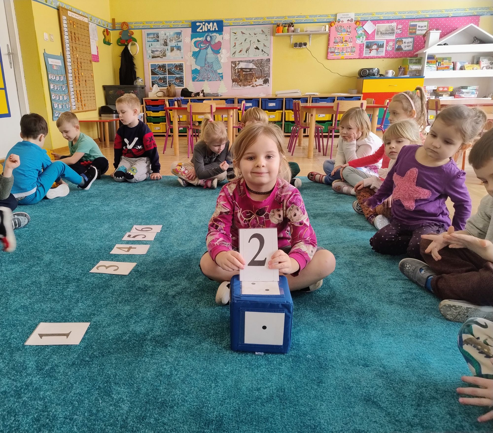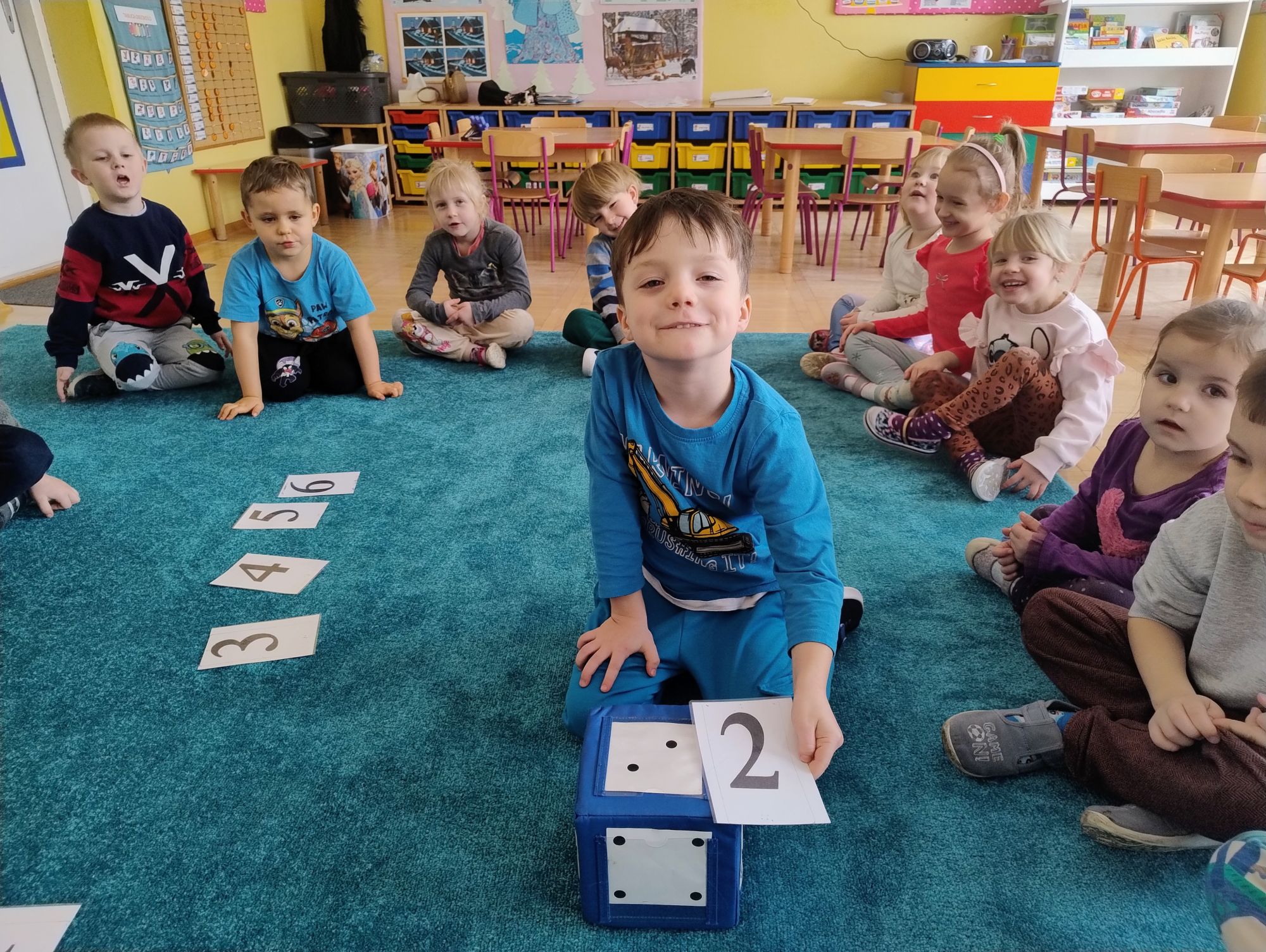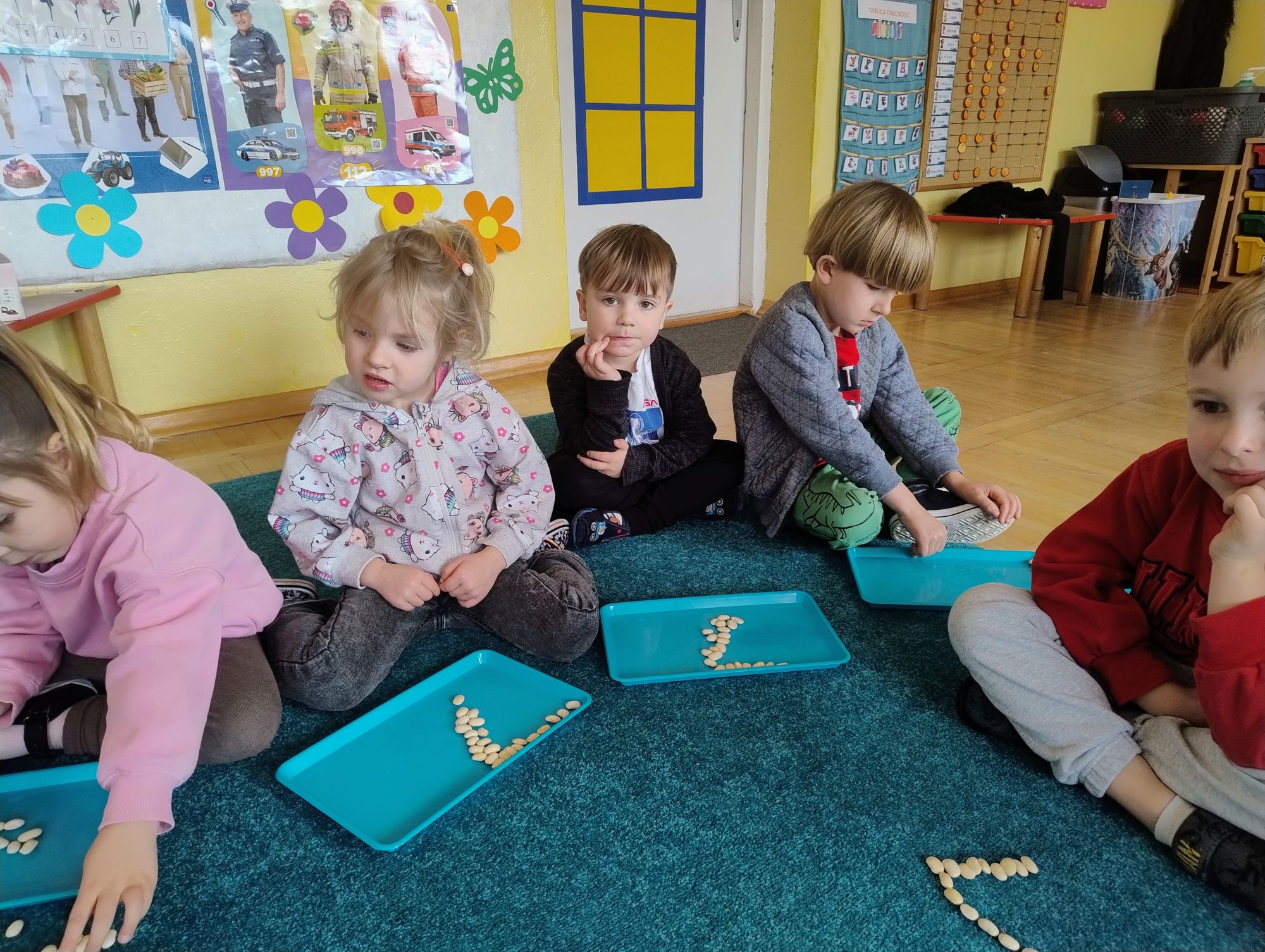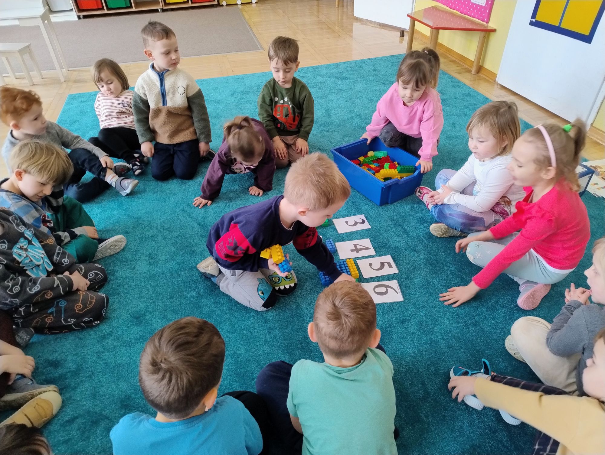 Przedszkolaki z młodszej grupy w ramach realizacji innowacji pedagogicznej "Wesoła matematyka" autorstwa Dominiki Gerlich uczestniczyły w zajęciach matematycznych, które wprowadziły maluszki w magiczny świat matematyki. Dzieci zdobywały wiedzę i umiejętnosci, poprzez aktywny udział w zabawach ruchowych, tworząc prace plastyczne, recytujac wyliczanki i śpiewając piosenki. Wszystkie te zadania pomogły im w nauce liczenia i poznawaniu cyfr. Różnorodne aktywności sprawiły, że maluszki chętnie angażowały sie w zadania i szybciej przyswajały nowe wiadomości. Z zaciekawieniem przeliczały różne przedmioty dopasowywując ich liczbę do odpowiedniej cyfry. Do zajęc posłużyły, m.in, kostka do gry, fasola, plastikowe korki. Dzieci z dużym zaangażowaniem układały kształty cyfr. Innowacja napisana przez wychowawcę, to forma nauki, która sprzyja lepszemu zapamiętywaniu, ale przede wszystkim daje radość i buduje pozytywne skojarzenia z matematyką od najmłodszych lat.
