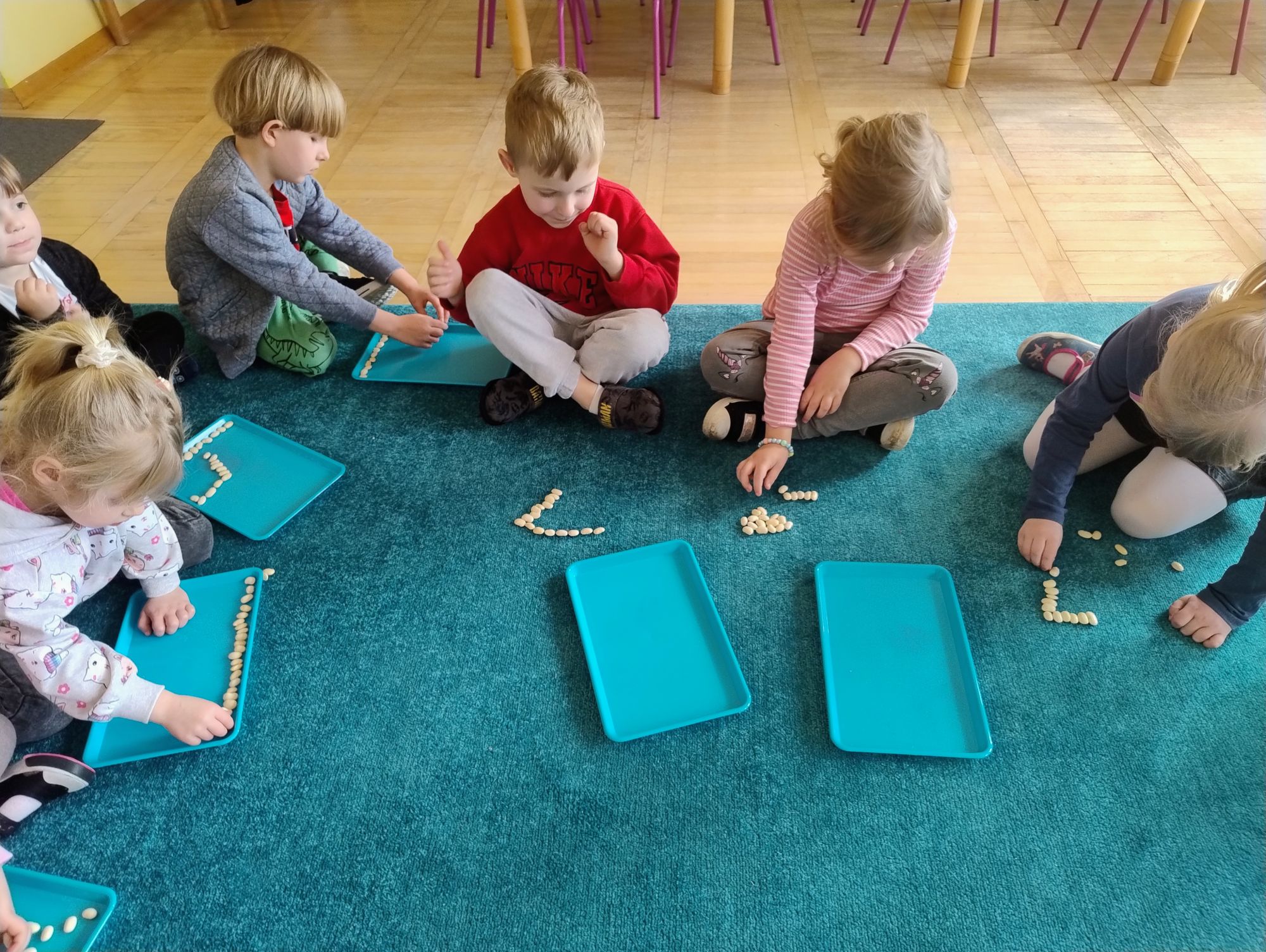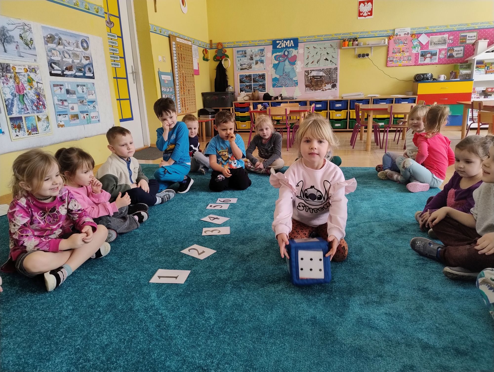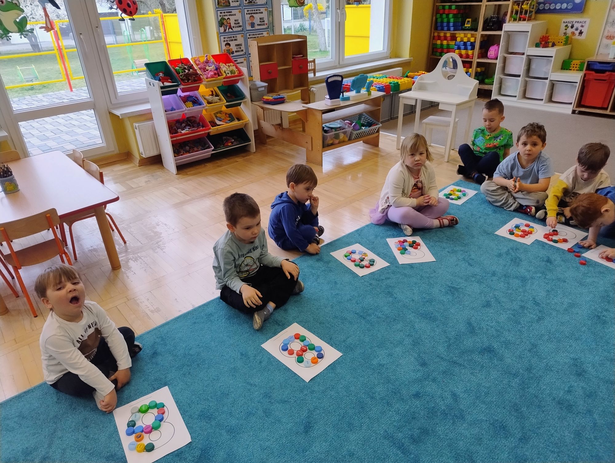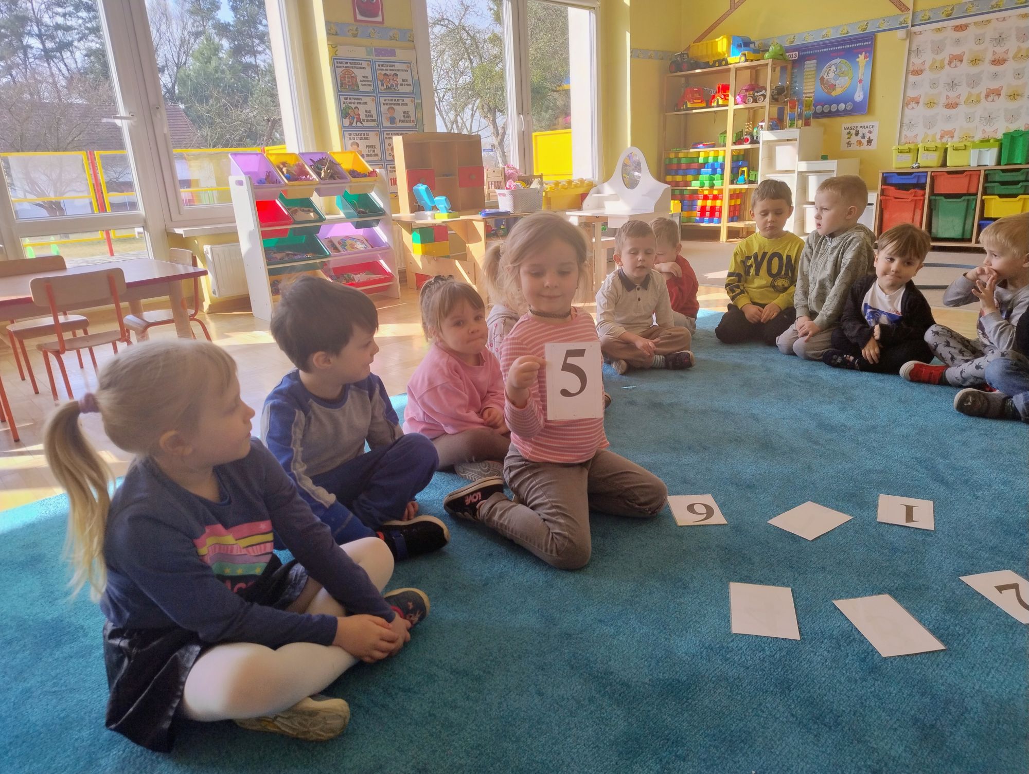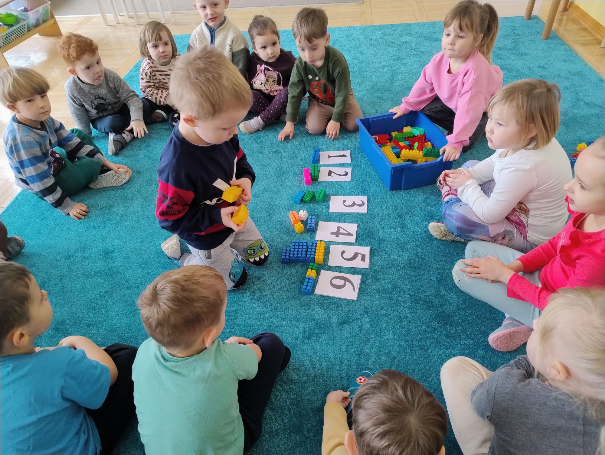 Przedszkolaki z młodszej grupy w ramach realizacji innowacji pedagogicznej "Wesoła matematyka" autorstwa Dominiki Gerlich uczestniczyły w zajęciach matematycznych, które wprowadziły maluszki w magiczny świat matematyki. Dzieci zdobywały wiedzę i umiejętnosci, poprzez aktywny udział w zabawach ruchowych, tworząc prace plastyczne, recytujac wyliczanki i śpiewając piosenki. Wszystkie te zadania pomogły im w nauce liczenia i poznawaniu cyfr. Różnorodne aktywności sprawiły, że maluszki chętnie angażowały sie w zadania i szybciej przyswajały nowe wiadomości. Z zaciekawieniem przeliczały różne przedmioty dopasowywując ich liczbę do odpowiedniej cyfry. Do zajęc posłużyły, m.in, kostka do gry, fasola, plastikowe korki. Dzieci z dużym zaangażowaniem układały kształty cyfr. Innowacja napisana przez wychowawcę, to forma nauki, która sprzyja lepszemu zapamiętywaniu, ale przede wszystkim daje radość i buduje pozytywne skojarzenia z matematyką od najmłodszych lat.