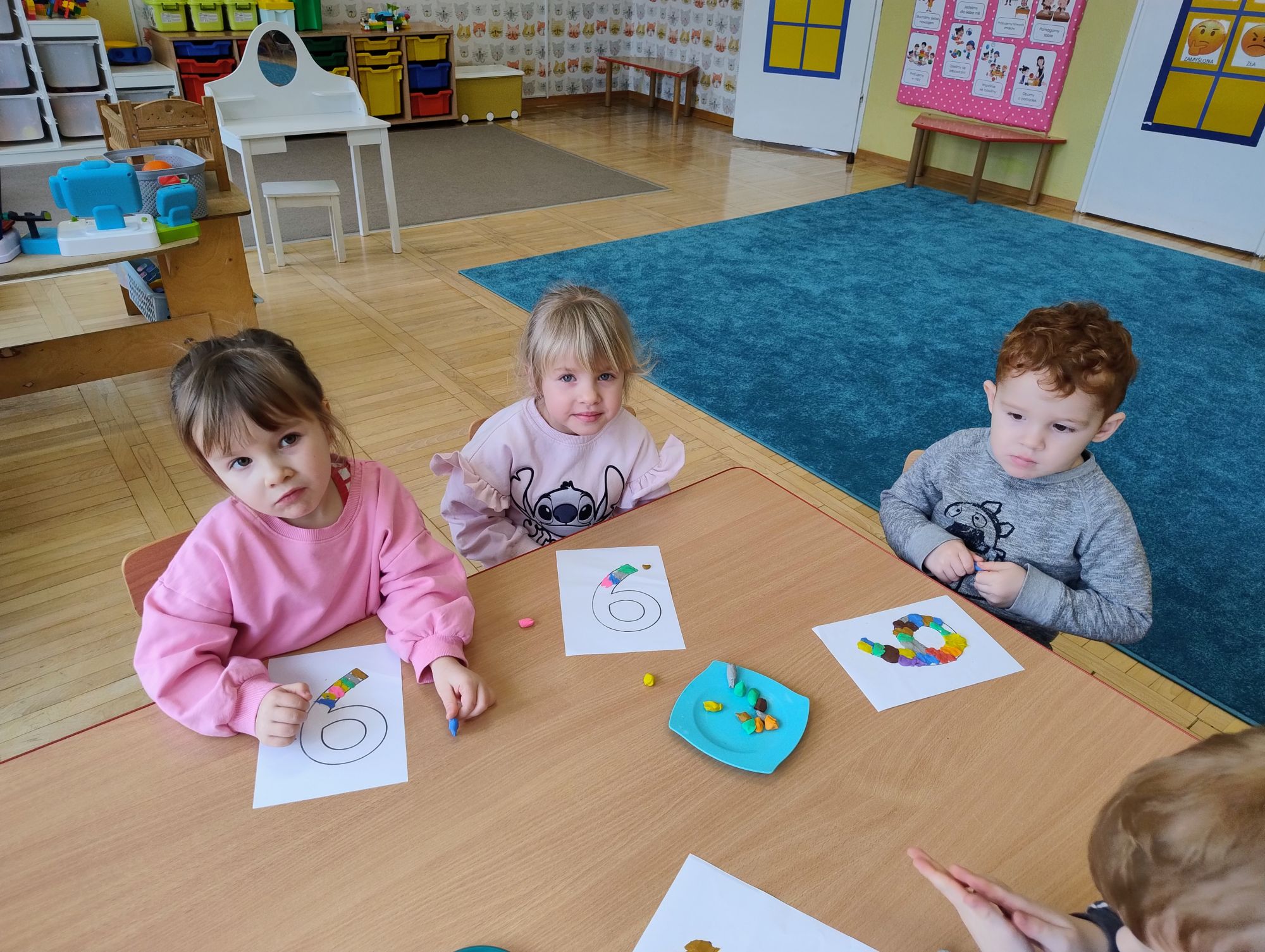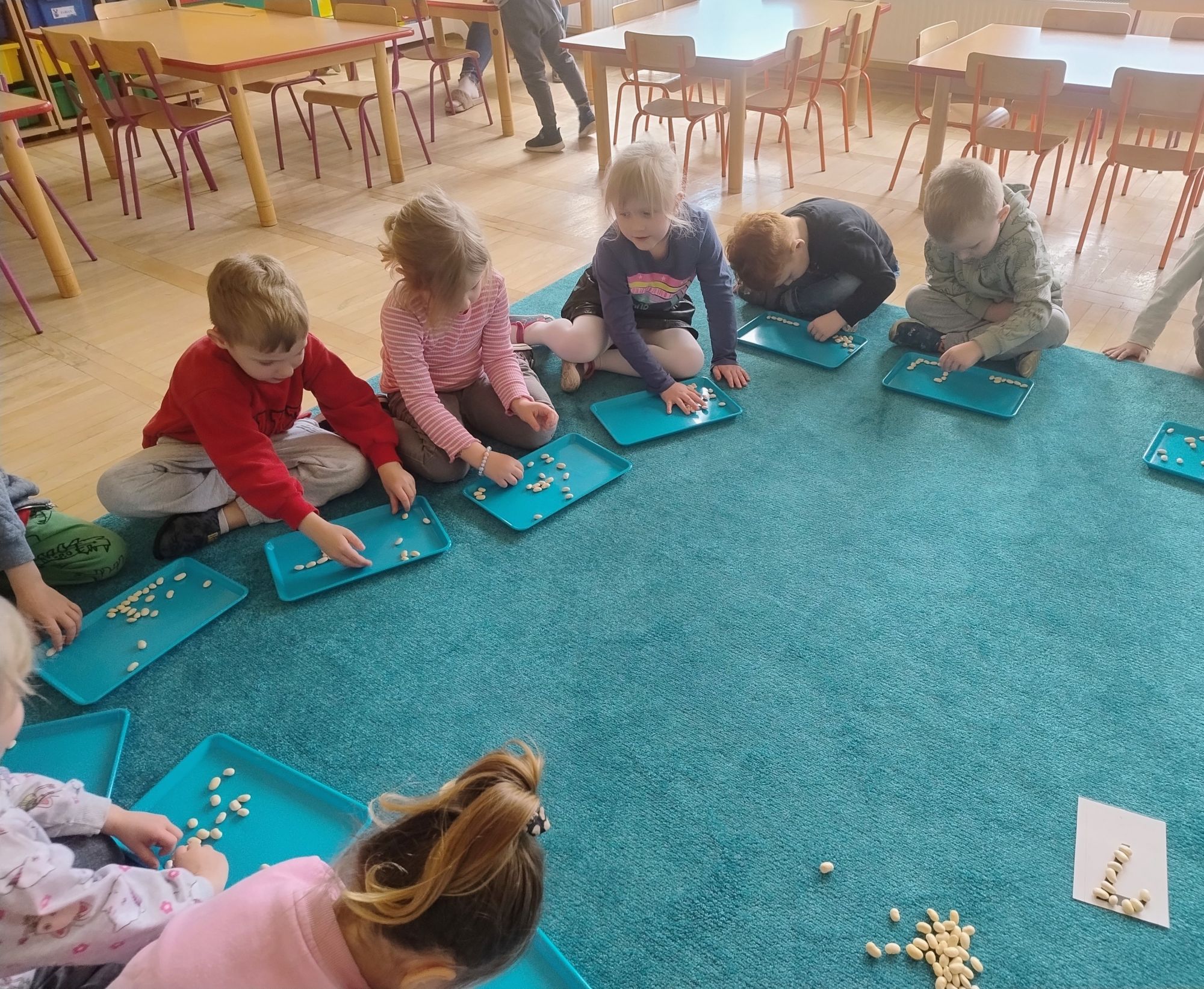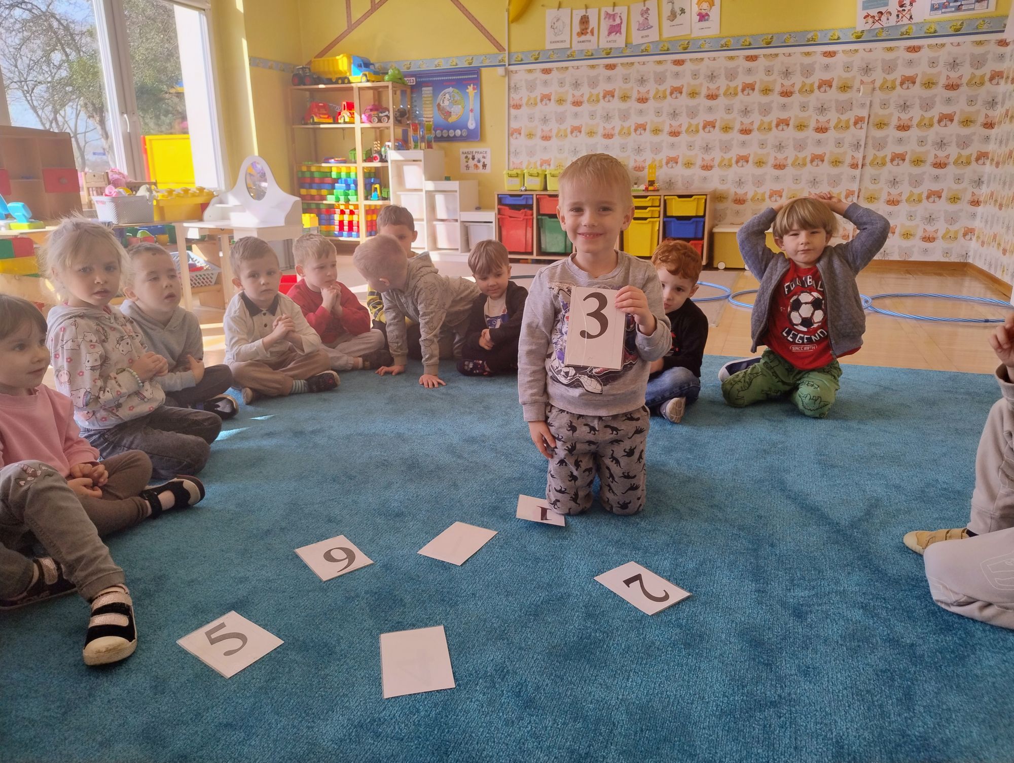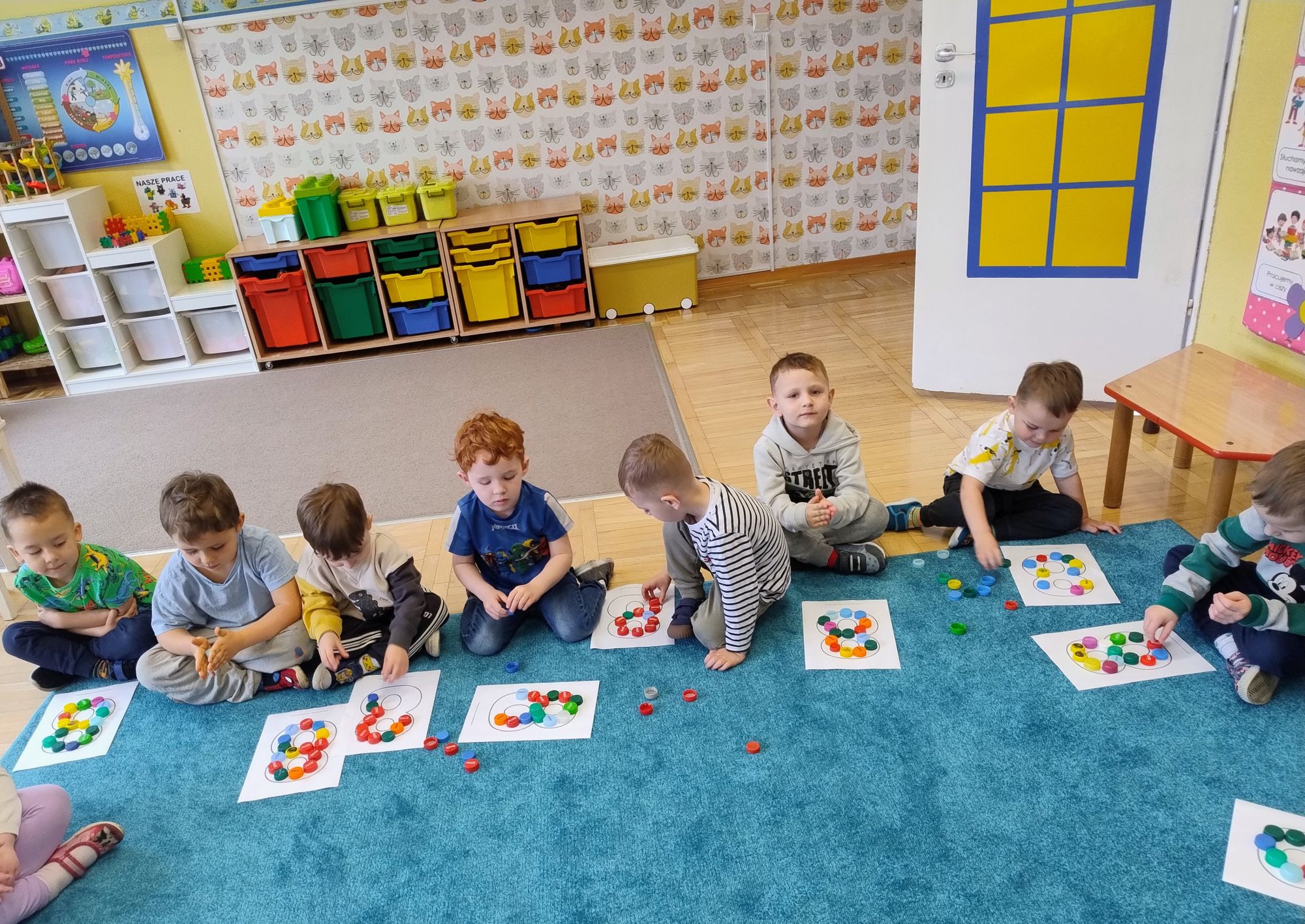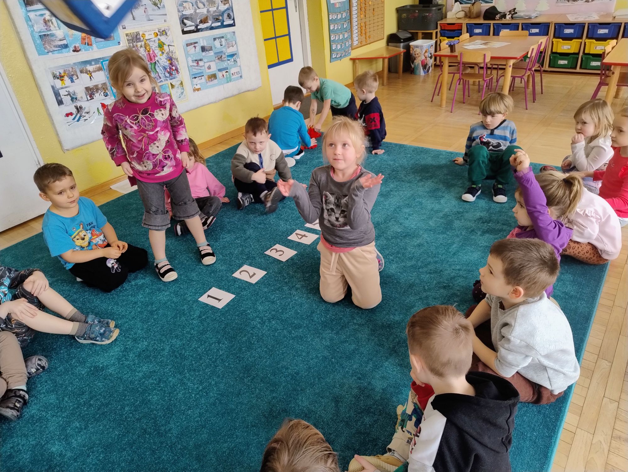 Przedszkolaki z młodszej grupy w ramach realizacji innowacji pedagogicznej "Wesoła matematyka" autorstwa Dominiki Gerlich uczestniczyły w zajęciach matematycznych, które wprowadziły maluszki w magiczny świat matematyki. Dzieci zdobywały wiedzę i umiejętnosci, poprzez aktywny udział w zabawach ruchowych, tworząc prace plastyczne, recytujac wyliczanki i śpiewając piosenki. Wszystkie te zadania pomogły im w nauce liczenia i poznawaniu cyfr. Różnorodne aktywności sprawiły, że maluszki chętnie angażowały sie w zadania i szybciej przyswajały nowe wiadomości. Z zaciekawieniem przeliczały różne przedmioty dopasowywując ich liczbę do odpowiedniej cyfry. Do zajęc posłużyły, m.in, kostka do gry, fasola, plastikowe korki. Dzieci z dużym zaangażowaniem układały kształty cyfr. Innowacja napisana przez wychowawcę, to forma nauki, która sprzyja lepszemu zapamiętywaniu, ale przede wszystkim daje radość i buduje pozytywne skojarzenia z matematyką od najmłodszych lat.