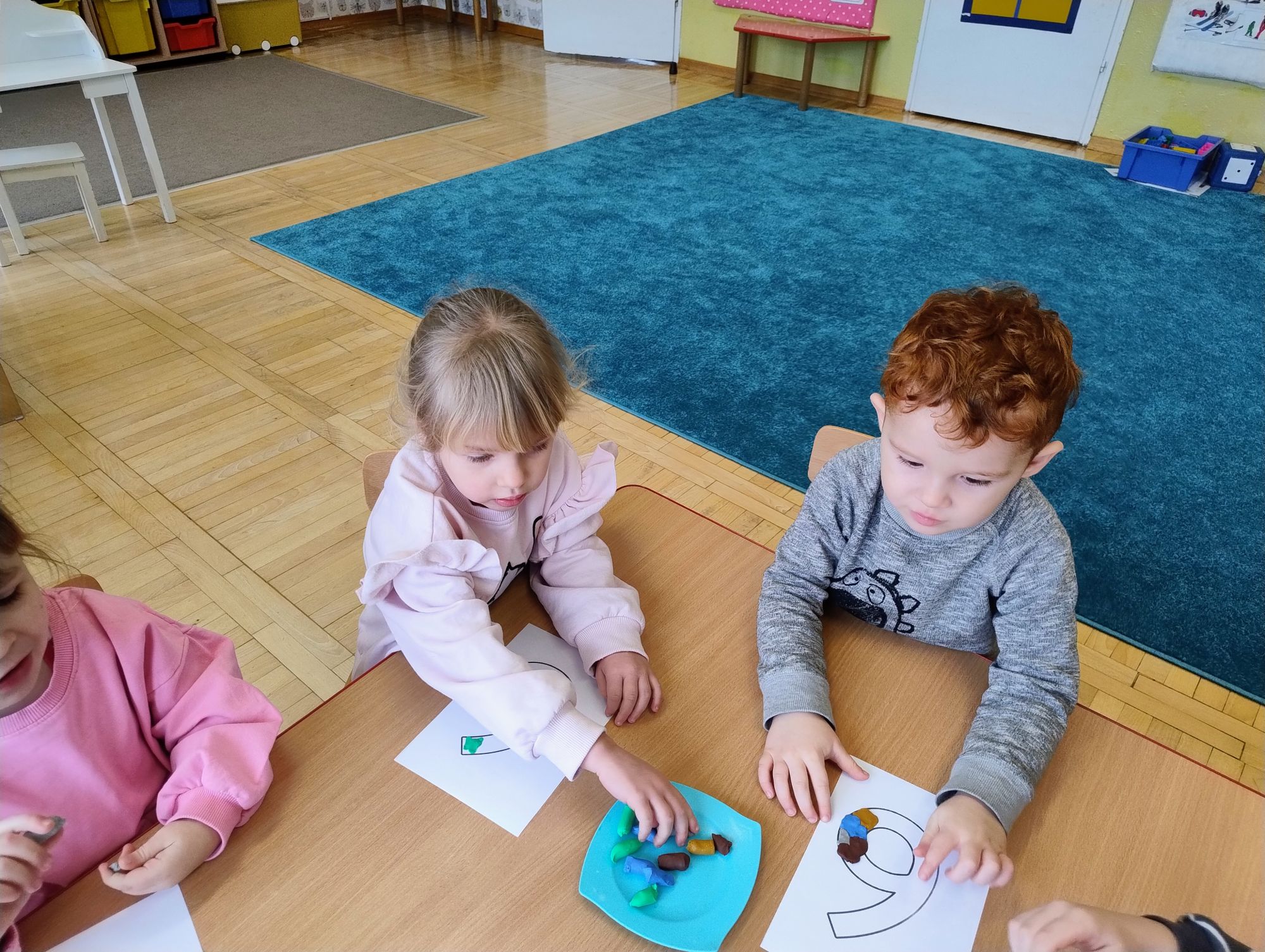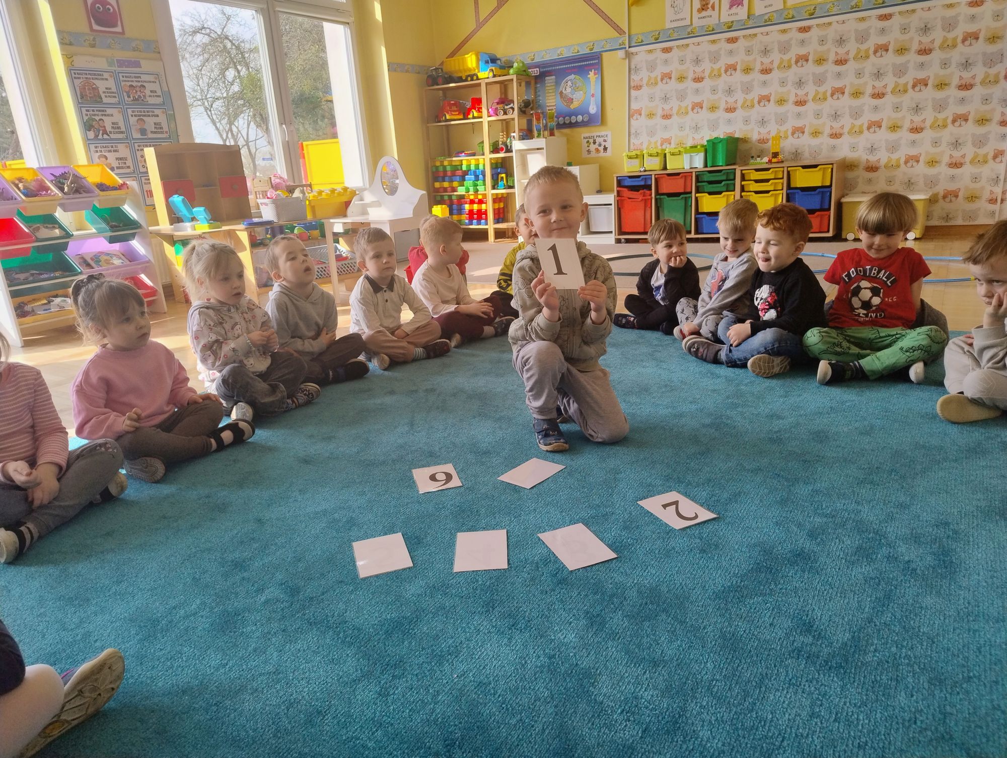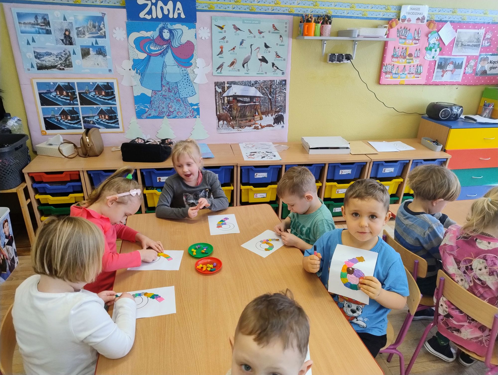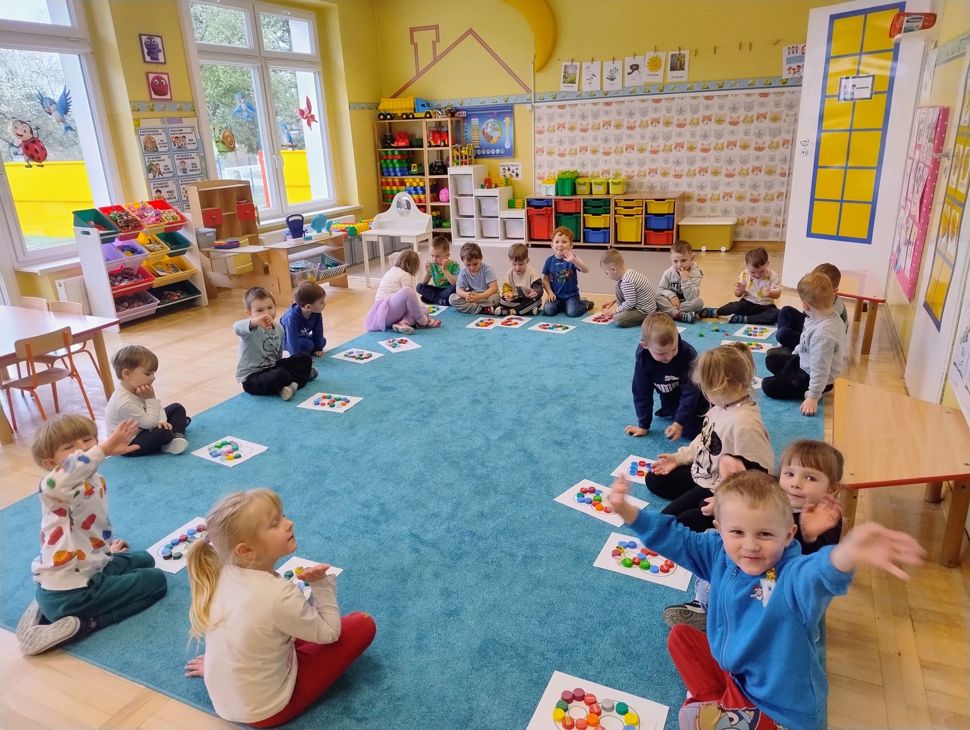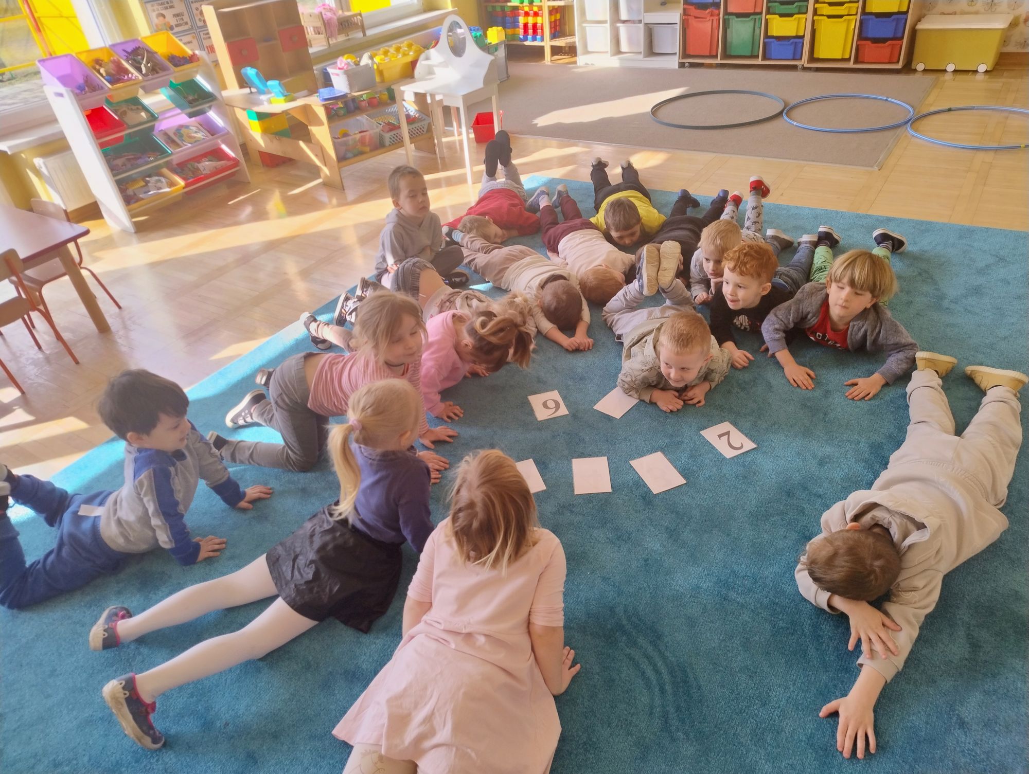 Przedszkolaki z młodszej grupy w ramach realizacji innowacji pedagogicznej "Wesoła matematyka" autorstwa Dominiki Gerlich uczestniczyły w zajęciach matematycznych, które wprowadziły maluszki w magiczny świat matematyki. Dzieci zdobywały wiedzę i umiejętnosci, poprzez aktywny udział w zabawach ruchowych, tworząc prace plastyczne, recytujac wyliczanki i śpiewając piosenki. Wszystkie te zadania pomogły im w nauce liczenia i poznawaniu cyfr. Różnorodne aktywności sprawiły, że maluszki chętnie angażowały sie w zadania i szybciej przyswajały nowe wiadomości. Z zaciekawieniem przeliczały różne przedmioty dopasowywując ich liczbę do odpowiedniej cyfry. Do zajęc posłużyły, m.in, kostka do gry, fasola, plastikowe korki. Dzieci z dużym zaangażowaniem układały kształty cyfr. Innowacja napisana przez wychowawcę, to forma nauki, która sprzyja lepszemu zapamiętywaniu, ale przede wszystkim daje radość i buduje pozytywne skojarzenia z matematyką od najmłodszych lat.