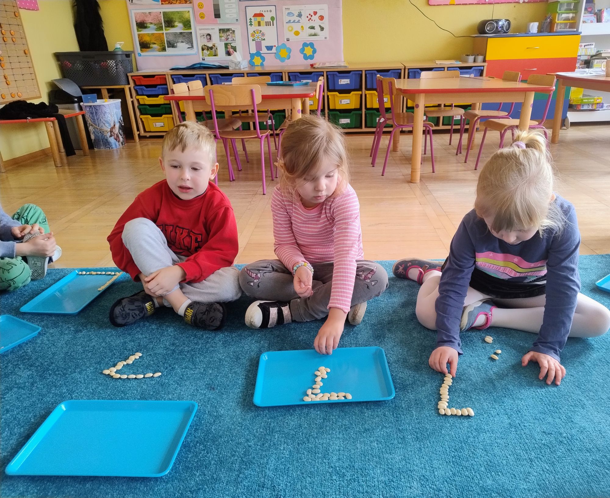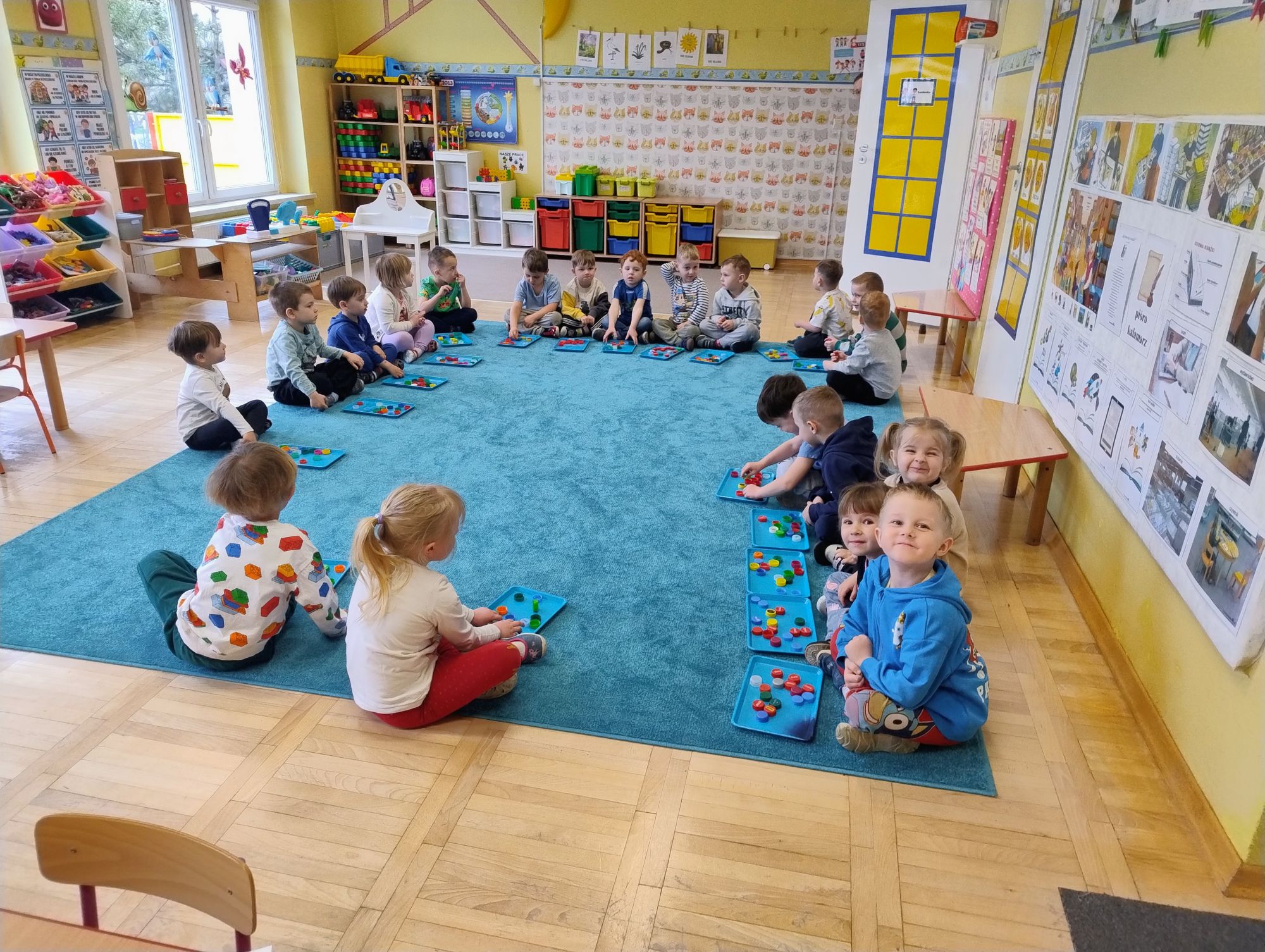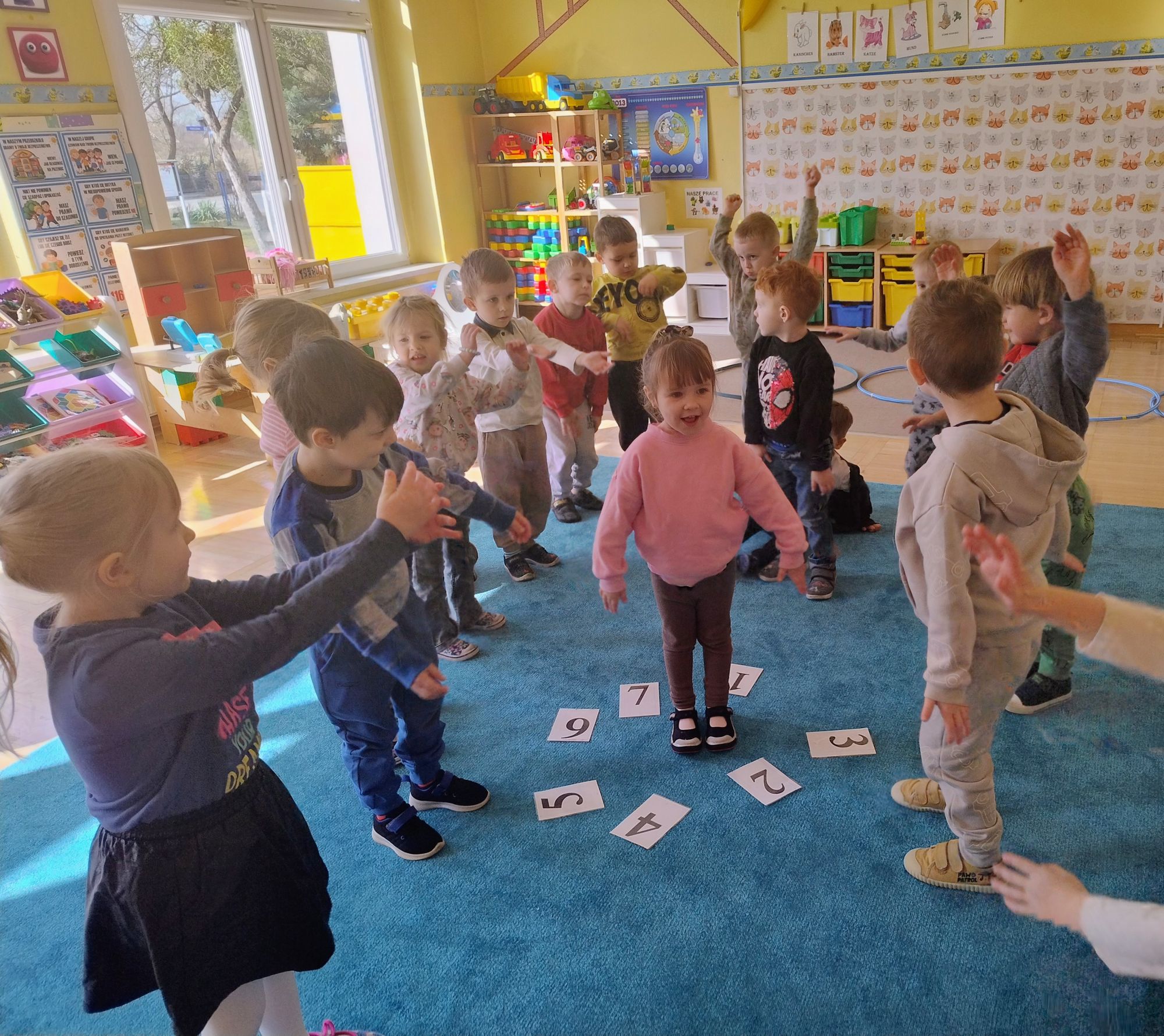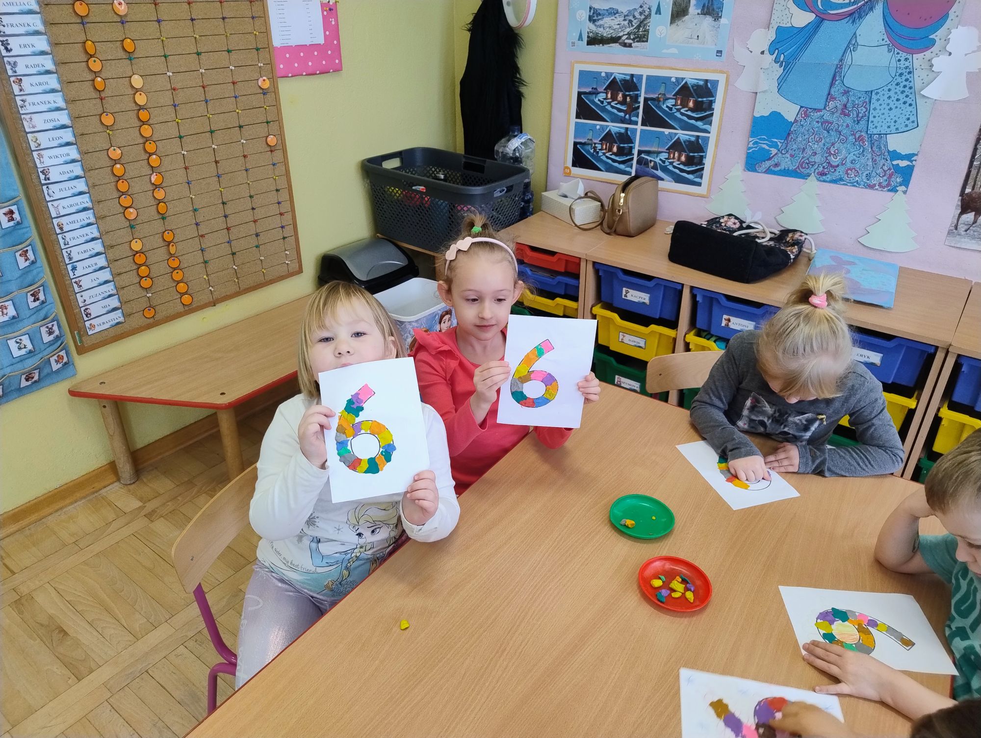 Przedszkolaki z młodszej grupy w ramach realizacji innowacji pedagogicznej "Wesoła matematyka" autorstwa Dominiki Gerlich uczestniczyły w zajęciach matematycznych, które wprowadziły maluszki w magiczny świat matematyki. Dzieci zdobywały wiedzę i umiejętnosci, poprzez aktywny udział w zabawach ruchowych, tworząc prace plastyczne, recytujac wyliczanki i śpiewając piosenki. Wszystkie te zadania pomogły im w nauce liczenia i poznawaniu cyfr. Różnorodne aktywności sprawiły, że maluszki chętnie angażowały sie w zadania i szybciej przyswajały nowe wiadomości. Z zaciekawieniem przeliczały różne przedmioty dopasowywując ich liczbę do odpowiedniej cyfry. Do zajęc posłużyły, m.in, kostka do gry, fasola, plastikowe korki. Dzieci z dużym zaangażowaniem układały kształty cyfr. Innowacja napisana przez wychowawcę, to forma nauki, która sprzyja lepszemu zapamiętywaniu, ale przede wszystkim daje radość i buduje pozytywne skojarzenia z matematyką od najmłodszych lat.