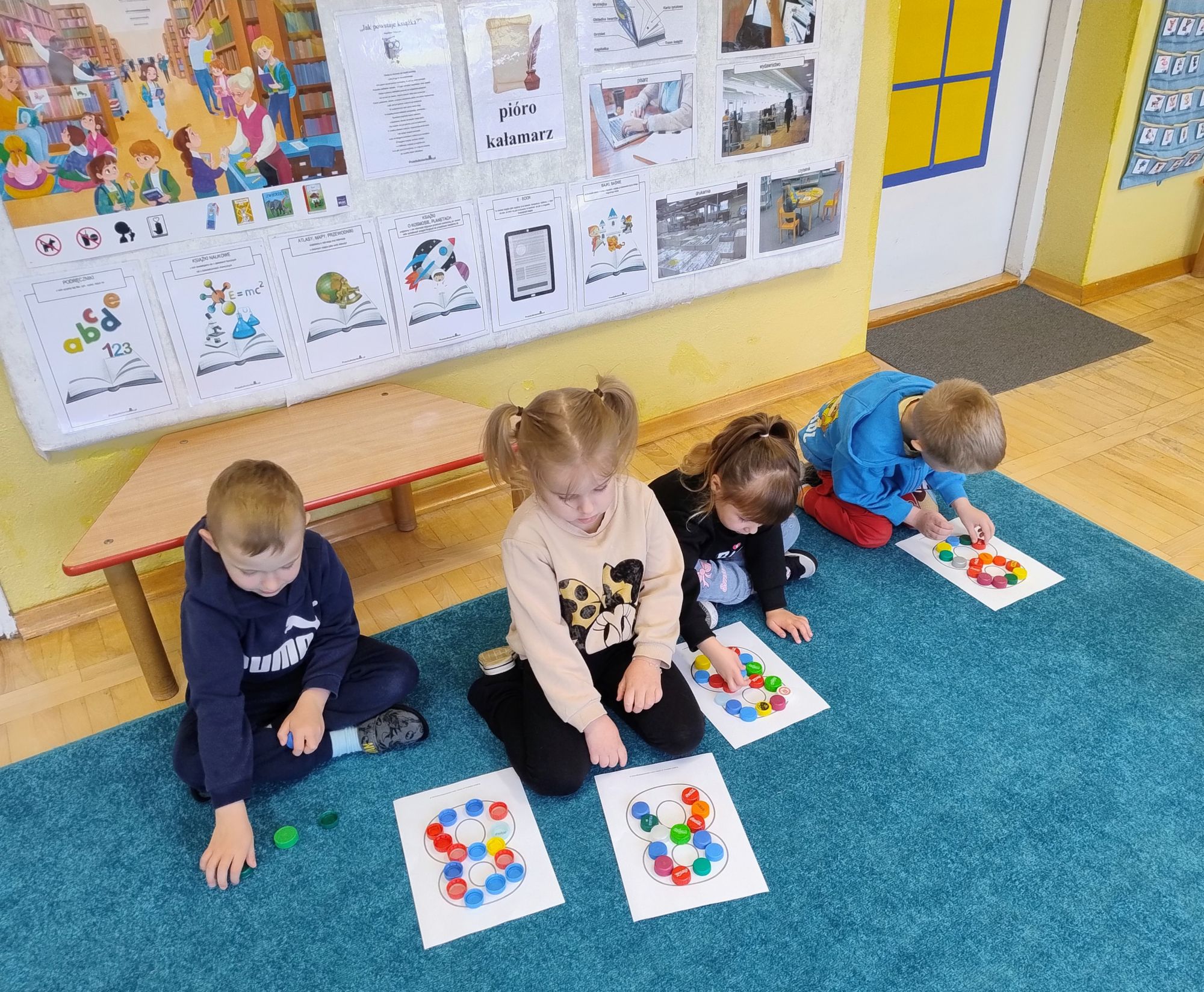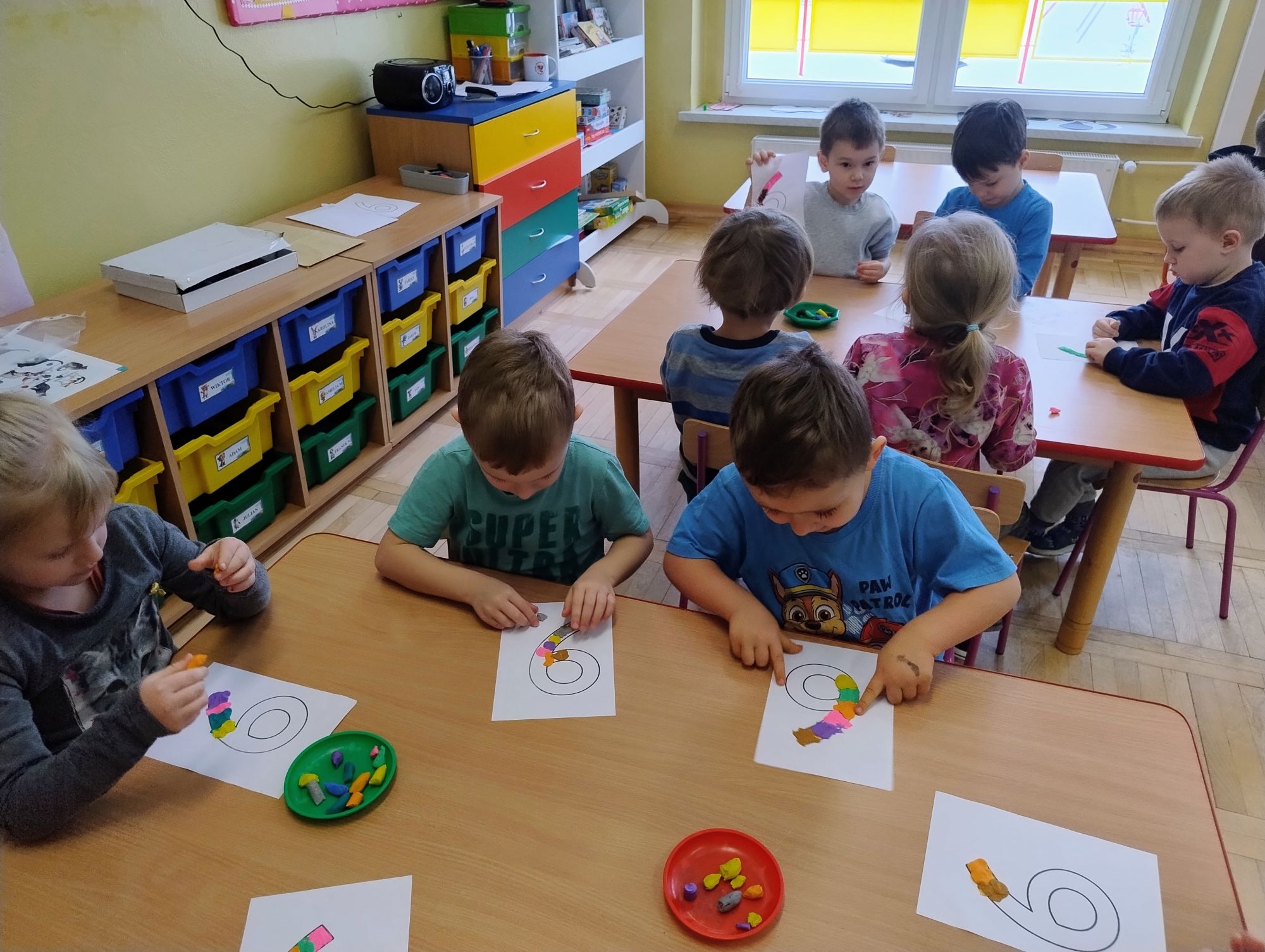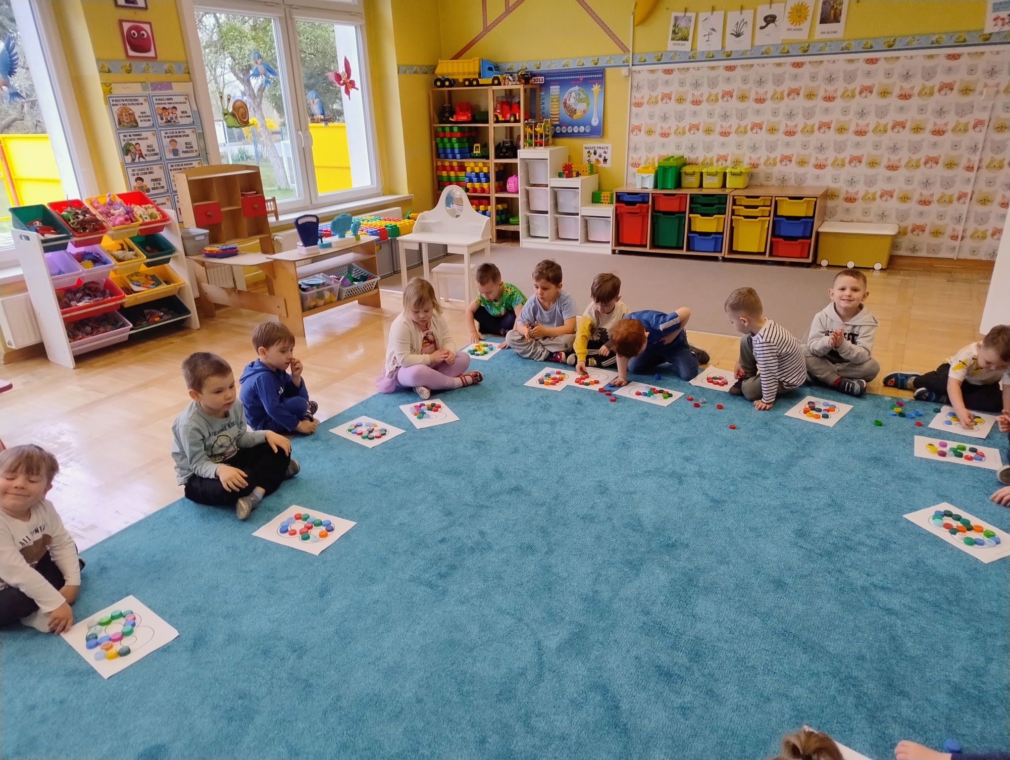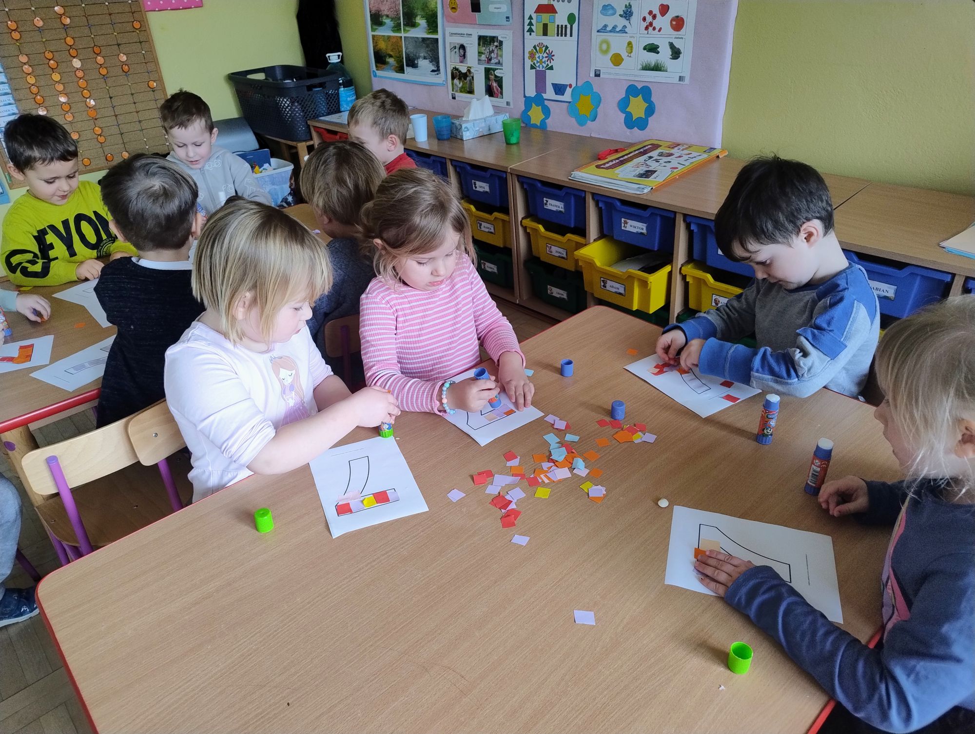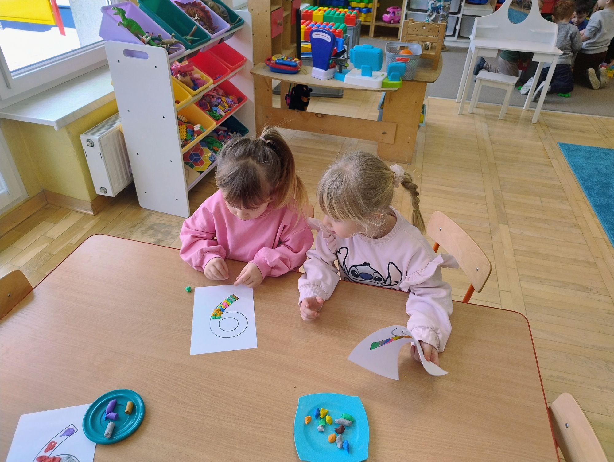 Przedszkolaki z młodszej grupy w ramach realizacji innowacji pedagogicznej "Wesoła matematyka" autorstwa Dominiki Gerlich uczestniczyły w zajęciach matematycznych, które wprowadziły maluszki w magiczny świat matematyki. Dzieci zdobywały wiedzę i umiejętnosci, poprzez aktywny udział w zabawach ruchowych, tworząc prace plastyczne, recytujac wyliczanki i śpiewając piosenki. Wszystkie te zadania pomogły im w nauce liczenia i poznawaniu cyfr. Różnorodne aktywności sprawiły, że maluszki chętnie angażowały sie w zadania i szybciej przyswajały nowe wiadomości. Z zaciekawieniem przeliczały różne przedmioty dopasowywując ich liczbę do odpowiedniej cyfry. Do zajęc posłużyły, m.in, kostka do gry, fasola, plastikowe korki. Dzieci z dużym zaangażowaniem układały kształty cyfr. Innowacja napisana przez wychowawcę, to forma nauki, która sprzyja lepszemu zapamiętywaniu, ale przede wszystkim daje radość i buduje pozytywne skojarzenia z matematyką od najmłodszych lat.