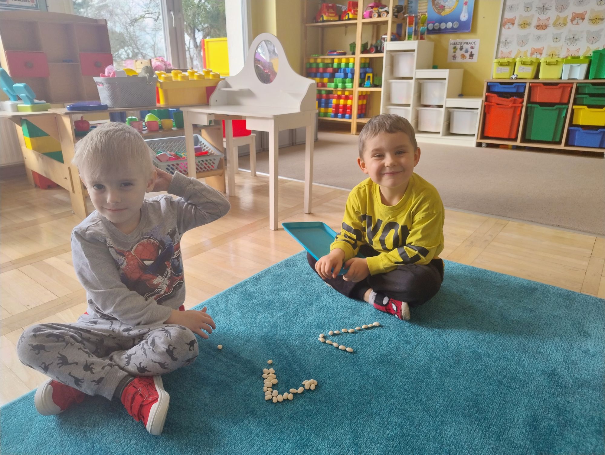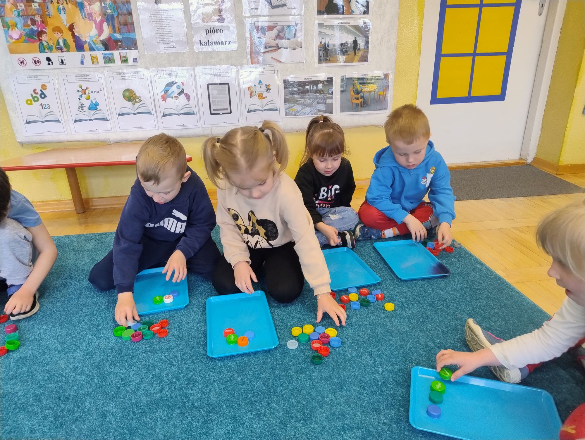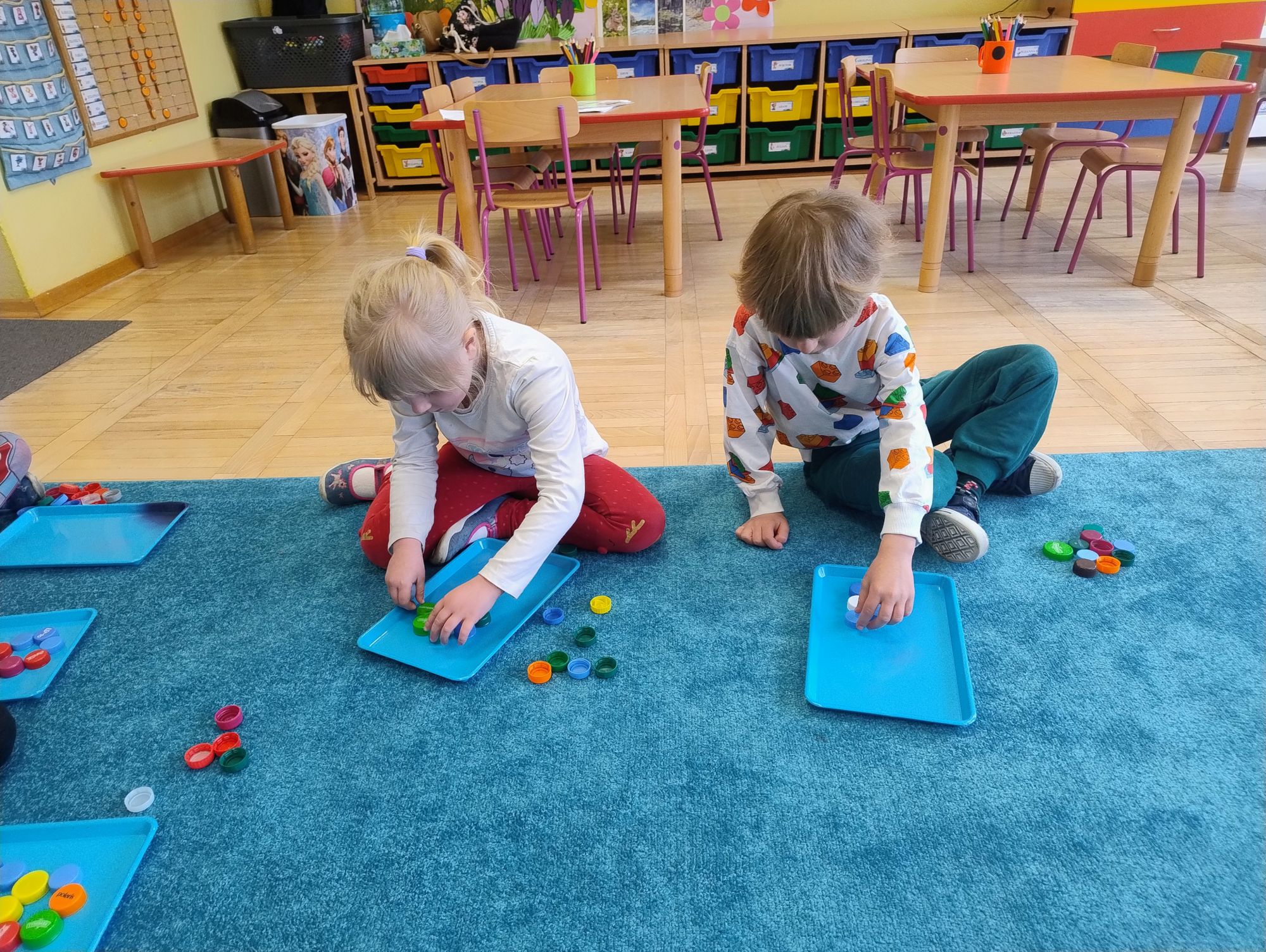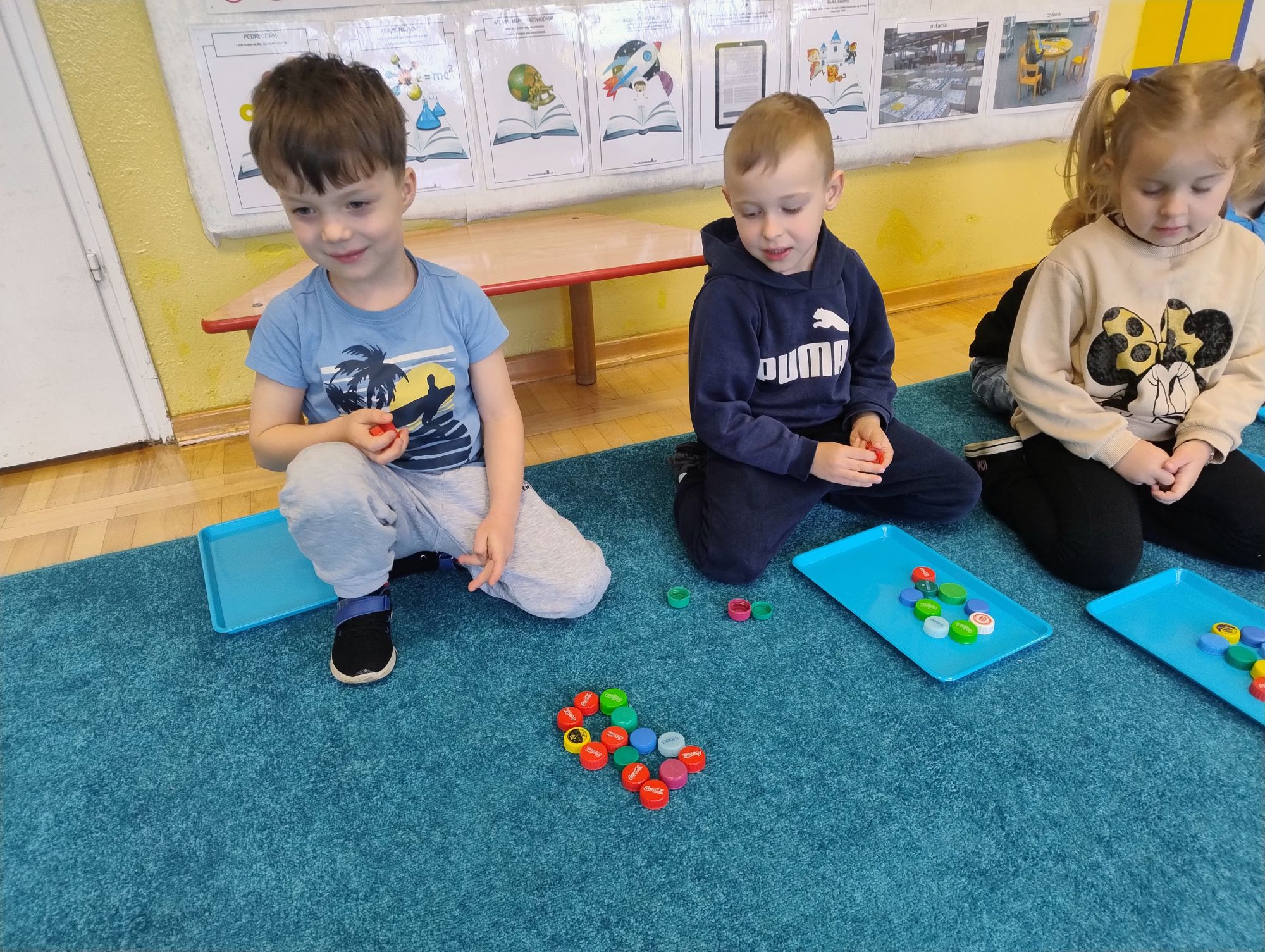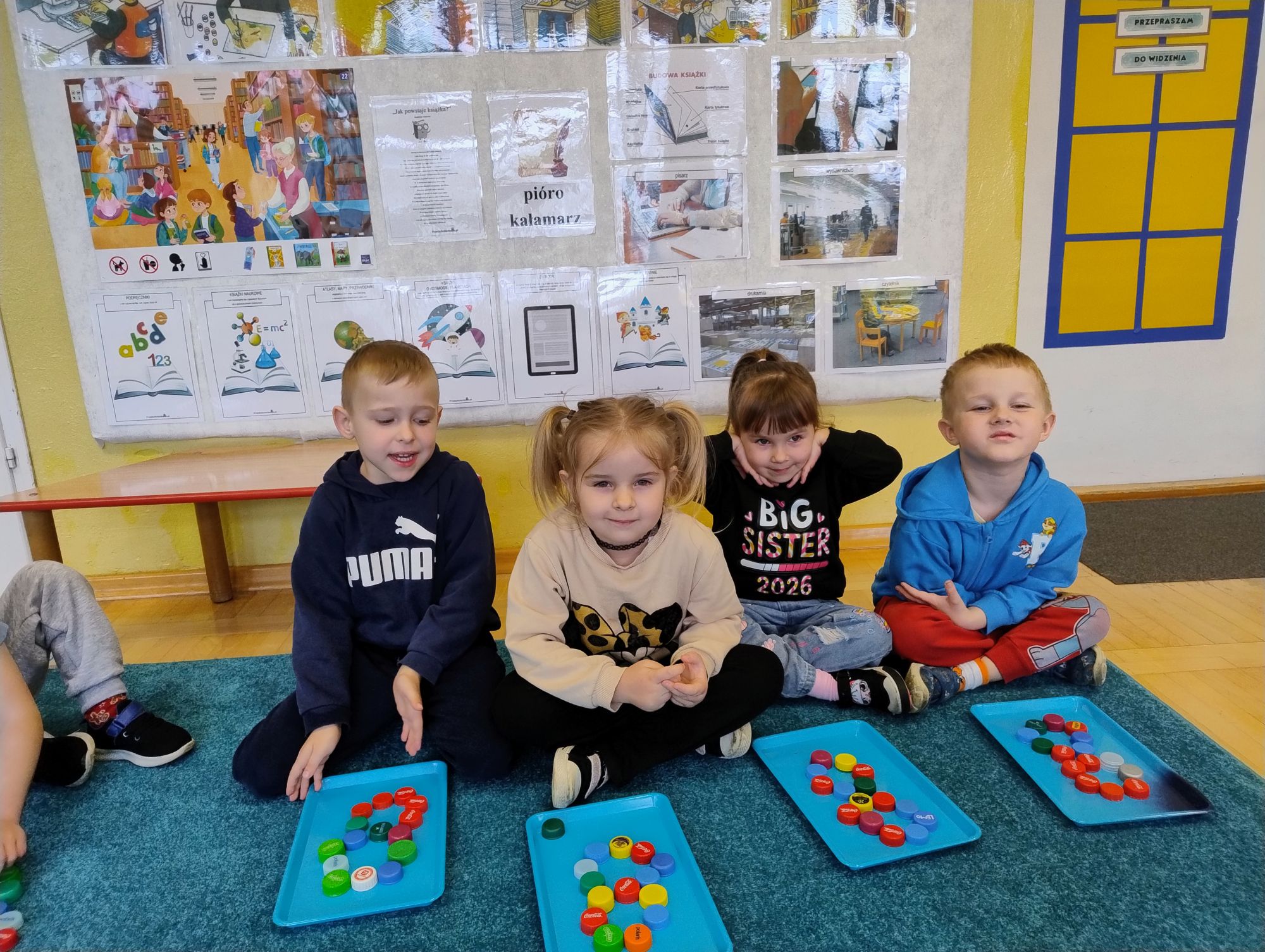 Przedszkolaki z młodszej grupy w ramach realizacji innowacji pedagogicznej "Wesoła matematyka" autorstwa Dominiki Gerlich uczestniczyły w zajęciach matematycznych, które wprowadziły maluszki w magiczny świat matematyki. Dzieci zdobywały wiedzę i umiejętnosci, poprzez aktywny udział w zabawach ruchowych, tworząc prace plastyczne, recytujac wyliczanki i śpiewając piosenki. Wszystkie te zadania pomogły im w nauce liczenia i poznawaniu cyfr. Różnorodne aktywności sprawiły, że maluszki chętnie angażowały sie w zadania i szybciej przyswajały nowe wiadomości. Z zaciekawieniem przeliczały różne przedmioty dopasowywując ich liczbę do odpowiedniej cyfry. Do zajęc posłużyły, m.in, kostka do gry, fasola, plastikowe korki. Dzieci z dużym zaangażowaniem układały kształty cyfr. Innowacja napisana przez wychowawcę, to forma nauki, która sprzyja lepszemu zapamiętywaniu, ale przede wszystkim daje radość i buduje pozytywne skojarzenia z matematyką od najmłodszych lat.