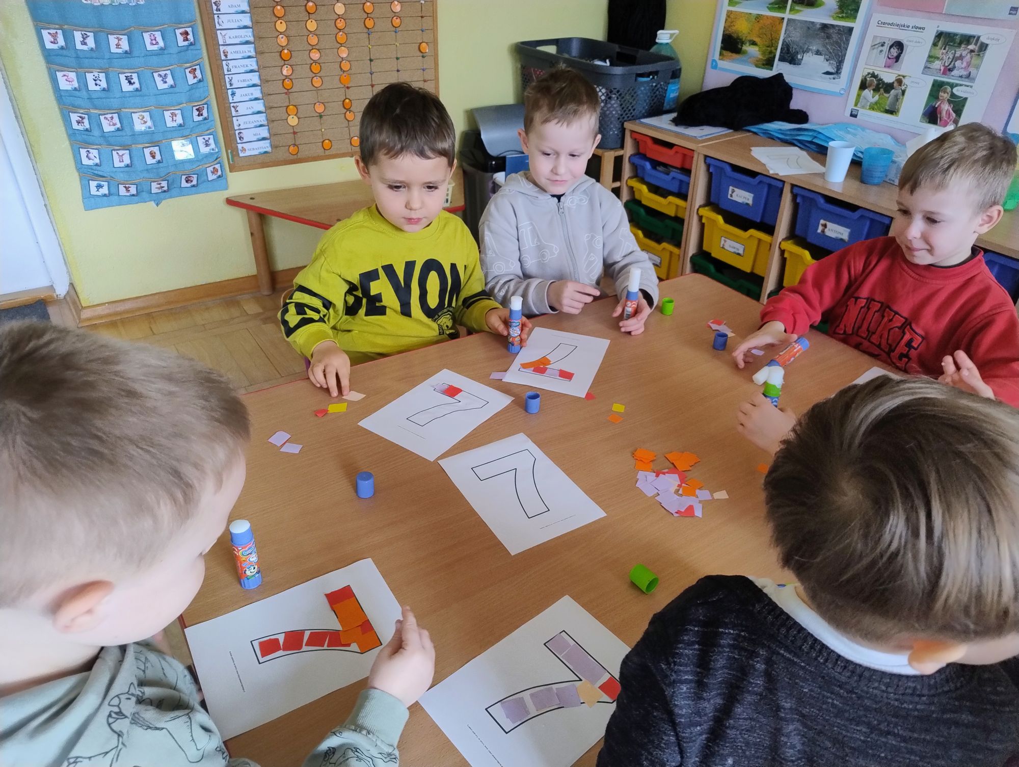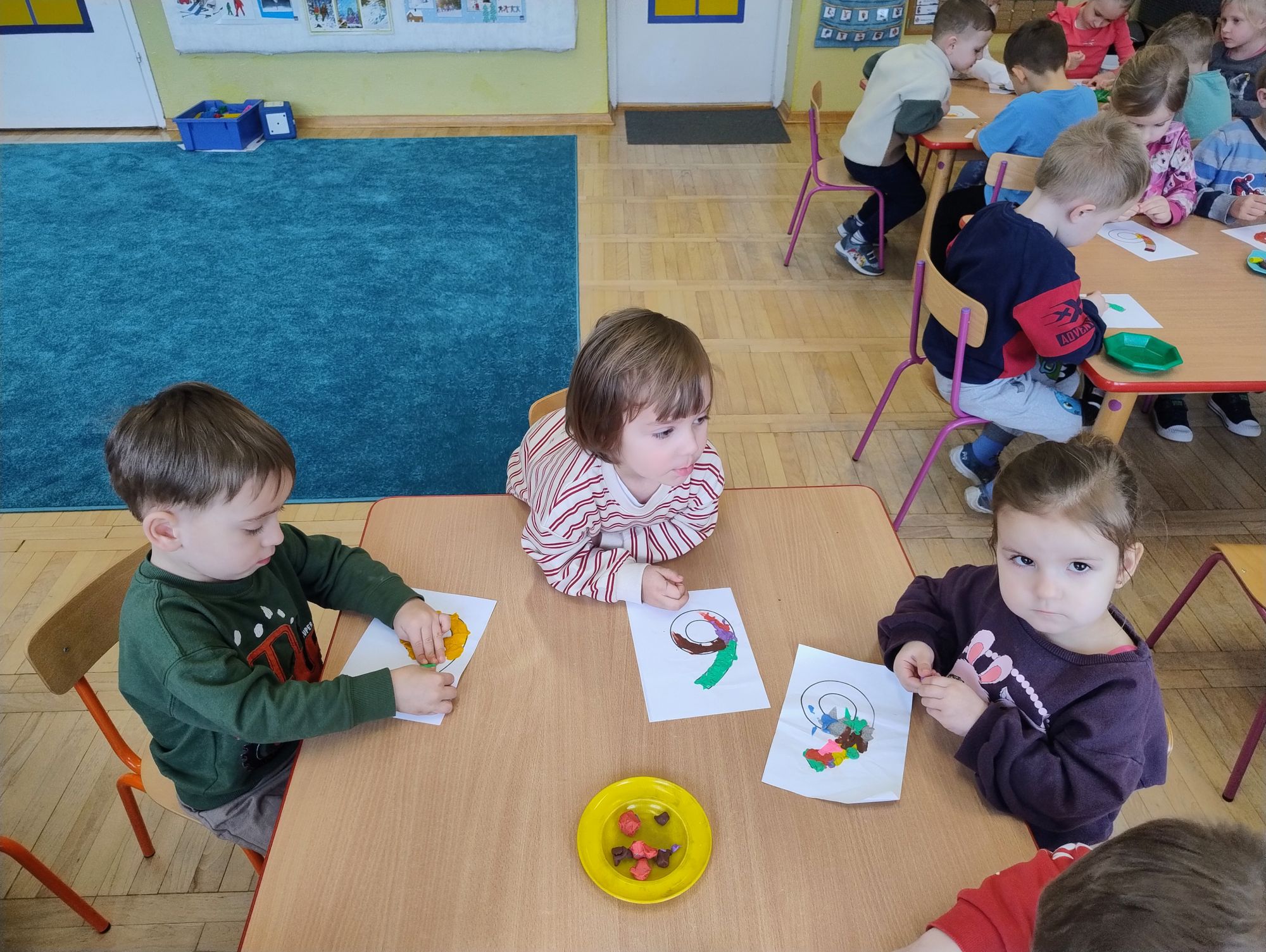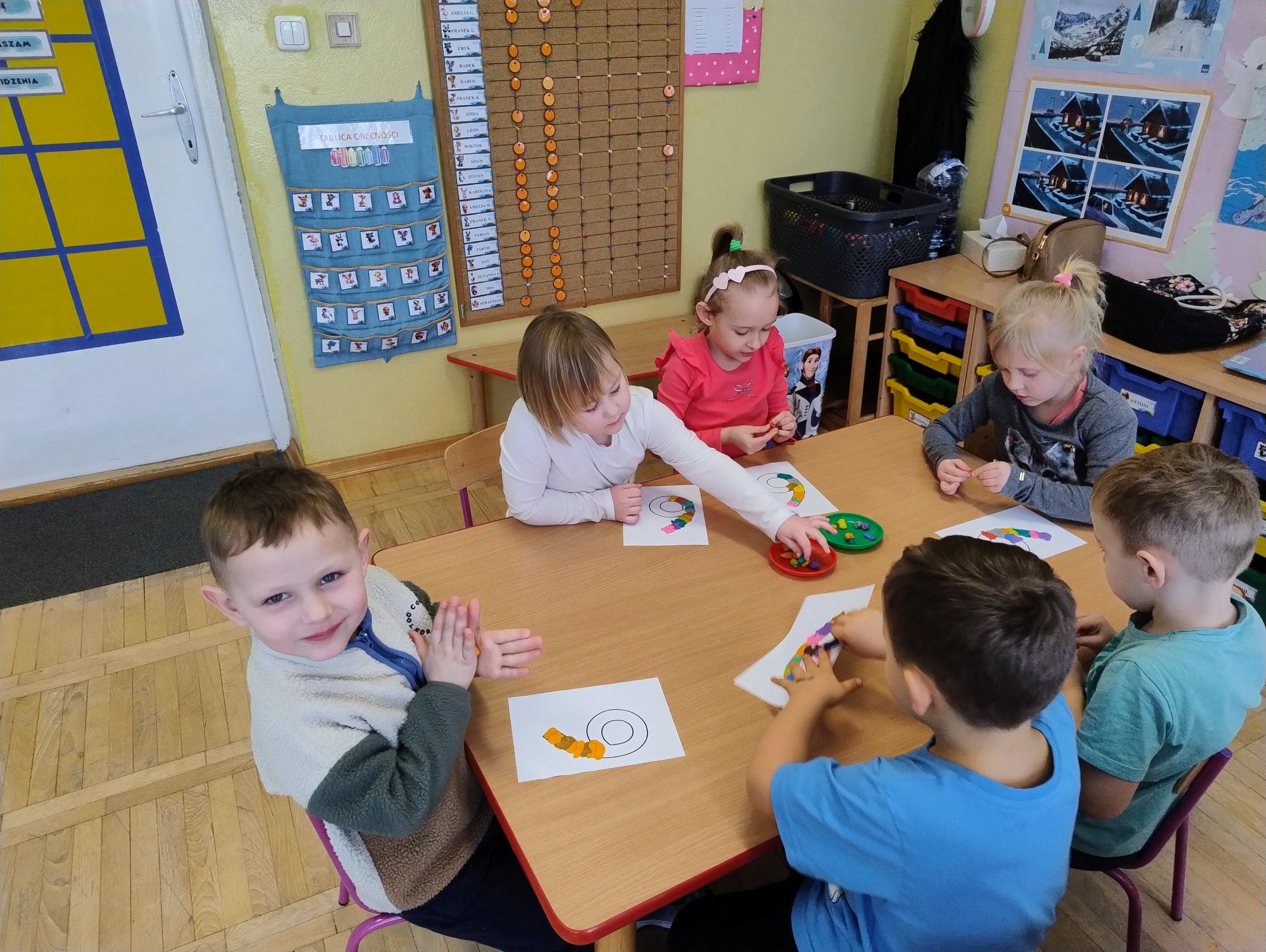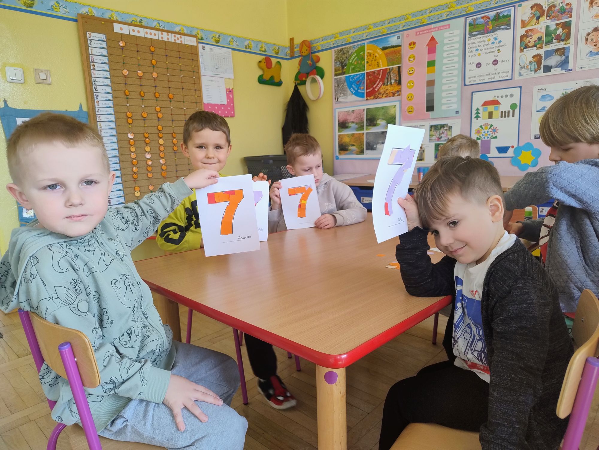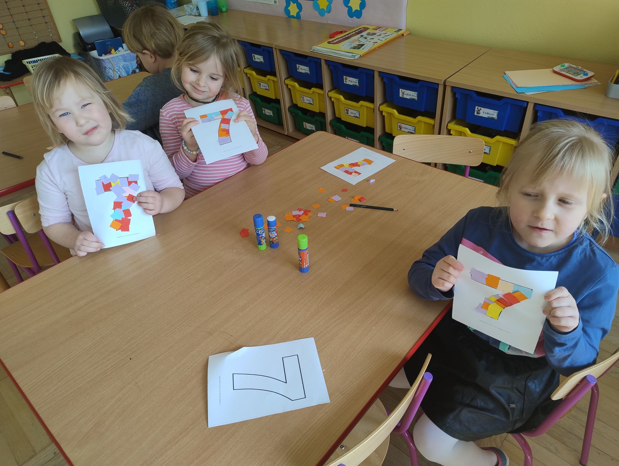 Przedszkolaki z młodszej grupy w ramach realizacji innowacji pedagogicznej "Wesoła matematyka" autorstwa Dominiki Gerlich uczestniczyły w zajęciach matematycznych, które wprowadziły maluszki w magiczny świat matematyki. Dzieci zdobywały wiedzę i umiejętnosci, poprzez aktywny udział w zabawach ruchowych, tworząc prace plastyczne, recytujac wyliczanki i śpiewając piosenki. Wszystkie te zadania pomogły im w nauce liczenia i poznawaniu cyfr. Różnorodne aktywności sprawiły, że maluszki chętnie angażowały sie w zadania i szybciej przyswajały nowe wiadomości. Z zaciekawieniem przeliczały różne przedmioty dopasowywując ich liczbę do odpowiedniej cyfry. Do zajęc posłużyły, m.in, kostka do gry, fasola, plastikowe korki. Dzieci z dużym zaangażowaniem układały kształty cyfr. Innowacja napisana przez wychowawcę, to forma nauki, która sprzyja lepszemu zapamiętywaniu, ale przede wszystkim daje radość i buduje pozytywne skojarzenia z matematyką od najmłodszych lat.