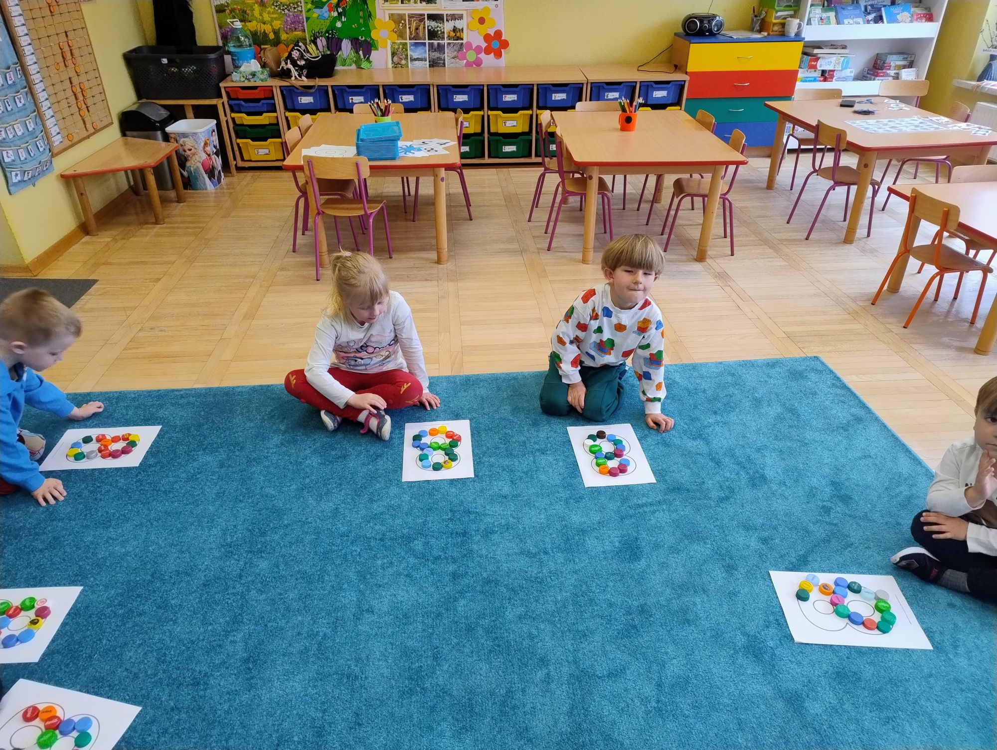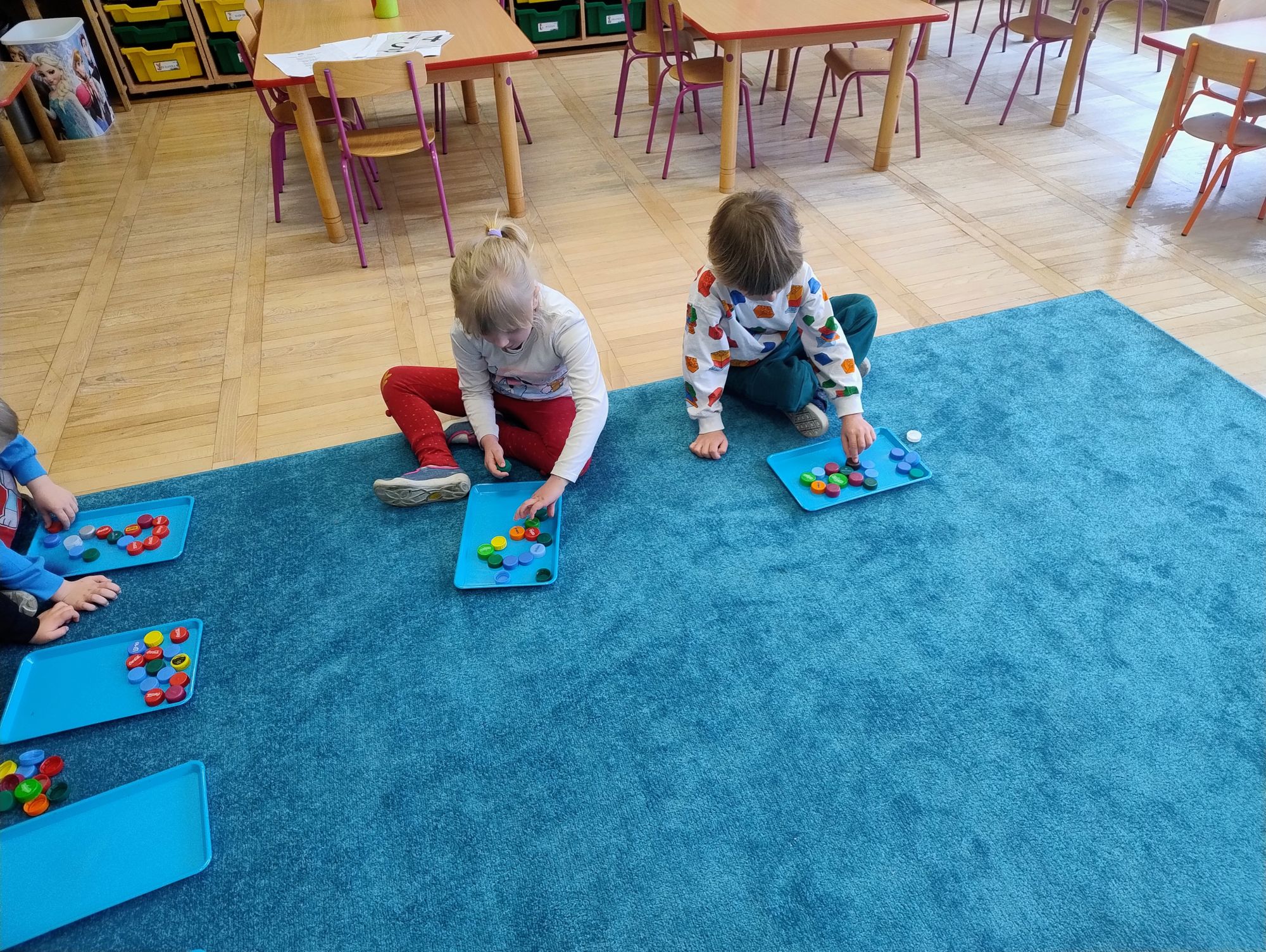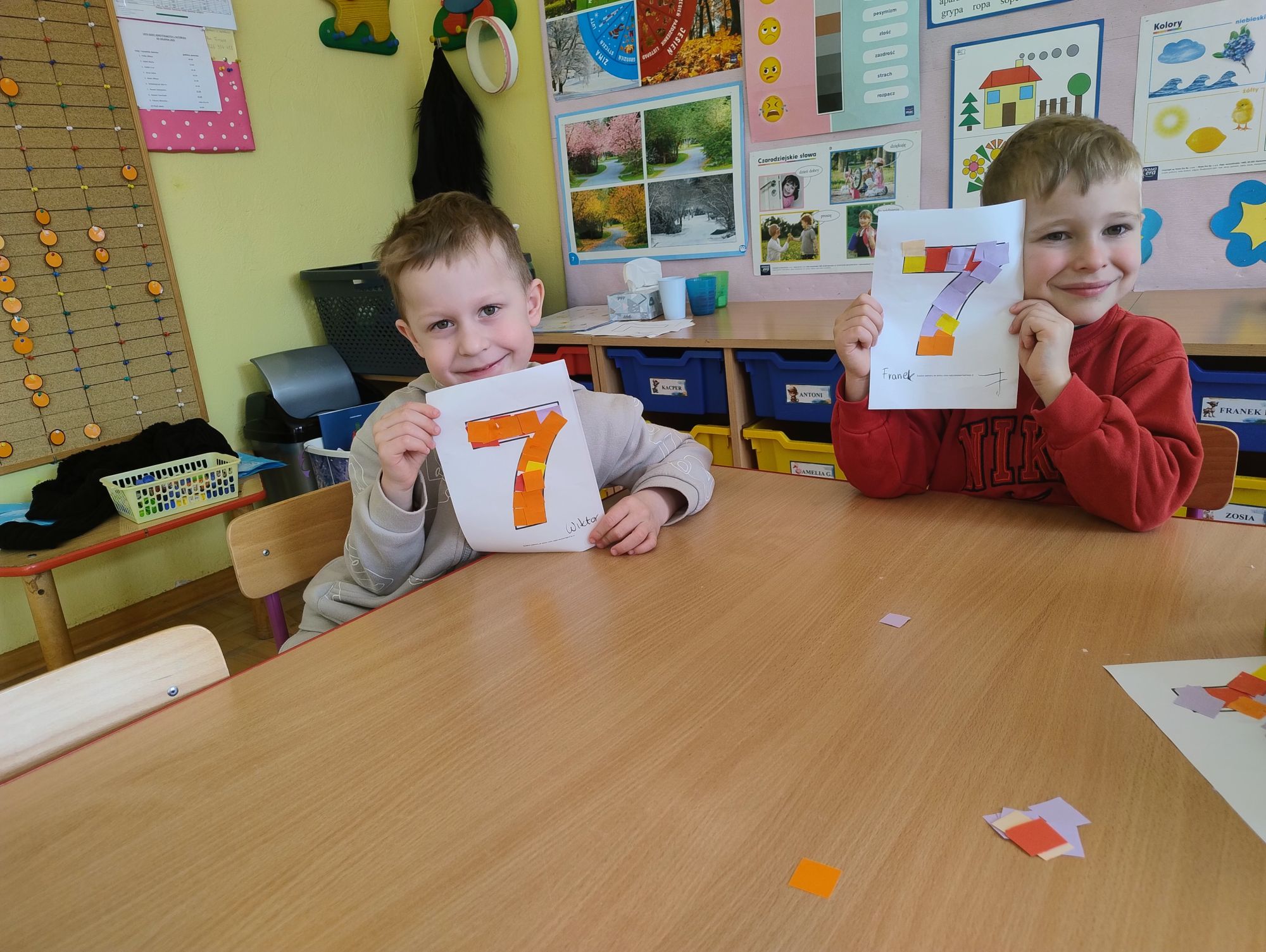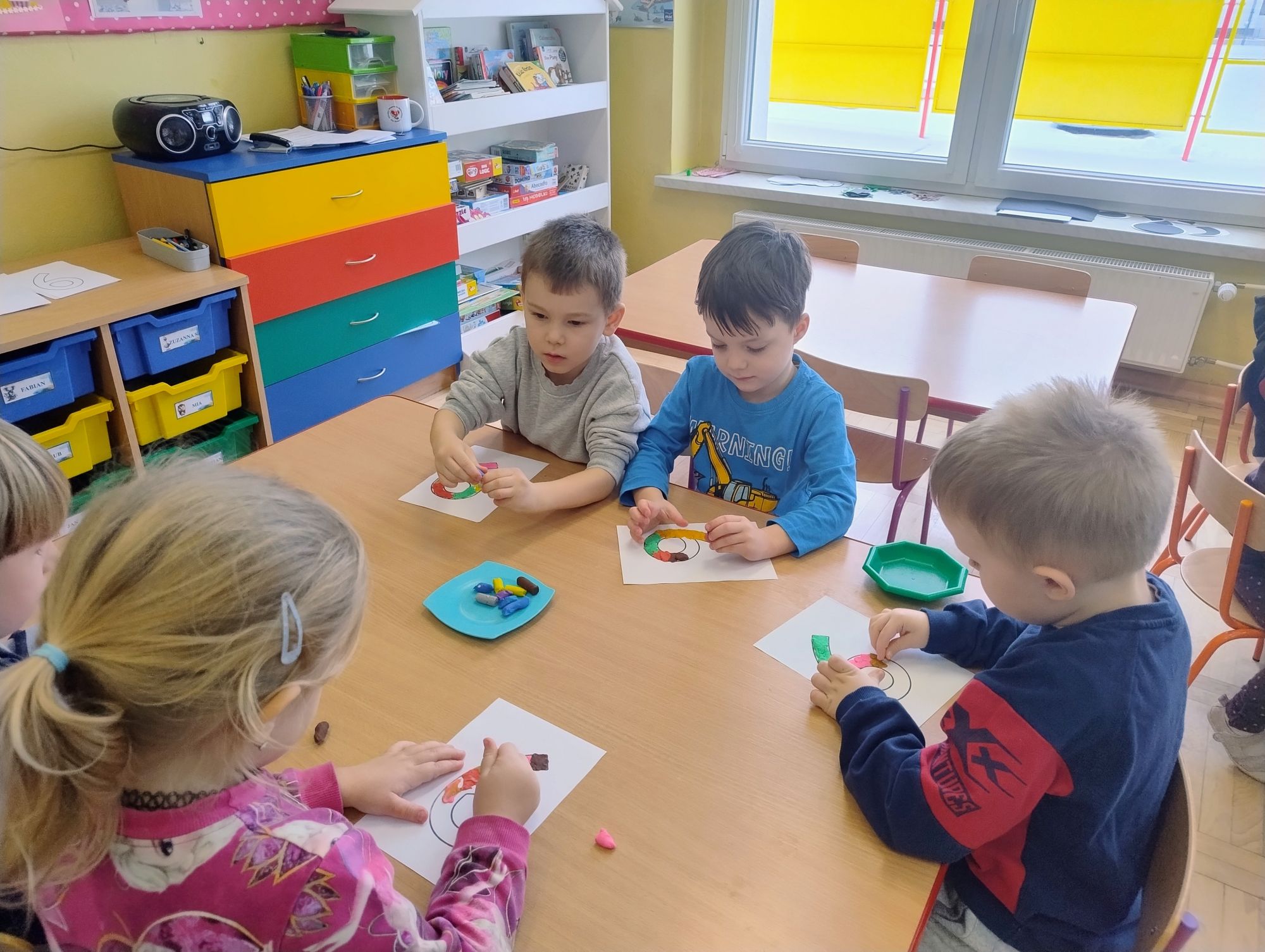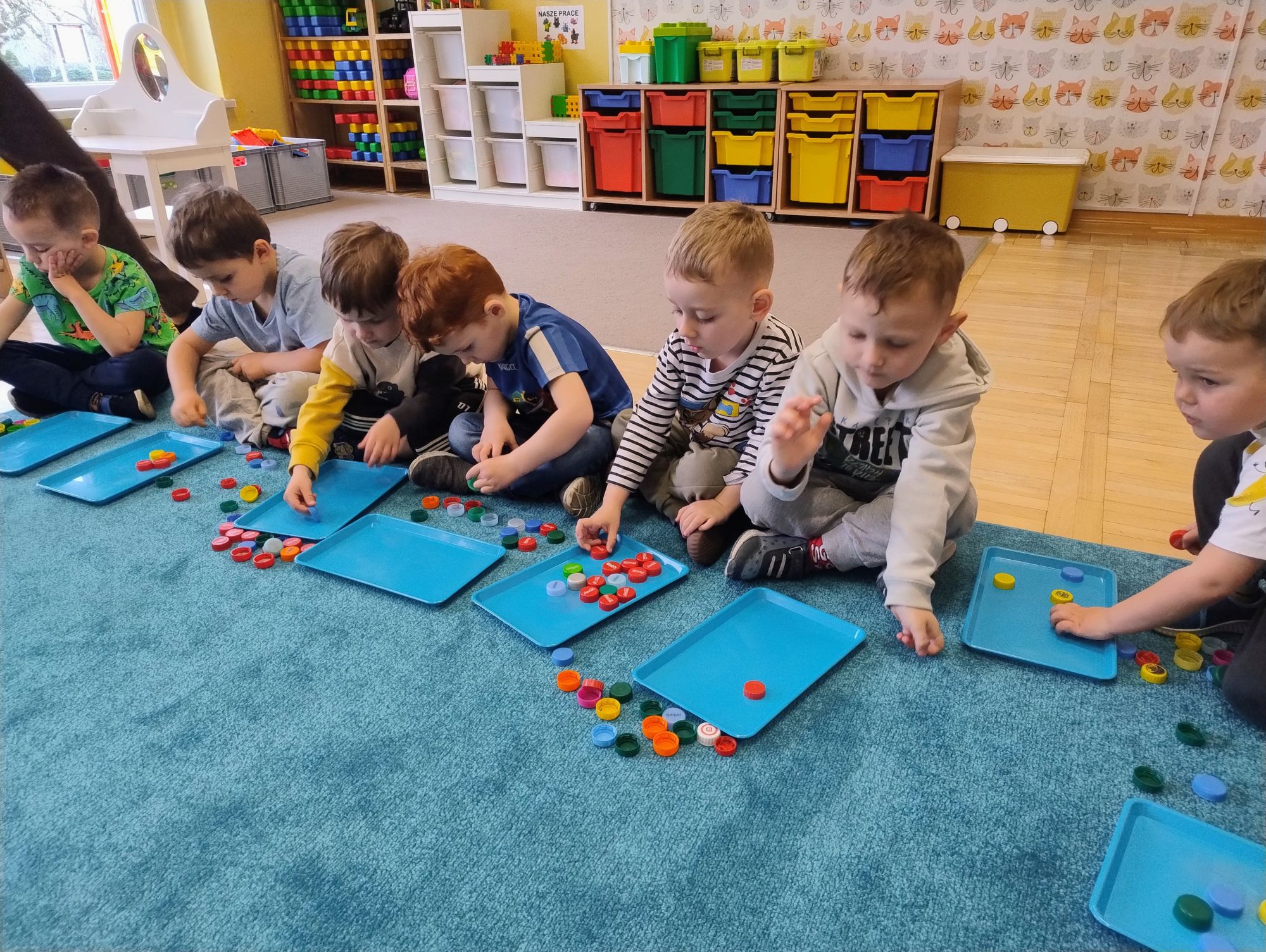 Przedszkolaki z młodszej grupy w ramach realizacji innowacji pedagogicznej "Wesoła matematyka" autorstwa Dominiki Gerlich uczestniczyły w zajęciach matematycznych, które wprowadziły maluszki w magiczny świat matematyki. Dzieci zdobywały wiedzę i umiejętnosci, poprzez aktywny udział w zabawach ruchowych, tworząc prace plastyczne, recytujac wyliczanki i śpiewając piosenki. Wszystkie te zadania pomogły im w nauce liczenia i poznawaniu cyfr. Różnorodne aktywności sprawiły, że maluszki chętnie angażowały sie w zadania i szybciej przyswajały nowe wiadomości. Z zaciekawieniem przeliczały różne przedmioty dopasowywując ich liczbę do odpowiedniej cyfry. Do zajęc posłużyły, m.in, kostka do gry, fasola, plastikowe korki. Dzieci z dużym zaangażowaniem układały kształty cyfr. Innowacja napisana przez wychowawcę, to forma nauki, która sprzyja lepszemu zapamiętywaniu, ale przede wszystkim daje radość i buduje pozytywne skojarzenia z matematyką od najmłodszych lat.