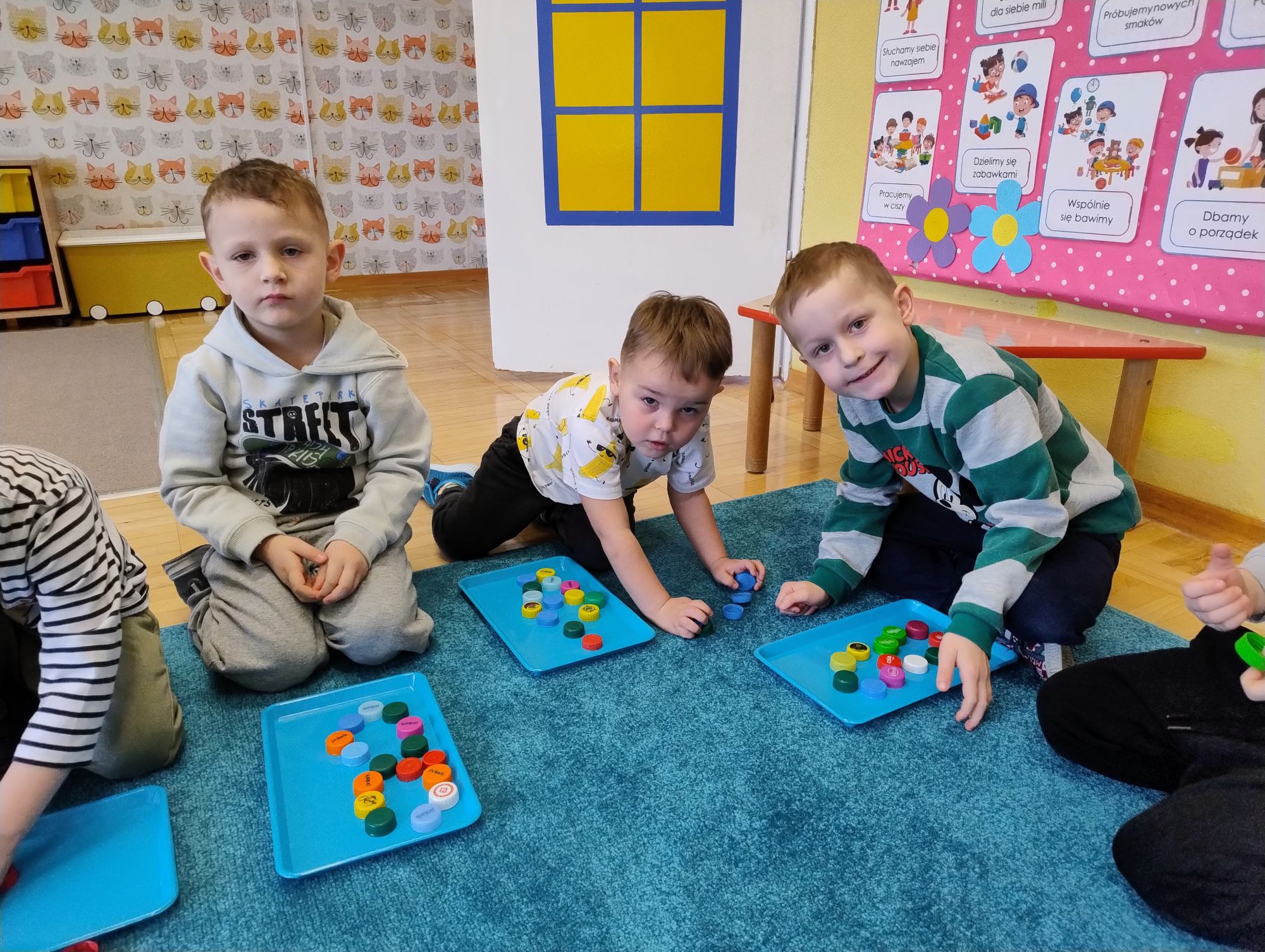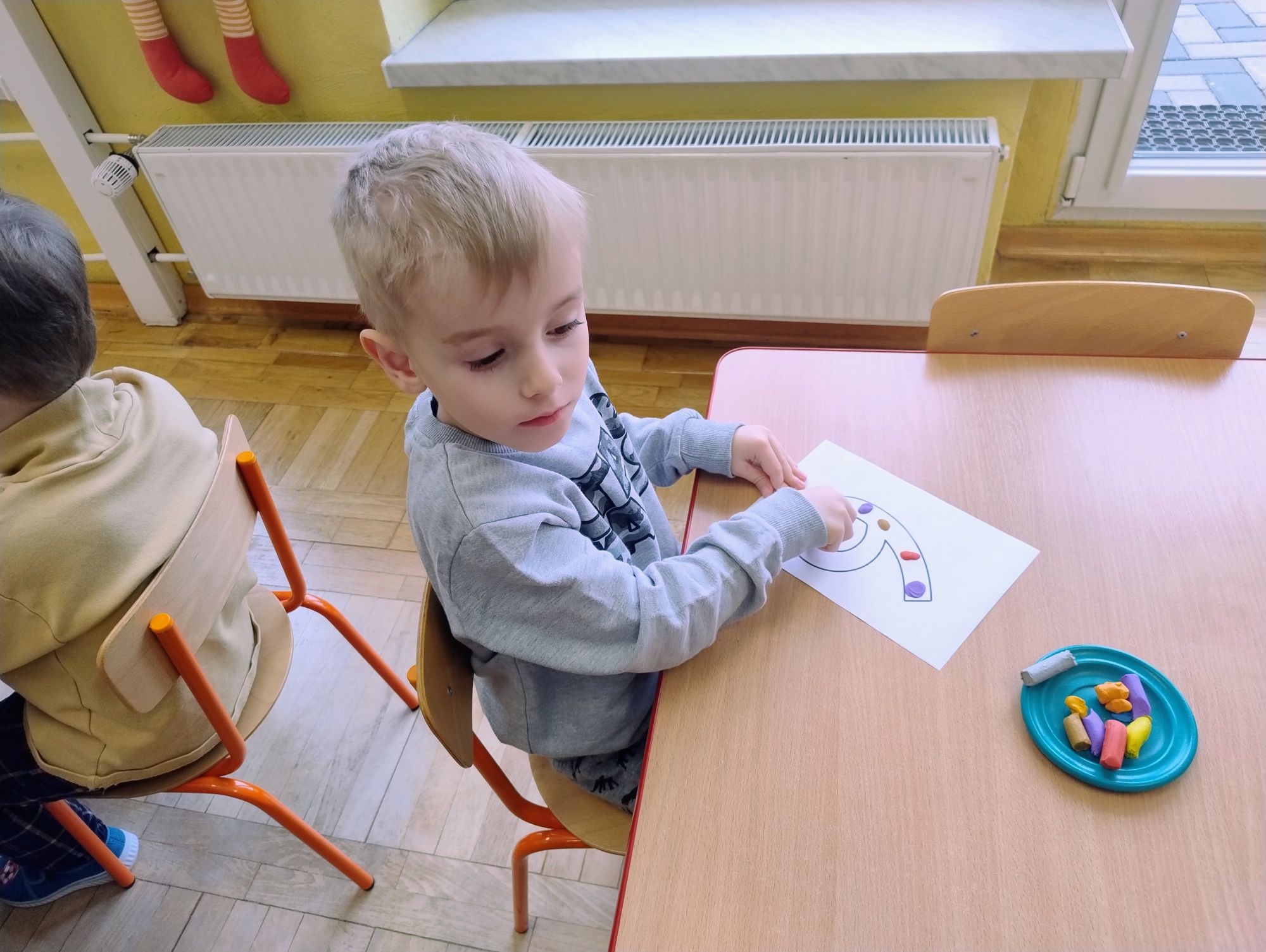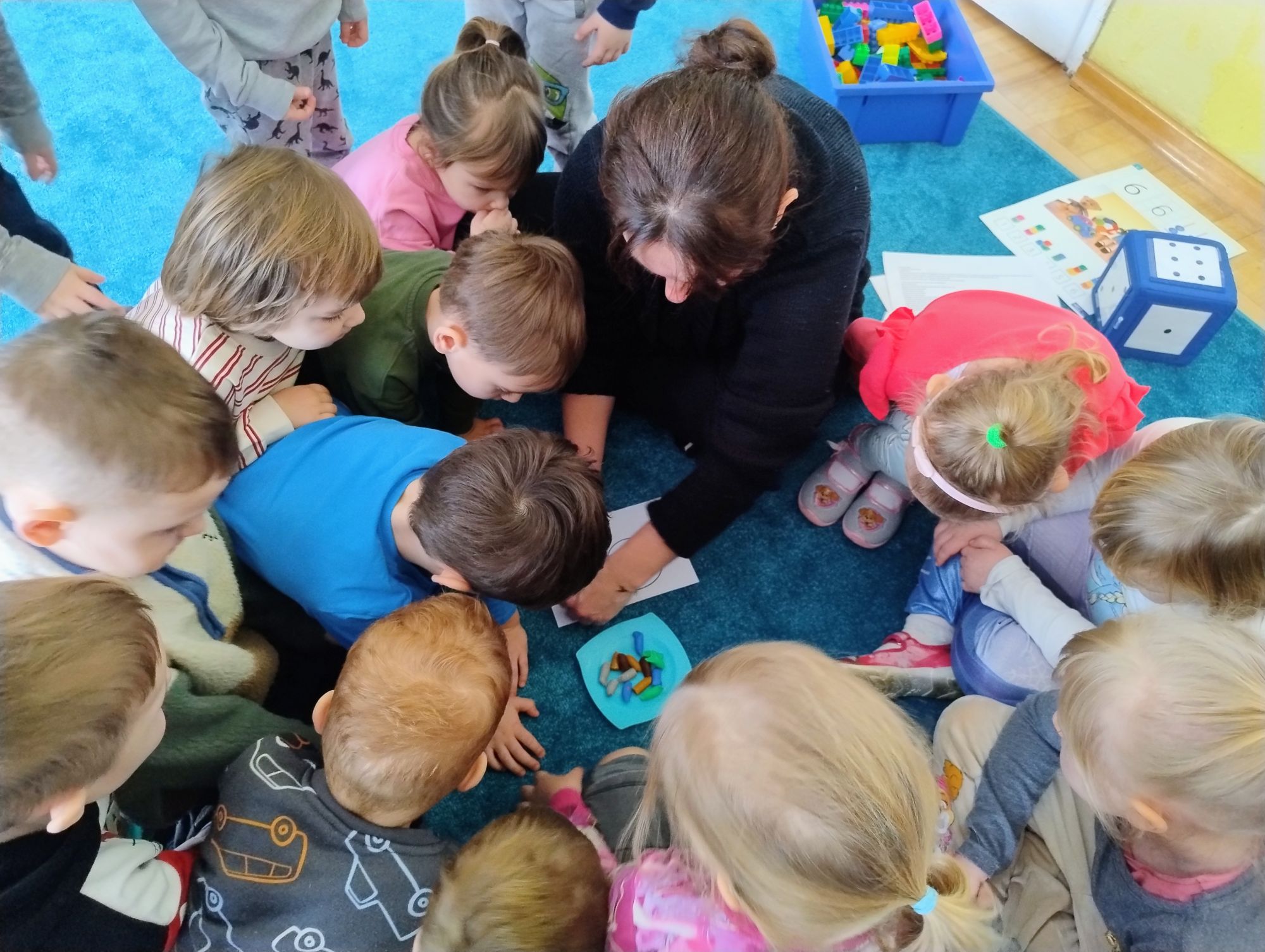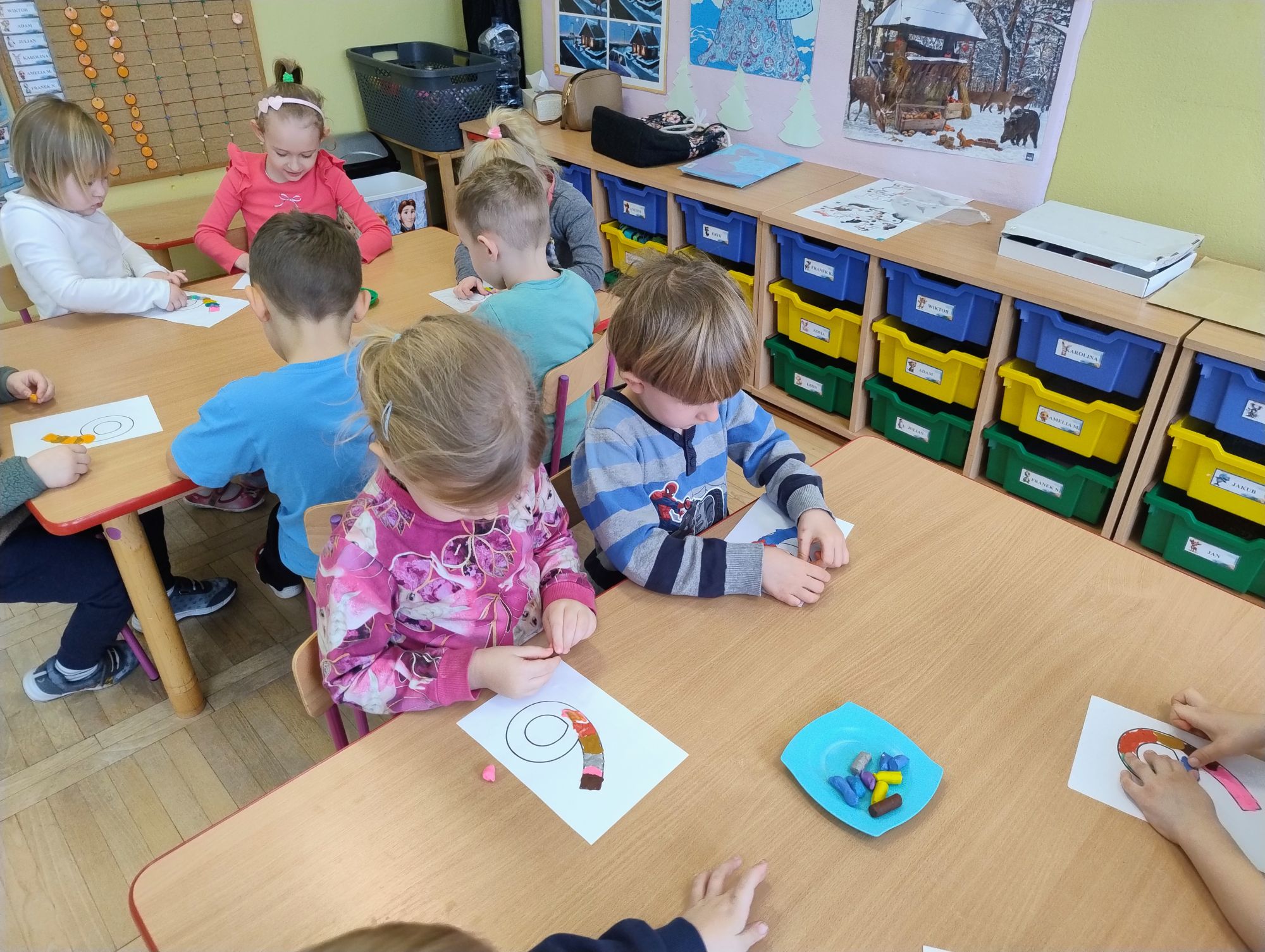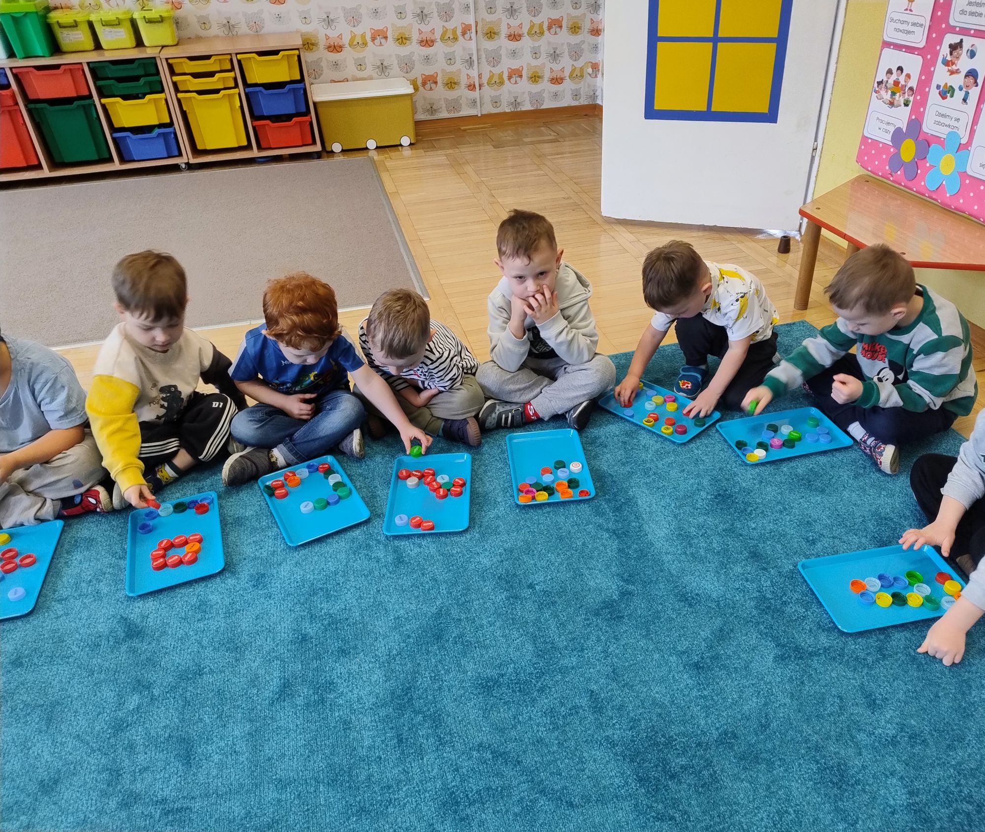 Przedszkolaki z młodszej grupy w ramach realizacji innowacji pedagogicznej "Wesoła matematyka" autorstwa Dominiki Gerlich uczestniczyły w zajęciach matematycznych, które wprowadziły maluszki w magiczny świat matematyki. Dzieci zdobywały wiedzę i umiejętnosci, poprzez aktywny udział w zabawach ruchowych, tworząc prace plastyczne, recytujac wyliczanki i śpiewając piosenki. Wszystkie te zadania pomogły im w nauce liczenia i poznawaniu cyfr. Różnorodne aktywności sprawiły, że maluszki chętnie angażowały sie w zadania i szybciej przyswajały nowe wiadomości. Z zaciekawieniem przeliczały różne przedmioty dopasowywując ich liczbę do odpowiedniej cyfry. Do zajęc posłużyły, m.in, kostka do gry, fasola, plastikowe korki. Dzieci z dużym zaangażowaniem układały kształty cyfr. Innowacja napisana przez wychowawcę, to forma nauki, która sprzyja lepszemu zapamiętywaniu, ale przede wszystkim daje radość i buduje pozytywne skojarzenia z matematyką od najmłodszych lat.
