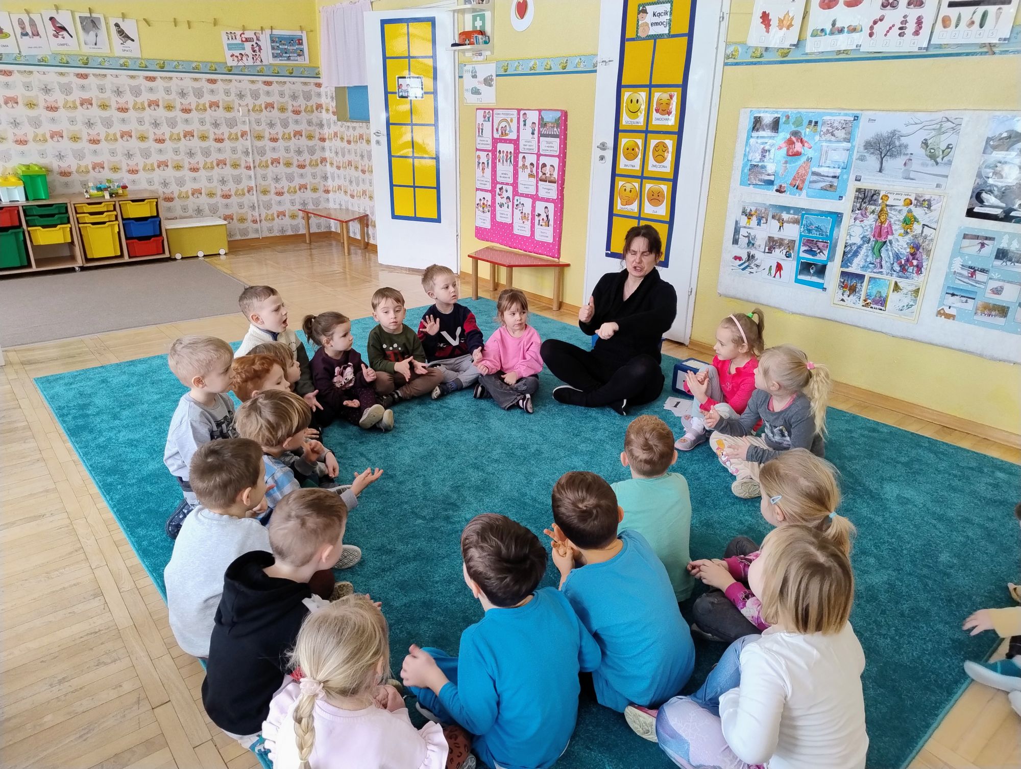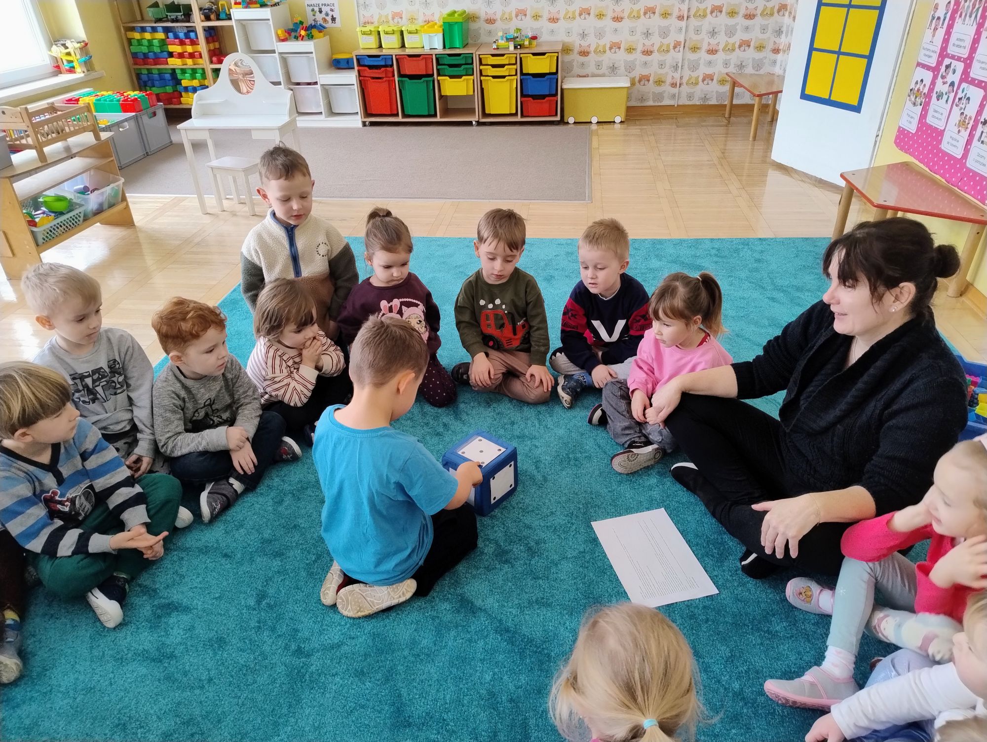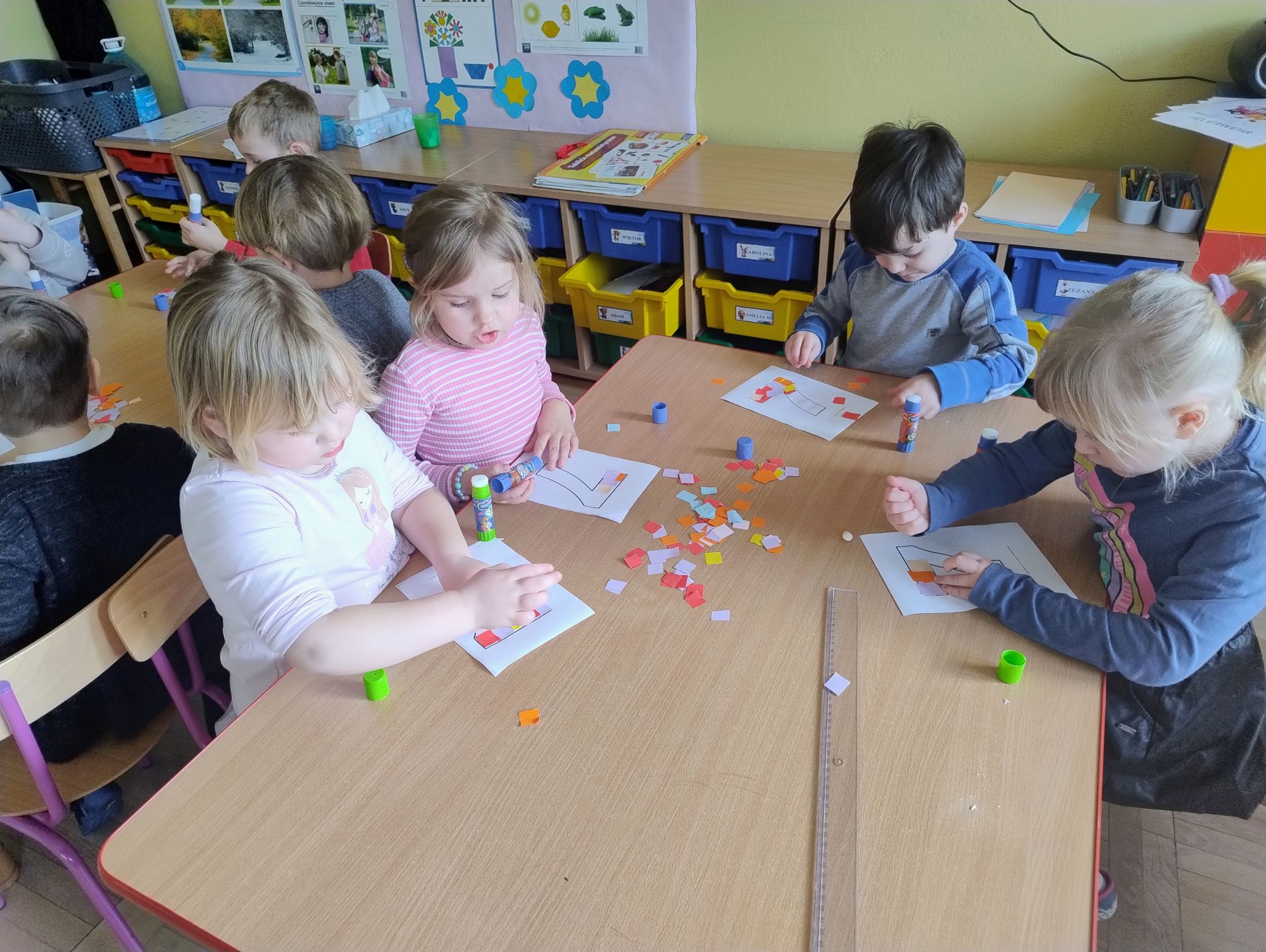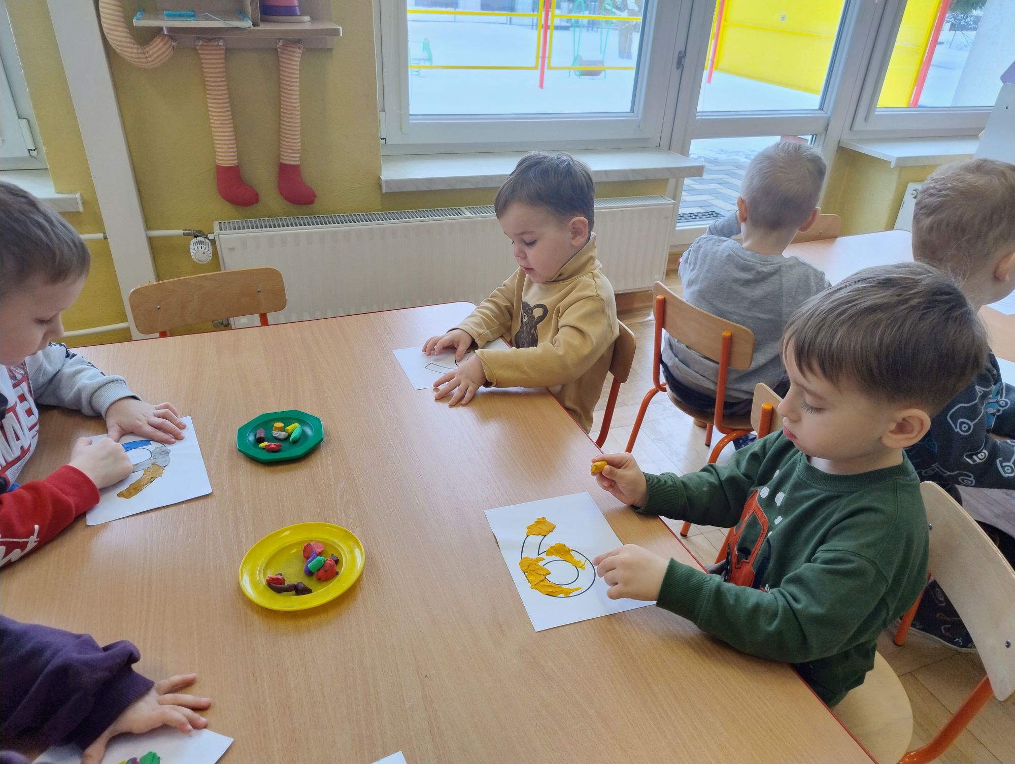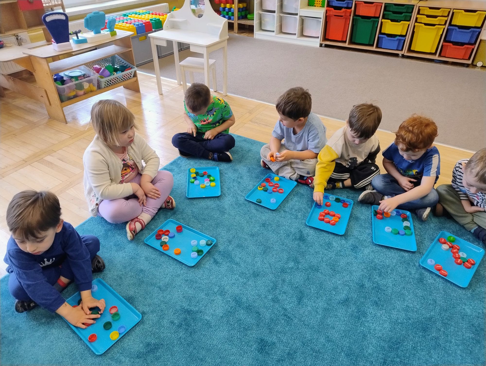 Przedszkolaki z młodszej grupy w ramach realizacji innowacji pedagogicznej "Wesoła matematyka" autorstwa Dominiki Gerlich uczestniczyły w zajęciach matematycznych, które wprowadziły maluszki w magiczny świat matematyki. Dzieci zdobywały wiedzę i umiejętnosci, poprzez aktywny udział w zabawach ruchowych, tworząc prace plastyczne, recytujac wyliczanki i śpiewając piosenki. Wszystkie te zadania pomogły im w nauce liczenia i poznawaniu cyfr. Różnorodne aktywności sprawiły, że maluszki chętnie angażowały sie w zadania i szybciej przyswajały nowe wiadomości. Z zaciekawieniem przeliczały różne przedmioty dopasowywując ich liczbę do odpowiedniej cyfry. Do zajęc posłużyły, m.in, kostka do gry, fasola, plastikowe korki. Dzieci z dużym zaangażowaniem układały kształty cyfr. Innowacja napisana przez wychowawcę, to forma nauki, która sprzyja lepszemu zapamiętywaniu, ale przede wszystkim daje radość i buduje pozytywne skojarzenia z matematyką od najmłodszych lat.