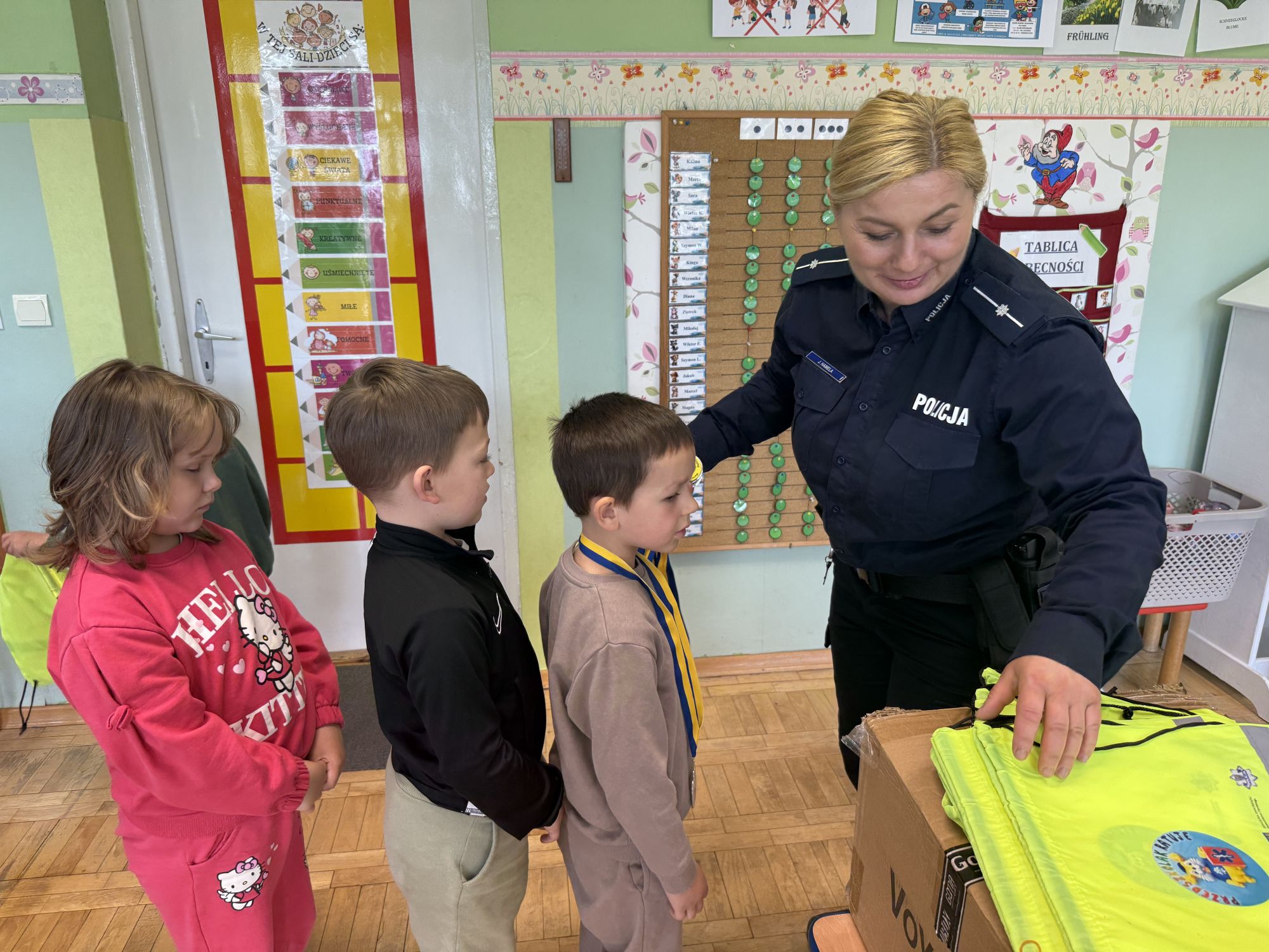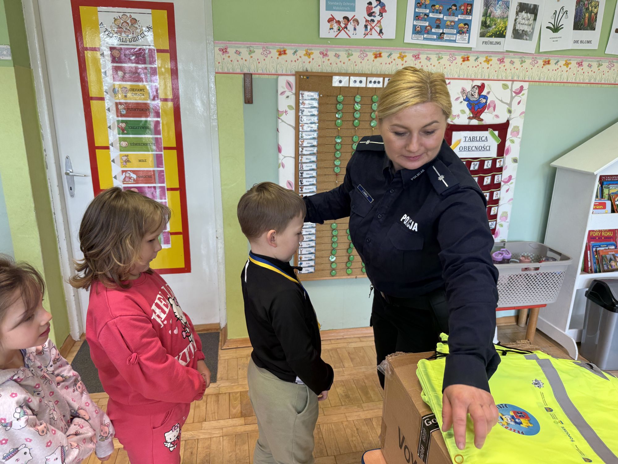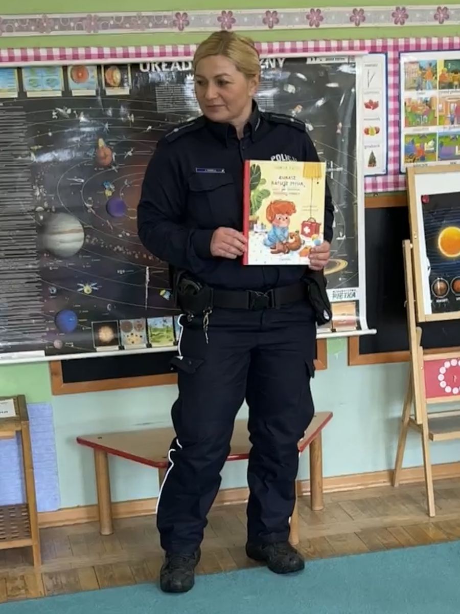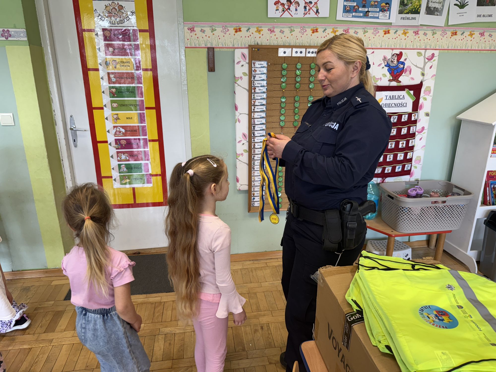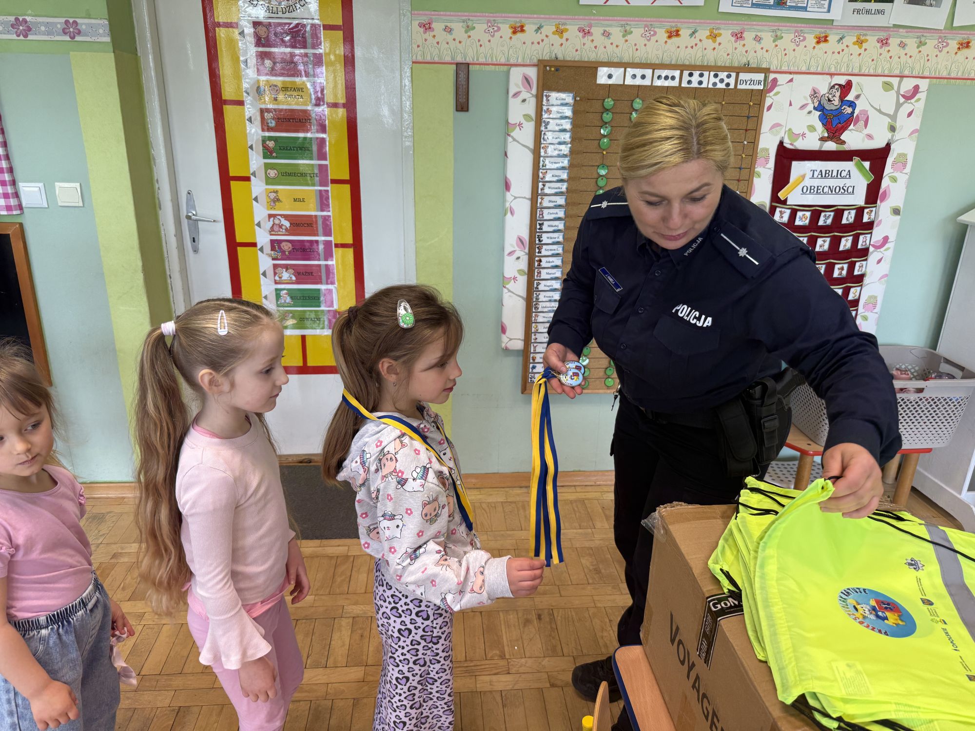 17 kwietnia nasze starszaki wzięły udział w programie edukacyjnym „Przedszkolak ratuje”, zainicjowanym przez Samorząd Województwa Opolskiego we współpracy z opolską Policją oraz Opolskim Centrum Edukacji. Celem programu jest nauczenie dzieci w wieku 5–6 lat, jak bezpiecznie reagować w sytuacjach zagrożenia. Zajęcia na terenie województwa opolskiego prowadzone są przez policjantów, ratowników medycznych oraz strażaków, którzy w przystępny sposób przekazują najmłodszym zasady bezpieczeństwa, uczą korzystania z numerów alarmowych oraz podstaw pierwszej pomocy – w tym ucisków klatki piersiowej. W naszym przedszkolu takie zajęcia przeprowadziła przedstawicielka Policji – mł. asp. Justyna Hamela. Spotkanie rozpoczęło się od wysłuchania książki Izabeli Michty „Łukasz ratuje Misia, czyli jak udzielać pierwszej pomocy”. Opowiadanie było punktem wyjścia do rozmów oraz działań praktycznych. Przedszkolaki uczyły się, jak reagować w sytuacjach zagrożenia życia – ćwiczyły udzielanie pierwszej pomocy na swoich ulubionych pluszakach oraz utrwalały znajomość numeru alarmowego 112. Na zakończenie zajęć każde dziecko otrzymało od naszego gościa odblaskowy worek oraz pamiątkowy medal. Było to niezwykle wartościowe spotkanie, które w atrakcyjny sposób połączyło zabawę z nauką. Zdobyta wiedza i umiejętności mogą w przyszłości pomóc uratować ludzkie życie.
