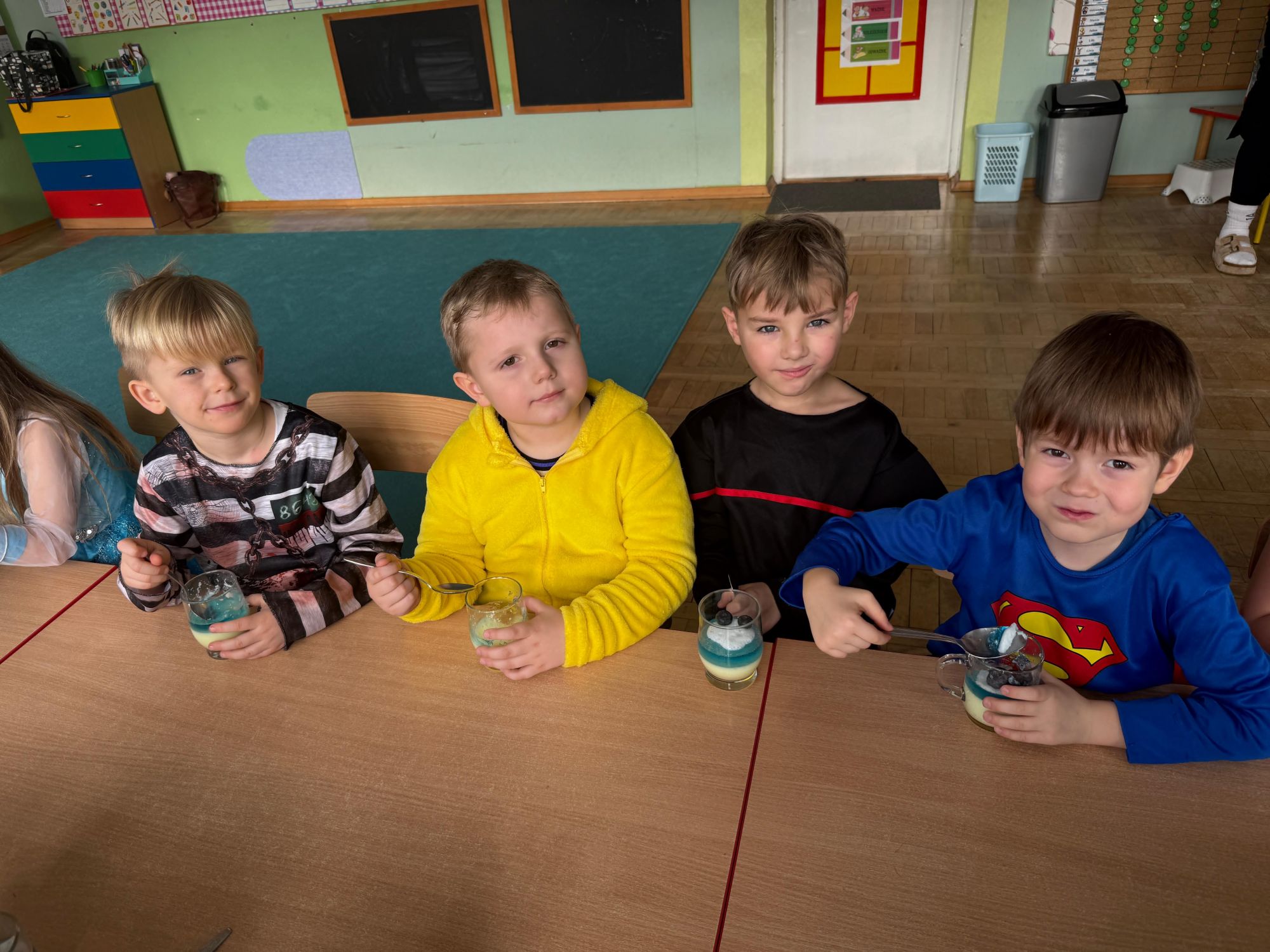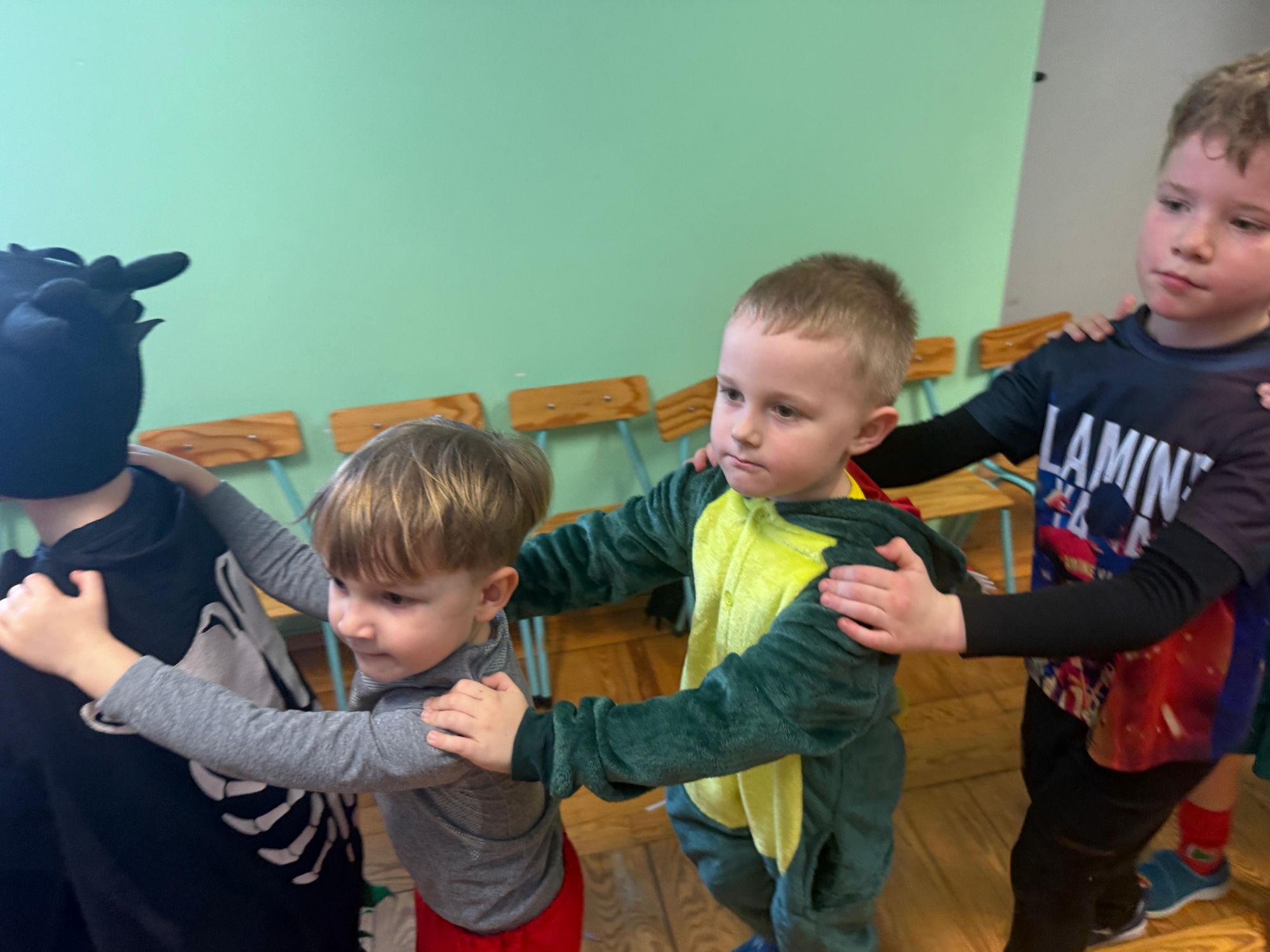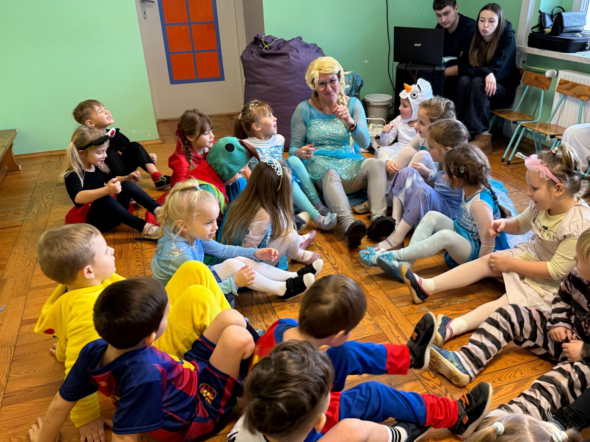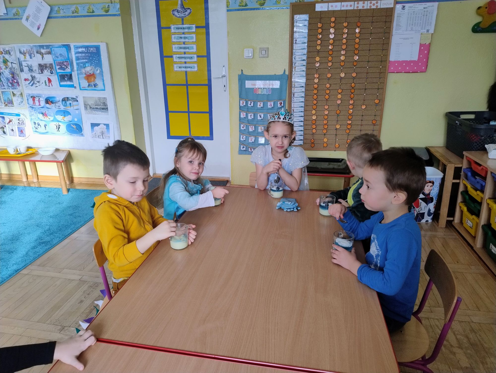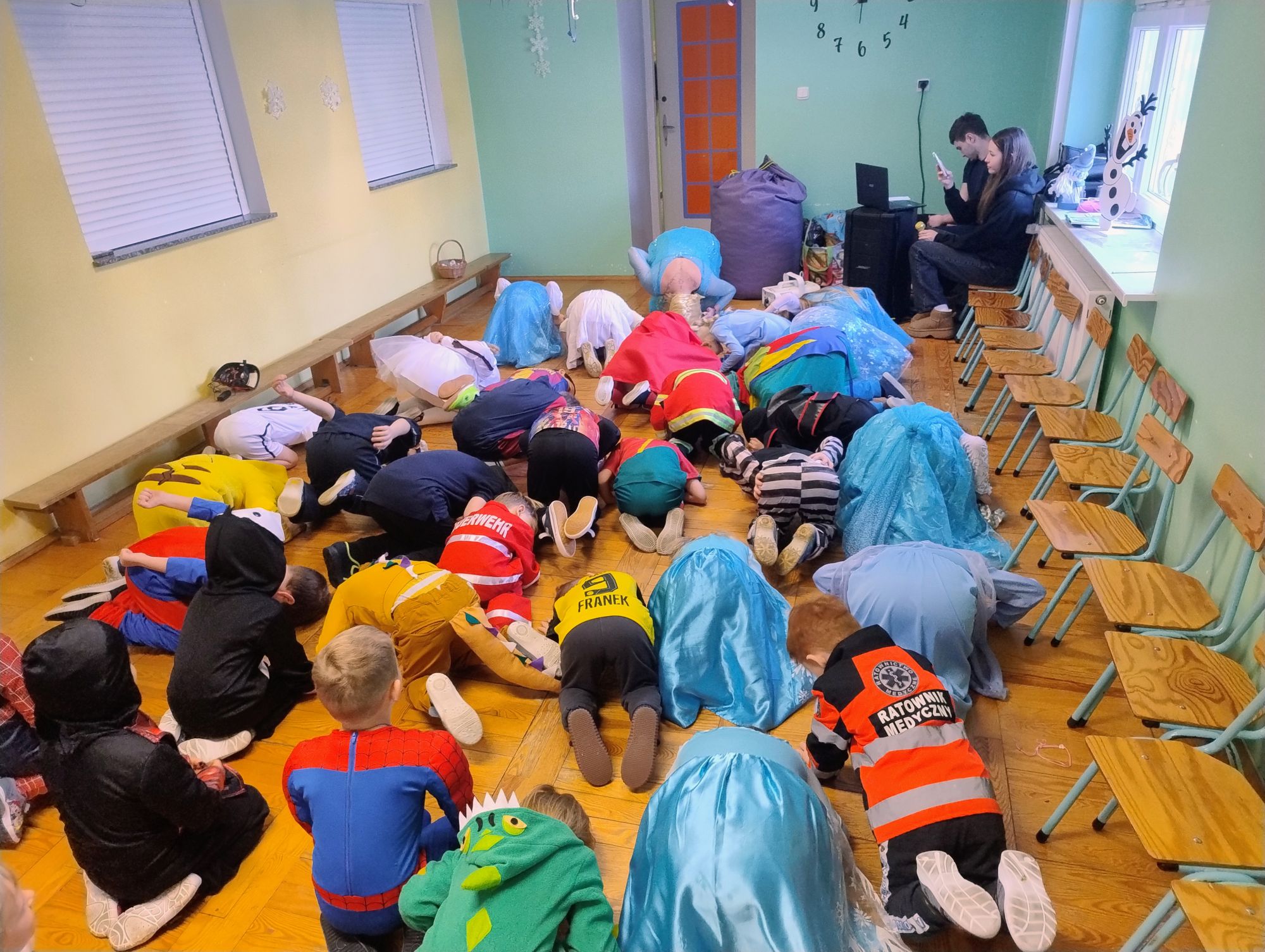 15 stycznia w naszym przedszkolu odbył się wyjątkowy bal karnawałowy pod hasłem „W krainie lodu”. To pełne radości i uśmiechu wydarzenie poprowadziła pani Barbara Koprek z firmy Skeleton, która zadbała o wspaniałą atmosferę oraz mnóstwo atrakcji dla najmłodszych. Tego dnia dzieci przyszły do przedszkola przebrane za swoich ulubionych bohaterów z bajek, filmów i nie tylko. Wśród barwnego tłumu można było spotkać m.in. Elsy, Królowe Śniegu, Olafa, bohaterów Psiego Patrolu, policjantów, piłkarzy oraz wiele innych fantastycznych postaci. Sala została specjalnie na tę okazję pięknie udekorowana balonami, girlandami i serpentynami, które doskonale wpisywały się w zimową tematykę balu. Na przedszkolaki czekało mnóstwo atrakcji – wspólne tańce, wesołe konkurencje oraz różnorodne zadania, w których dzieci chętnie brały udział razem z paniami. Nie zabrakło również chwili na odpoczynek i ugaszenie pragnienia. Po radosnych zabawach na dzieci czekał pyszny poczęstunek w postaci deseru „Śnieżna kraina”- kolorowej galaretki, która wszystkim bardzo smakowała. Zwieńczeniem tego wyjątkowego dnia była miła niespodzianka. Przedszkole odwiedził Stitch - kosmiczna postać z bajki Disneya, wywołując u dzieci ogromne emocje i szerokie uśmiechy. Bal karnawałowy był pełen radości, śmiechu i niezapomnianych wrażeń, a wspólna zabawa na długo pozostanie w pamięci wszystkich uczestników.