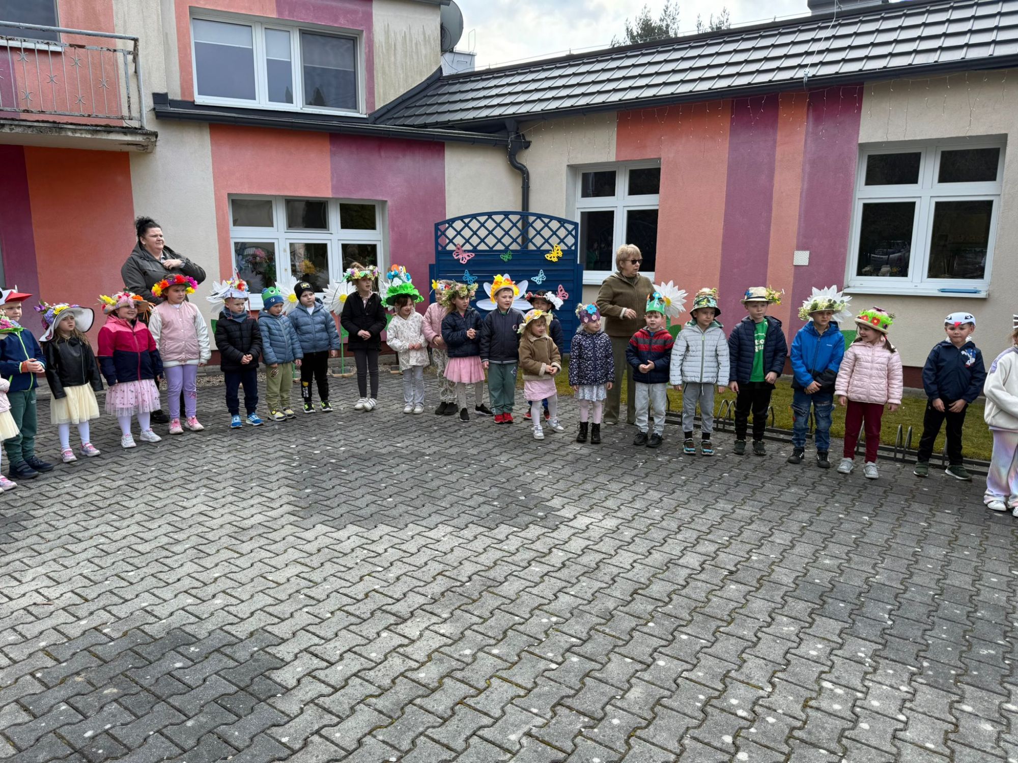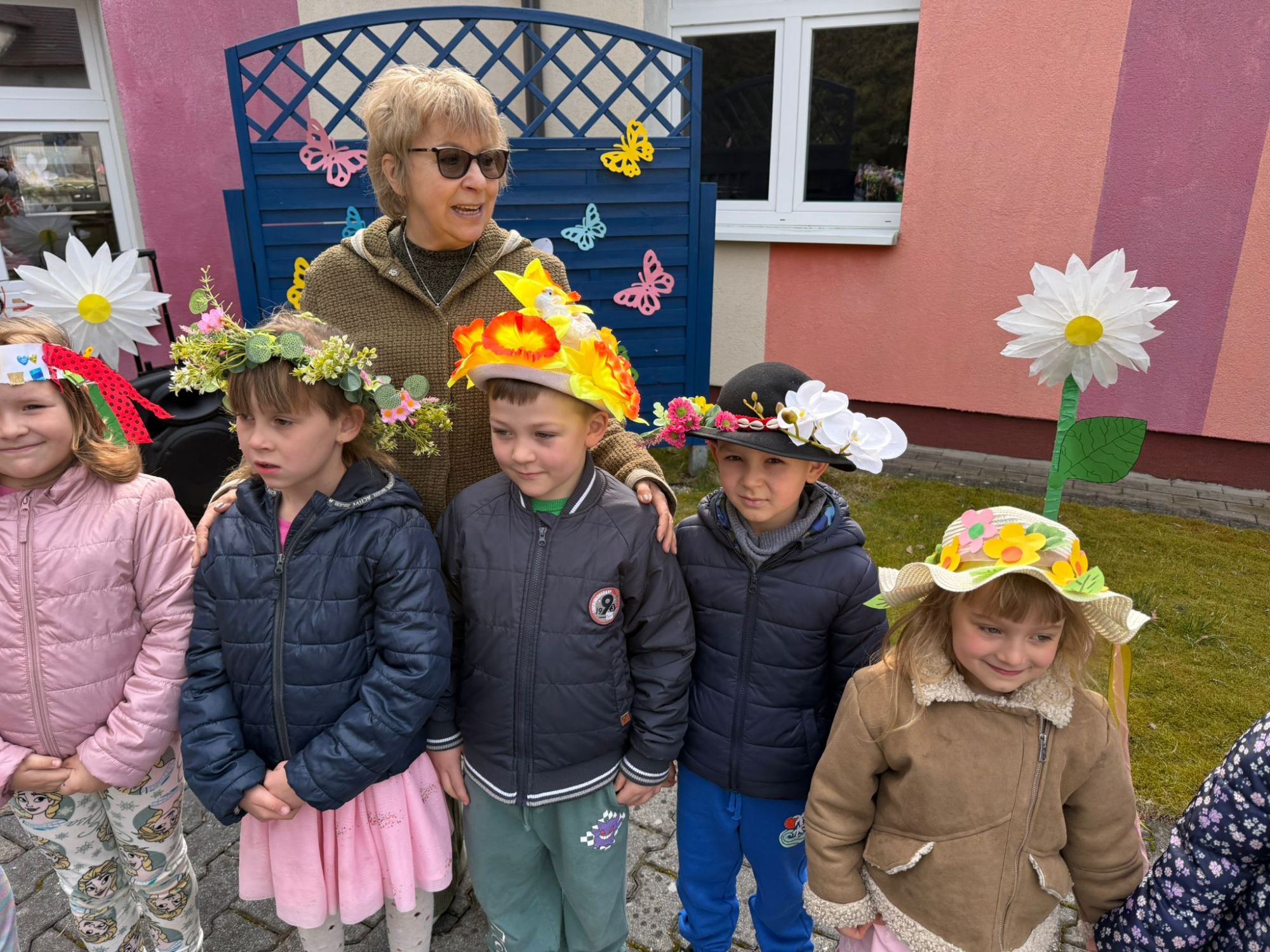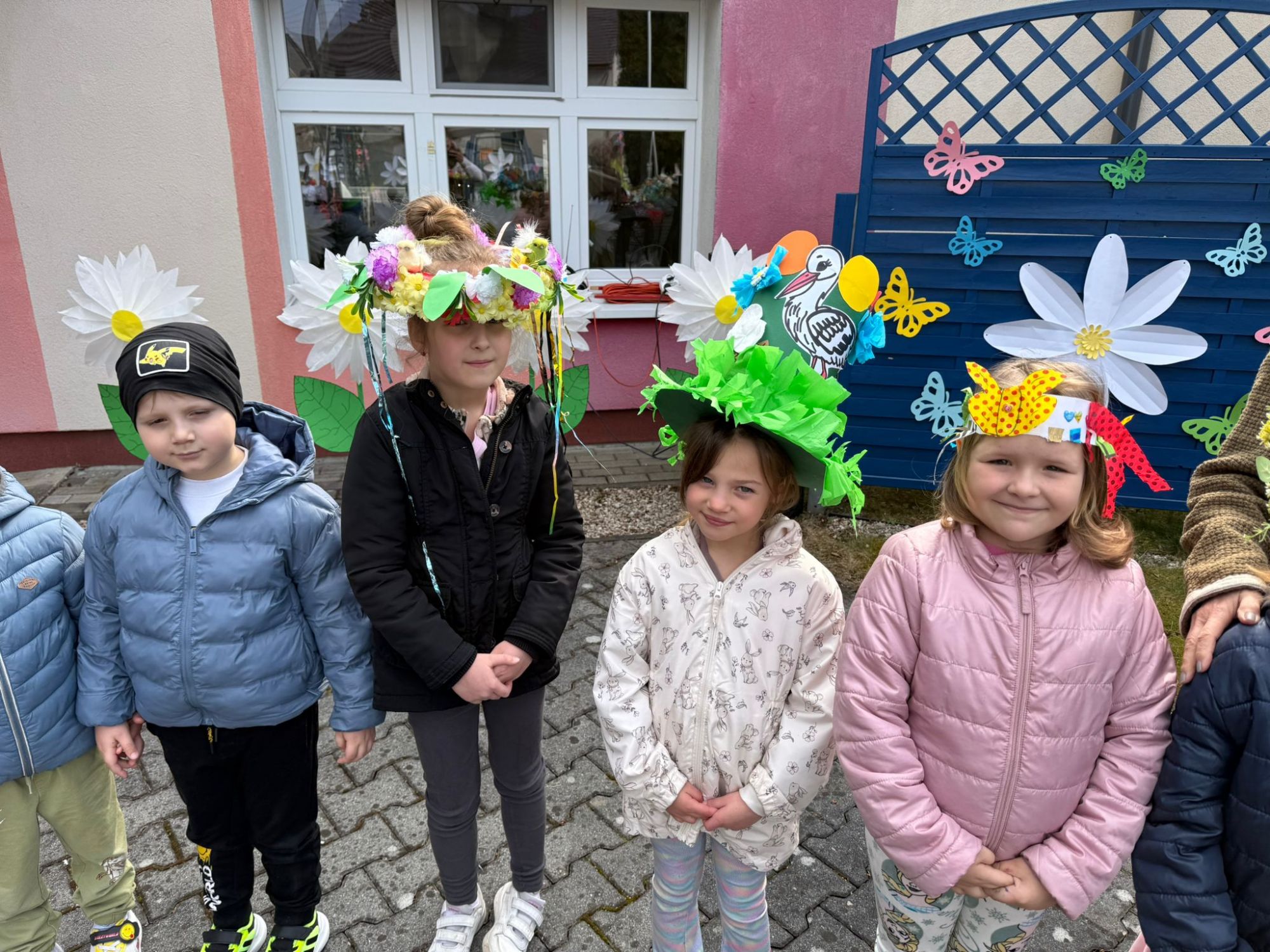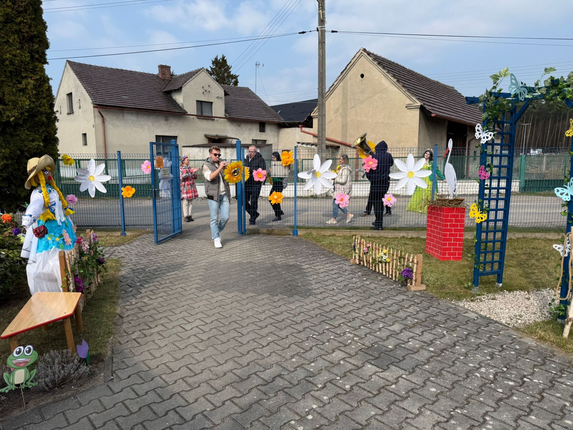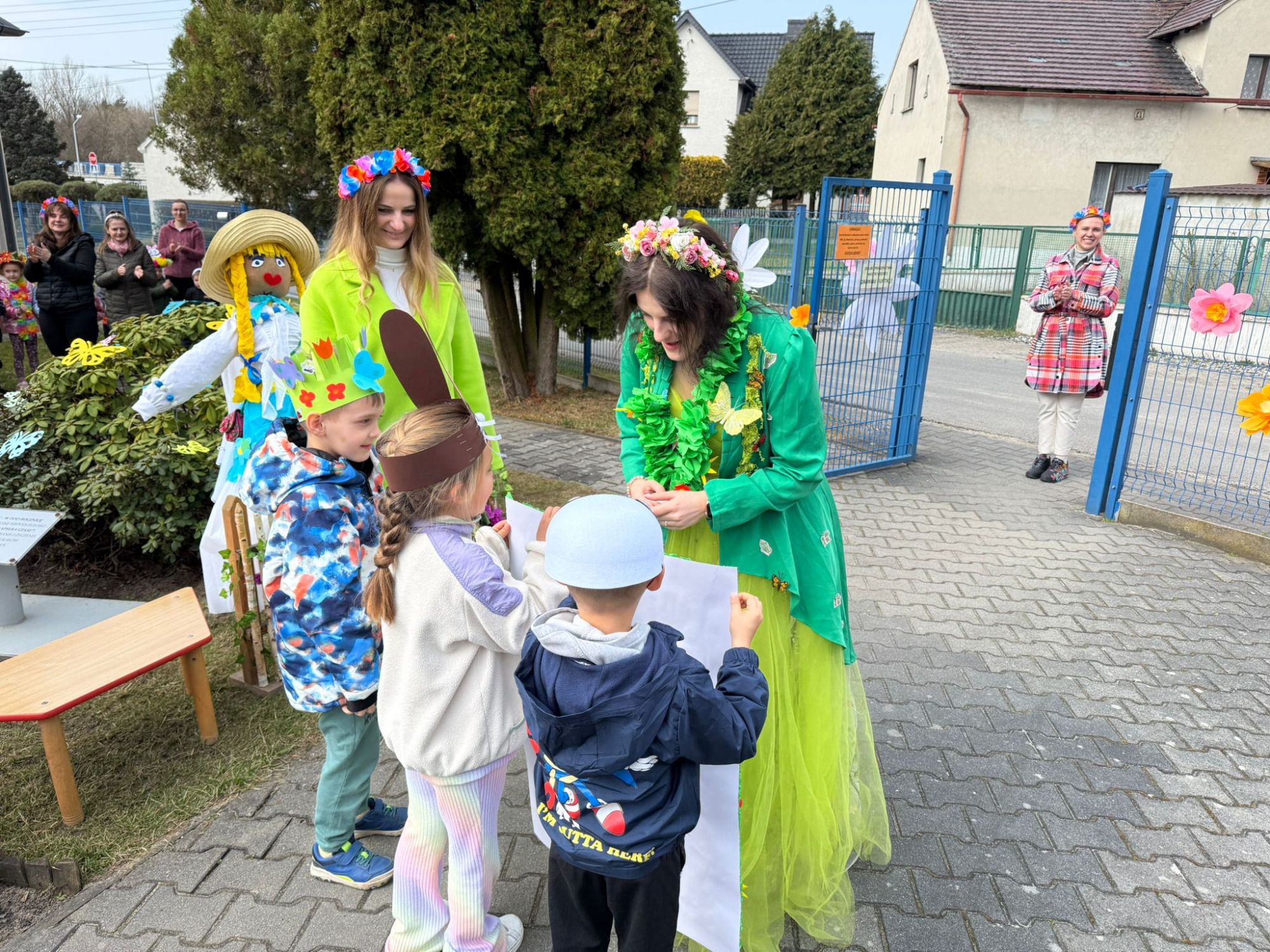 19 marca w naszym przedszkolu odbyło się wyjątkowe i pełne radości wydarzenie. Odwiedziła nas niezwykła gościni, Pani Wiosna, której towarzyszyła orkiestra dęta. Dzieci z ogromnym entuzjazmem i uśmiechem powitały nadejście nowej pory roku, tworząc ciepłą i serdeczną atmosferę na pięknie udekorowanym placu wejściowym. Wychowankowie przygotowali dla Pani Wiosny miłą niespodziankę, własnoręcznie wykonany portret oraz piękne kwiaty, które zawiesili na jej szyi. W ten sposób wyrazili swoją sympatię, radość oraz wdzięczność za przybycie i przyniesienie ze sobą wiosennego ciepła. Przedszkolaki z obu grup zaprezentowały część artystyczną. Z zaangażowaniem śpiewały wiosenne piosenki, wprowadzając wszystkich w pogodny, pełen energii nastrój. Ich występ został nagrodzony gromkimi brawami. Na zakończenie tego wyjątkowego wydarzenia wspólnie udaliśmy się nad rzekę, niosąc ze sobą Marzannę-symbol odchodzącej zimy. Tam, zgodnie z tradycją, dzieci uroczyście pożegnały zimę i z radością powitały wiosnę, mając nadzieję na słoneczne i pełne przygód dni.