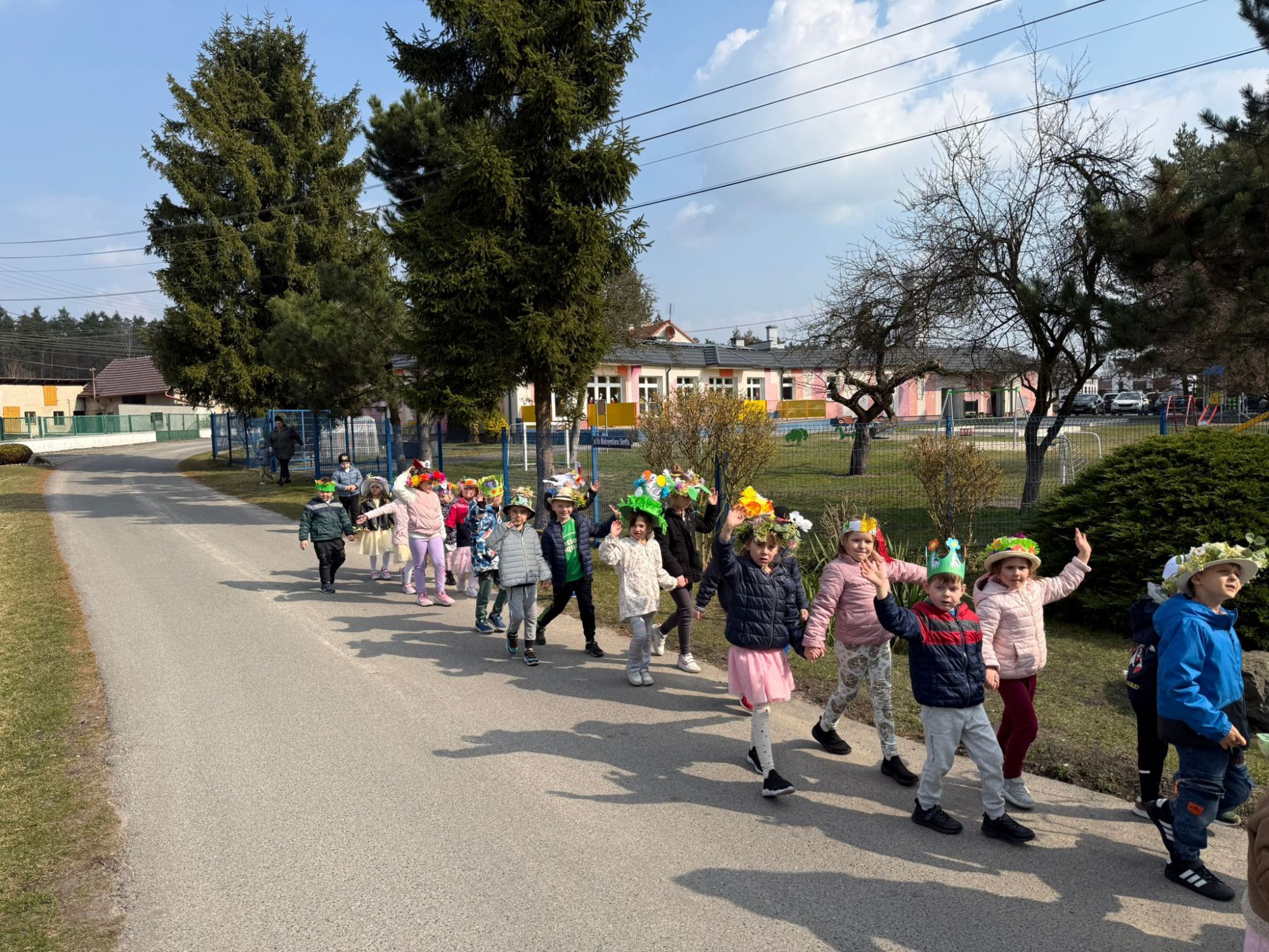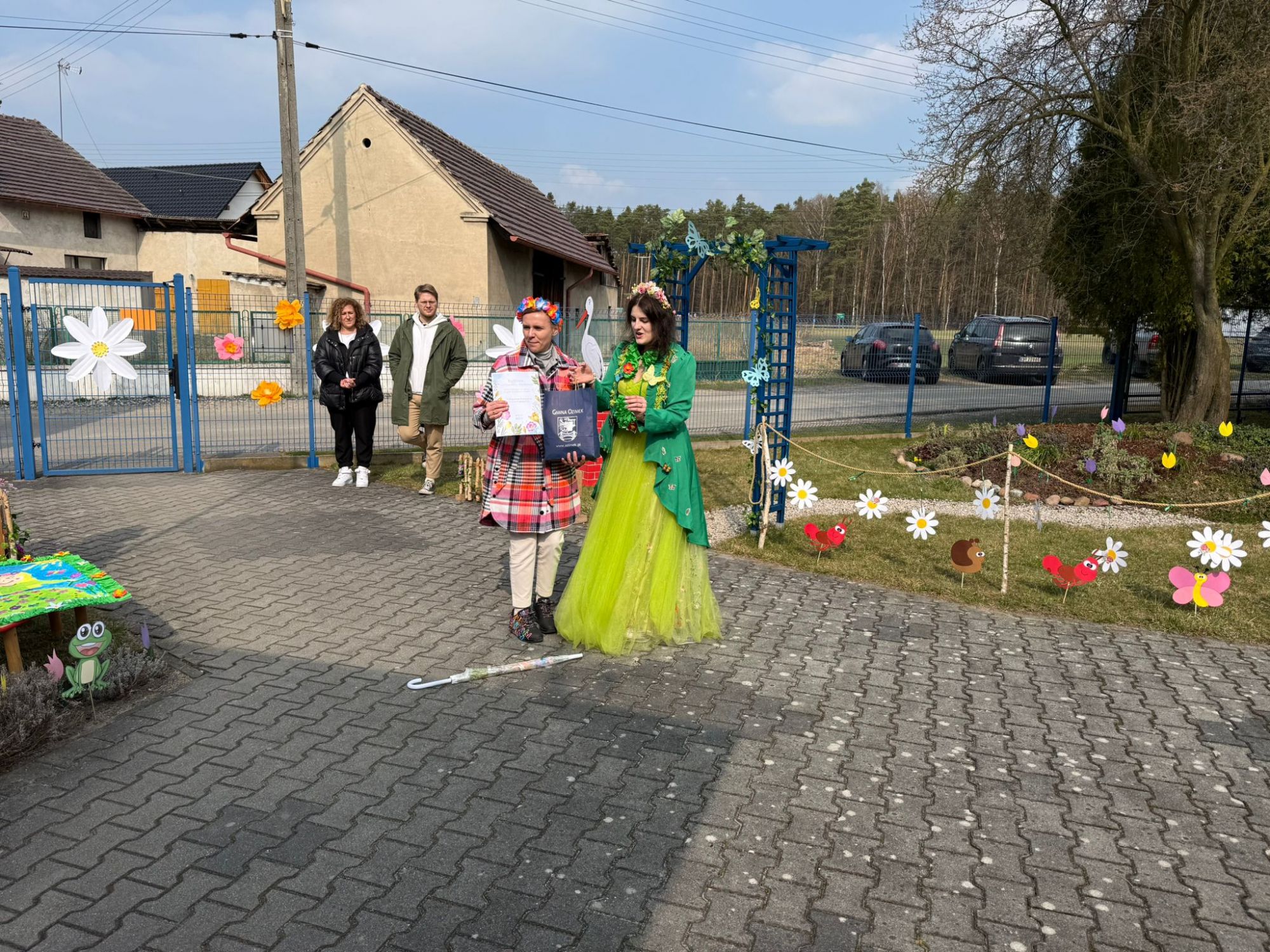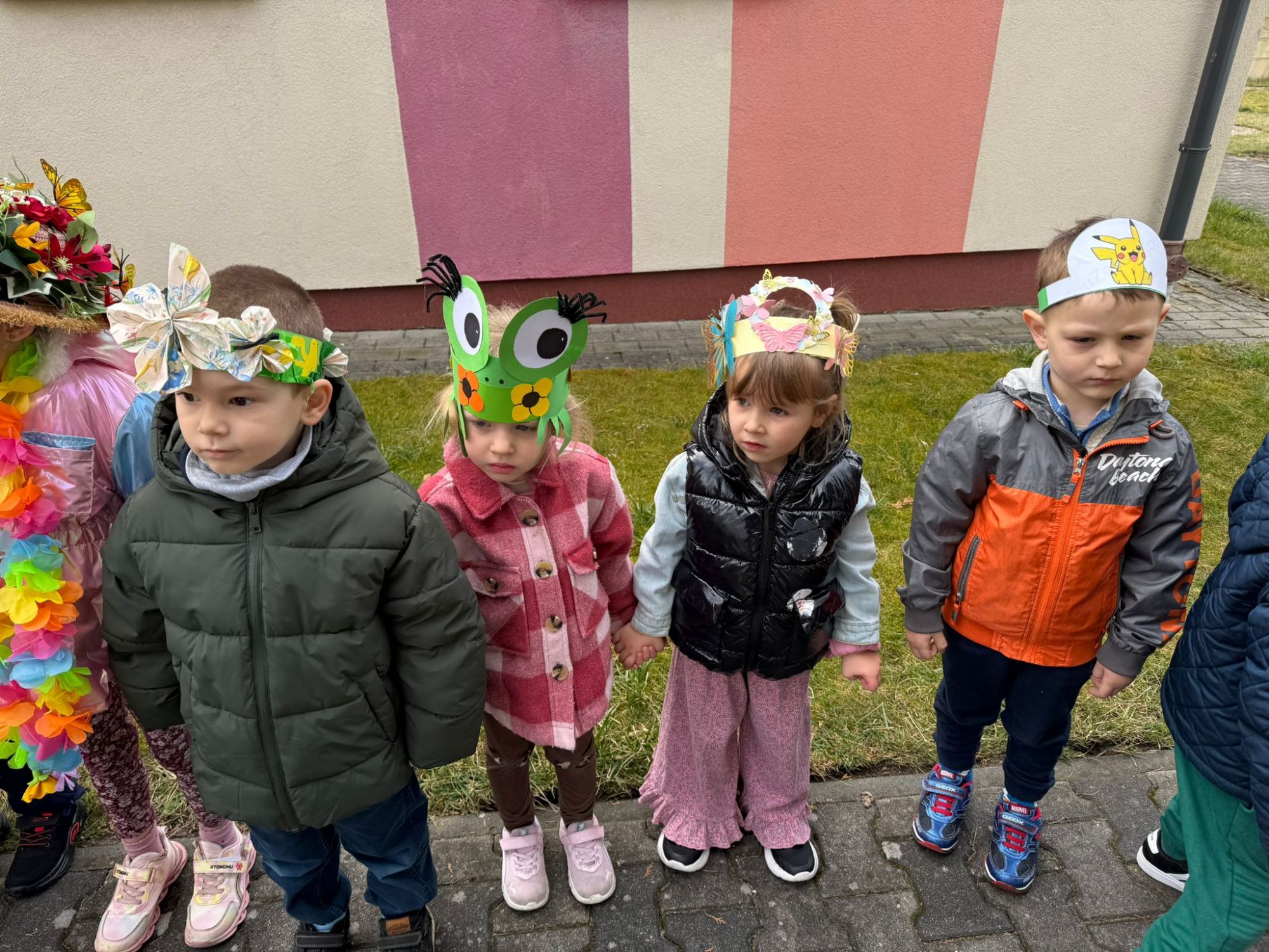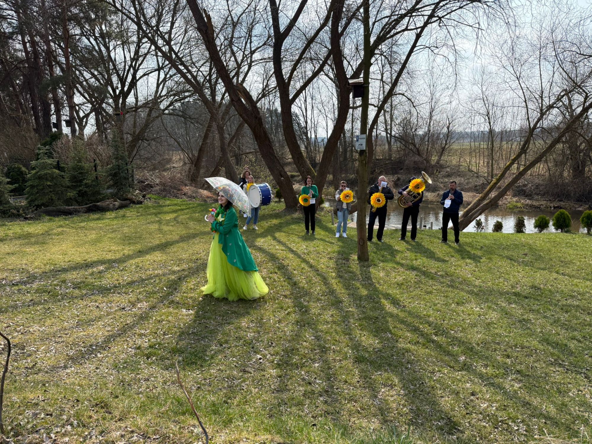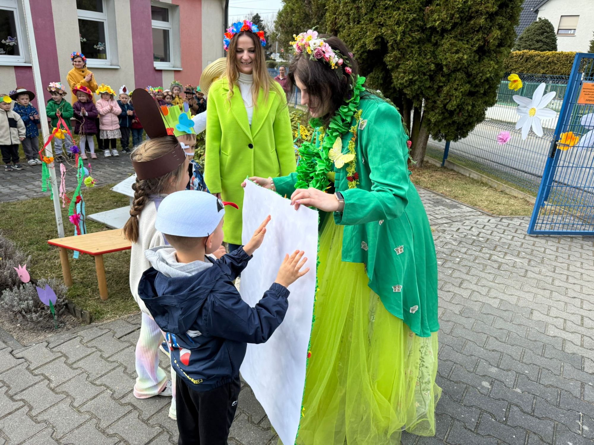 19 marca w naszym przedszkolu odbyło się wyjątkowe i pełne radości wydarzenie. Odwiedziła nas niezwykła gościni, Pani Wiosna, której towarzyszyła orkiestra dęta. Dzieci z ogromnym entuzjazmem i uśmiechem powitały nadejście nowej pory roku, tworząc ciepłą i serdeczną atmosferę na pięknie udekorowanym placu wejściowym. Wychowankowie przygotowali dla Pani Wiosny miłą niespodziankę, własnoręcznie wykonany portret oraz piękne kwiaty, które zawiesili na jej szyi. W ten sposób wyrazili swoją sympatię, radość oraz wdzięczność za przybycie i przyniesienie ze sobą wiosennego ciepła. Przedszkolaki z obu grup zaprezentowały część artystyczną. Z zaangażowaniem śpiewały wiosenne piosenki, wprowadzając wszystkich w pogodny, pełen energii nastrój. Ich występ został nagrodzony gromkimi brawami. Na zakończenie tego wyjątkowego wydarzenia wspólnie udaliśmy się nad rzekę, niosąc ze sobą Marzannę-symbol odchodzącej zimy. Tam, zgodnie z tradycją, dzieci uroczyście pożegnały zimę i z radością powitały wiosnę, mając nadzieję na słoneczne i pełne przygód dni.