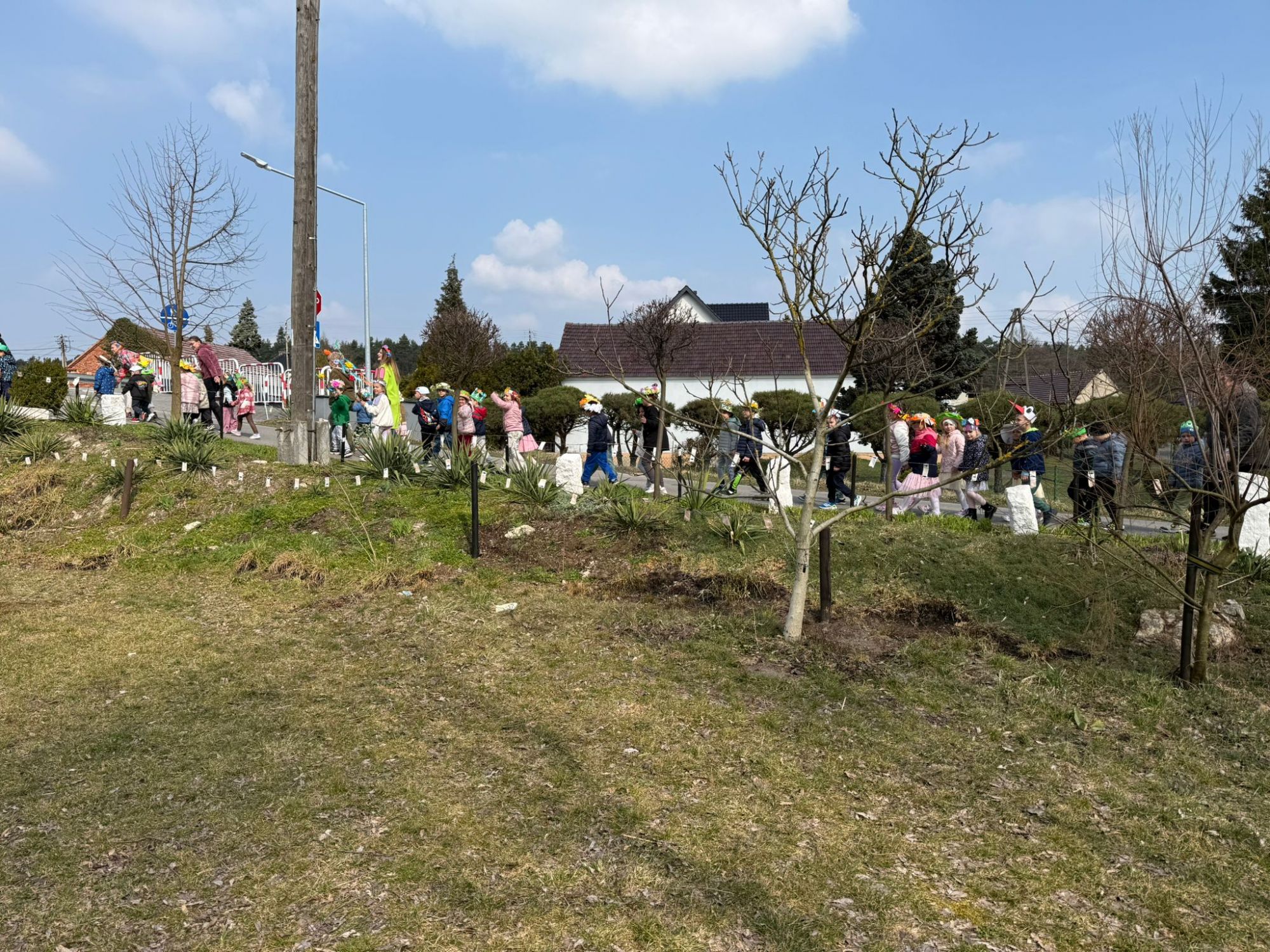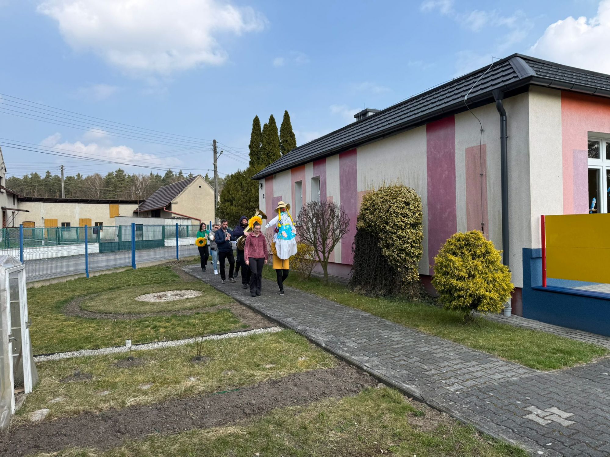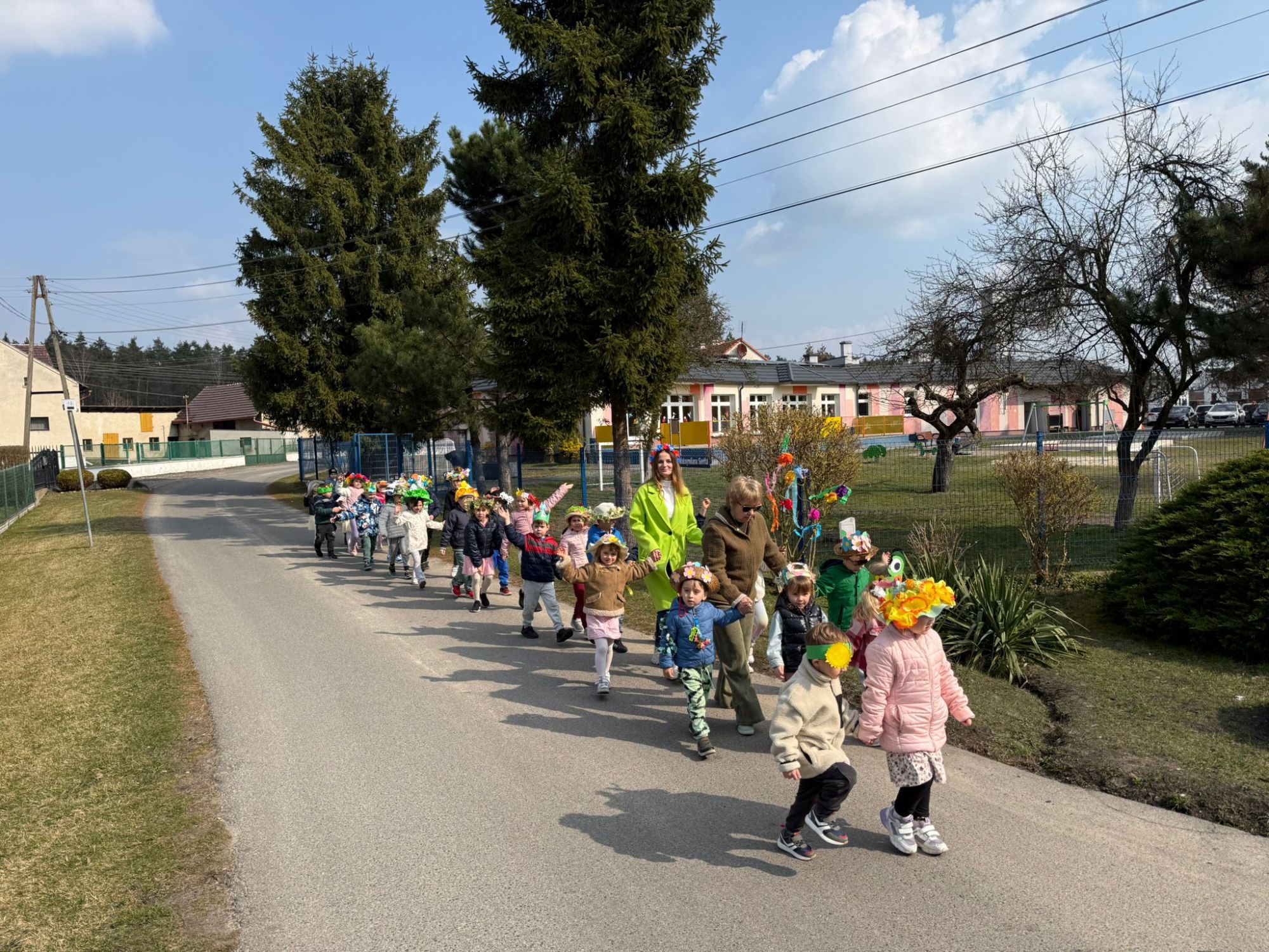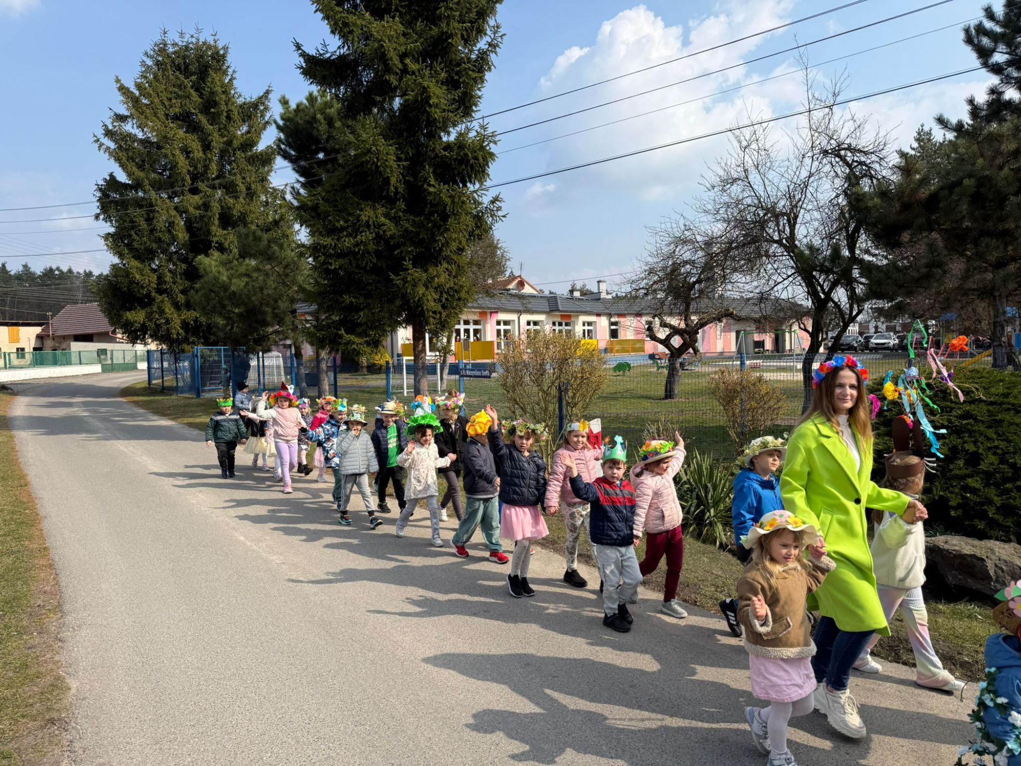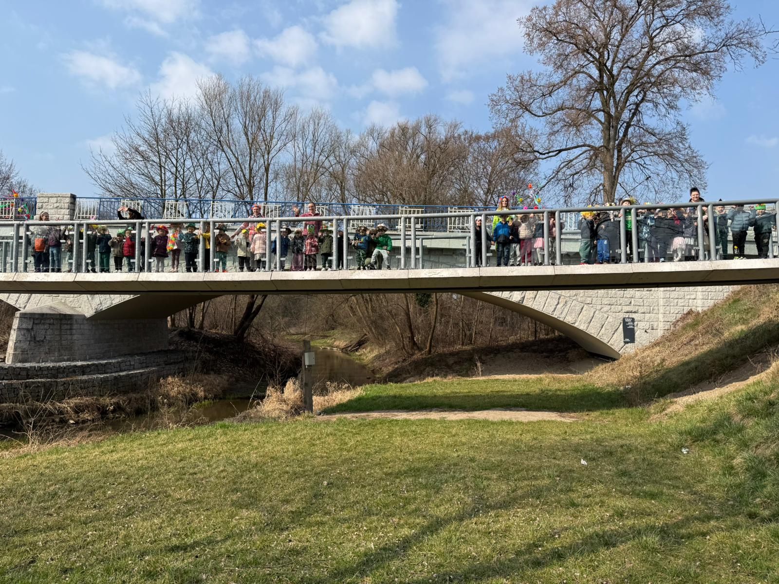 19 marca w naszym przedszkolu odbyło się wyjątkowe i pełne radości wydarzenie. Odwiedziła nas niezwykła gościni, Pani Wiosna, której towarzyszyła orkiestra dęta. Dzieci z ogromnym entuzjazmem i uśmiechem powitały nadejście nowej pory roku, tworząc ciepłą i serdeczną atmosferę na pięknie udekorowanym placu wejściowym. Wychowankowie przygotowali dla Pani Wiosny miłą niespodziankę, własnoręcznie wykonany portret oraz piękne kwiaty, które zawiesili na jej szyi. W ten sposób wyrazili swoją sympatię, radość oraz wdzięczność za przybycie i przyniesienie ze sobą wiosennego ciepła. Przedszkolaki z obu grup zaprezentowały część artystyczną. Z zaangażowaniem śpiewały wiosenne piosenki, wprowadzając wszystkich w pogodny, pełen energii nastrój. Ich występ został nagrodzony gromkimi brawami. Na zakończenie tego wyjątkowego wydarzenia wspólnie udaliśmy się nad rzekę, niosąc ze sobą Marzannę-symbol odchodzącej zimy. Tam, zgodnie z tradycją, dzieci uroczyście pożegnały zimę i z radością powitały wiosnę, mając nadzieję na słoneczne i pełne przygód dni.