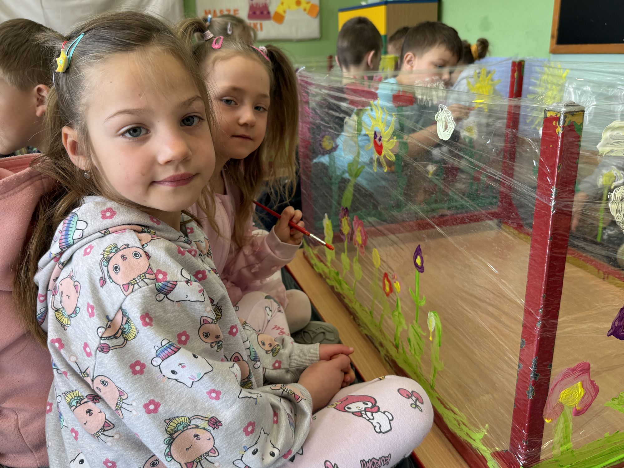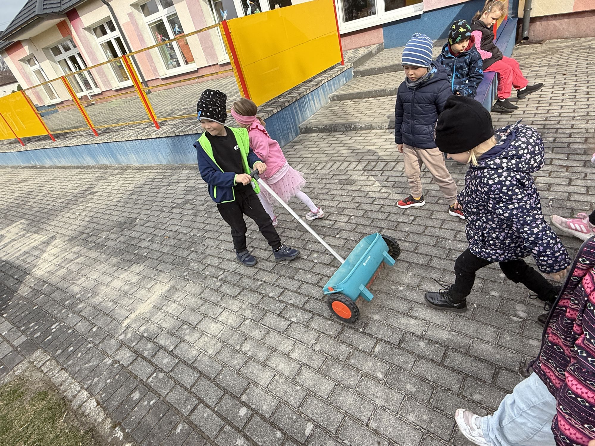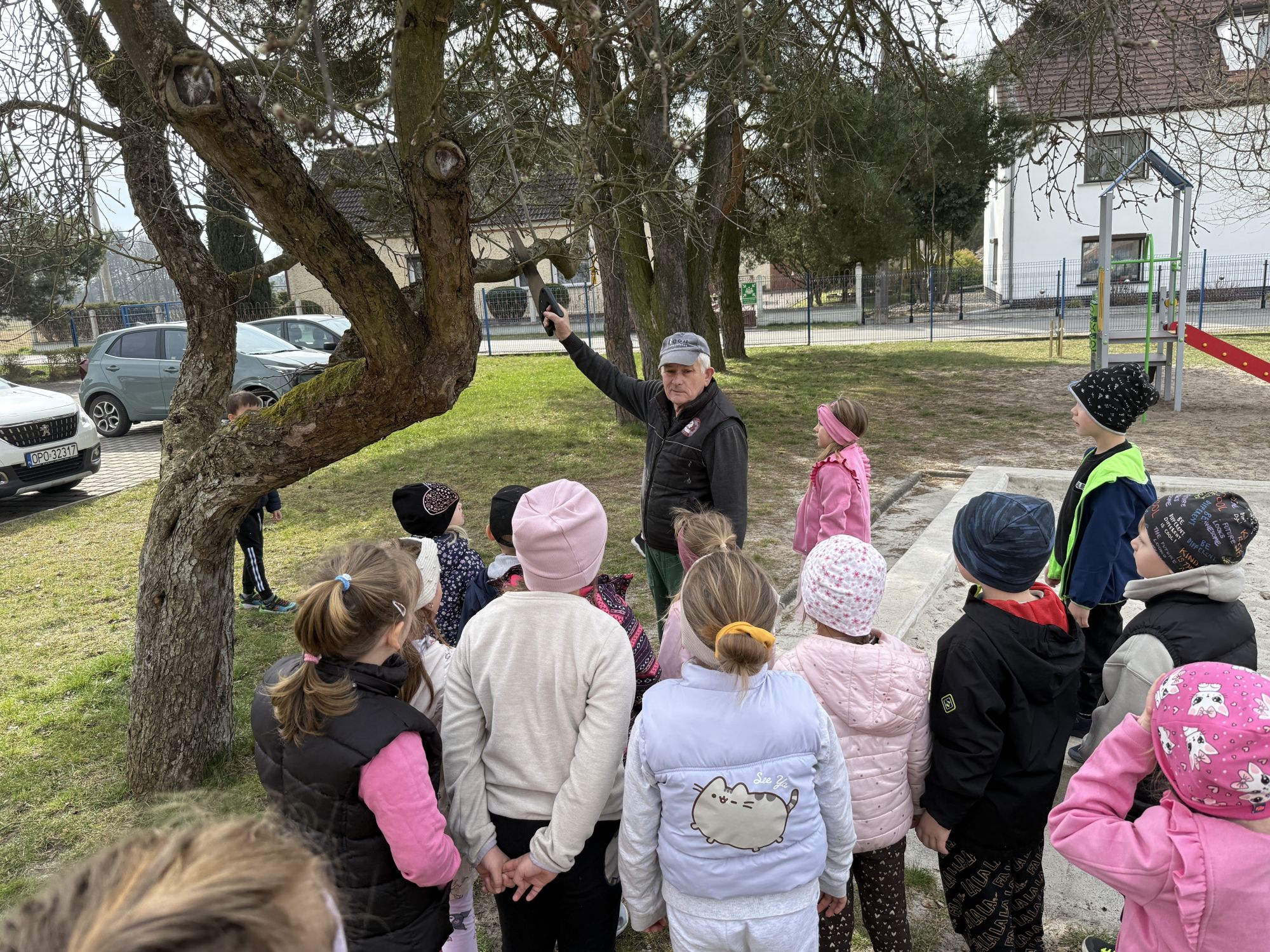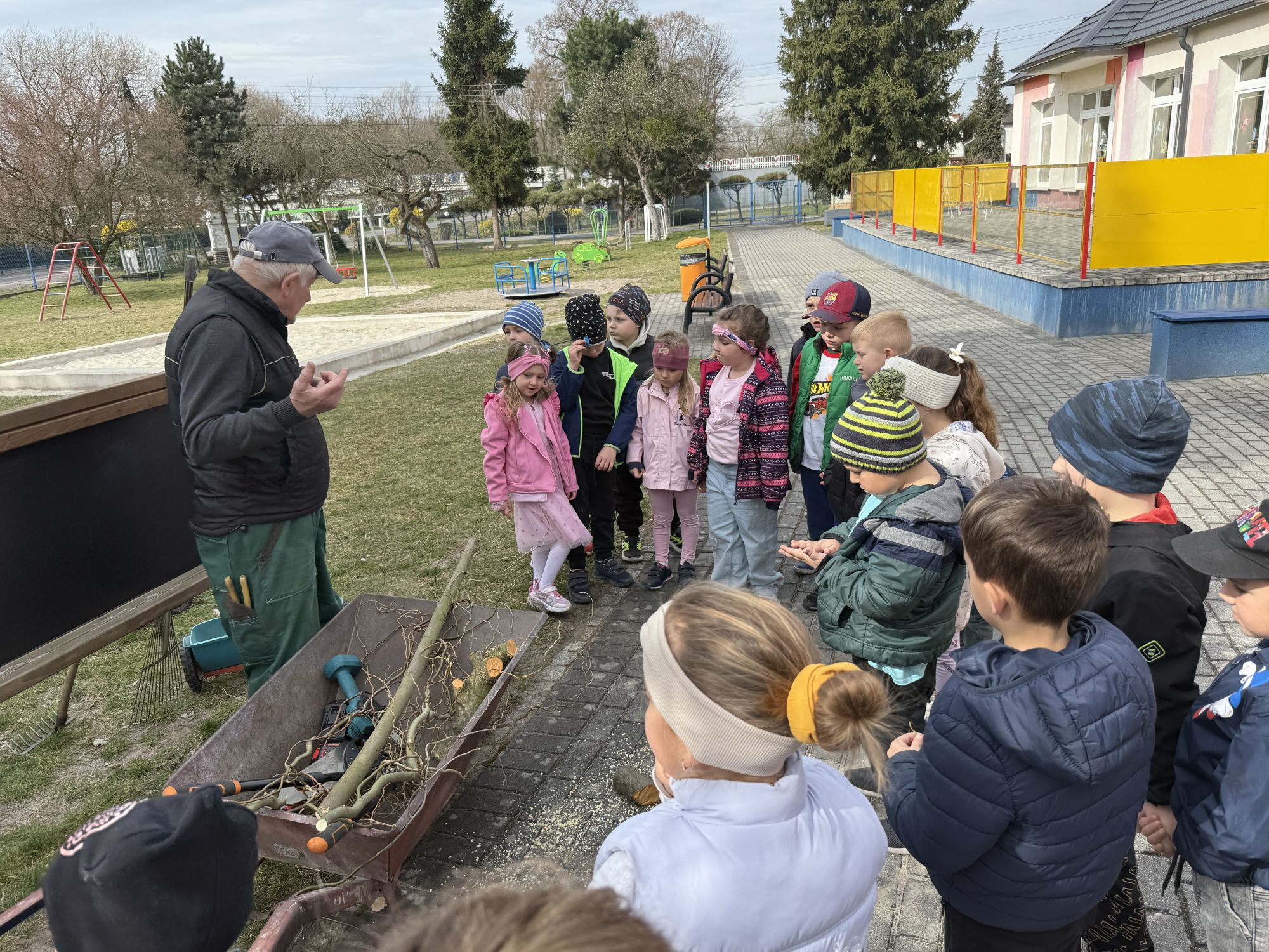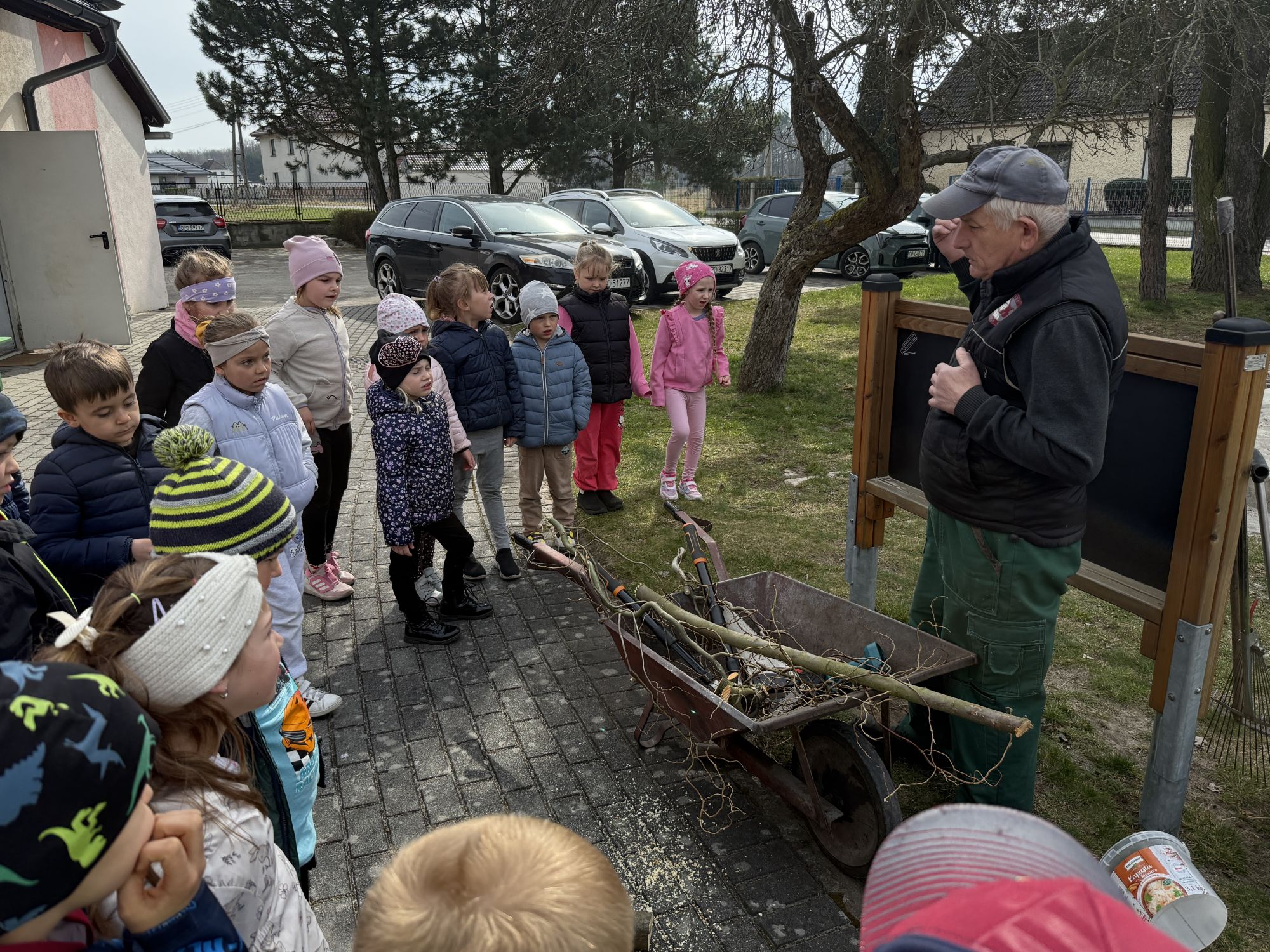 W czwartym tygodniu marca, w grupie starszej zagościła długo wyczekiwana wiosna. Dzieci z ogromnym zaciekawieniem odkrywały jej pierwsze oznaki. Rozmawiały o zmianach zachodzących w przyrodzie, poznawały wiosenne kwiaty oraz dowiadywały się, jakie prace wykonuje się w ogrodzie o tej porze roku. Szczególną radość sprawiło przedszkolakom założenie własnego ogródka w sali. Na stoliku, wspólnie z nauczycielem, zgromadziły wszystkie potrzebne rzeczy – pojemniki, słoiki, łopatki, nasiona i cebulki. Zanim jednak rozpoczęły pracę, z dużym zainteresowaniem oglądały nasionka, przyglądały się ich kształtom i kolorom, dzieląc się swoimi spostrzeżeniami. Dowiedziały się również, czym różni się sianie od sadzenia oraz poznały kolejne etapy wzrostu roślin – od momentu umieszczenia cebulki w glebie aż po jej stopniowy rozwój. Gdy wszystko było już gotowe, dzieci z wielkim zaangażowaniem przystąpiły do działania. Z radością siały rzeżuchę i owies, sadziły cebulkę, a także założyły hodowlę fasoli, układając nasiona na wilgotnej gazie w słoiku z wodą. Na zakończenie ustaliły dyżury, dzięki którym będą mogły troszczyć się o swoje rośliny każdego dnia. Nie zabrakło również rozmów o pięknych, wiosennych kwiatach. Na stole pojawiły się hiacynty, bratki, żonkile, prymulki oraz stokrotki. Dzieci z zachwytem je oglądały, opisywały ich wygląd i zapach, poznawały ich nazwy oraz budowę. Dowiedziały się także, czego rośliny potrzebują, aby rosnąć i pięknie kwitnąć. Kolejnego dnia starszaki wybrały się do przedszkolnego ogrodu, gdzie spotkały się z panem Witkiem, który z troską dba o otoczenie przedszkola. Wychowankowie z zainteresowaniem słuchały opowieści o wiosennych pracach ogrodowych oraz oglądały narzędzia i sprzęt do pielęgnacji terenu. Z bliska mogły zobaczyć m.in. sekator, łopatę, motykę, nożyce, grabie, rozsiewacz do nawozu lub nasion, a także wertykulator do trawnika. Następnie wybrały się na spacer wokół przedszkola, poszukując pierwszych wiosennych kwiatów. Na zakończenie dzieci wyraziły swoją radość poprzez twórczość plastyczną, malując farbami kolorowe kwiaty na folii stretch. Powstały piękne, barwne prace, które stały się kolorową ozdobą sali. Był to czas pełen radości, odkrywania i wspólnego działania. Takie zajęcia uczą najmłodszych cierpliwości, odpowiedzialności oraz uważnej obserwacji świata przyrody, rozwijając jednocześnie ich ciekawość i wrażliwość.
