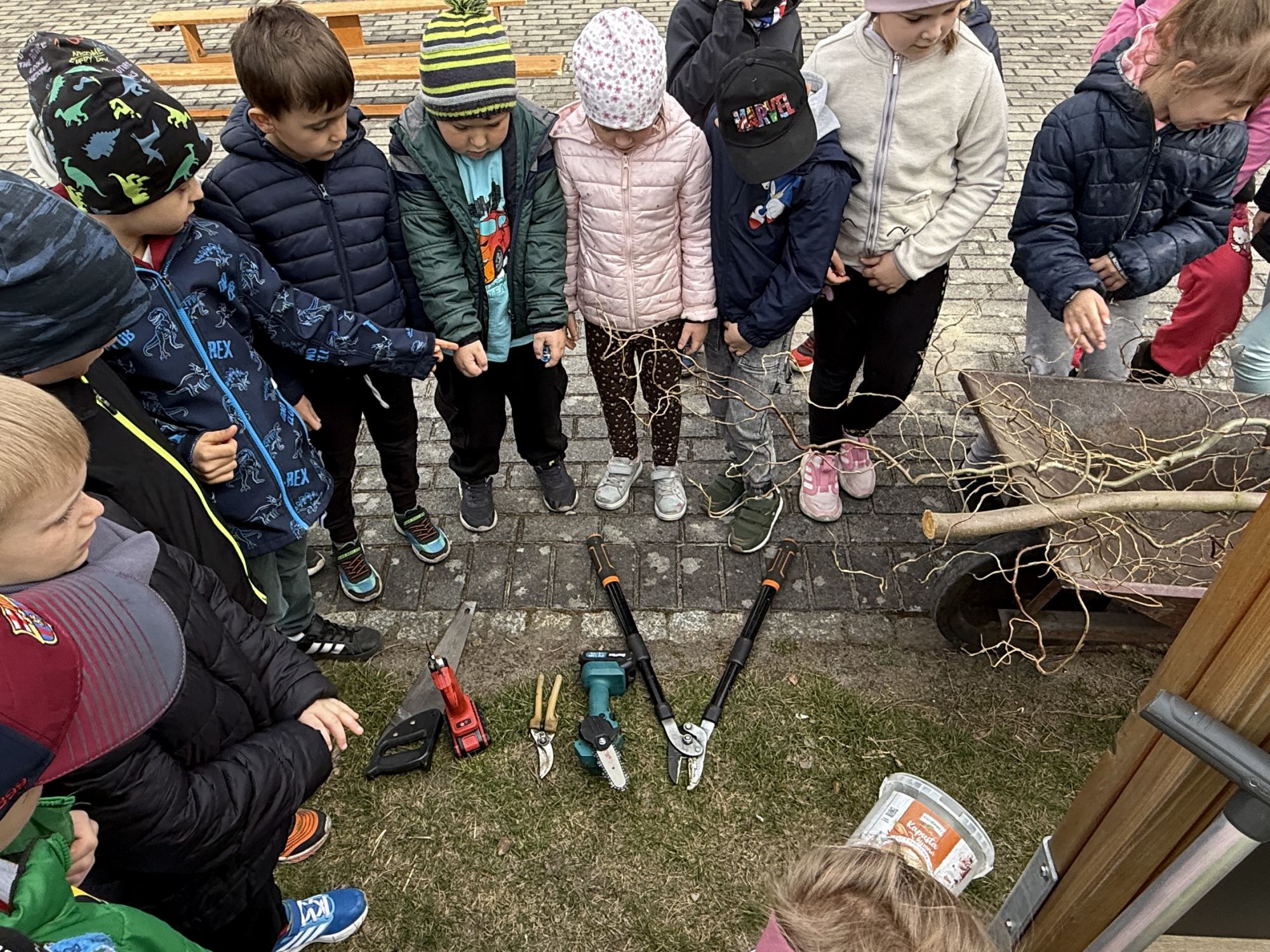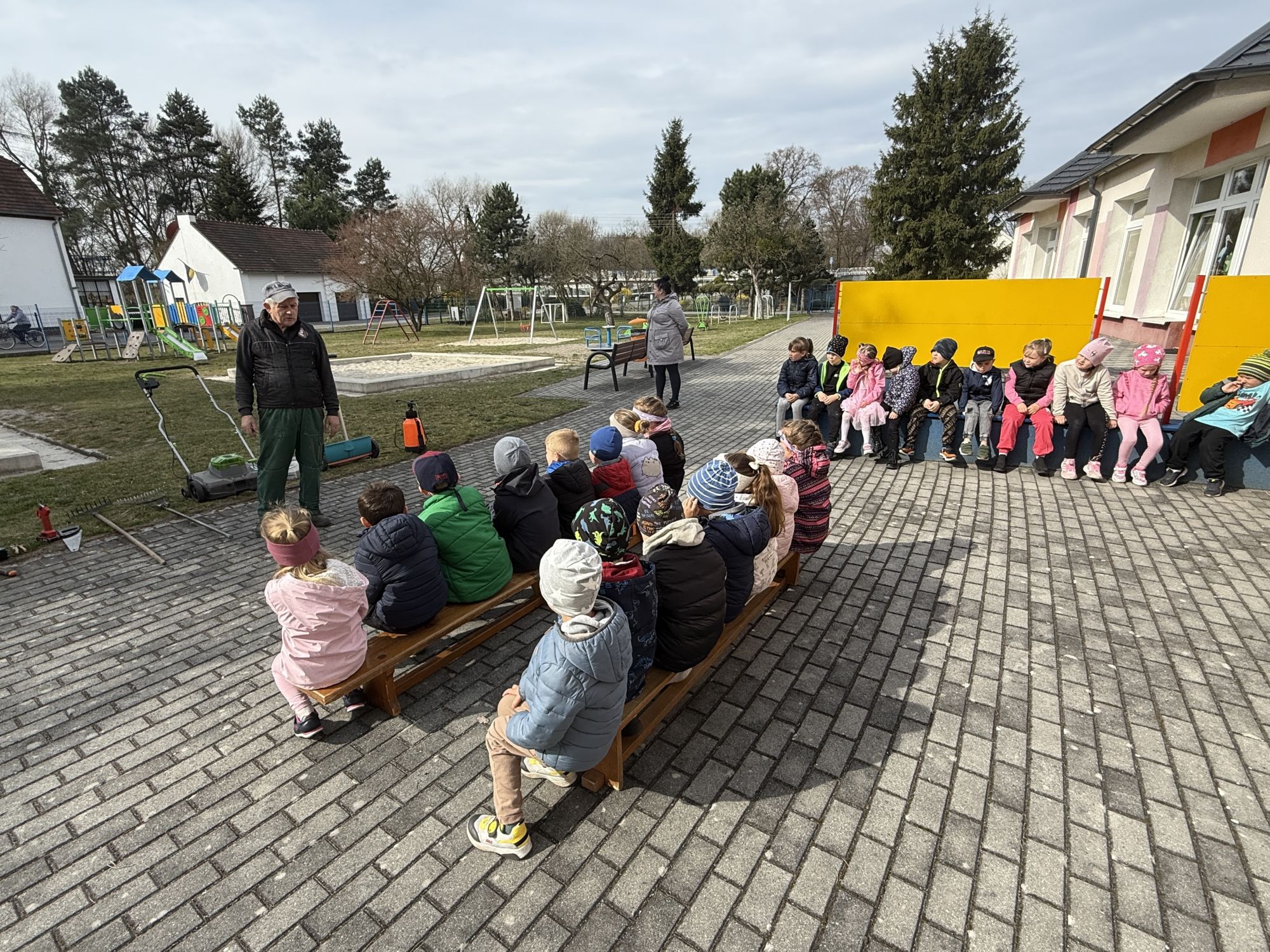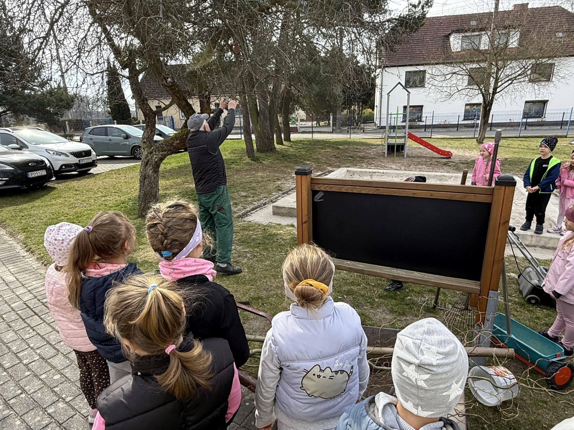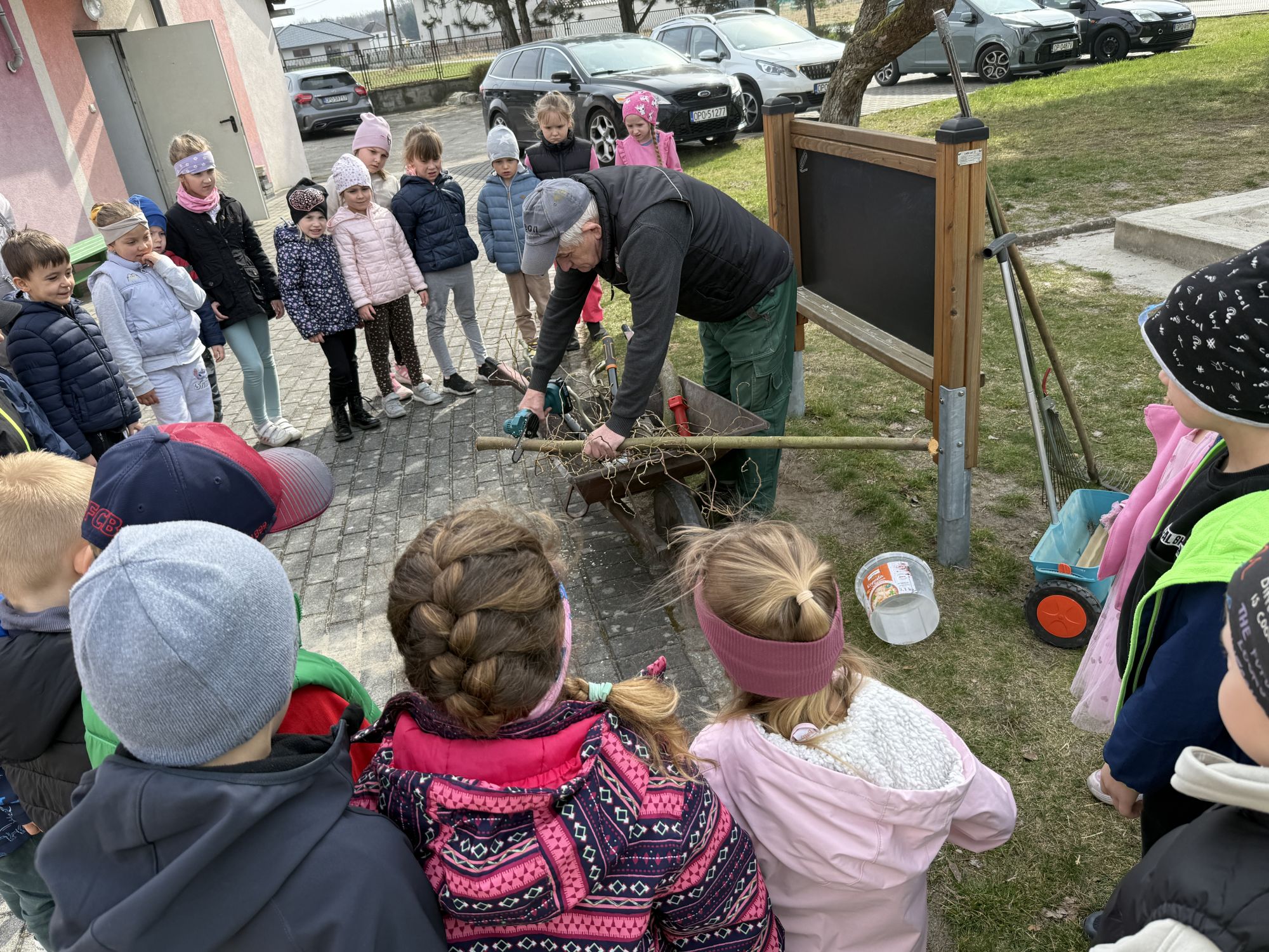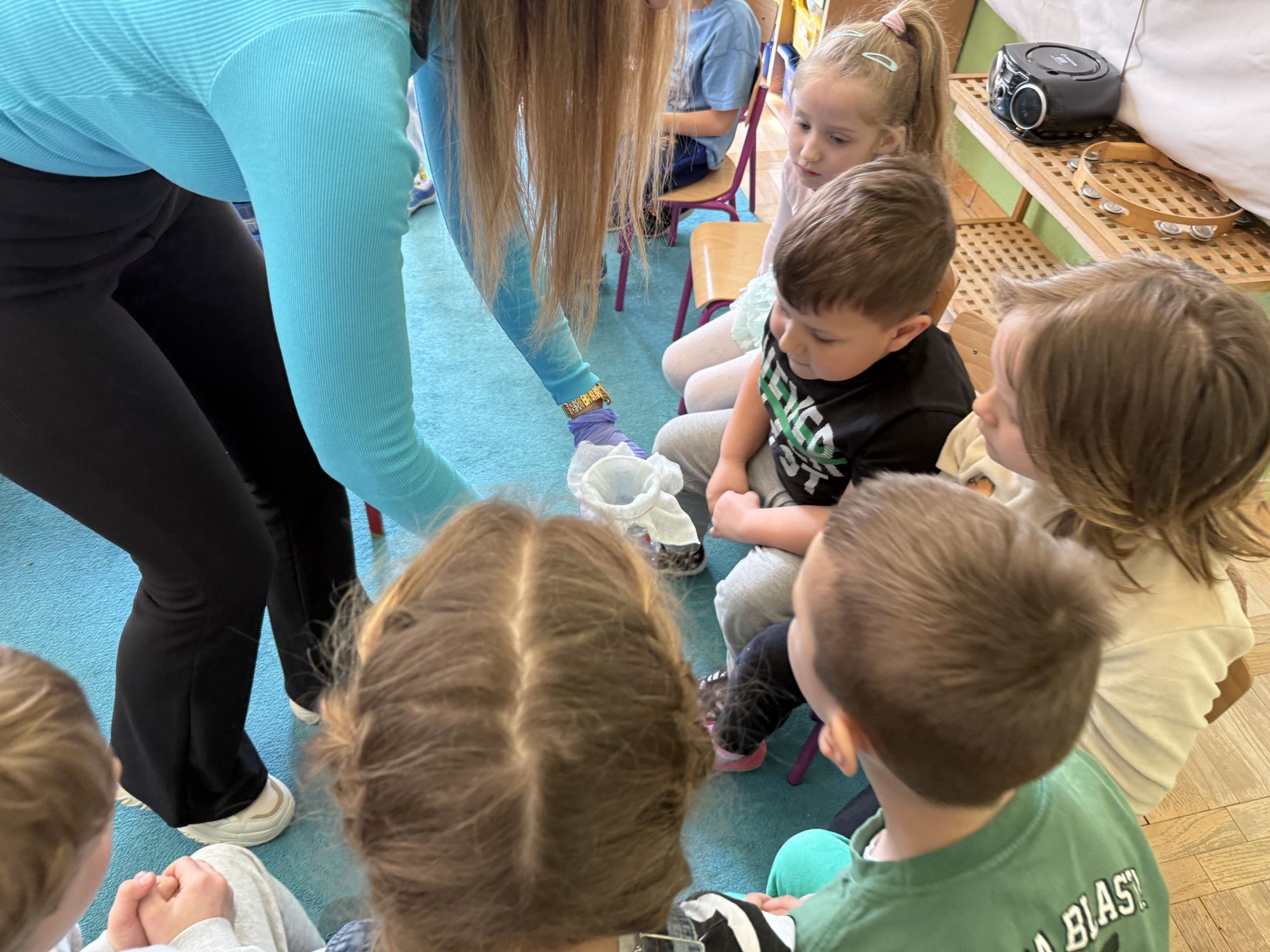W czwartym tygodniu marca, w grupie starszej zagościła długo wyczekiwana wiosna. Dzieci z ogromnym zaciekawieniem odkrywały jej pierwsze oznaki. Rozmawiały o zmianach zachodzących w przyrodzie, poznawały wiosenne kwiaty oraz dowiadywały się, jakie prace wykonuje się w ogrodzie o tej porze roku. Szczególną radość sprawiło przedszkolakom założenie własnego ogródka w sali. Na stoliku, wspólnie z nauczycielem, zgromadziły wszystkie potrzebne rzeczy – pojemniki, słoiki, łopatki, nasiona i cebulki. Zanim jednak rozpoczęły pracę, z dużym zainteresowaniem oglądały nasionka, przyglądały się ich kształtom i kolorom, dzieląc się swoimi spostrzeżeniami. Dowiedziały się również, czym różni się sianie od sadzenia oraz poznały kolejne etapy wzrostu roślin – od momentu umieszczenia cebulki w glebie aż po jej stopniowy rozwój. Gdy wszystko było już gotowe, dzieci z wielkim zaangażowaniem przystąpiły do działania. Z radością siały rzeżuchę i owies, sadziły cebulkę, a także założyły hodowlę fasoli, układając nasiona na wilgotnej gazie w słoiku z wodą. Na zakończenie ustaliły dyżury, dzięki którym będą mogły troszczyć się o swoje rośliny każdego dnia. Nie zabrakło również rozmów o pięknych, wiosennych kwiatach. Na stole pojawiły się hiacynty, bratki, żonkile, prymulki oraz stokrotki. Dzieci z zachwytem je oglądały, opisywały ich wygląd i zapach, poznawały ich nazwy oraz budowę. Dowiedziały się także, czego rośliny potrzebują, aby rosnąć i pięknie kwitnąć. Kolejnego dnia starszaki wybrały się do przedszkolnego ogrodu, gdzie spotkały się z panem Witkiem, który z troską dba o otoczenie przedszkola. Wychowankowie z zainteresowaniem słuchały opowieści o wiosennych pracach ogrodowych oraz oglądały narzędzia i sprzęt do pielęgnacji terenu. Z bliska mogły zobaczyć m.in. sekator, łopatę, motykę, nożyce, grabie, rozsiewacz do nawozu lub nasion, a także wertykulator do trawnika. Następnie wybrały się na spacer wokół przedszkola, poszukując pierwszych wiosennych kwiatów. Na zakończenie dzieci wyraziły swoją radość poprzez twórczość plastyczną, malując farbami kolorowe kwiaty na folii stretch. Powstały piękne, barwne prace, które stały się kolorową ozdobą sali. Był to czas pełen radości, odkrywania i wspólnego działania. Takie zajęcia uczą najmłodszych cierpliwości, odpowiedzialności oraz uważnej obserwacji świata przyrody, rozwijając jednocześnie ich ciekawość i wrażliwość.
